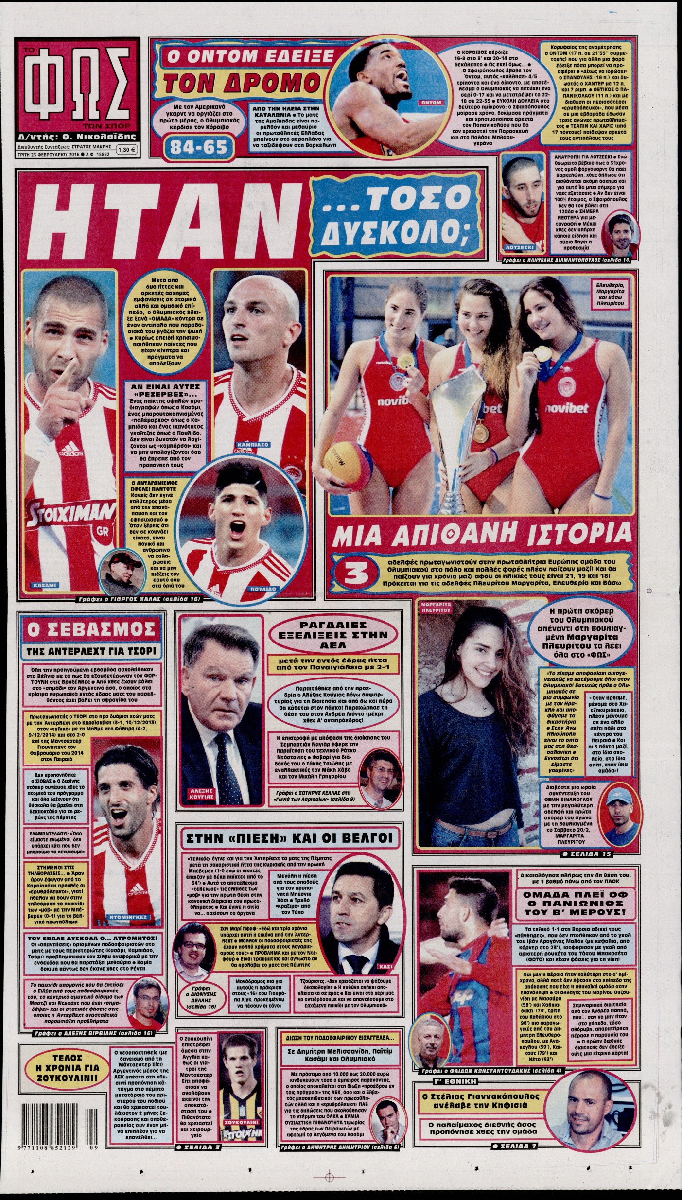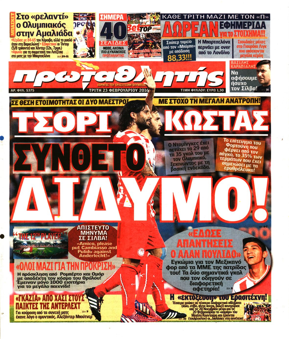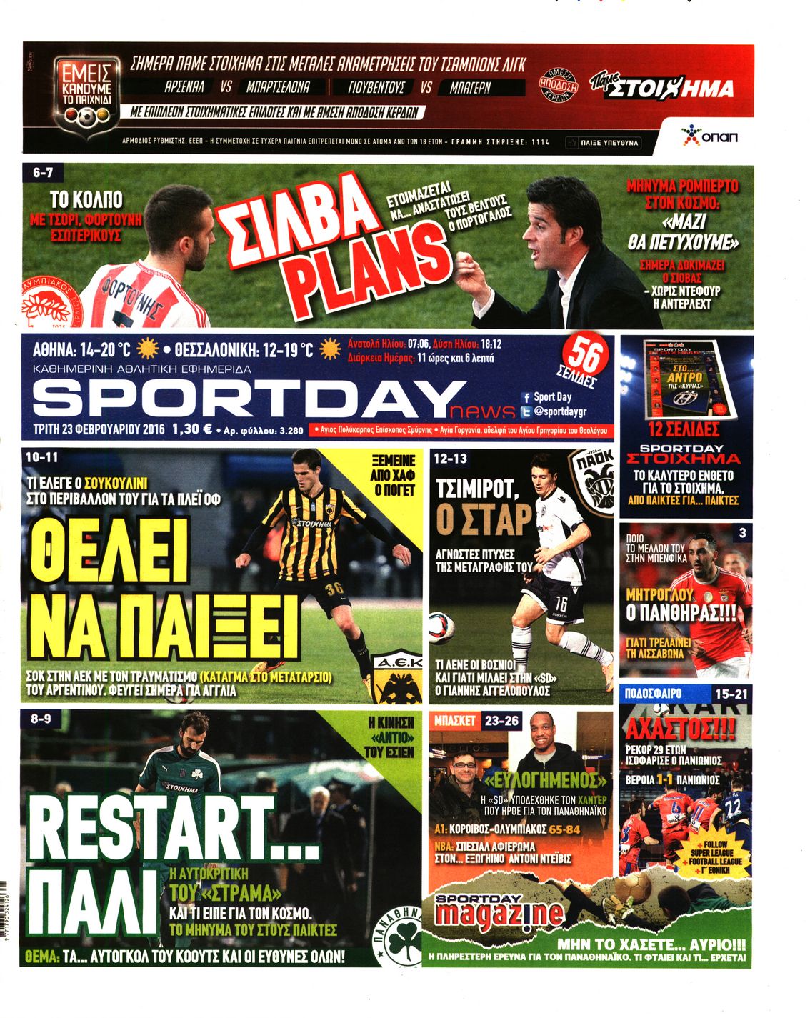 Οι αθλητικές εφημερίδες 23/2/2016 Enikos Newsroom 06:09, Τρίτη 23 Φεβρουαρίου 2016 Media Διαβάστε τα σημερινά πρωτοσέλιδα των αθλητικών εφημερίδων: ΑΘΛΗΤΙΚΕΣ ΕΦΗΜΕΡΙΔΕΣ ΠΡΩΤΟΣΕΛΙΔΑ Μοιράσου το: σχολίασε κι εσύ (0 σχόλια) Ακολουθήστε το enikos.gr στο Google News και μάθετε πρώτοι όλες τις ειδήσεις Δείτε όλες τις τελευταίες ειδήσεις από την Ελλάδα και τον Κόσμο στο enikos.gr Ειδήσεις Ροή Ειδήσεων 1 ώρα πριν Αυξάνουν την πίεση προς την κυβέρνηση οι αγρότες: Κλείνουν παρακαμπτήριους και ανοίγουν διόδια – Τι θα γίνει τις γιορτές 15 λεπτά πριν ΟΠΕΚΕΠΕ: Προφυλακιστέος ο φερόμενος αρχηγός και ο λογιστής της εγκληματικής οργάνωσης 1 ώρα πριν Φοινικούντα: Το Σάββατο απολογείται ο 30χρονος γιος γνωστού επιχειρηματία της Πλάκας που παραδόθηκε – Όσα είπε στους αστυνομικούς και ο ρόλος του στο έγκλημα 56 λεπτά πριν Μπορεί ο Μαδούρο να αντέξει τον αποκλεισμό του Τραμπ; Τι θα χρειαστεί η Ουάσινγκτον για να τον ανατρέψει 2 ώρες πριν Πρίγκιπας Ουίλιαμ – Κέιτ: Η νέα οικογενειακή φωτογραφία για τις Χριστουγεννιάτικες κάρτες του 2025 2 ώρες πριν Ύπνος: Η απλή βραδινή ρουτίνα για να προστατεύσετε τα μαλλιά σας από το κρύο κατά τη διάρκεια του χειμώνα 3 ώρες πριν Manifesting: Πώς να συναντήσετε τον σύντροφο της ζωής σας, ανάλογα με τον μήνα γέννησής σας 2 ημέρες πριν 20 χρόνια τα Χριστούγεννα ξεκινούν στα Public με μεγάλη ποικιλία σε δώρα! 59 λεπτά πριν Αρχαιολόγοι ανακάλυψαν ρωμαϊκά τεχνουργήματα από μια πόλη που δεν υπήρξε ποτέ – Τα τρία εντυπωσιακά κτίρια και ο αμφορέας με τις… σαρδέλες 15 λεπτά πριν ΟΠΕΚΕΠΕ: Προφυλακιστέος ο φερόμενος αρχηγός και ο λογιστής της εγκληματικής οργάνωσης 25 λεπτά πριν Αθηνά Μαξίμου: Η τρυφερή ανάρτηση για τα γενέθλια του Αιμίλιου Χειλάκη – «Είναι η εκλεκτική συγγένειά μου, η επιλογή και η ευθύνη μου» 40 λεπτά πριν Παναθηναϊκός – Χάποελ Τελ Αβίβ 93-82: Με… φόρα από την Κωνσταντινούπολη 56 λεπτά πριν Μπορεί ο Μαδούρο να αντέξει τον αποκλεισμό του Τραμπ; Τι θα χρειαστεί η Ουάσινγκτον για να τον ανατρέψει 59 λεπτά πριν Αρχαιολόγοι ανακάλυψαν ρωμαϊκά τεχνουργήματα από μια πόλη που δεν υπήρξε ποτέ – Τα τρία εντυπωσιακά κτίρια και ο αμφορέας με τις… σαρδέλες ENIKOS NETWORK Σε περίοδο αυξημένης δραστηριότητας η γρίπη στην Ελλάδα-Μέτρα προστασίας από τον ΕΟΔΥ Σκέφτεστε συνέχεια συζητήσεις που έχετε κάνει; Τι σημαίνει αυτό, σύμφωνα με ειδικό Στεγαστικό: Τι λέει η ΠΟΜΙΔΑ για τα νέα μέτρα που ανακοίνωσε ο Κυριάκος Μητσοτάκης Λαγκάρντ: Αισιόδοξη για την ανάπτυξη της Ευρωζώνης, αβέβαιη για τον πληθωρισμό Χαρτογραφώντας το «σημείο χωρίς επιστροφή»: Για πρώτη φορά αποκαλύπτεται με λεπτομέρεια το ακανθώδες όριο της ατμόσφαιρας τ... Η Google καταργεί τη λειτουργία «dark web report» – Πώς θα μπορούν οι χρήστες να διαγράφουν τα δεδομένα τους περισσότερα 17:45 , Πέμπτη 18 Δεκεμβρίου 2025 ROUK ZOUK: Εορταστικό επεισόδιο με καλεσμένους τους πρωταγωνιστές του «Γιατί ρε πατέρα» Το Σάββατο 20 Δεκεμβρίου στις 21:00, η Ζέτα Μακρυπούλια υποδέχεται εκλεκτούς ηθοποιούς που όλο... 17:20 , Πέμπτη 18 Δεκεμβρίου 2025 Άγιος έρωτας: Η Χριστίνα εξομολογείται στον πατέρα Νικόλαο, απόψε στις 21:00 στον Alpha Η Νότα αποφασίζει να εκδικηθεί τον Πέτρο και τον Στέφανο, για χάρη του Λούη, όμως τα πράγματα ... 16:50 , Πέμπτη 18 Δεκεμβρίου 2025 Να μ’ αγαπάς: Ζωή και Φωτεινή συμφιλιώνονται ως μάνα με κόρη, απόψε στις 20:00 Η ταυτότητα του Άγγελου αποκαλύπτεται στο νέο επεισόδιο της σειράς “Να μ’ αγαπάς... 15:52 , Πέμπτη 18 Δεκεμβρίου 2025 Το Σπίτι Δίπλα Στο Ποτάμι: Το καθηλωτ