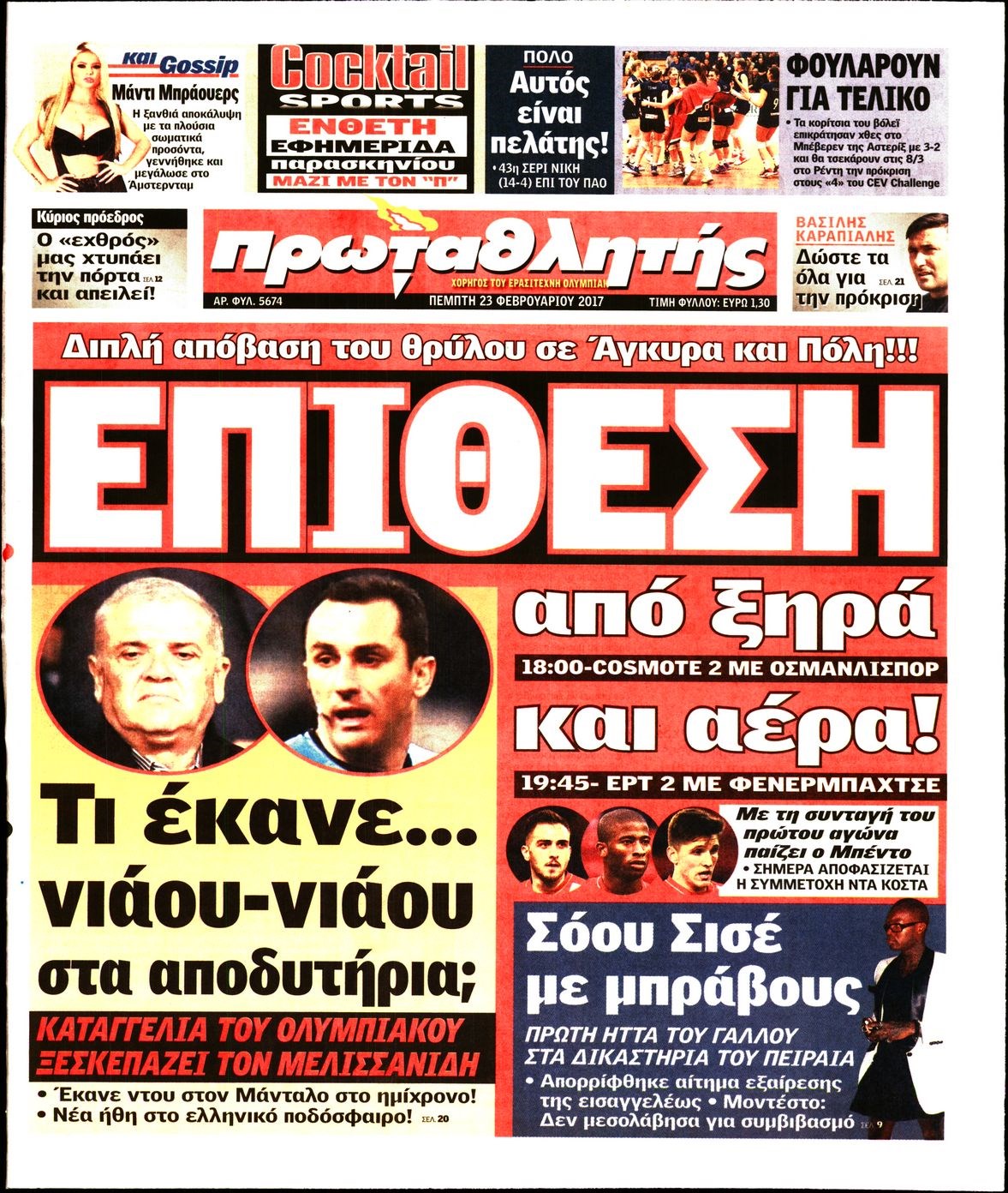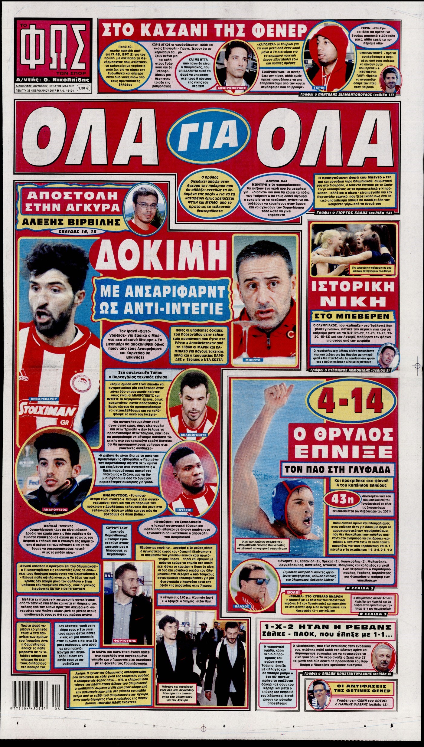 Οι αθλητικές εφημερίδες 23/2/2017 Enikos Newsroom 06:40, Πέμπτη 23 Φεβρουαρίου 2017 Media Διαβάστε τα σημερινά πρωτοσέλιδα των αθλητικών εφημερίδων: ΑΘΛΗΤΙΚΕΣ ΕΦΗΜΕΡΙΔΕΣ ΠΡΩΤΟΣΕΛΙΔΑ Μοιράσου το: σχολίασε κι εσύ (0 σχόλια) Ακολουθήστε το enikos.gr στο Google News και μάθετε πρώτοι όλες τις ειδήσεις Δείτε όλες τις τελευταίες ειδήσεις από την Ελλάδα και τον Κόσμο στο enikos.gr Ειδήσεις Ροή Ειδήσεων 2 ώρες πριν Αυξάνουν την πίεση προς την κυβέρνηση οι αγρότες: Κλείνουν παρακαμπτήριους και ανοίγουν διόδια – Τι θα γίνει τις γιορτές 1 ώρα πριν ΟΠΕΚΕΠΕ: Προφυλακιστέος ο φερόμενος αρχηγός και ο λογιστής της εγκληματικής οργάνωσης 2 ώρες πριν Φοινικούντα: Το Σάββατο απολογείται ο 30χρονος γιος γνωστού επιχειρηματία της Πλάκας που παραδόθηκε – Όσα είπε στους αστυνομικούς και ο ρόλος του στο έγκλημα 2 ώρες πριν Μπορεί ο Μαδούρο να αντέξει τον αποκλεισμό του Τραμπ; Τι θα χρειαστεί η Ουάσινγκτον για να τον ανατρέψει 3 ώρες πριν Πρίγκιπας Ουίλιαμ – Κέιτ: Η νέα οικογενειακή φωτογραφία για τις Χριστουγεννιάτικες κάρτες του 2025 3 ώρες πριν Ύπνος: Η απλή βραδινή ρουτίνα για να προστατεύσετε τα μαλλιά σας από το κρύο κατά τη διάρκεια του χειμώνα 4 ώρες πριν Manifesting: Πώς να συναντήσετε τον σύντροφο της ζωής σας, ανάλογα με τον μήνα γέννησής σας 2 ημέρες πριν 20 χρόνια τα Χριστούγεννα ξεκινούν στα Public με μεγάλη ποικιλία σε δώρα! 2 ώρες πριν Αρχαιολόγοι ανακάλυψαν ρωμαϊκά τεχνουργήματα από μια πόλη που δεν υπήρξε ποτέ – Τα τρία εντυπωσιακά κτίρια και ο αμφορέας με τις… σαρδέλες 1 λεπτό πριν Conference League: Με Νόα, Ντρίτα, Άλκμααρ ή Τσέλιε στους «16» η ΑΕΚ 10 λεπτά πριν Conference League: Απευθείας στους «16» η ΑΕΚ Λάρνακας και η Ρακόβ των Σβάρνα και Κωνσταντόπουλου – Τα αποτελέσματα και η βαθμολογία, 3η η ΑΕΚ 20 λεπτά πριν Σε ομάδες που συνδέονται με το ρωσικό κράτος αποδίδει η Δανία δύο κυβερνοεπιθέσεις που δέχθηκε 34 λεπτά πριν Βαθμολογία UEFA: Η Πολωνία προσπέρασε την Ελλάδα 51 λεπτά πριν Conference League: Οι ομάδες που προκρίθηκαν στους «16» και τα «ζευγαρώματα» στα νοκ άουτ ENIKOS NETWORK Σε περίοδο αυξημένης δραστηριότητας η γρίπη στην Ελλάδα-Μέτρα προστασίας από τον ΕΟΔΥ Σκέφτεστε συνέχεια συζητήσεις που έχετε κάνει; Τι σημαίνει αυτό, σύμφωνα με ειδικό Στεγαστικό: Τι λέει η ΠΟΜΙΔΑ για τα νέα μέτρα που ανακοίνωσε ο Κυριάκος Μητσοτάκης Λαγκάρντ: Αισιόδοξη για την ανάπτυξη της Ευρωζώνης, αβέβαιη για τον πληθωρισμό Χαρτογραφώντας το «σημείο χωρίς επιστροφή»: Για πρώτη φορά αποκαλύπτεται με λεπτομέρεια το ακανθώδες όριο της ατμόσφαιρας τ... Η Google καταργεί τη λειτουργία «dark web report» – Πώς θα μπορούν οι χρήστες να διαγράφουν τα δεδομένα τους περισσότερα 17:45 , Πέμπτη 18 Δεκεμβρίου 2025 ROUK ZOUK: Εορταστικό επεισόδιο με καλεσμένους τους πρωταγωνιστές του «Γιατί ρε πατέρα» Το Σάββατο 20 Δεκεμβρίου στις 21:00, η Ζέτα Μακρυπούλια υποδέχεται εκλεκτούς ηθοποιούς που όλο... 17:20 , Πέμπτη 18 Δεκεμβρίου 2025 Άγιος έρωτας: Η Χριστίνα εξομολογείται στον πατέρα Νικόλαο, απόψε στις 21:00 στον Alpha Η Νότα αποφασίζει να εκδικηθεί τον Πέτρο και τον Στέφανο, για χάρη του Λούη, όμως τα πράγματα ... 16:50 , Πέμπτη 18 Δεκεμβρίου 2025 Να μ’ αγαπάς: Ζωή και Φωτεινή συμφιλιώνονται ως μάνα με κόρη, απόψε στις 20:00 Η ταυτότητα του Άγγελου αποκαλύπτεται στο νέο επεισόδιο της σειράς “Να μ’ αγαπάς... 15:52 , Πέμπτη 18 Δεκεμβρίου 2025 Το Σπίτι Δίπλα Στο Ποτάμι: Το καθηλωτικό τελευταίο επεισόδιο για το 2025 απόψε στις 22:30 Καθηλώνει το σημερινό επεισόδιο της σειράς “Το Σπίτι Δίπλα Στο Ποτάμι” που έρχε