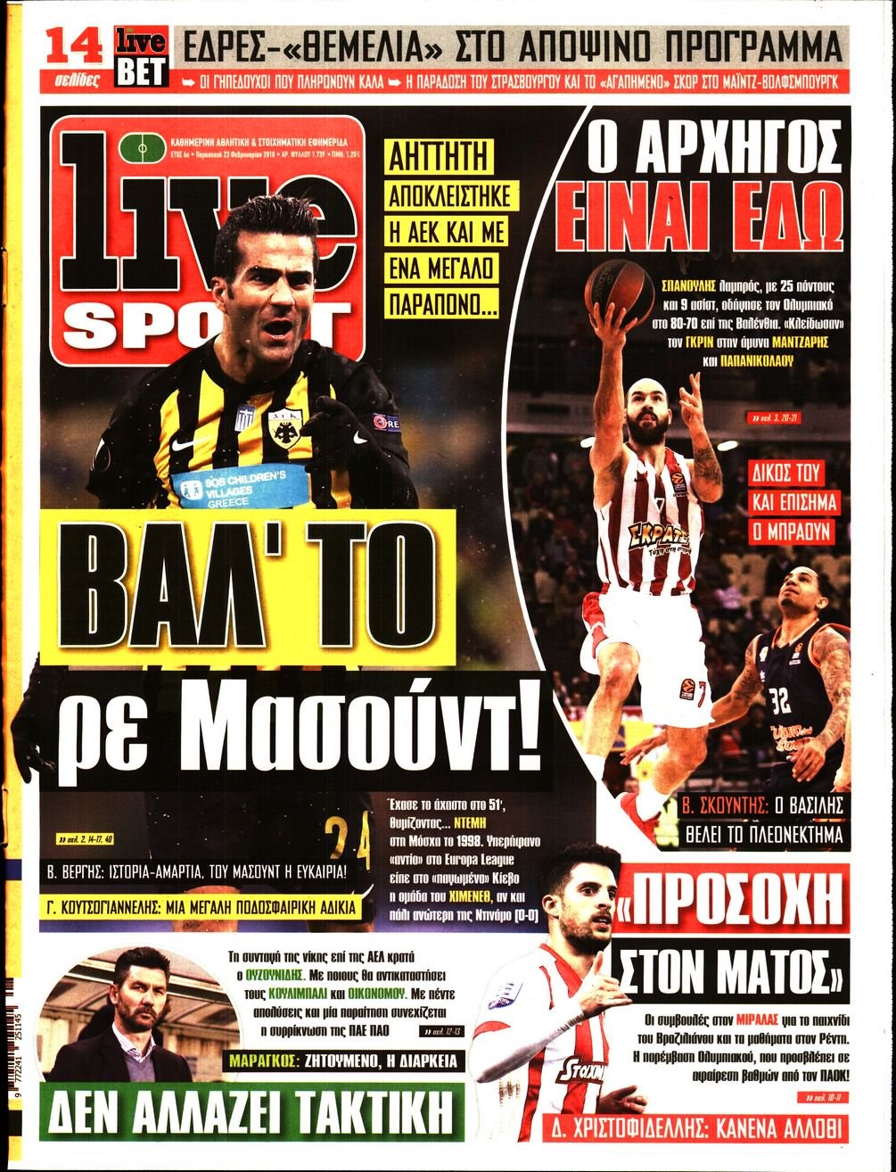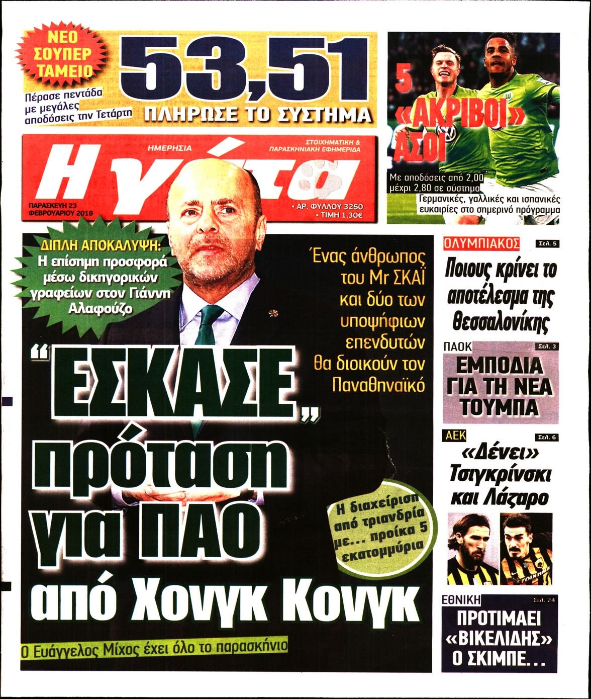 Οι αθλητικές εφημερίδες 23/2/2018 Enikos Newsroom 07:25, Παρασκευή 23 Φεβρουαρίου 2018 Media Διαβάστε τα σημερινά πρωτοσέλιδα των αθλητικών εφημερίδων: ΑΘΛΗΤΙΚΕΣ ΕΦΗΜΕΡΙΔΕΣ ΠΡΩΤΟΣΕΛΙΔΑ Μοιράσου το: σχολίασε κι εσύ (0 σχόλια) Ακολουθήστε το enikos.gr στο Google News και μάθετε πρώτοι όλες τις ειδήσεις Δείτε όλες τις τελευταίες ειδήσεις από την Ελλάδα και τον Κόσμο στο enikos.gr Ειδήσεις Ροή Ειδήσεων 4 ώρες πριν Από το Ορμένιο ως τα Μάλγαρα κι από τη Σιάτιστα μέχρι τη Νίκαια: Μπλόκα σε όλη την Ελλάδα – Το Σάββατο ανοίγουν τα διόδια οι αγρότες 1 ώρα πριν Εμπλοκή και αερομαχίες με οπλισμένα τουρκικά F-16 στο Αιγαίο 3 ώρες πριν Αττική: Θρίλερ με νεκρό βρέφος 5 μηνών – Κοιμόταν στο ίδιο κρεβάτι με τους γονείς του 1 ώρα πριν Πούτιν: «Ναι, είμαι ερωτευμένος» – Βίντεο από τη σπάνια προσωπική παραδοχή του 3 ώρες πριν Μεσόγειος: Η διαδρομή του ρωσικού τάνκερ «Qendil» και η στοχευμένη επίθεση της Ουκρανίας με drone – Ο Πούτιν προειδοποίησε για αντίποινα 5 ώρες πριν Τα 5 ζώδια που ευνοούνται στην ερωτική ζωή τους την επόμενη εβδομάδα – «Η ενέργεια του Αιγόκερου φέρνει αγάπη και σταθερότητα» 6 ώρες πριν Αυτό το έξυπνο μαθηματικό κόλπο θα μπορούσε να αλλάξει τον τρόπο με τον οποίο οι επιστήμονες μελετούν τους σεισμούς 2 ώρες πριν Μήπως έχετε χάσει τον εαυτό σας στη σχέση σας; 7 «αθόρυβες» υποχωρήσεις που μάλλον κάνατε, χωρίς να το συνειδητοποιήσετε 4 ώρες πριν Κουίζ για την παλιά Αθήνα: Αναγνωρίζετε την περιοχή; Έχετε περάσει 100% από εκεί 7 λεπτά πριν Μπαράκ Ομπάμα: Τα βιβλία, οι ταινίες και τα τραγούδια που ξεχώρισε το 2025 – Πλήρης λίστα 12 λεπτά πριν Don’t Forget The Lyrics: Η Έλλη Κοκκίνου υποδέχεται 4 παίκτες που θα κάνουν τα πάντα για να μη χάσουν ούτε… μισή λέξη από τους στίχους 18 λεπτά πριν Πλεύρης στον ΑΝΤ1: Η βασική πολιτική που ψηφίστηκε από τους υπουργούς Μετανάστευσης είναι η δημιουργία κέντρων κράτησης μεταναστών στην Αφρική – ΒΙΝΤΕΟ 23 λεπτά πριν Η εξομολόγηση της Νίκης Σερέτη: «Δεν κρύβω ότι ήταν πάρα πολύ δύσκολο όλο αυτό που βίωσα» 28 λεπτά πριν Αγρότες: Κλειστό ξανά το ρεύμα εισόδου στα Μάλγαρα – Άνοιξαν τον κόμβο της Χαλκηδόνας ENIKOS NETWORK Έχετε πραγματικά μεγάλη καρδιά; 10 χαρακτηριστικά όσων έχουν καλοσύνη «Η σούπερ» γρίπη εξαπλώνεται στην Ευρώπη-Στοιχεία από το ECDC για την αποτελεσματικότητα του εμβολίου Επίδομα παιδιού: Πότε ανοίγει ξανά η πλατφόρμα για τις αιτήσεις Προκήρυξη ΑΣΕΠ για 397 μόνιμες προσλήψεις στο Δημόσιο: Βγήκαν τα προσωρινά αποτελέσματα – Πότε αρχίζει η υποβολή ενστάσεων Χαρτογραφώντας το «σημείο χωρίς επιστροφή»: Για πρώτη φορά αποκαλύπτεται με λεπτομέρεια το ακανθώδες όριο της ατμόσφαιρας τ... Η Google καταργεί τη λειτουργία «dark web report» – Πώς θα μπορούν οι χρήστες να διαγράφουν τα δεδομένα τους περισσότερα 20:37 , Παρασκευή 19 Δεκεμβρίου 2025 Don’t Forget The Lyrics: Η Έλλη Κοκκίνου υποδέχεται 4 παίκτες που θα κάνουν τα πάντα για να μη χάσουν ούτε… μισή λέξη από τους στίχους Το «Don’t Forget The Lyrics» επιστρέφει απόψε, Παρασκευή 19 Δεκεμβρίου, στις 21:00 με νέο επει... 19:31 , Παρασκευή 19 Δεκεμβρίου 2025 GNTM: Απόψε ο μεγάλος τελικός για τους 4 φιναλίστ Έπειτα από μήνες γεμάτους μόδα, δημιουργία και έντονες αναμετρήσεις, το GNTM 2025 κορυφώνεται,... 18:11 , Παρασκευή 19 Δεκεμβρίου 2025 Το σόι σου: Ο Άρης έρχεται στην Ελλάδα για τις γιορτές των Χριστουγέννων – Τι θα δούμε στο αποψινό εορταστικό επεισόδιο Ένα απολαυστικό, εορταστικό επεισόδιο της σειράς “Το σόι σου”, γεμάτο ευτράπελα αλ... 15:15 , Παρασκευή 19 Δεκεμβρίου 2025 Την Κυ
