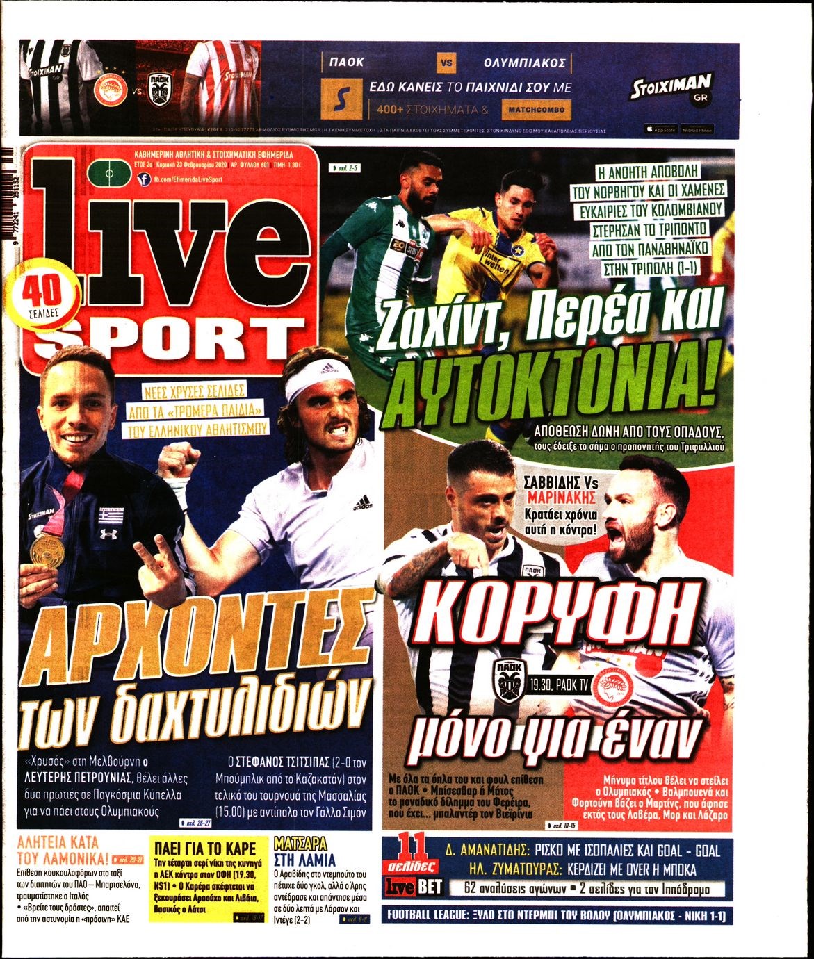 Οι αθλητικές εφημερίδες 23/2/2020 Διονύσης Νίκκας 07:56, Κυριακή 23 Φεβρουαρίου 2020 Media Διαβάστε τα πρωτοσέλιδα των αθλητικών εφημερίδων… ΑΘΛΗΤΙΚΕΣ ΕΦΗΜΕΡΙΔΕΣ ΠΡΩΤΟΣΕΛΙΔΑ Μοιράσου το: σχολίασε κι εσύ (0 σχόλια) Ακολουθήστε το enikos.gr στο Google News και μάθετε πρώτοι όλες τις ειδήσεις Δείτε όλες τις τελευταίες ειδήσεις από την Ελλάδα και τον Κόσμο στο enikos.gr Ειδήσεις Ροή Ειδήσεων 2 ώρες πριν Γιορτές με μπλόκα για τους αγρότες: Ανοίγουν διόδια και μοιράζουν προϊόντα στους ταξιδιώτες 7 λεπτά πριν Τσιάρας για αγρότες: Ικανοποιείται το αίτημα για αφορολόγητο πετρέλαιο στη μάνικα, πρόθεσή μας να μειωθεί ακόμη περισσότερο η τιμή στο ρεύμα 21 λεπτά πριν Αρχεία Έπσταϊν: Οι συγκλονιστικές φωτογραφίες – Ο Μάικλ Τζάκσον, ο Μικ Τζάγκερ και ο Κέβιν Σπέισι ανάμεσα στους διάσημους που απεικονίζονται 2 ώρες πριν Νέες ταυτότητες: Μεγάλη αναμονή για ραντεβού στην Αττική – Τέλος τα ταξίδια εκτός Ελλάδος από τον Αύγουστο για όσους δεν έχουν αλλάξει 53 λεπτά πριν Ινδία: Επτά ελέφαντες σκοτώθηκαν κατά τη σύγκρουση επιβατικού τρένου με κοπάδι 3 ώρες πριν Μία νέα «χρυσή» περίοδος αρχίζει για 3 ζώδια από σήμερα – «Μία αναπάντεχη ευκαιρία οδηγεί στην επιτυχία» 5 ώρες πριν Αρχαιολόγοι ανακάλυψαν σε χωράφι απεικόνιση 600 ετών ενός Αγίου – Τα στοιχεία που δείχνουν ότι μαρτύρησε 4 ώρες πριν Αγχώνεται για το χριστουγεννιάτικο δώρο που πήρε στην πλούσια σύντροφό του – «Φοβάμαι πως θα το βρει φθηνιάρικο, φοράει βραχιόλια Cartier» 50 λεπτά πριν Διαιτολόγος αποκαλύπτει 9 πρωινές συνήθειες που «λιώνουν» το κοιλιακό λίπος – «Υποστηρίζουν την υγιεινή απώλεια βάρους» 7 λεπτά πριν Τσιάρας για αγρότες: Ικανοποιείται το αίτημα για αφορολόγητο πετρέλαιο στη μάνικα, πρόθεσή μας να μειωθεί ακόμη περισσότερο η τιμή στο ρεύμα 13 λεπτά πριν Η Ζιζέλ Μπούντχεν παντρεύτηκε τον δάσκαλο ζίου-ζίτσου, Χοακίμ Βαλέντε 21 λεπτά πριν Αρχεία Έπσταϊν: Οι συγκλονιστικές φωτογραφίες – Ο Μάικλ Τζάκσον, ο Μικ Τζάγκερ και ο Κέβιν Σπέισι ανάμεσα στους διάσημους που απεικονίζονται 30 λεπτά πριν Χρήστος Μάντακας: «Θα μπορούσα να είχα φύγει από τη ζωή, δεν μπορούσα να περπατήσω…» 37 λεπτά πριν Εντυπωσιακό βίντεο από «τσουνάμι» πάγου στη Σιβηρία – Πώς προκαλείται το σπάνιο φαινόμενο ENIKOS NETWORK Είστε μόνιμα απρόσεκτοι; 3 σημάδια που δείχνουν ότι μπορεί να είναι σύμπτωμα πάθησης Πόσα κιλά παίρνουμε πραγματικά τα Χριστούγεννα, σύμφωνα με την επιστήμη – Πώς να το αποτρέψουμε; Χρήστος Δήμας: Στα 2,5 εκατ. ευρώ την ημέρα το κόστος από το άνοιγμα των διοδίων από τους αγρότες – Θα αξιώσουν αποζημίωση ... Χριστούγεννα και Πρωτοχρονιά: Πώς αμείβονται όσοι εργαστούν Χαρτογραφώντας το «σημείο χωρίς επιστροφή»: Για πρώτη φορά αποκαλύπτεται με λεπτομέρεια το ακανθώδες όριο της ατμόσφαιρας τ... Η Google καταργεί τη λειτουργία «dark web report» – Πώς θα μπορούν οι χρήστες να διαγράφουν τα δεδομένα τους περισσότερα 11:41 , Σάββατο 20 Δεκεμβρίου 2025 «Η αγάπη δεν χάνεται ποτέ»: Η μικρού μήκους ταινία κινουμένων σχεδίων που θέτει ερωτήματα για τη ζωή και τον θάνατο Ο θάνατος είναι ένα από τα πιο σκληρά θέματα που καλείται να διαχειριστεί κάποιος στη διάρκεια... 09:30 , Σάββατο 20 Δεκεμβρίου 2025 «Porto Leone: Στη γειτονιά με τα κόκκινα φανάρια» – Ο Χρόνης αποκαλύπτει στην Αλεξάνδρα το μυστικό για το παιδί της Λένας Η μεγάλη δραματική σειρά του Apha «Porto Leone: Στη γειτονιά με τα κόκκινα φανάρια» μας μεταφέ... 08:14 , Σάββατο 20 Δεκεμβρίου 2025 Τρομεροί γονείς: Η Μαρία Καβογιάννη εισ