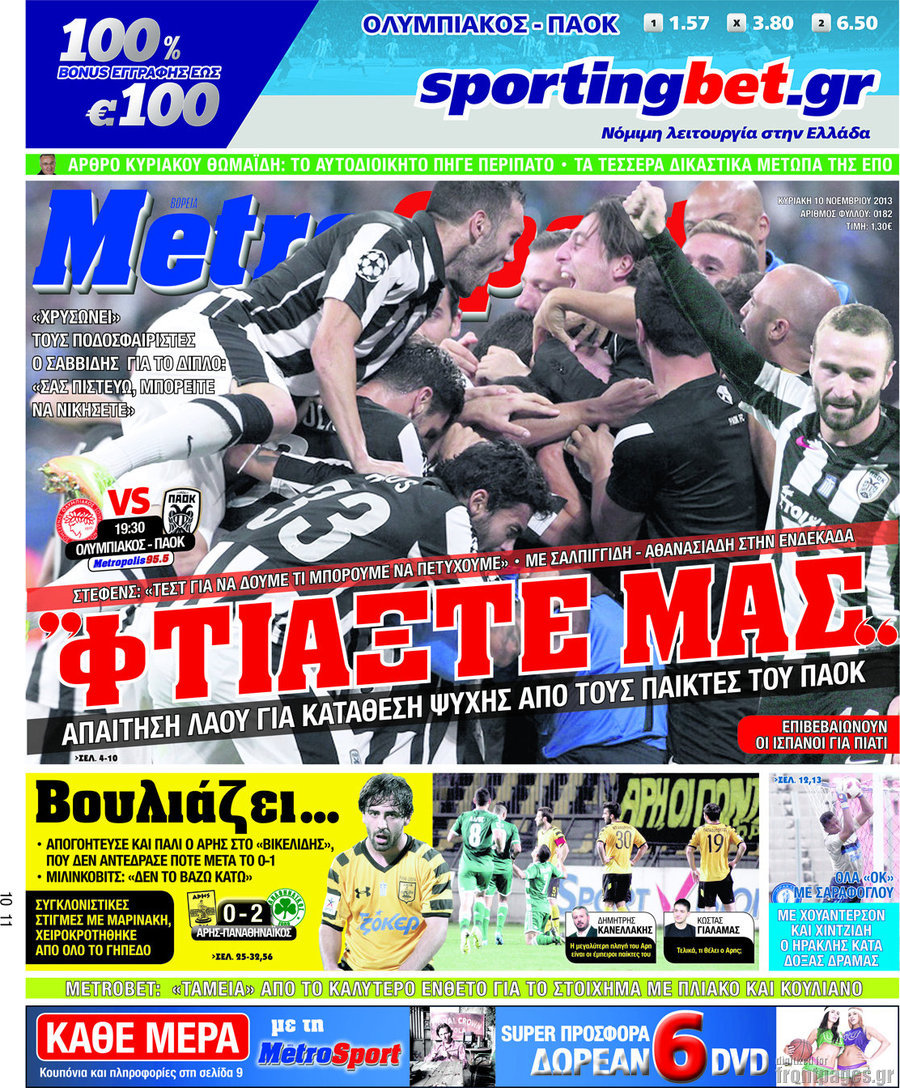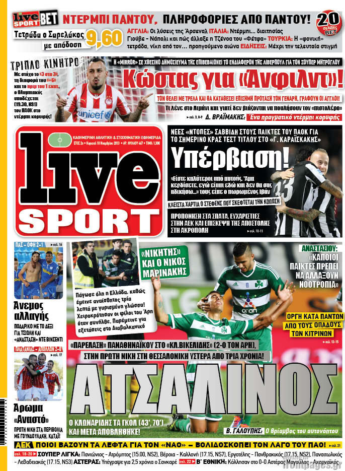 Οι αθλητικές εφημερίδες Enikos Newsroom 08:25, Κυριακή 10 Νοεμβρίου 2013 Media Οι αθλητικές εφημερίδες Διαβάστε τα πρωτοσέλιδα των αθλητικών εφημερίδων: ΑΘΛΗΤΙΚΕΣ ΕΦΗΜΕΡΙΔΕΣ ΕΦΗΜΕΡΙΔΕΣ ΠΡΩΤΟΣΕΛΙΔΑ Μοιράσου το: σχολίασε κι εσύ (0 σχόλια) Ακολουθήστε το enikos.gr στο Google News και μάθετε πρώτοι όλες τις ειδήσεις Δείτε όλες τις τελευταίες ειδήσεις από την Ελλάδα και τον Κόσμο στο enikos.gr Ειδήσεις Ροή Ειδήσεων 3 ώρες πριν Ακίλα Σάλεχ: «Άκυρο» το τουρκολιβυκό μνημόνιο λέει ο πρόεδρος της λιβυκής Βουλής – Ανοίγει ο διάλογος με Ελλάδα, Αίγυπτο και Τουρκία 7 ώρες πριν Αγρότες: Την Τρίτη η απόφαση για διάλογο ή κλιμάκωση των κινητοποιήσεών τους – Πώς χαρακτηρίζουν τις ανακοινώσεις Τσιάρα και οι επόμενες κινήσεις 7 ώρες πριν Τραμπ για Ουκρανία: «Είμαστε πιο κοντά σε συμφωνία από ποτέ» – «Πολυεθνική δύναμη» προτείνουν οι Ευρωπαίοι 7 ώρες πριν Κυψέλη: Η 16χρονη που μαχαίρωσε την 14χρονη είχε συλληφθεί 3 φορές στο παρελθόν – Έβριζε καθηγητές, έβαζε φωτιές σε κάδους και εκβίαζε συμμαθητές της 6 ώρες πριν Τρομοκρατική επίθεση στο Σίδνεϊ: Θλίψη για τα 15 θύματα – Οργή στην εβραϊκή κοινότητα που προειδοποιούσε επί δύο χρόνια 7 ώρες πριν Επιστήμονες ίσως έλυσαν το μυστήριο γύρω από τα Χόμπιτ – Νέα έρευνα αποκαλύπτει πώς εξαφανίστηκαν 8 ώρες πριν Ύπνος: Η αρχαία μορφή άσκησης που αποδεικνύεται αποτελεσματική στην αντιμετώπιση της αϋπνίας, σύμφωνα με μελέτη 9 ώρες πριν Αριθμολογία: Ο τυχερός σας αριθμός, ανάλογα με τον μήνα γέννησής σας 10 ώρες πριν Πώς να μην μαραίνονται γρήγορα τα κομμένα λουλούδια: Το λάθος στην τοποθέτηση του βάζου που πρέπει να αποφεύγετε 4 λεπτά πριν Οι αθλητικές εφημερίδες 16/12/2025 9 λεπτά πριν Οι πολιτικές εφημερίδες 16/12/2025 17 λεπτά πριν Τα ζώδια σήμερα, Τρίτη 16 Δεκεμβρίου: Ιχθύες, δεν χρειάζεται να έχετε όλες τις απαντήσεις 25 λεπτά πριν Εφημερεύοντα φαρμακεία σε Αθήνα και Θεσσαλονίκη (16/12) 32 λεπτά πριν Οκτώ νεκροί σε πλήγματα των ΗΠΑ κατά τριών σκαφών που φέρεται να μετέφεραν ναρκωτικά στον Ανατολικό Ειρηνικό ENIKOS NETWORK Πότε το χρόνιο ροχαλητό να αποτελέσει ένδειξη κινδύνου για την καρδιά; Τι λένε οι ειδικοί Μάριος Θεμιστοκλέους: Το ΕΣΥ ενισχύεται, εκσυγχρονίζεται, αλλάζει ΕΒΕΠ για αγροτικές κινητοποιήσεις: Κάθε επιπλέον εβδομάδα προσθέτει περίπου 200 εκατ. ευρώ ζημιά Τι προβλέπει το νομοσχέδιο του υπουργείου Εθνικής Άμυνας – Oι αλλαγές στους μισθούς Σύγχρονος Νοστράδαμος: Προειδοποιεί για «μεγάλο γεγονός» τους επόμενους μήνες που θα συγκλονίσει τη Βρετανία και τον κόσμο Τεστ παρατηρητικότητας: Μπορείτε να βρείτε τις 3 διαφορές στις εικόνες με έναν πιγκουίνο σε 14 δευτερόλεπτα περισσότερα 05:43 , Τρίτη 16 Δεκεμβρίου 2025 Οι αθλητικές εφημερίδες 16/12/2025 Διαβάστε τα πρωτοσέλιδα από τις αθλητικές εφημερίδες, σήμερα 16/12/2025. 05:38 , Τρίτη 16 Δεκεμβρίου 2025 Οι πολιτικές εφημερίδες 16/12/2025 Διαβάστε τα πρωτοσέλιδα από τις πολιτικές εφημερίδες, σήμερα 16/12/2025. 21:35 , Δευτέρα 15 Δεκεμβρίου 2025 Το Σπίτι Δίπλα Στο Ποτάμι: Η Ιουλία και ο Φωκάς μετακομίζουν στη Ρόδο – Δύο νέοι χαρακτήρες μπαίνουν στη σειρά Δύο νέοι, κομβικοί χαρακτήρες κάνουν την εμφάνισή τους αυτή την εβδομάδα στην αγαπημένη σειρά ... 19:46 , Δευτέρα 15 Δεκεμβρίου 2025 Άγιος έρωτας: Η Χριστίνα λέει την αλήθεια στον Αντρέα Ο Βασίλης δέχεται επίθεση από τους συμμαθητές του, η Αναστασία είναι συντετριμμένη με την απώλ... ΤΕΛΕΥΤΑΙΕΣ ΕΙΔΗΣΕΙΣ 4 λεπτά πριν Οι αθλητικές εφημερίδες 16/12/2025 9 λεπτά πριν Οι πολιτικές εφημερίδες 16/12/2025 17 λεπτά πρ