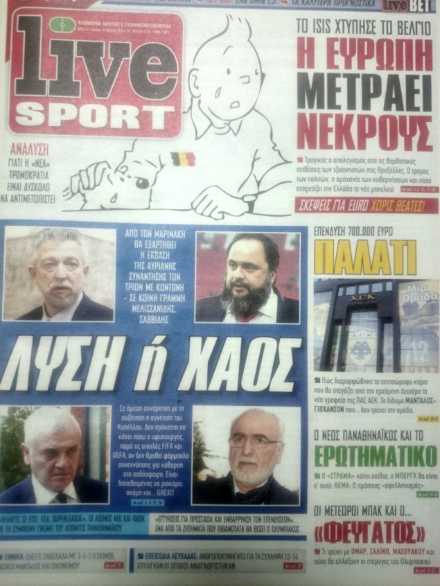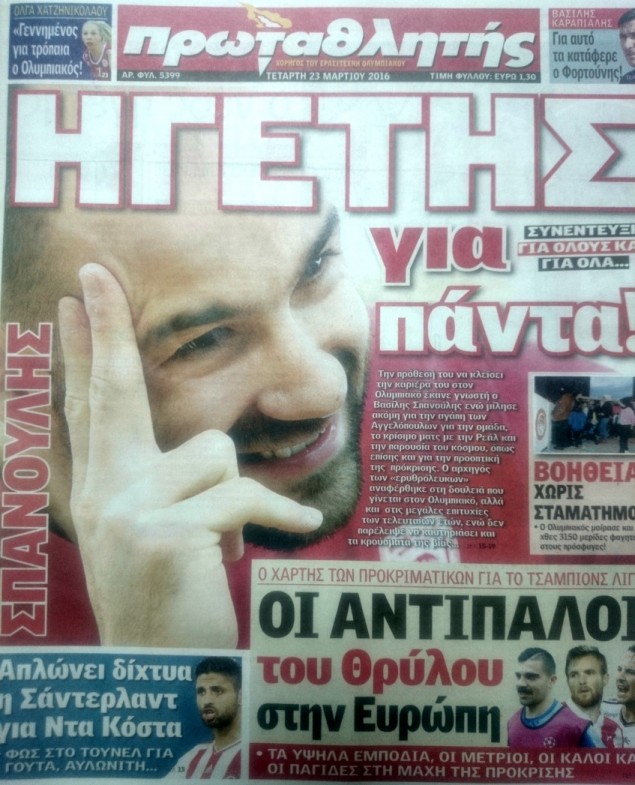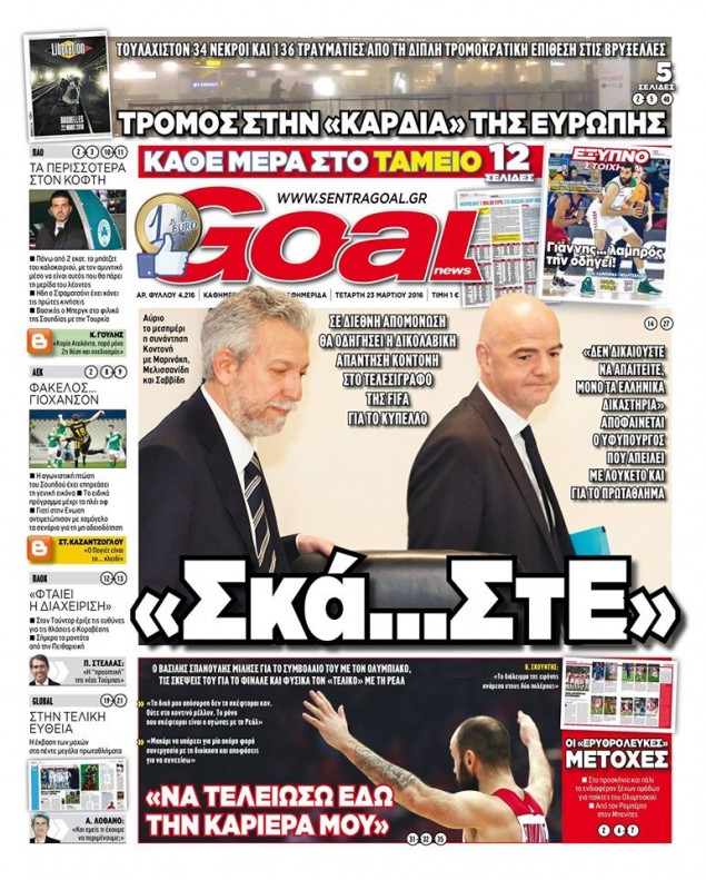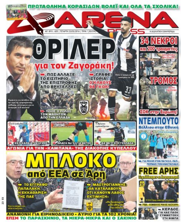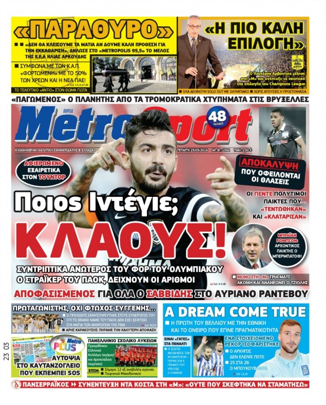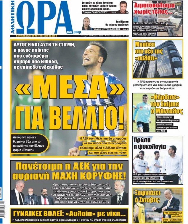 Oι αθλητικές εφημερίδες 23/3/2016 Enikos Newsroom 05:58, Τετάρτη 23 Μαρτίου 2016 Media Διαβάστε τα σημερινά πρωτοσέλιδα των αθλητικών εφημερίδων: ΑΘΛΗΤΙΚΕΣ ΕΦΗΜΕΡΙΔΕΣ ΠΡΩΤΟΣΕΛΙΔΑ Μοιράσου το: σχολίασε κι εσύ (0 σχόλια) Ακολουθήστε το enikos.gr στο Google News και μάθετε πρώτοι όλες τις ειδήσεις Δείτε όλες τις τελευταίες ειδήσεις από την Ελλάδα και τον Κόσμο στο enikos.gr Ειδήσεις Ροή Ειδήσεων 4 ώρες πριν Αγρότες: «Όχι στον διάλογο, μας εμπαίζει η κυβέρνηση» – Αποφάσισαν κλιμάκωση των κινητοποιήσεων, τι θα γίνει τα Χριστούγεννα 49 λεπτά πριν Αθήνα: Εξαρθρώθηκε εγκληματική οργάνωση που διακινούσε ναρκωτικά σε μορφή σοκολάτας – Δύο τράπερ ανάμεσα στους 4 συλληφθέντες – ΒΙΝΤΕΟ 58 λεπτά πριν Στη φυλακή ο «Έλληνας Εσκομπάρ» και τρεις συνεργοί του για το φορτίο με την κοκαΐνη – Τι υποστήριξε στην απολογία του 2 ώρες πριν Γιώργος Μαζωνάκης: «Έχει υποστεί ένα σωρό εκβιαστικές πρακτικές – Του είπαν ότι θα του βάλουν τον συγκεκριμένο άνθρωπο να τον καταγγείλει» 35 λεπτά πριν Γεωργιάδης για Κωνσταντοπούλου: «Έχει καταφέρει να ξεπεράσει ακόμη και τον εαυτό της – Το ερώτημα είναι “γιατί τώρα;”» 5 ώρες πριν Τα 5 ζώδια που θα ευνοηθούν στα οικονομικά τους το 2026 – «Τραβούν το χρήμα σαν μαγνήτες» 2 ώρες πριν Γάμος: 11 ψυχρές αλλά ευγενικές φράσεις, που λέει ένας άνδρας όταν σκέφτεται τον χωρισμό 44 λεπτά πριν Σφουγγάρισμα: Η συνήθεια που θα σας βοηθήσει να διατηρήσετε το σπίτι σας καθαρό και τακτοποιημένο 1 ημέρα πριν 20 χρόνια τα Χριστούγεννα ξεκινούν στα Public με μεγάλη ποικιλία σε δώρα! 4 λεπτά πριν ΗΠΑ: Νέες φωτογραφίες από τον φάκελο Επστάιν έδωσαν στην δημοσιότητα οι Δημοκρατικοί 10 λεπτά πριν ΕΦΕΤ: Συμβουλές για ασφαλή κατανάλωση τροφίμων κατά την εορταστική περίοδο των Χριστουγέννων 18 λεπτά πριν Φάμελλος: Η κινητοποίηση των αγροτών είναι για το συμφέρον όλων των κοινωνικών ομάδων – Πρέπει να φύγετε το συντομότερο 23 λεπτά πριν Primeira Liga: 8ος πιο ακριβός παίκτης στην Πορτογαλία ο Παυλίδης με αξία 35 εκατ. ευρώ – 27ος ο Ιωαννίδης, 45ος ο Βαγιαννίδης 28 λεπτά πριν Λένα Μαντά: «Με τον πατέρα μου δεν έχω ούτε μία καλή ανάμνηση» ENIKOS NETWORK Σκέφτεστε συνέχεια συζητήσεις που έχετε κάνει; Τι σημαίνει αυτό, σύμφωνα με ειδικό Ξεκίνησε η «επέλαση» της γρίπης στην Ελλάδα-Ποιοι κινδυνεύουν Servicers: Μικρή μείωση στα κόκκινα δάνεια που διαχειρίζονται – Αναλυτικά τα στοιχεία ΑΑΔΕ: “Αλλάζει πρόσωπο” το Φορολογικό Μητρώο για πολίτες και επιχειρήσεις – Όλες οι λεπτομέρειες Χαρτογραφώντας το «σημείο χωρίς επιστροφή»: Για πρώτη φορά αποκαλύπτεται με λεπτομέρεια το ακανθώδες όριο της ατμόσφαιρας τ... Η Google καταργεί τη λειτουργία «dark web report» – Πώς θα μπορούν οι χρήστες να διαγράφουν τα δεδομένα τους περισσότερα 17:45 , Πέμπτη 18 Δεκεμβρίου 2025 ROUK ZOUK: Εορταστικό επεισόδιο με καλεσμένους τους πρωταγωνιστές του «Γιατί ρε πατέρα» Το Σάββατο 20 Δεκεμβρίου στις 21:00, η Ζέτα Μακρυπούλια υποδέχεται εκλεκτούς ηθοποιούς που όλο... 17:20 , Πέμπτη 18 Δεκεμβρίου 2025 Άγιος έρωτας: Η Χριστίνα εξομολογείται στον πατέρα Νικόλαο, απόψε στις 21:00 στον Alpha Η Νότα αποφασίζει να εκδικηθεί τον Πέτρο και τον Στέφανο, για χάρη του Λούη, όμως τα πράγματα ... 16:50 , Πέμπτη 18 Δεκεμβρίου 2025 Να μ’ αγαπάς: Ζωή και Φωτεινή συμφιλιώνονται ως μάνα με κόρη, απόψε στις 20:00 Η ταυτότητα του Άγγελου αποκαλύπτεται στο νέο επεισόδιο της σειράς “Να μ’ αγαπάς... 15:52 , Πέμπτη 18 Δεκεμβρίου 2025 Το Σπίτι Δίπλα Στο Ποτάμι: Το καθηλωτικό τελευταίο επεισόδιο για το 2025 απόψε στις 22:30 Καθ