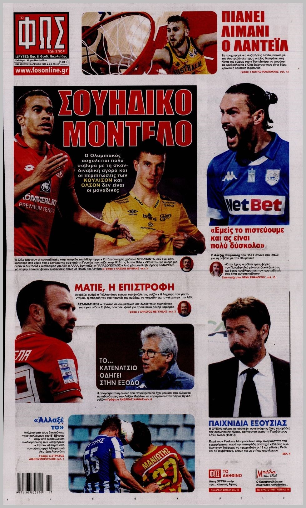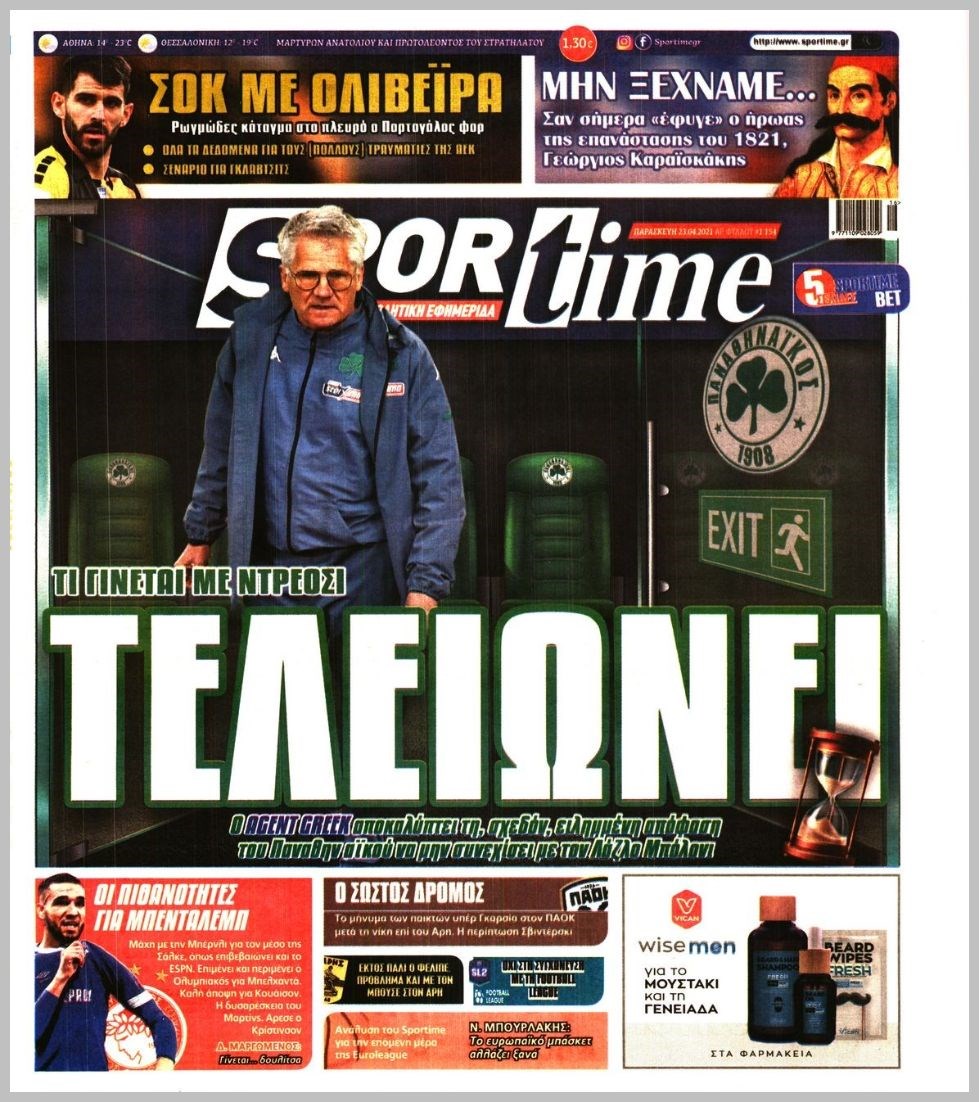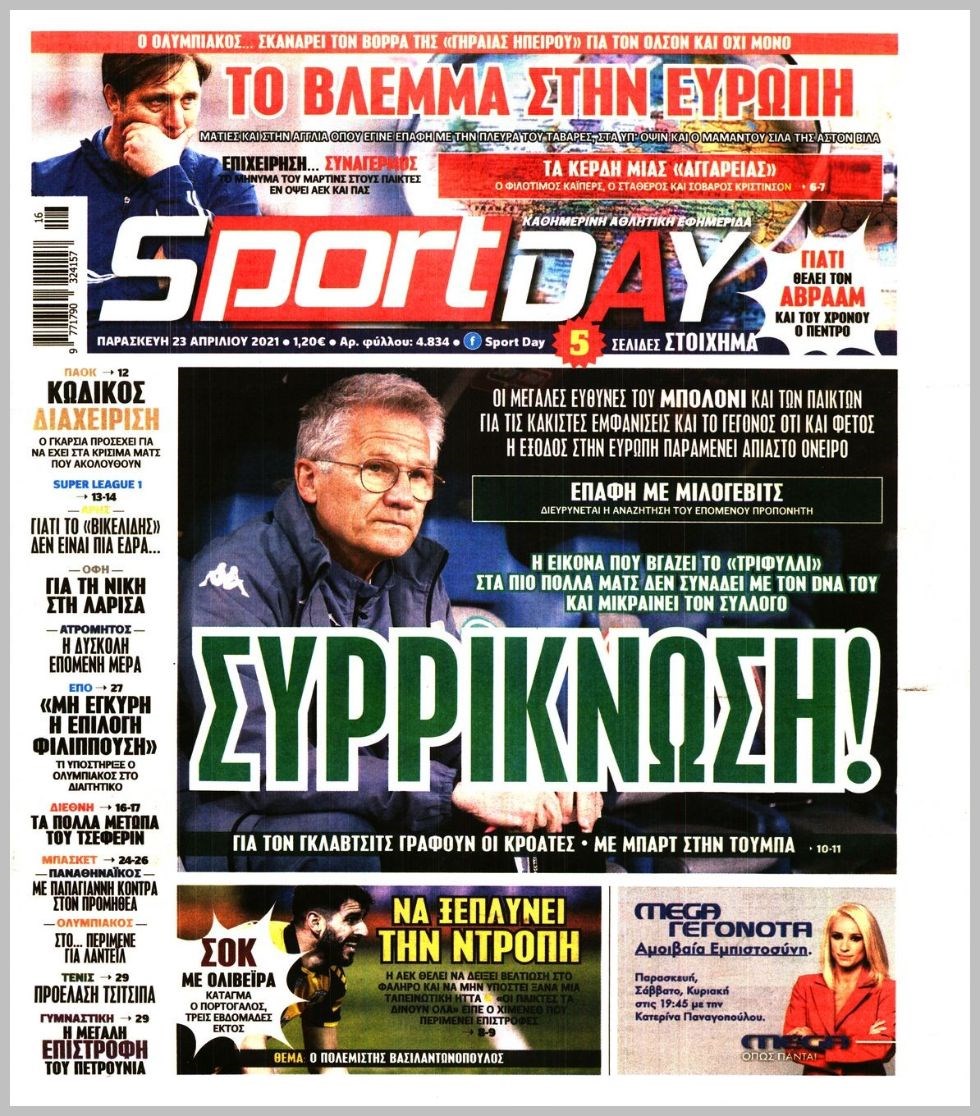 Οι αθλητικές εφημερίδες 23/4/2021 Διονύσης Νίκκας 06:50, Παρασκευή 23 Απριλίου 2021 Media Διαβάστε τα πρωτοσέλιδα των αθλητικών εφημερίδων… ΑΘΛΗΤΙΚΕΣ ΕΦΗΜΕΡΙΔΕΣ Μοιράσου το: σχολίασε κι εσύ (0 σχόλια) Ακολουθήστε το enikos.gr στο Google News και μάθετε πρώτοι όλες τις ειδήσεις Δείτε όλες τις τελευταίες ειδήσεις από την Ελλάδα και τον Κόσμο στο enikos.gr Ειδήσεις Ροή Ειδήσεων 4 ώρες πριν Χριστούγεννα στα μπλόκα: Επιμένουν στις κινητοποιήσεις τους οι αγρότες – Ανοίγουν τα διόδια το Σαββατοκύριακο 5 ώρες πριν Ουκρανία: Η άνευ προηγουμένου επίθεση σε ρωσικό τάνκερ στη Μεσόγειο και το μήνυμα προς στον Πούτιν – Το «μακρύ χέρι» του Κιέβου 4 ώρες πριν Πούτιν: Τα μηνύματα σε Ευρώπη και ΝΑΤΟ από το μαραθώνιο «σόου» του – Η απαίτηση για «σεβασμό» και η ειρήνη «με τους όρους» της Μόσχας 5 ώρες πριν Τραμπ: Δεν αποκλείει την πιθανότητα ενός πολέμου στη Βενεζουέλα – «Ο Μαδούρο ξέρει καλύτερα από τον καθένα τι ακριβώς θέλω» 5 ώρες πριν Συνεχίζει να προκαλεί ο Μίτσκοσκι: «Για μένα το όνομα Μακεδονία είναι ιερό» 4 ώρες πριν Ανακαλύφθηκαν αρχαία χρυσά νομίσματα 2.200 ετών που απεικονίζουν τον θεό Απόλλωνα – Η άγνωστη σύνδεση με τον Φίλιππο Β΄ της Μακεδονίας 5 ώρες πριν Ύπνος: Μια κρυφή κατάσταση του εγκεφάλου πριν από τον ύπνο μπορεί να είναι το “κλειδί” για υψηλή ευφυΐα και δημιουργικότητα 6 ώρες πριν Αριθμολογία: Οι άνθρωποι που έχουν γεννηθεί αυτές τις 4 ημερομηνίες, συχνά παρεξηγούνται – «Η καλοσύνη τους κρύβει τεράστια δύναμη» 7 ώρες πριν Ξεχάστε το καθάρισμα το Σαββατοκύριακο: Ο «κανόνας των 20 λεπτών» που θα σας λύσει τα χέρια 15 λεπτά πριν Θεσσαλονίκη: Εξαφανίστηκε 13χρονος από χώρο φιλοξενίας ασυνόδευτων ανηλίκων στο Ωραιόκαστρο 25 λεπτά πριν Ντόναλντ Τραμπ: «Πολύ βαριά αντίποινα» στη Συρία – «Πλήττουμε πολύ δυνατά οχυρά του Ισλαμικού Κράτους» 40 λεπτά πριν Εξάρχεια: Ένταση με μολότοφ, χημικά και κρότου λάμψης 55 λεπτά πριν ΗΠΑ: Τραγωδία στην Αλαμπάμα – Σκότωσε την δημοσιογράφο σύζυγό του και αυτοκτόνησε μπροστά στον 3χρονο γιο τους 1 ώρα πριν Πρόταση γάμου στο ΣΕΦ κατά την διάρκεια του αγώνα Ολυμπιακός-Βιλερμπάν – Δείτε βίντεο ENIKOS NETWORK Το ΕΚΑΒ τιμήθηκε από την Ακαδημία Αθηνών για τα 40 χρόνια προσφοράς του Έχετε πραγματικά μεγάλη καρδιά; 10 χαρακτηριστικά όσων έχουν καλοσύνη Αναστολή μέτρων αναγκαστικής εκτέλεσης για κτηνοτρόφους που πλήττονται από την ευλογιά των αιγοπροβάτων Πλήρης επάρκεια προϊόντων στις λαϊκές της Αττικής, παρά τις αγροτικές κινητοποιήσεις – Τι απαντούν οι πωλητές Χαρτογραφώντας το «σημείο χωρίς επιστροφή»: Για πρώτη φορά αποκαλύπτεται με λεπτομέρεια το ακανθώδες όριο της ατμόσφαιρας τ... Η Google καταργεί τη λειτουργία «dark web report» – Πώς θα μπορούν οι χρήστες να διαγράφουν τα δεδομένα τους περισσότερα 22:42 , Παρασκευή 19 Δεκεμβρίου 2025 Γιώργος Γιαννόπουλος για “Το σόι σου”: “Είναι ευτυχία και ευλογία αυτή η σειρά” «Είναι ευτυχία και ευλογία η συγκυρία αυτής της σειράς», θα πει ο Γιώργος Γιαννόπουλος -ο αγαπ... 20:37 , Παρασκευή 19 Δεκεμβρίου 2025 Don’t Forget The Lyrics: Η Έλλη Κοκκίνου υποδέχεται 4 παίκτες που θα κάνουν τα πάντα για να μη χάσουν ούτε… μισή λέξη από τους στίχους Το «Don’t Forget The Lyrics» επιστρέφει απόψε, Παρασκευή 19 Δεκεμβρίου, στις 21:00 με νέο επει... 19:31 , Παρασκευή 19 Δεκεμβρίου 2025 GNTM: Απόψε ο μεγάλος τελικός για τους 4 φιναλίστ Έπειτα από μήνες γεμάτους μόδα, δημιουργία και έντονες αναμετρήσεις, το GNTM 2025 κορυφώνεται,... 18:11 , Παρασκευή 19 Δεκεμβρίου 2025 Το σόι σου: Ο 