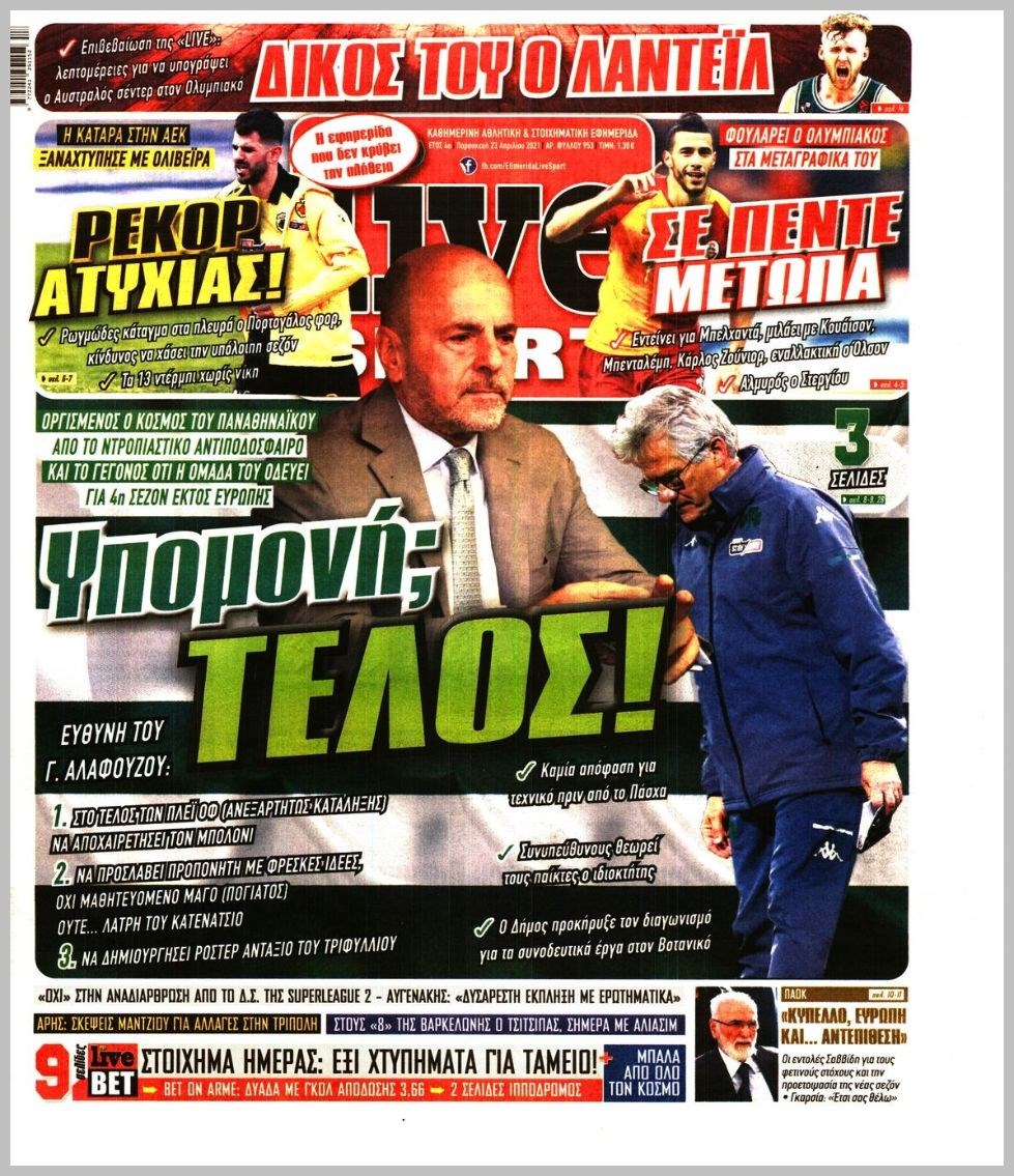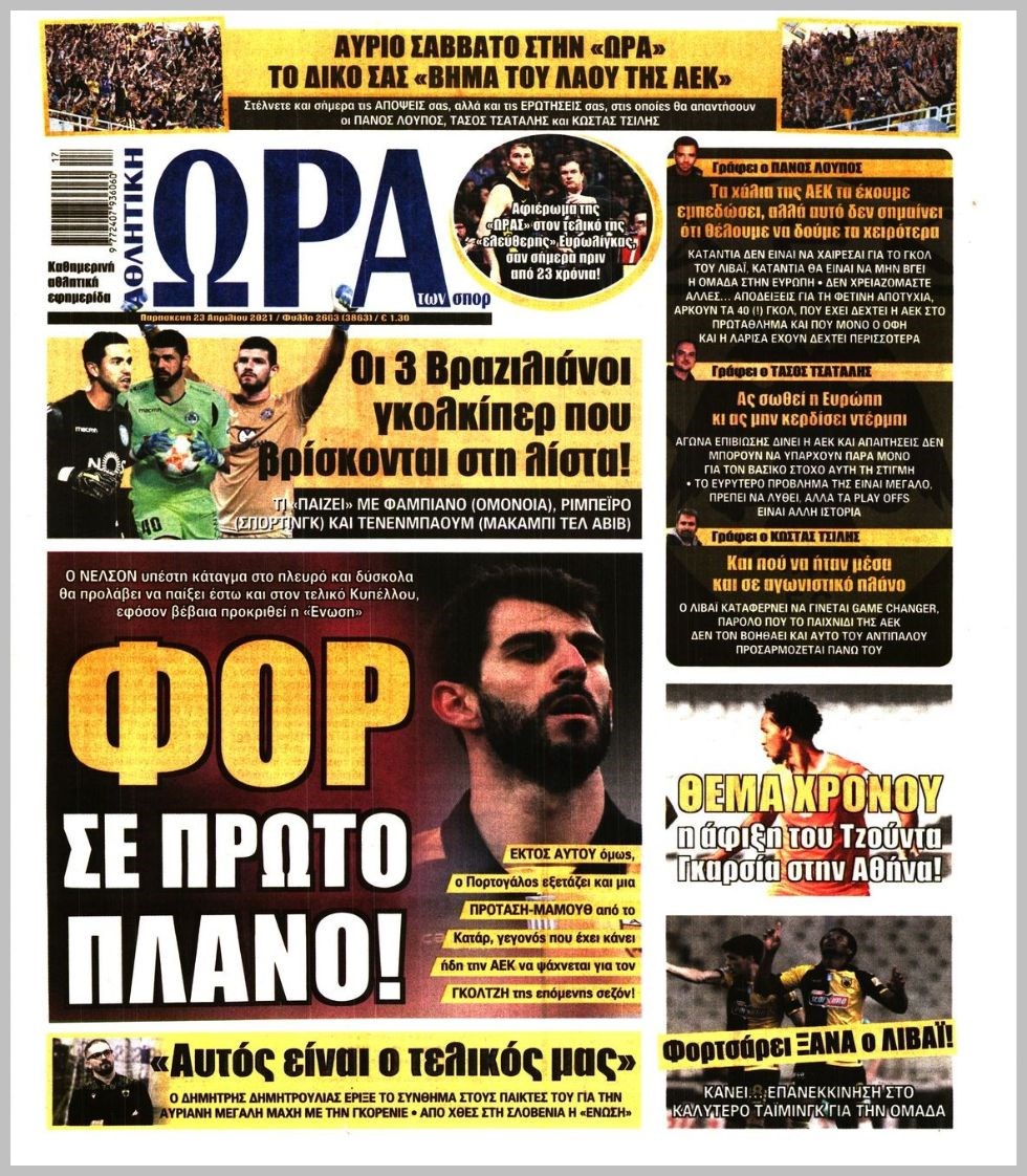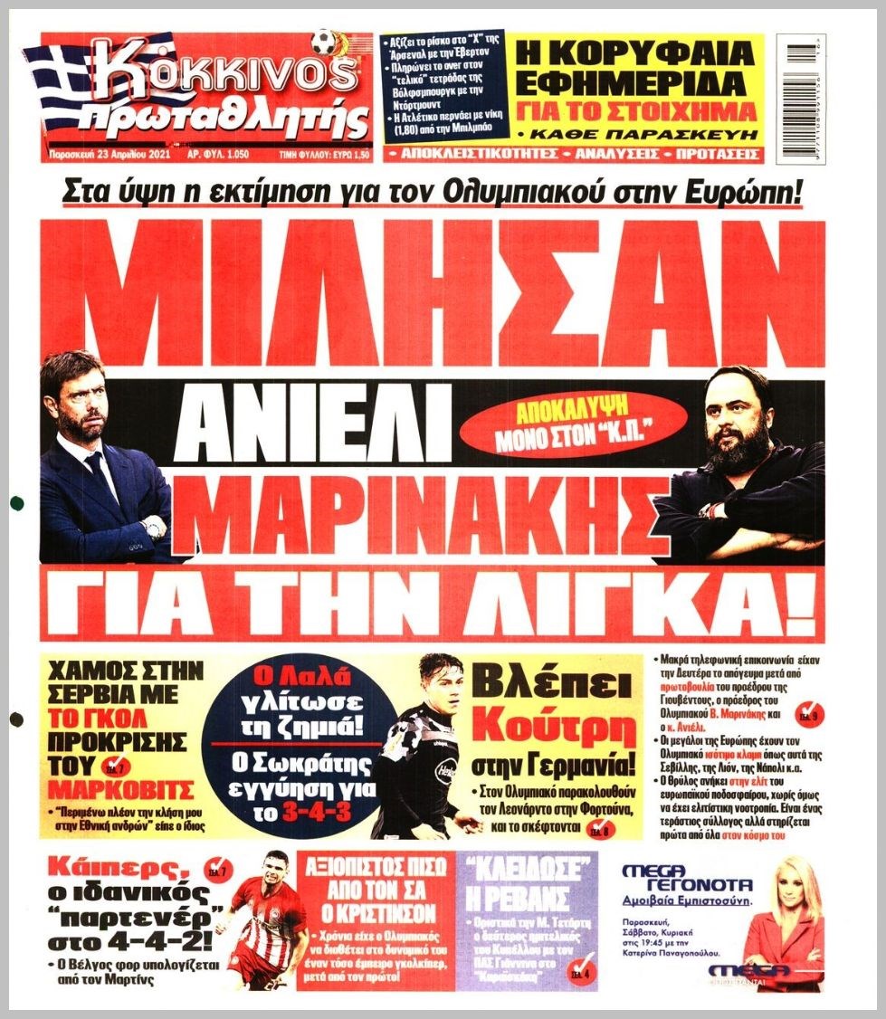 Οι αθλητικές εφημερίδες 23/4/2021 Διονύσης Νίκκας 06:50, Παρασκευή 23 Απριλίου 2021 Media Διαβάστε τα πρωτοσέλιδα των αθλητικών εφημερίδων… ΑΘΛΗΤΙΚΕΣ ΕΦΗΜΕΡΙΔΕΣ Μοιράσου το: σχολίασε κι εσύ (0 σχόλια) Ακολουθήστε το enikos.gr στο Google News και μάθετε πρώτοι όλες τις ειδήσεις Δείτε όλες τις τελευταίες ειδήσεις από την Ελλάδα και τον Κόσμο στο enikos.gr Ειδήσεις Ροή Ειδήσεων 4 ώρες πριν Χριστούγεννα στα μπλόκα: Επιμένουν στις κινητοποιήσεις τους οι αγρότες – Ανοίγουν τα διόδια το Σαββατοκύριακο 5 ώρες πριν Ουκρανία: Η άνευ προηγουμένου επίθεση σε ρωσικό τάνκερ στη Μεσόγειο και το μήνυμα προς στον Πούτιν – Το «μακρύ χέρι» του Κιέβου 4 ώρες πριν Πούτιν: Τα μηνύματα σε Ευρώπη και ΝΑΤΟ από το μαραθώνιο «σόου» του – Η απαίτηση για «σεβασμό» και η ειρήνη «με τους όρους» της Μόσχας 5 ώρες πριν Τραμπ: Δεν αποκλείει την πιθανότητα ενός πολέμου στη Βενεζουέλα – «Ο Μαδούρο ξέρει καλύτερα από τον καθένα τι ακριβώς θέλω» 5 ώρες πριν Συνεχίζει να προκαλεί ο Μίτσκοσκι: «Για μένα το όνομα Μακεδονία είναι ιερό» 4 ώρες πριν Ανακαλύφθηκαν αρχαία χρυσά νομίσματα 2.200 ετών που απεικονίζουν τον θεό Απόλλωνα – Η άγνωστη σύνδεση με τον Φίλιππο Β΄ της Μακεδονίας 5 ώρες πριν Ύπνος: Μια κρυφή κατάσταση του εγκεφάλου πριν από τον ύπνο μπορεί να είναι το “κλειδί” για υψηλή ευφυΐα και δημιουργικότητα 6 ώρες πριν Αριθμολογία: Οι άνθρωποι που έχουν γεννηθεί αυτές τις 4 ημερομηνίες, συχνά παρεξηγούνται – «Η καλοσύνη τους κρύβει τεράστια δύναμη» 7 ώρες πριν Ξεχάστε το καθάρισμα το Σαββατοκύριακο: Ο «κανόνας των 20 λεπτών» που θα σας λύσει τα χέρια 15 λεπτά πριν Θεσσαλονίκη: Εξαφανίστηκε 13χρονος από χώρο φιλοξενίας ασυνόδευτων ανηλίκων στο Ωραιόκαστρο 25 λεπτά πριν Ντόναλντ Τραμπ: «Πολύ βαριά αντίποινα» στη Συρία – «Πλήττουμε πολύ δυνατά οχυρά του Ισλαμικού Κράτους» 40 λεπτά πριν Εξάρχεια: Ένταση με μολότοφ, χημικά και κρότου λάμψης 55 λεπτά πριν ΗΠΑ: Τραγωδία στην Αλαμπάμα – Σκότωσε την δημοσιογράφο σύζυγό του και αυτοκτόνησε μπροστά στον 3χρονο γιο τους 1 ώρα πριν Πρόταση γάμου στο ΣΕΦ κατά την διάρκεια του αγώνα Ολυμπιακός-Βιλερμπάν – Δείτε βίντεο ENIKOS NETWORK Το ΕΚΑΒ τιμήθηκε από την Ακαδημία Αθηνών για τα 40 χρόνια προσφοράς του Έχετε πραγματικά μεγάλη καρδιά; 10 χαρακτηριστικά όσων έχουν καλοσύνη Αναστολή μέτρων αναγκαστικής εκτέλεσης για κτηνοτρόφους που πλήττονται από την ευλογιά των αιγοπροβάτων Πλήρης επάρκεια προϊόντων στις λαϊκές της Αττικής, παρά τις αγροτικές κινητοποιήσεις – Τι απαντούν οι πωλητές Χαρτογραφώντας το «σημείο χωρίς επιστροφή»: Για πρώτη φορά αποκαλύπτεται με λεπτομέρεια το ακανθώδες όριο της ατμόσφαιρας τ... Η Google καταργεί τη λειτουργία «dark web report» – Πώς θα μπορούν οι χρήστες να διαγράφουν τα δεδομένα τους περισσότερα 22:42 , Παρασκευή 19 Δεκεμβρίου 2025 Γιώργος Γιαννόπουλος για “Το σόι σου”: “Είναι ευτυχία και ευλογία αυτή η σειρά” «Είναι ευτυχία και ευλογία η συγκυρία αυτής της σειράς», θα πει ο Γιώργος Γιαννόπουλος -ο αγαπ... 20:37 , Παρασκευή 19 Δεκεμβρίου 2025 Don’t Forget The Lyrics: Η Έλλη Κοκκίνου υποδέχεται 4 παίκτες που θα κάνουν τα πάντα για να μη χάσουν ούτε… μισή λέξη από τους στίχους Το «Don’t Forget The Lyrics» επιστρέφει απόψε, Παρασκευή 19 Δεκεμβρίου, στις 21:00 με νέο επει... 19:31 , Παρασκευή 19 Δεκεμβρίου 2025 GNTM: Απόψε ο μεγάλος τελικός για τους 4 φιναλίστ Έπειτα από μήνες γεμάτους μόδα, δημιουργία και έντονες αναμετρήσεις, το GNTM 2025 κορυφώνεται,... 18:11 , Παρασκευή 19 Δεκεμβρίου 2025 Το σόι σου: Ο 