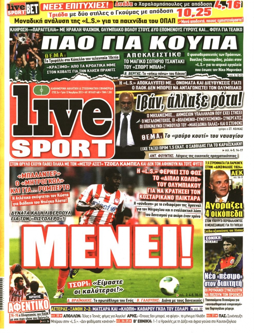 Οι αθλητικές εφημερίδες Enikos Newsroom 08:28, Τρίτη 12 Νοεμβρίου 2013 Media Οι αθλητικές εφημερίδες Διαβάστε τα πρωτοσέλιδα των αθλητικών εφημερίδων: ΑΘΛΗΤΙΚΕΣ ΕΦΗΜΕΡΙΔΕΣ ΕΦΗΜΕΡΙΔΕΣ ΠΡΩΤΟΣΕΛΙΔΑ Μοιράσου το: σχολίασε κι εσύ (0 σχόλια) Ακολουθήστε το enikos.gr στο Google News και μάθετε πρώτοι όλες τις ειδήσεις Δείτε όλες τις τελευταίες ειδήσεις από την Ελλάδα και τον Κόσμο στο enikos.gr Ειδήσεις Ροή Ειδήσεων 1 ώρα πριν Δημοσκόπηση Alco: Στο 23,6% η ΝΔ, στο 11,6% το ΠΑΣΟΚ – Η άποψη των πολιτών για αγρότες, εκλογές και Τσίπρα 5 ώρες πριν Κυψέλη: Για πρώτη ημέρα βρισκόταν στο σχολείο η 16χρονη που επιτέθηκε με μαχαίρι στην 14χρονη – Τι αναφέρουν μαρτυρίες μαθητών για το επεισόδιο 2 ώρες πριν Φοινικούντα: Αρνούνται τις κατηγορίες οι 2 συλληφθέντες – «Θέλω να συμβάλλω στην αποκάλυψη της αλήθειας» λέει ο ανιψιός του θύματος 3 ώρες πριν Κρήτη: Εντοπίστηκε στίγμα του 33χρονου γιατρού που έχει εξαφανιστεί μέσω νέας τεχνολογίας που εφαρμόζεται για πρώτη φορά στην Ελλάδα 4 ώρες πριν Ρομπ και Μισέλ Ράινερ: Συνελήφθη ο γιος τους ως ύποπτος για την δολοφονία τους 6 ώρες πριν Τα 3 ζώδια που θα έχουν τύχη «βουνό» έως τις 21 Δεκεμβρίου – «Η ανατροπή που περιμένετε πλησιάζει» 3 ώρες πριν Γάμος: Αν ένας άνδρας νιώθει βαθιά μοναξιά, θα αρχίσει να κάνει αυτά τα 11 πράγματα μέσα στο σπίτι 2 ώρες πριν Πώς να μην μαραίνονται γρήγορα τα κομμένα λουλούδια: Το λάθος στην τοποθέτηση του βάζου που πρέπει να αποφεύγετε 7 ώρες πριν Επιστήμονες του CERN έλυσαν ένα μυστήριο δεκαετιών της σωματιδιακής φυσικής – Τι ανακάλυψαν 6 λεπτά πριν Βάσω Λασκαράκη: «Χρόνια πολλά, αγάπη μου σε ευχαριστώ που κάνεις την ζωή μου πιο ωραία» – Οι ευχές στον Λευτέρη Σουλτάτο για την γιορτή του 12 λεπτά πριν Μερτς: Οι συνομιλίες για την Ουκρανία είναι «ίσως η μεγαλύτερη διπλωματική δυναμική» – Ζελένσκι: «Επώδυνο το εδαφικό» 16 λεπτά πριν Κόντρα Θεοδωρικάκου – Φάμελλου στη Βουλή – Τα «πυρά» της Κωνσταντοπούλου 21 λεπτά πριν Πιερρακάκης: Σύντομα η Ελλάδα θα έχει περάσει στην πρώτη πεντάδα της Ευρώπης στην ψηφιακή πολιτική – Έχουμε πετύχει έναν άθλο 26 λεπτά πριν Νέα σύλληψη στο «Ελ. Βενιζέλος» για ναρκωτικά – Χειροπέδες σε 23χρονο που είχε 18,5 κιλά κάνναβης στη βαλίτσα του ENIKOS NETWORK Πότε το χρόνιο ροχαλητό να αποτελέσει ένδειξη κινδύνου για την καρδιά; Τι λένε οι ειδικοί Μάριος Θεμιστοκλέους: Το ΕΣΥ ενισχύεται, εκσυγχρονίζεται, αλλάζει ΟΠΕΚΑ: Ποιο επίδομα αυξάνεται από τον επόμενο μήνα και γιατί Ευλογιά αιγοπροβάτων: Έως το τέλος του έτους η οικονομική στήριξη 187 εκατ. ευρώ σε κτηνοτρόφους – Όλα όσα είπε ο Πρωτοψάλτ... Σύγχρονος Νοστράδαμος: Προειδοποιεί για «μεγάλο γεγονός» τους επόμενους μήνες που θα συγκλονίσει τη Βρετανία και τον κόσμο Τεστ παρατηρητικότητας: Μπορείτε να βρείτε τις 3 διαφορές στις εικόνες με έναν πιγκουίνο σε 14 δευτερόλεπτα περισσότερα 19:46 , Δευτέρα 15 Δεκεμβρίου 2025 Άγιος έρωτας: Η Χριστίνα λέει την αλήθεια στον Αντρέα Ο Βασίλης δέχεται επίθεση από τους συμμαθητές του, η Αναστασία είναι συντετριμμένη με την απώλ... 18:45 , Δευτέρα 15 Δεκεμβρίου 2025 Συνέδριο «Ελληνικός Τουρισμός 2025, Μια εθνική υπόθεση!» – «Ο Θαλάσσιος Πυλώνας ως Ενιαία Στρατηγική: Συνέργειες σε Λιμάνια, Μαρίνες, Ακτοπλοΐα, Κρουαζιέρα και Yachting» Στο πλαίσιο της τέταρτης και τελευταίας ενότητας του 7ου συνεδρίου «Ελληνικός Τουρισμός 2025, ... 18:13 , Δευτέρα 15 Δεκεμβρίου 2025 Συνέδριο «Ελληνικός Τουρισμός 2025, Μια εθνική υπόθεση!» – Κικίλιας: «Μεγάλα asset της Ελλάδας η ναυ