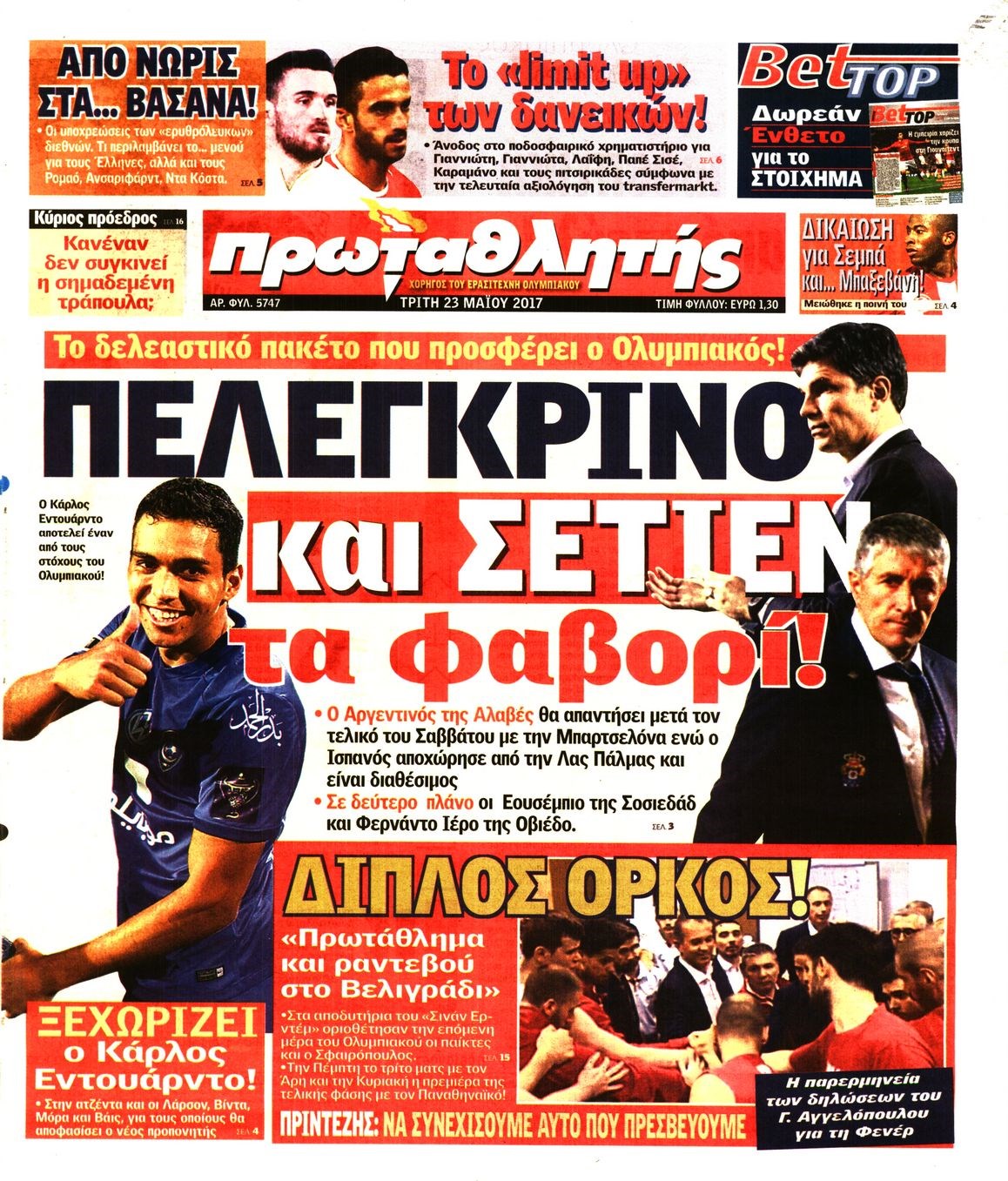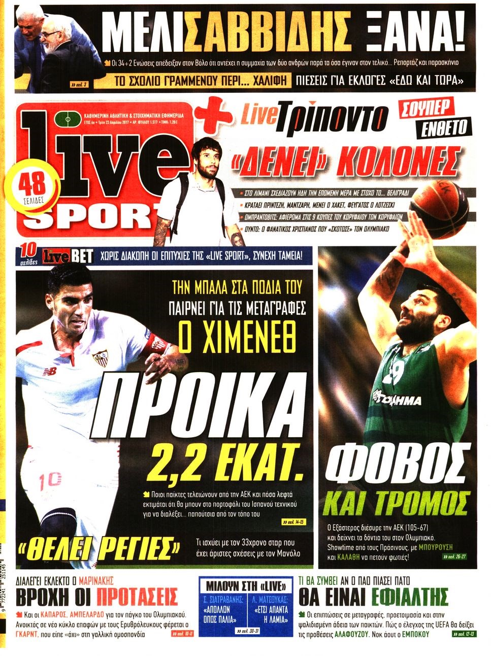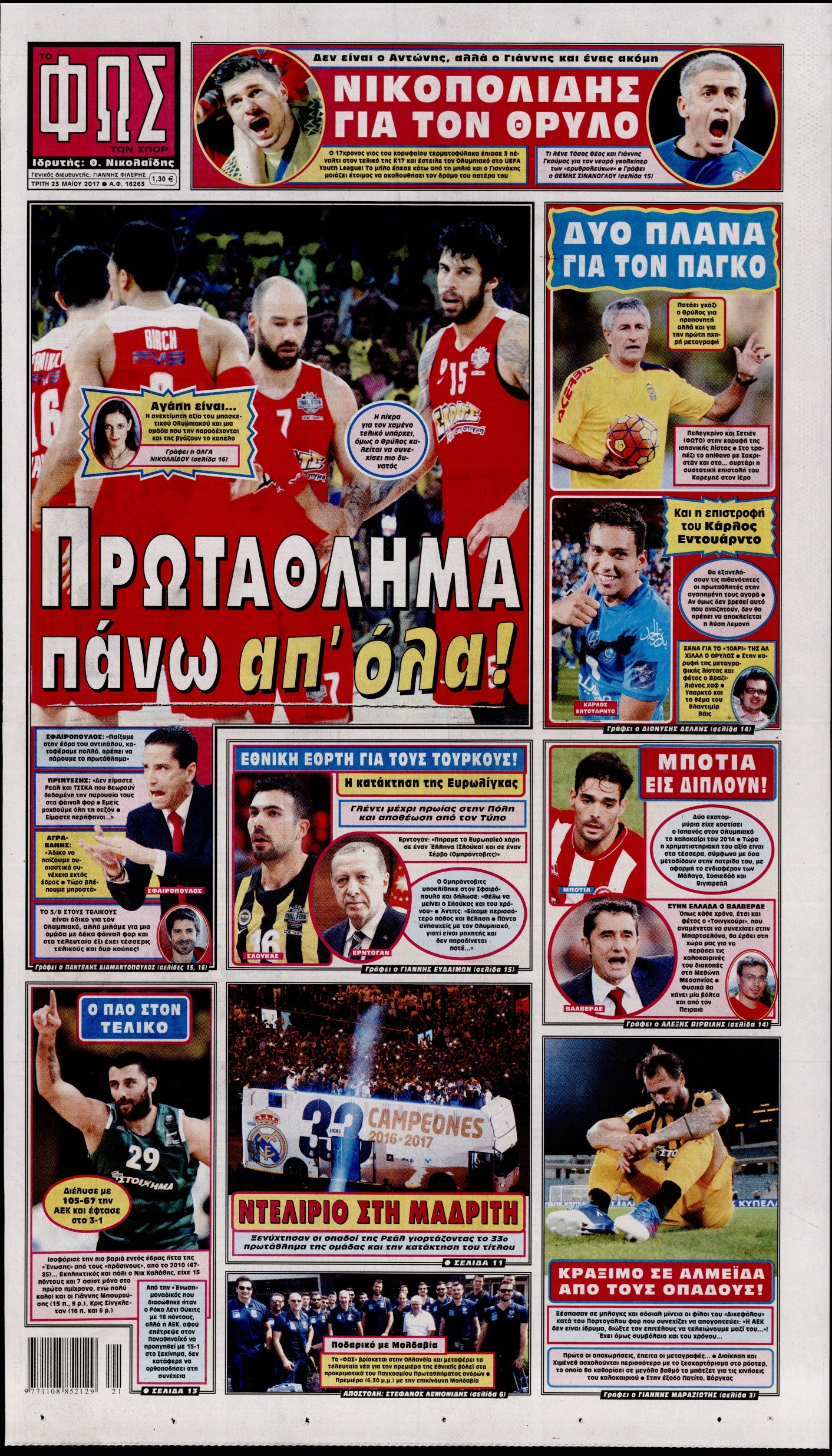 Οι αθλητικές εφημερίδες 23/5/2017 Enikos Newsroom 06:52, Τρίτη 23 Μαΐου 2017 Media Διαβάστε τα σημερινά πρωτοσέλιδα των αθλητικών εφημερίδων: ΑΘΛΗΤΙΚΕΣ ΕΦΗΜΕΡΙΔΕΣ ΠΡΩΤΟΣΕΛΙΔΑ Μοιράσου το: σχολίασε κι εσύ (0 σχόλια) Ακολουθήστε το enikos.gr στο Google News και μάθετε πρώτοι όλες τις ειδήσεις Δείτε όλες τις τελευταίες ειδήσεις από την Ελλάδα και τον Κόσμο στο enikos.gr Ειδήσεις Ροή Ειδήσεων 27 λεπτά πριν Την πρώτη Belharra παρέλαβε η χώρα μας, υψώθηκε η ελληνική σημαία στη φρεγάτα «Κίμων» – Δένδιας: «Το ισχυρότερο Πολεμικό Ναυτικό που είχε ποτέ ο ελληνισμός» 3 ώρες πριν Γιώργος Μαζωνάκης: «Δεν ζήτησα χρήματα, παρά μόνο ηθική δικαίωση» – Οι πρώτες δηλώσεις του 21χρονου μετά την κατάθεση της μήνυσης 2 ώρες πριν Δίκη Βαλυράκη: Καταθέτει ο βασικός αυτόπτης μάρτυρας – «Δέχτηκα πιέσεις να μη μιλήσω, πήγα να ψωνίσω και αυτοκίνητο με χτύπησε στο πόδι» 2 ώρες πριν Ώρα αποφάσεων για τους αγρότες – Ξεκίνησε η πανελλαδική σύσκεψη μπλόκων στις Σέρρες – ΦΩΤΟ 6 ώρες πριν Συναγερμός και στην Ελλάδα για τη «σούπερ γρίπη»: Πόσο σοβαρή είναι και ποιοι θεωρούνται πιο ευάλωτοι – 3 ειδικοί μιλούν στο enikos.gr 52 λεπτά πριν Τα 5 ζώδια που θα ευνοηθούν στα οικονομικά τους το 2026 – «Τραβούν το χρήμα σαν μαγνήτες» 6 ώρες πριν Αν κάνετε συνεχώς αυτά τα 8 πράγματα με τα κατοικίδιά σας, σας λείπει η ανθρώπινη επαφή 2 ώρες πριν Αυτό που κρύβεται κάτω από τη Γροιλανδία θα μπορούσε να ανατρέψει όσα γνωρίζουμε για την άνοδο της στάθμης των θαλασσών 1 ημέρα πριν 20 χρόνια τα Χριστούγεννα ξεκινούν στα Public με μεγάλη ποικιλία σε δώρα! 2 λεπτά πριν Να μ’ αγαπάς: Ζωή και Φωτεινή συμφιλιώνονται ως μάνα με κόρη, απόψε στις 20:00 8 λεπτά πριν Εξώδικο Γεωργιάδη στην Κωνσταντοπούλου – «Με κατηγόρησε ότι έχω καταδικαστεί για παιδεραστία» 13 λεπτά πριν Εξεταστική για ΟΠΕΚΕΠΕ – Μπρατάκος: «Δεν μου τέθηκε ζήτημα για πιέσεις από τον κ. Αυγενάκη ή οποιονδήποτε» – Τι είπε για τον Σημανδράκο 14 λεπτά πριν ΤΕΧΑΝ: 1ο Πανελλήνιο Σχολικό Πρωτάθλημα Ανακύκλωσης Δευτεροβάθμιας Εκπαίδευσης 18 λεπτά πριν Τραυματίστηκε 5χρονο παιδί σε νηπιαγωγείο στο Αγρίνιο – Χτυπήθηκε από αντικείμενο που έπεσε από έπιπλο ENIKOS NETWORK 100 χρόνια ΠΙΣ: Ένας αιώνας προσφοράς στην Ιατρική και την κοινωνία Ένα ποτήρι την ημέρα από αυτόν τον χυμό μειώνει τη χοληστερίνη, τη φλεγμονή και την πίεση Κρατική επιχορήγηση έως 14.500 ευρώ: Ποιοι θα λάβουν από σήμερα την προκαταβολή στον τραπεζικό λογαριασμό τους Αυτόματη απόδοση ΦΠΑ: Τα δύο σενάρια που επεξεργάζεται η ΑΑΔΕ Χαρτογραφώντας το «σημείο χωρίς επιστροφή»: Για πρώτη φορά αποκαλύπτεται με λεπτομέρεια το ακανθώδες όριο της ατμόσφαιρας τ... Η Google καταργεί τη λειτουργία «dark web report» – Πώς θα μπορούν οι χρήστες να διαγράφουν τα δεδομένα τους περισσότερα 16:50 , Πέμπτη 18 Δεκεμβρίου 2025 Να μ’ αγαπάς: Ζωή και Φωτεινή συμφιλιώνονται ως μάνα με κόρη, απόψε στις 20:00 Η ταυτότητα του Άγγελου αποκαλύπτεται στο νέο επεισόδιο της σειράς “Να μ’ αγαπάς... 15:52 , Πέμπτη 18 Δεκεμβρίου 2025 Το Σπίτι Δίπλα Στο Ποτάμι: Το καθηλωτικό τελευταίο επεισόδιο για το 2025 απόψε στις 22:30 Καθηλώνει το σημερινό επεισόδιο της σειράς “Το Σπίτι Δίπλα Στο Ποτάμι” που έρχεται... 15:20 , Πέμπτη 18 Δεκεμβρίου 2025 Άγιος έρωτας – Η Ελευθερία Αρβανιτάκη τραγουδά και ο Γιάννης Τσορτέκης καθηλώνει με τον χορό του Ο Κλεάνθης χορεύει στους ήχους της Ελευθερίας Αρβανιτάκη στη σειρά “Άγιος Έρωτας“.... 08:00 , Πέμπτη 18 Δεκεμβρίου 2025 Την Κυριακή με τη Realnews: Δωροεπιταγή 10€ Δωροεπιταγή αξίας 10€ γ