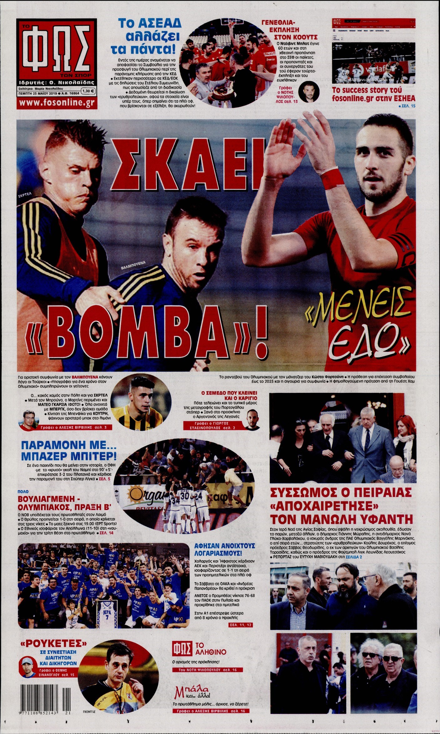 Οι αθλητικές εφημερίδες 23/5/2019 Enikos Newsroom 06:52, Πέμπτη 23 Μαΐου 2019 Media Διαβάστε τα πρωτοσέλιδα των αθλητικών εφημερίδων: ΑΘΛΗΤΙΚΕΣ ΕΦΗΜΕΡΙΔΕΣ ΠΡΩΤΟΣΕΛΙΔΑ Μοιράσου το: σχολίασε κι εσύ (0 σχόλια) Ακολουθήστε το enikos.gr στο Google News και μάθετε πρώτοι όλες τις ειδήσεις Δείτε όλες τις τελευταίες ειδήσεις από την Ελλάδα και τον Κόσμο στο enikos.gr Ειδήσεις Ροή Ειδήσεων 2 ώρες πριν ΑΑΔΕ: Στον Εισαγγελέα οι πρώτες 50 μαζικές διαγραφές αγρών στο Ε9 – Εξετάζονται συνολικά 3.000 περιπτώσεις 42 λεπτά πριν Τουρκία: Σε ουδέτερη χώρα θα αναλυθεί το μαύρο κουτί του αεροσκάφους που συνετρίβη 4 λεπτά πριν Αττική: Προβλήματα σε κεντρικούς δρόμους από την ισχυρή βροχόπτωση και το χαλάζι – ΒΙΝΤΕΟ 2 ώρες πριν Αττική: Έπεσε από πατίνι η 14χρονη που εντοπίστηκε τραυματισμένη – Νοσηλεύεται στη νευροχειρουργική κλινική 2 ώρες πριν Ζελένσκι: Πέρασε στην αντεπίθεση με το σχέδιο ειρήνης – Ζητεί συνάντηση με Τραμπ για το εδαφικό 2 ώρες πριν Τα 5 ζώδια που έχουν μεγάλες πιθανότητες να πλουτίσουν το 2026 – «Οι οικονομικές δυσκολίες ανήκουν στο παρελθόν» 3 ώρες πριν Επιστήμονες ανακάλυψαν κάτι συγκλονιστικό – Η μάζα μπορεί να προέρχεται από αόρατες διαστάσεις 7 ώρες πριν Γυναίκα που έχασε 30 κιλά αποκαλύπτει τα μυστικά της επιτυχίας της – «Οι υδατάνθρακες είναι καύσιμο του οργανισμού, όχι εχθρός» 6 ώρες πριν Οι άνθρωποι που αποφεύγουν να γιορτάσουν τα Χριστούγεννα με την οικογένειά τους, συνήθως είχαν αυτές τις 8 εμπειρίες στην παιδική ηλικία 1 λεπτό πριν Χριστούγεννα σημαίνουν… Ευχοστολίδια! Μαζί με τον ΟΠΑΠ διπλασιάζουμε την προφορά στα παιδιά και κάνουμε τις ευχές τους πραγματικότητα 4 λεπτά πριν Αττική: Προβλήματα σε κεντρικούς δρόμους από την ισχυρή βροχόπτωση και το χαλάζι – ΒΙΝΤΕΟ 12 λεπτά πριν Αττική: Ποτάμια οι δρόμοι στην Δάφνη – Βίντεο αναγνώστη 18 λεπτά πριν Επίδομα θέρμανσης: Πότε θα δοθεί η επόμενη δόση 27 λεπτά πριν Ερντογάν για τις εξελίξεις στη Μεσόγειο: Δεν θα επιτρέψουμε την καταπάτηση των δικαιωμάτων των Τουρκοκυπρίων ENIKOS NETWORK ΕΟΔΥ: Οι «χρυσές» συμβουλές για να απολαύσουμε το Χριστουγεννιάτικο τραπέζι χωρίς υπερβολές New Year’s Resolutions: Μικρές αποφάσεις για μια καλή χρονιά ΕΒΕA: Ποιοι μπορούν να υποβάλουν αίτηση για τη Θερμοκοιτίδα Νεοφυών Επιχειρήσεων Αθήνας και μέχρι πότε e-ΕΦΚΑ και ΔΥΠΑ: Ποιοι πληρώνονται έως σήμερα Ο Google Assistant θα παραμείνει λίγο περισσότερο για ορισμένους χρήστες Android Τεστ προσωπικότητας: Το βάζο που θα επιλέξετε αποκαλύπτει πώς λύνετε προβλήματα στη ζωή σας περισσότερα 16:12 , Τετάρτη 24 Δεκεμβρίου 2025 ALPHA: Παραμονή Χριστουγέννων με τον Κωνσταντίνο Αργυρό Ο Alpha παρουσιάζει απόψε σε πρώτη τηλεοπτική μετάδοση τη συναρπαστική και sold out εμφάνιση ... 15:51 , Τετάρτη 24 Δεκεμβρίου 2025 ‘Αγιος Έρωτας: Ο σεισμός που έκοψε την ανάσα – Δείτε τις συγκλονιστικές σκηνές Με έναν συγκλονιστικό τρόπο έκλεισε χθες βράδυ το τελευταίο επεισόδιο του 2025 της σειράς R... 13:27 , Τετάρτη 24 Δεκεμβρίου 2025 Ο Χριστουγεννιάτικος Τηλεμαραθώνιος του ΑΝΤ1 ένωσε τους πολιτικούς αρχηγούς – Τα εγκωμιαστικά σχόλια για τον Θοδωρή Κυριακού Σπάνια ομοφωνία: Όλοι οι πολιτικοί αρχηγοί αποθεώνουν τον Θοδωρή Κυριακού Ο Χριστουγεννιάτικος... 12:05 , Τετάρτη 24 Δεκεμβρίου 2025 Έξοδος εκδρομέων για τα Χριστούγεννα: Στείλε βίντεο ή φωτογραφίες στο enikos.gr – Αποθήκευσε τον αριθμό 6944 05 05 05 Πολλοί έχουν επιλέξει να περάσουν τις γιορτές εκτός πόλης, ωστόσο και φέτος η μαζική έξοδος απ... ΤΕΛΕΥΤΑΙΕΣ ΕΙΔΗΣΕΙΣ 1 λεπτό πριν 