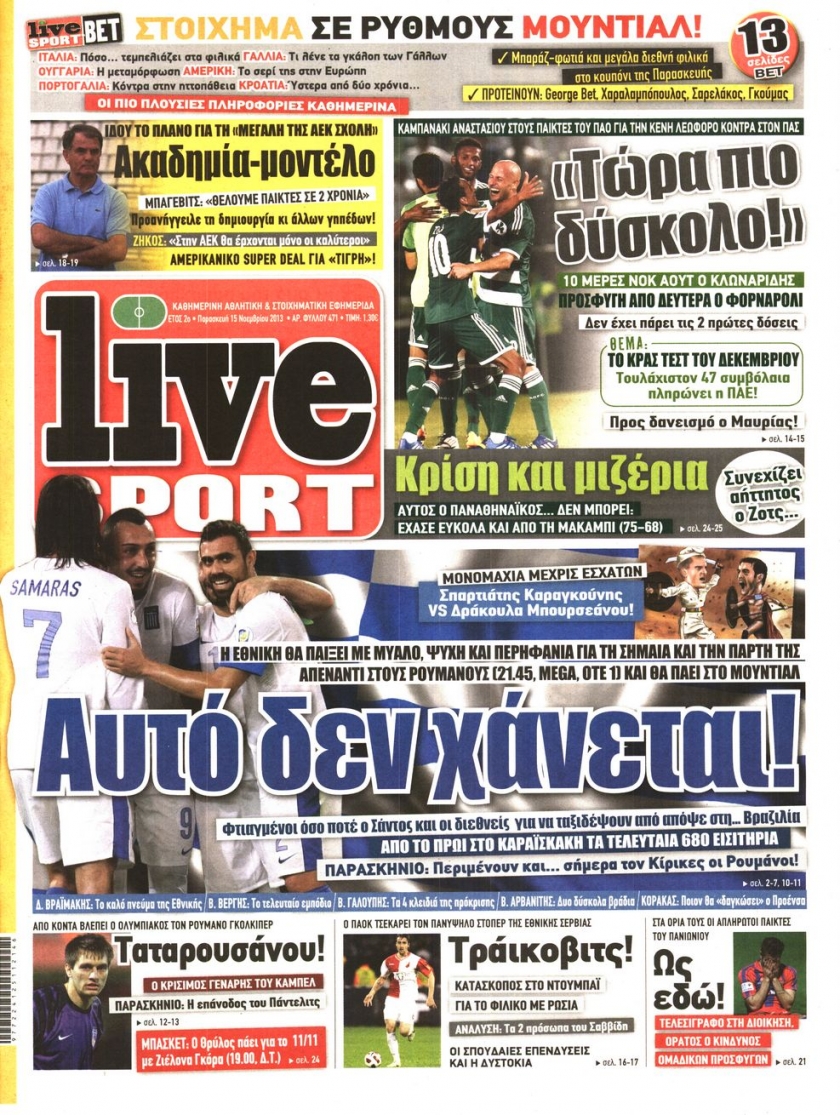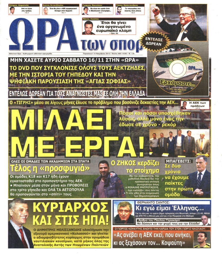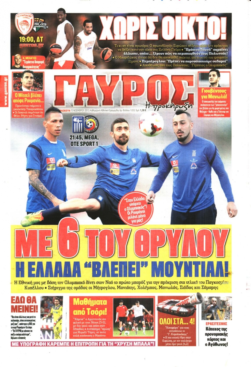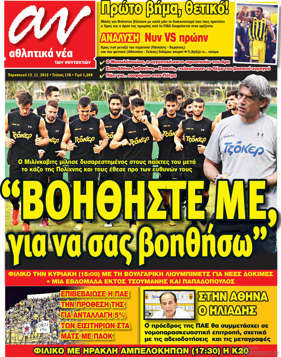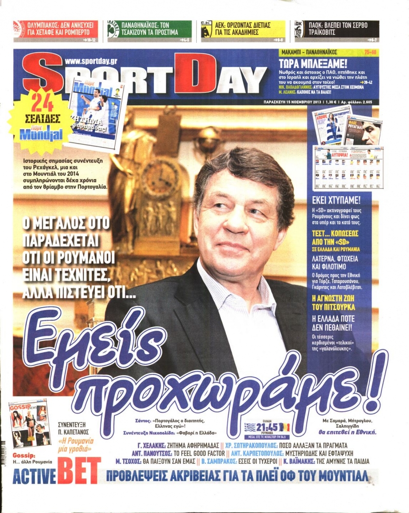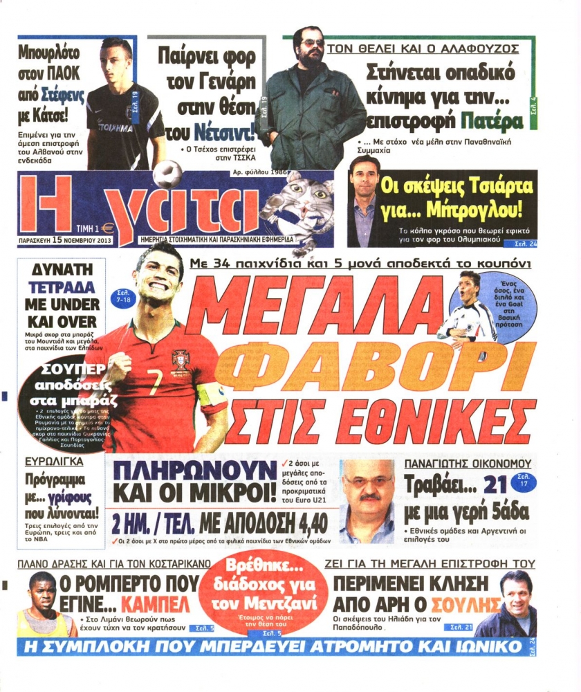 Οι αθλητικές εφημερίδες Enikos Newsroom 08:50, Παρασκευή 15 Νοεμβρίου 2013 Media Οι αθλητικές εφημερίδες Διαβάστε τα πρωτοσέλιδα των αθλητικών εφημερίδων: ΑΘΛΗΤΙΚΕΣ ΕΦΗΜΕΡΙΔΕΣ ΕΦΗΜΕΡΙΔΕΣ ΠΡΩΤΟΣΕΛΙΔΑ Μοιράσου το: σχολίασε κι εσύ (0 σχόλια) Ακολουθήστε το enikos.gr στο Google News και μάθετε πρώτοι όλες τις ειδήσεις Δείτε όλες τις τελευταίες ειδήσεις από την Ελλάδα και τον Κόσμο στο enikos.gr Ειδήσεις Ροή Ειδήσεων 5 ώρες πριν Εκτός ευρωομάδας ΣΥΡΙΖΑ ο Νίκος Παππάς μετά την επίθεση στον δημοσιογράφο Νίκο Γιαννόπουλο – Η μήνυση και οι νέες δηλώσεις 6 ώρες πριν «Αγριεύουν» οι αγρότες: «Δεν συντρέχει λόγος συνάντησης με τον πρωθυπουργό» – Ώρα αποφάσεων στη σύσκεψη της Πέμπτης 5 ώρες πριν Κυψέλη: Χωρίς την οικογένειά της δίπλα της απολογήθηκε η 16χρονη – «Της είχε επιτεθεί κάποιος για να την βιάσει, φοβήθηκε και κυκλοφορούσε με μαχαίρι» 5 ώρες πριν Politico: Το πρόβλημα της Ευρώπης δεν είναι το Βέλγιο αλλά ο Ντόναλντ Τραμπ 7 ώρες πριν Αλεξανδρούπολη: Πολυοργανική ανεπάρκεια λόγω υποσιτισμού η αιτία θανάτου του 3χρονου αγοριού 5 ώρες πριν Μυστήριο με τεράστιες κυκλικές πέτρες 200 κιλών – Ανακαλύφθηκαν τυχαία κατά τη διάρκεια οδικών έργων και κανείς δεν ξέρει από πού προέρχονται 6 ώρες πριν Ύπνος: Ειδικός εξηγεί τον πραγματικό λόγο που ξυπνάτε στις 4 τα ξημερώματα – Ο ρόλος των ορμονών και του κιρκάδιου ρυθμού 7 ώρες πριν Αριθμολογία: Οι άνθρωποι που έχουν γεννηθεί αυτές τις 4 ημερομηνίες, είναι τρυφεροί και αγαπούν ανιδιοτελώς 19 ώρες πριν 20 χρόνια τα Χριστούγεννα ξεκινούν στα Public με μεγάλη ποικιλία σε δώρα! 4 λεπτά πριν Νέο αμερικανικό πλήγμα σε σκάφος που φέρεται να μετέφερε ναρκωτικά στον Ειρηνικό – Τέσσερις νεκροί 19 λεπτά πριν Αλ Τσαντίρι Νιουζ: «Λύγισε» ο Δημήτρης Λάλος για τον Δημήτρη Ήμελλο – «Τον μνημονεύω, να ‘ναι καλά εκεί που είναι» 34 λεπτά πριν GNTM: Με δάκρυα τον αποχαιρέτησε η Ηλιάνα Παπαγεωργίου πριν από τον ημιτελικό – «Αισθάνομαι πολύ παράξενα» 49 λεπτά πριν Αμερικανικά στρατεύματα στον Ισημερινό για «προσωρινή» επιχείρηση κατά των ναρκωτικών 1 ώρα πριν Βραζιλία: Το Κογκρέσο ενέκρινε σχέδιο νόμου για τη μείωση της ποινής του πρώην προέδρου Μπολσονάρου ENIKOS NETWORK Αϋπνία: Το κόλπο που θα σας βοηθήσει να κοιμηθείτε απόψε – Είναι απλό και έχει αποτέλεσμα 2,6 εκατομμύρια πολίτες έχουν ήδη εμβολιαστεί κατά της γρίπης ΕΛΣΤΑΤ: Τι δείχνουν τα νέα στοιχεία για τις ηλεκτρονικές παραγγελίες των επιχειρήσεων ΚΕΠΕ: Οι 3 διακριτές συμβολές των ΜμΕ και της μεταποίησης στην ελληνική οικονομία Χαρτογραφώντας το «σημείο χωρίς επιστροφή»: Για πρώτη φορά αποκαλύπτεται με λεπτομέρεια το ακανθώδες όριο της ατμόσφαιρας τ... Η Google καταργεί τη λειτουργία «dark web report» – Πώς θα μπορούν οι χρήστες να διαγράφουν τα δεδομένα τους περισσότερα 02:30 , Πέμπτη 18 Δεκεμβρίου 2025 Αλ Τσαντίρι Νιουζ: Η κόρη της Πάολα στο κοινό – Η ατάκα Λαζόπουλου που την έκανε να «κοκκινήσει» Γιορτινή διάθεση και ευχάριστες στιγμές γέμισε η αποψινή, τελευταία για το 2025, εκπομπή του «... 22:24 , Τετάρτη 17 Δεκεμβρίου 2025 Το Σπίτι Δίπλα Στο Ποτάμι: Σε κίνδυνο η υγεία του Απόστολου – Τι θα δούμε απόψε “Το Σπίτι Δίπλα στο Ποτάμι” ξετυλίγει το νήμα της ζωής των πέντε αδελφών με καταισ... 21:14 , Τετάρτη 17 Δεκεμβρίου 2025 Παιχνίδια Εκδίκησης: Θα καταφέρει ο Χρήστος να κλονίσει την εμπιστοσύνη της Μάγιας απέναντι στον Άγη; Τα «Παιχνίδια Εκδίκησης» έρχονται απόψε στις 22:30, στον Αντ1, με το τελευταίο επεισόδιο της χ... 20:57 , Τετάρτη 17 Δεκεμβρίο