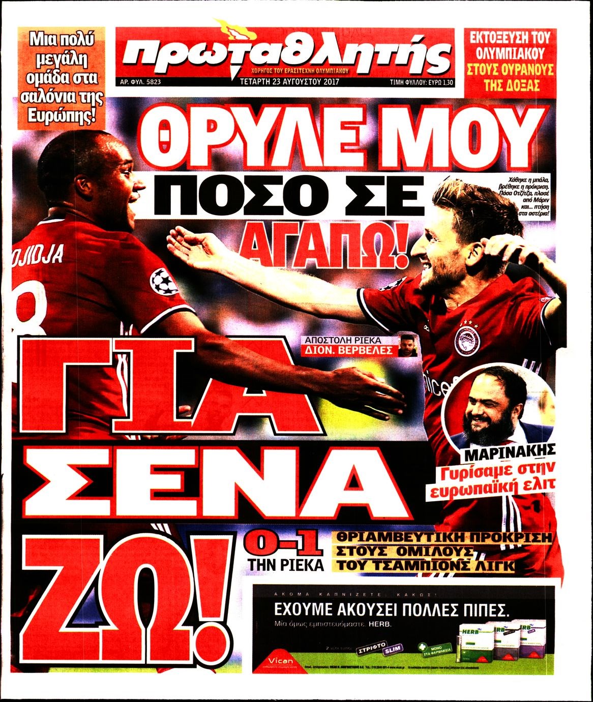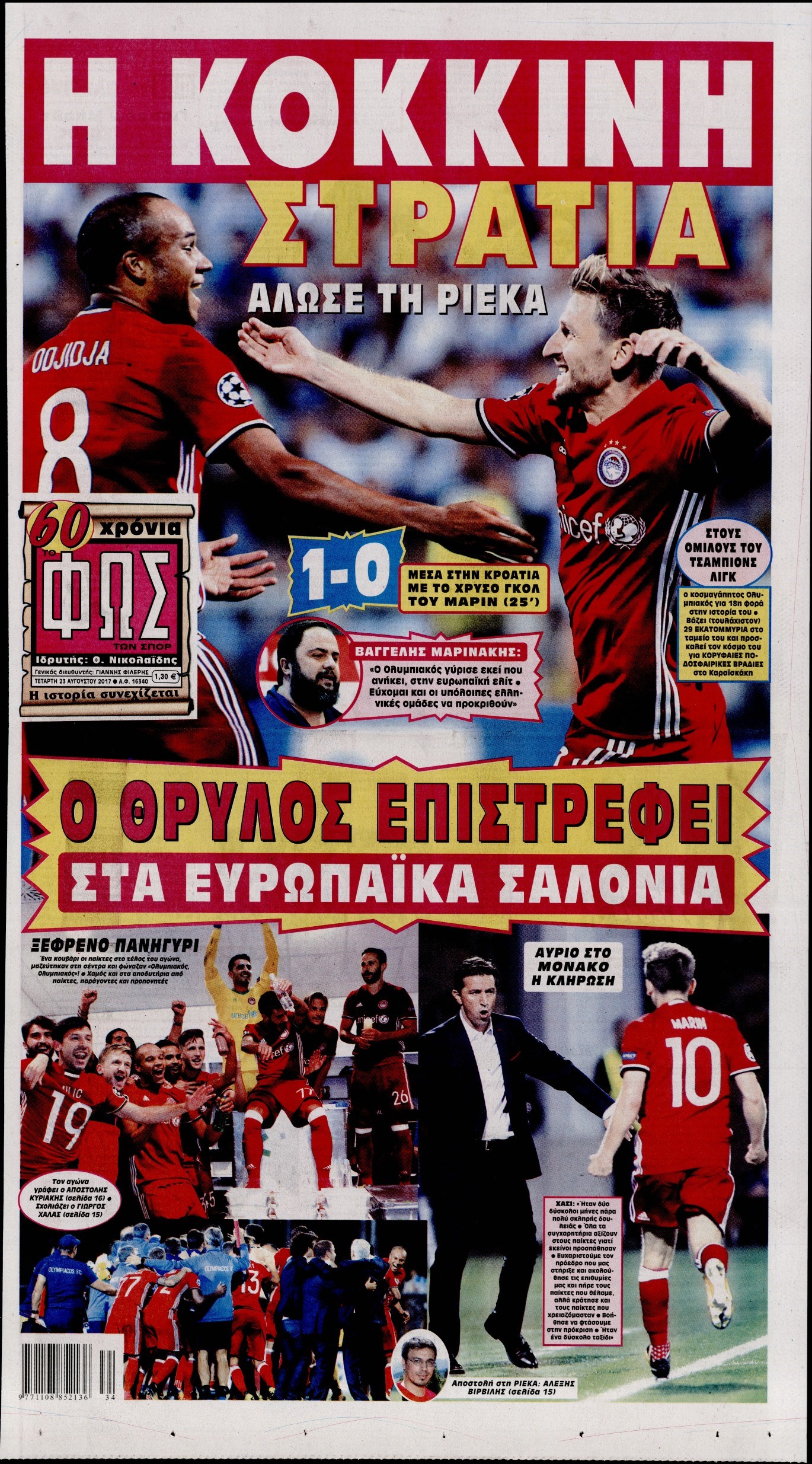 Οι αθλητικές εφημερίδες 23/8/2017 Enikos Newsroom 07:20, Τετάρτη 23 Αυγούστου 2017 Media Διαβάστε τα σημερινά πρωτοσέλιδα των αθλητικών εφημερίδων: ΑΘΛΗΤΙΚΕΣ ΕΦΗΜΕΡΙΔΕΣ ΠΡΩΤΟΣΕΛΙΔΑ Μοιράσου το: σχολίασε κι εσύ (0 σχόλια) Ακολουθήστε το enikos.gr στο Google News και μάθετε πρώτοι όλες τις ειδήσεις Δείτε όλες τις τελευταίες ειδήσεις από την Ελλάδα και τον Κόσμο στο enikos.gr Ειδήσεις Ροή Ειδήσεων 41 λεπτά πριν Χριστούγεννα στα μπλόκα: Επιμένουν στις κινητοποιήσεις τους οι αγρότες – Ανοίγουν τα διόδια το Σαββατοκύριακο 1 ώρα πριν Ουκρανία: Η άνευ προηγουμένου επίθεση σε ρωσικό τάνκερ στη Μεσόγειο και το μήνυμα προς στον Πούτιν – Το «μακρύ χέρι» του Κιέβου 18 λεπτά πριν Πούτιν: Τα μηνύματα σε Ευρώπη και ΝΑΤΟ από το μαραθώνιο «σόου» του – Η απαίτηση για «σεβασμό» και η ειρήνη «με τους όρους» της Μόσχας 1 ώρα πριν Τραμπ: Δεν αποκλείει την πιθανότητα ενός πολέμου στη Βενεζουέλα – «Ο Μαδούρο ξέρει καλύτερα από τον καθένα τι ακριβώς θέλω» 2 ώρες πριν Συνεχίζει να προκαλεί ο Μίτσκοσκι: «Για μένα το όνομα Μακεδονία είναι ιερό» 4 ώρες πριν Πούτιν: «Ναι, είμαι ερωτευμένος» – Βίντεο από τη σπάνια προσωπική παραδοχή του 2 ώρες πριν Αριθμολογία: Οι άνθρωποι που έχουν γεννηθεί αυτές τις 4 ημερομηνίες, συχνά παρεξηγούνται – «Η καλοσύνη τους κρύβει τεράστια δύναμη» 1 ώρα πριν Ύπνος: Μια κρυφή κατάσταση του εγκεφάλου πριν από τον ύπνο μπορεί να είναι το “κλειδί” για υψηλή ευφυΐα και δημιουργικότητα 3 ώρες πριν Ξεχάστε το καθάρισμα το Σαββατοκύριακο: Ο «κανόνας των 20 λεπτών» που θα σας λύσει τα χέρια 19 λεπτά πριν Ανακαλύφθηκαν αρχαία χρυσά νομίσματα 2.200 ετών που απεικονίζουν τον θεό Απόλλωνα – Η άγνωστη σύνδεση με τον Φίλιππο Β΄ της Μακεδονίας 4 λεπτά πριν Ολυμπιακός – Βιλερμπάν 107-84: Επιστροφή στις νίκες με… προπόνηση 9 λεπτά πριν Νέος Κόσμος: Συνελήφθη 41χρονος με ένταλμα από την Τουρκία για εμπόριο ναρκωτικών και ληστεία 18 λεπτά πριν Πούτιν: Τα μηνύματα σε Ευρώπη και ΝΑΤΟ από το μαραθώνιο «σόου» του – Η απαίτηση για «σεβασμό» και η ειρήνη «με τους όρους» της Μόσχας 19 λεπτά πριν Ανακαλύφθηκαν αρχαία χρυσά νομίσματα 2.200 ετών που απεικονίζουν τον θεό Απόλλωνα – Η άγνωστη σύνδεση με τον Φίλιππο Β΄ της Μακεδονίας 24 λεπτά πριν Νίκος Ξυλούρης: Συγκινεί η χήρα του σπουδαίου καλλιτέχνη – «Ευχαριστώ όλο τον κόσμο που τον κρατάει ζωντανό 45 χρόνια» ENIKOS NETWORK Το ΕΚΑΒ τιμήθηκε από την Ακαδημία Αθηνών για τα 40 χρόνια προσφοράς του Έχετε πραγματικά μεγάλη καρδιά; 10 χαρακτηριστικά όσων έχουν καλοσύνη Πλήρης επάρκεια προϊόντων στις λαϊκές της Αττικής, παρά τις αγροτικές κινητοποιήσεις – Τι απαντούν οι πωλητές ΑΑΔΕ: Νέες αναβαθμίσεις στο Ψηφιακό Πελατολόγιο και την εφαρμογή myDATAapp – Τι πρέπει να γνωρίζετε Χαρτογραφώντας το «σημείο χωρίς επιστροφή»: Για πρώτη φορά αποκαλύπτεται με λεπτομέρεια το ακανθώδες όριο της ατμόσφαιρας τ... Η Google καταργεί τη λειτουργία «dark web report» – Πώς θα μπορούν οι χρήστες να διαγράφουν τα δεδομένα τους περισσότερα 22:42 , Παρασκευή 19 Δεκεμβρίου 2025 Γιώργος Γιαννόπουλος για “Το σόι σου”: “Είναι ευτυχία και ευλογία αυτή η σειρά” «Είναι ευτυχία και ευλογία η συγκυρία αυτής της σειράς», θα πει ο Γιώργος Γιαννόπουλος -ο αγαπ... 20:37 , Παρασκευή 19 Δεκεμβρίου 2025 Don’t Forget The Lyrics: Η Έλλη Κοκκίνου υποδέχεται 4 παίκτες που θα κάνουν τα πάντα για να μη χάσουν ούτε… μισή λέξη από τους στίχους Το «Don’t Forget The Lyrics» επιστρέφει απόψε, Παρασκευή 19 Δεκεμβρίου, στις 21:00 με νέο επει... 19:31 , Παρασκευή 19 Δεκεμβρ