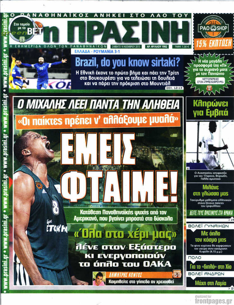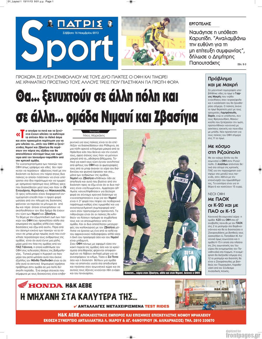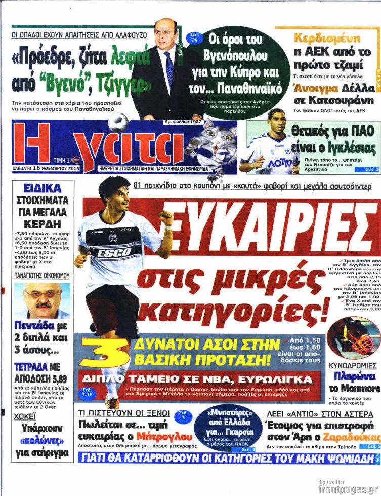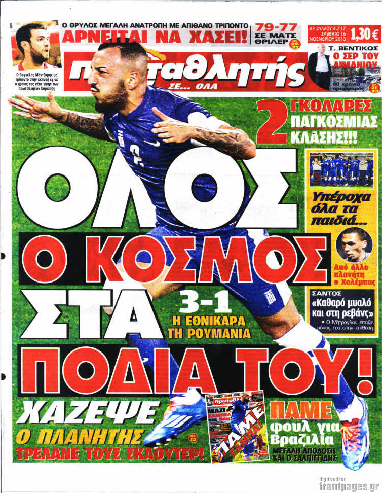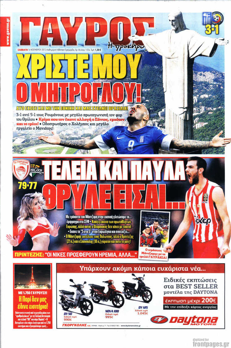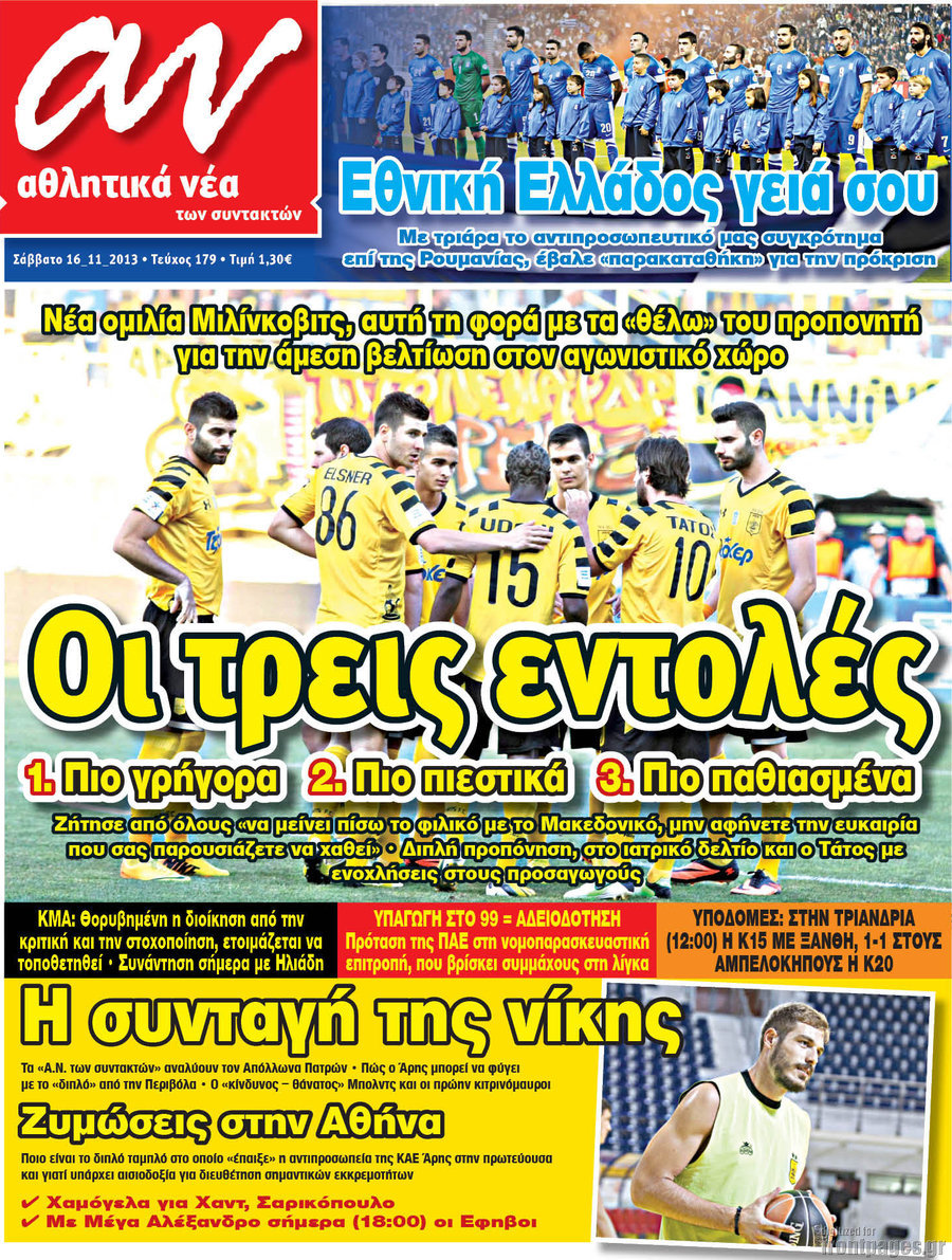 Οι αθλητικές εφημερίδες Enikos Newsroom 08:56, Σάββατο 16 Νοεμβρίου 2013 Media Οι αθλητικές εφημερίδες Διαβάστε τα πρωτοσέλιδα των αθλητικών εφημερίδων: ΑΘΛΗΤΙΚΕΣ ΕΦΗΜΕΡΙΔΕΣ ΕΦΗΜΕΡΙΔΕΣ Μοιράσου το: σχολίασε κι εσύ (0 σχόλια) Ακολουθήστε το enikos.gr στο Google News και μάθετε πρώτοι όλες τις ειδήσεις Δείτε όλες τις τελευταίες ειδήσεις από την Ελλάδα και τον Κόσμο στο enikos.gr Ειδήσεις Ροή Ειδήσεων 5 ώρες πριν Αυξάνουν την πίεση προς την κυβέρνηση οι αγρότες: Κλείνουν παρακαμπτήριους και ανοίγουν διόδια – Τι θα γίνει τις γιορτές 4 ώρες πριν ΟΠΕΚΕΠΕ: Προφυλακιστέος ο φερόμενος αρχηγός και ο λογιστής της εγκληματικής οργάνωσης 24 λεπτά πριν Ευρωπαϊκή Ένωση: Χωρίς συμφωνία, για την μακροπρόθεσμη χρηματοδότηση της Ουκρανίας, ολοκληρώθηκε η Σύνοδος Κορυφής στις Βρυξέλλες 3 ώρες πριν ΑΕΚ – Κραϊόβα 3-2: Επική ανατροπή και πρόκριση στους «16» του Conference League η Ένωση 5 ώρες πριν Φοινικούντα: Το Σάββατο απολογείται ο 30χρονος γιος γνωστού επιχειρηματία της Πλάκας που παραδόθηκε – Όσα είπε στους αστυνομικούς και ο ρόλος του στο έγκλημα 4 ώρες πριν Αρχαιολόγοι ανακάλυψαν ρωμαϊκά τεχνουργήματα από μια πόλη που δεν υπήρξε ποτέ – Τα τρία εντυπωσιακά κτίρια και ο αμφορέας με τις… σαρδέλες 5 ώρες πριν Ύπνος: Η απλή βραδινή ρουτίνα για να προστατεύσετε τα μαλλιά σας από το κρύο κατά τη διάρκεια του χειμώνα 6 ώρες πριν Manifesting: Πώς να συναντήσετε τον σύντροφο της ζωής σας, ανάλογα με τον μήνα γέννησής σας 2 ημέρες πριν 20 χρόνια τα Χριστούγεννα ξεκινούν στα Public με μεγάλη ποικιλία σε δώρα! 24 λεπτά πριν Ευρωπαϊκή Ένωση: Χωρίς συμφωνία, για την μακροπρόθεσμη χρηματοδότηση της Ουκρανίας, ολοκληρώθηκε η Σύνοδος Κορυφής στις Βρυξέλλες 40 λεπτά πριν GNTM: «Κλείδωσαν» οι τέσσερις φιναλίστ – Μεγάλη ανατροπή στις τελευταίες αποχωρήσεις 54 λεπτά πριν Γιώργος Μαζωνάκης: Αποθεώθηκε στην πρεμιέρα του στην «Ακτή Πειραιώς» λίγες ώρες μετά τις καταγγελίες – «Είμαι αληθινός», είπε με νόημα 1 ώρα πριν Πόλεμος στην Ουκρανία: Ρωσικά drones έπληξαν την Οδησσό – Μία νεκρή και ζημιές σε ενεργειακές υποδομές 1 ώρα πριν ΑΕΚ-Κραϊόβα: Τα highlights της μυθικής ανατροπής της «Ένωσης» ENIKOS NETWORK Σε περίοδο αυξημένης δραστηριότητας η γρίπη στην Ελλάδα-Μέτρα προστασίας από τον ΕΟΔΥ Σκέφτεστε συνέχεια συζητήσεις που έχετε κάνει; Τι σημαίνει αυτό, σύμφωνα με ειδικό Στεγαστικό: Τι λέει η ΠΟΜΙΔΑ για τα νέα μέτρα που ανακοίνωσε ο Κυριάκος Μητσοτάκης Λαγκάρντ: Αισιόδοξη για την ανάπτυξη της Ευρωζώνης, αβέβαιη για τον πληθωρισμό Χαρτογραφώντας το «σημείο χωρίς επιστροφή»: Για πρώτη φορά αποκαλύπτεται με λεπτομέρεια το ακανθώδες όριο της ατμόσφαιρας τ... Η Google καταργεί τη λειτουργία «dark web report» – Πώς θα μπορούν οι χρήστες να διαγράφουν τα δεδομένα τους περισσότερα 02:50 , Παρασκευή 19 Δεκεμβρίου 2025 GNTM: «Κλείδωσαν» οι τέσσερις φιναλίστ – Μεγάλη ανατροπή στις τελευταίες αποχωρήσεις Για προτελευταία φορά εμφανίστηκαν στο πλατό του GNTM οι φιναλίστ του φετινού κύκλου, το βράδυ... 17:45 , Πέμπτη 18 Δεκεμβρίου 2025 ROUK ZOUK: Εορταστικό επεισόδιο με καλεσμένους τους πρωταγωνιστές του «Γιατί ρε πατέρα» Το Σάββατο 20 Δεκεμβρίου στις 21:00, η Ζέτα Μακρυπούλια υποδέχεται εκλεκτούς ηθοποιούς που όλο... 17:20 , Πέμπτη 18 Δεκεμβρίου 2025 Άγιος έρωτας: Η Χριστίνα εξομολογείται στον πατέρα Νικόλαο, απόψε στις 21:00 στον Alpha Η Νότα αποφασίζει να εκδικηθεί τον Πέτρο και τον Στέφανο, για χάρη του Λούη, όμως τα πράγματα ... 16:50 , Πέμπτη 18 Δεκεμβρίου 2025 Να μ’ αγαπάς: Ζωή και Φωτεινή συμφ