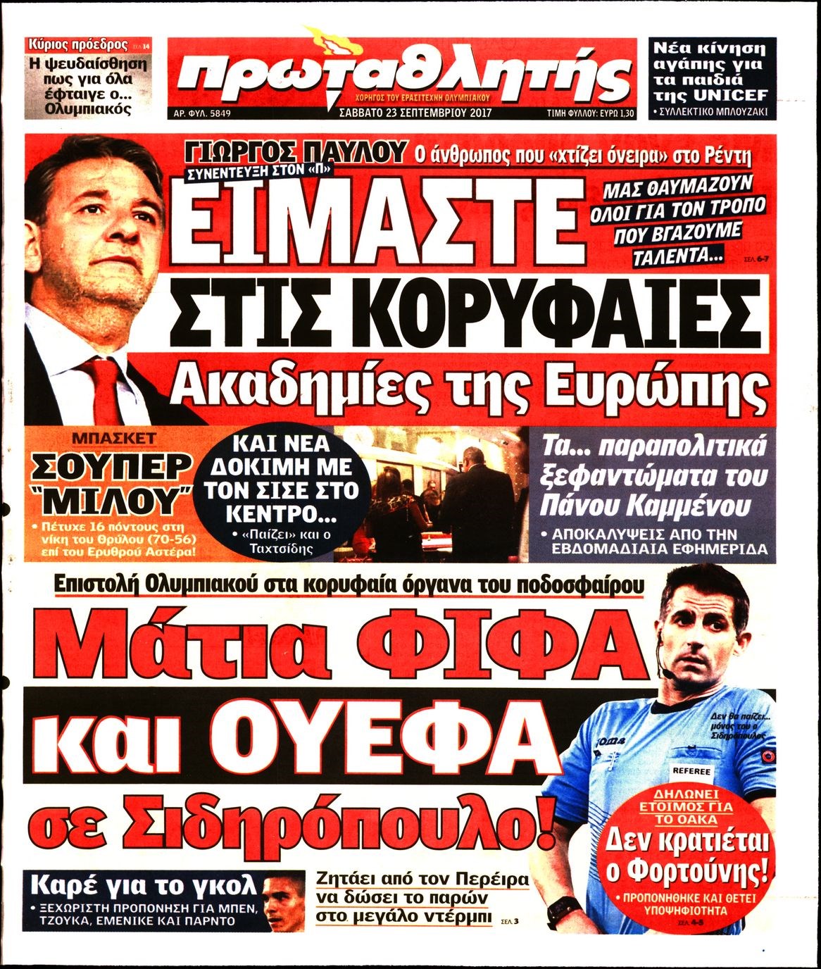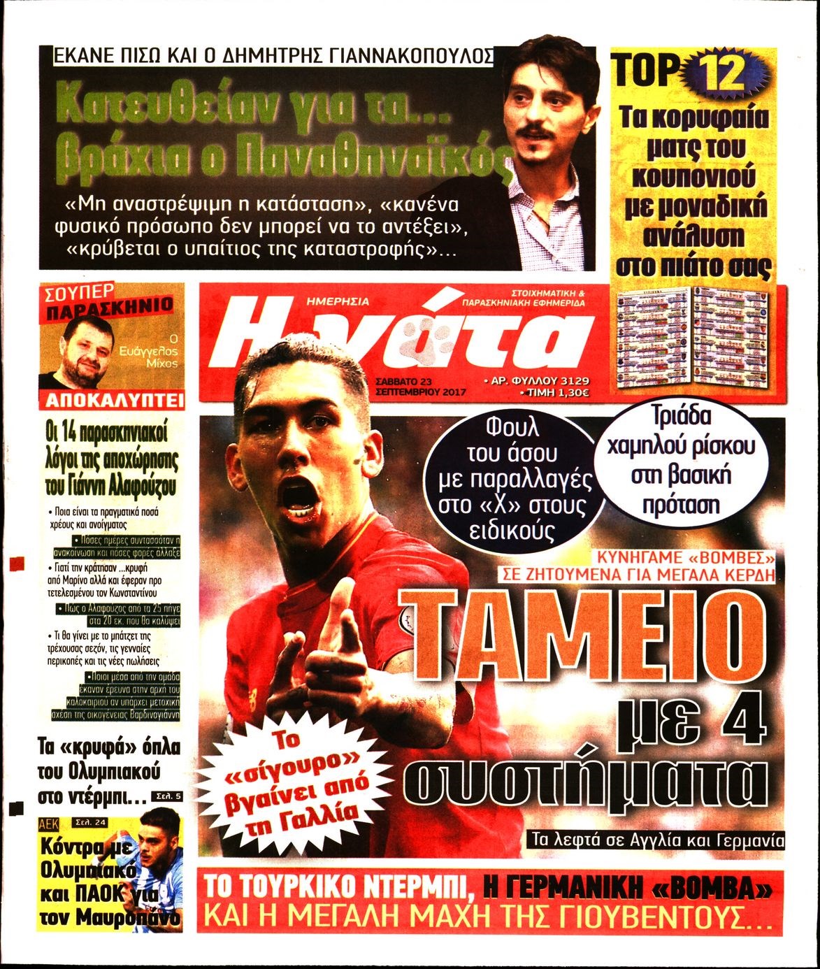 Οι αθλητικές εφημερίδες 23/9/2017 Enikos Newsroom 07:55, Σάββατο 23 Σεπτεμβρίου 2017 Media Διαβάστε τα σημερινά πρωτοσέλιδα των αθλητικών εφημερίδων: ΑΘΛΗΤΙΚΕΣ ΕΦΗΜΕΡΙΔΕΣ ΠΡΩΤΟΣΕΛΙΔΑ Μοιράσου το: σχολίασε κι εσύ (0 σχόλια) Ακολουθήστε το enikos.gr στο Google News και μάθετε πρώτοι όλες τις ειδήσεις Δείτε όλες τις τελευταίες ειδήσεις από την Ελλάδα και τον Κόσμο στο enikos.gr Ειδήσεις Ροή Ειδήσεων 8 ώρες πριν Χριστούγεννα στα μπλόκα: Επιμένουν στις κινητοποιήσεις τους οι αγρότες – Ανοίγουν τα διόδια το Σαββατοκύριακο 8 ώρες πριν Ουκρανία: Η άνευ προηγουμένου επίθεση σε ρωσικό τάνκερ στη Μεσόγειο και το μήνυμα προς στον Πούτιν – Το «μακρύ χέρι» του Κιέβου 7 ώρες πριν Πούτιν: Τα μηνύματα σε Ευρώπη και ΝΑΤΟ από το μαραθώνιο «σόου» του – Η απαίτηση για «σεβασμό» και η ειρήνη «με τους όρους» της Μόσχας 6 ώρες πριν ΗΠΑ: Η κυβέρνηση του Ντόναλντ Τραμπ άρχισε να δημοσιοποιεί τα αρχεία Έπσταϊν 7 ώρες πριν Άνω Λιόσια: Πυροβολισμοί σε επιχείρηση με χαλιά – Εντοπίστηκαν 10 κάλυκες 13 λεπτά πριν Αυγά: Πόσα μπορείτε να τρώτε την ημέρα με ασφάλεια για μέγιστη πρόσληψη πρωτεΐνης 43 λεπτά πριν Τα ζώδια σήμερα, Σάββατο 20 Δεκεμβρίου: Παρθένοι, το σύμπαν σας δίνει το κλειδί 7 ώρες πριν Ανακαλύφθηκαν αρχαία χρυσά νομίσματα 2.200 ετών που απεικονίζουν τον θεό Απόλλωνα – Η άγνωστη σύνδεση με τον Φίλιππο Β΄ της Μακεδονίας 8 ώρες πριν Ύπνος: Μια κρυφή κατάσταση του εγκεφάλου πριν από τον ύπνο μπορεί να είναι το “κλειδί” για υψηλή ευφυΐα και δημιουργικότητα 5 λεπτά πριν Σαρωτικοί οι έλεγχοι στους δρόμους ενόψει εορτών – Μπλόκα της τροχαίας σε κεντρικές αρτηρίες της Αττικής 13 λεπτά πριν Αυγά: Πόσα μπορείτε να τρώτε την ημέρα με ασφάλεια για μέγιστη πρόσληψη πρωτεΐνης 20 λεπτά πριν Σαν σήμερα 20 Δεκεμβρίου: Τα σημαντικότερα γεγονότα της ημέρας 24 λεπτά πριν Οι οικονομικές εφημερίδες 20/12/2025 30 λεπτά πριν Οι αθλητικές εφημερίδες 20/12/2025 ENIKOS NETWORK Το ΕΚΑΒ τιμήθηκε από την Ακαδημία Αθηνών για τα 40 χρόνια προσφοράς του Έχετε πραγματικά μεγάλη καρδιά; 10 χαρακτηριστικά όσων έχουν καλοσύνη Αναστολή μέτρων αναγκαστικής εκτέλεσης για κτηνοτρόφους που πλήττονται από την ευλογιά των αιγοπροβάτων Πλήρης επάρκεια προϊόντων στις λαϊκές της Αττικής, παρά τις αγροτικές κινητοποιήσεις – Τι απαντούν οι πωλητές Χαρτογραφώντας το «σημείο χωρίς επιστροφή»: Για πρώτη φορά αποκαλύπτεται με λεπτομέρεια το ακανθώδες όριο της ατμόσφαιρας τ... Η Google καταργεί τη λειτουργία «dark web report» – Πώς θα μπορούν οι χρήστες να διαγράφουν τα δεδομένα τους περισσότερα 05:48 , Σάββατο 20 Δεκεμβρίου 2025 Οι οικονομικές εφημερίδες 20/12/2025 Διαβάστε τα πρωτοσέλιδα από τις οικονομικές εφημερίδες, σήμερα 20/12/2025. 05:43 , Σάββατο 20 Δεκεμβρίου 2025 Οι αθλητικές εφημερίδες 20/12/2025 Διαβάστε τα πρωτοσέλιδα από τις αθλητικές εφημερίδες, σήμερα 20/12/2025. 05:38 , Σάββατο 20 Δεκεμβρίου 2025 Οι πολιτικές εφημερίδες 20/12/2025 Διαβάστε τα πρωτοσέλιδα από τις πολιτικές εφημερίδες, σήμερα 20/12/2025. 04:20 , Σάββατο 20 Δεκεμβρίου 2025 Αγγελική Νικολούλη: Τα συλλυπητήρια για την απώλεια της Ειρήνης Μαρινάκη Τα συλληπητήρια στον πρόεδρο του Mega, τον Βαγγέλη Μαρινάκη, για την απώλεια της μητέρας του Ε... ΤΕΛΕΥΤΑΙΕΣ ΕΙΔΗΣΕΙΣ 5 λεπτά πριν Σαρωτικοί οι έλεγχοι στους δρόμους ενόψει εορτών –... 13 λεπτά πριν Αυγά: Πόσα μπορείτε να τρώτε την ημέρα με ασφάλεια για... 20 λεπτά πριν Σαν σήμερα 20 Δεκεμβρίου: Τα σημαντικότερα γεγονότα... 24 λεπτά πριν Οι οικονομικές εφημερίδες 20/12/2025 30 λεπτά πριν Οι αθλητικές εφημερίδες 20/1