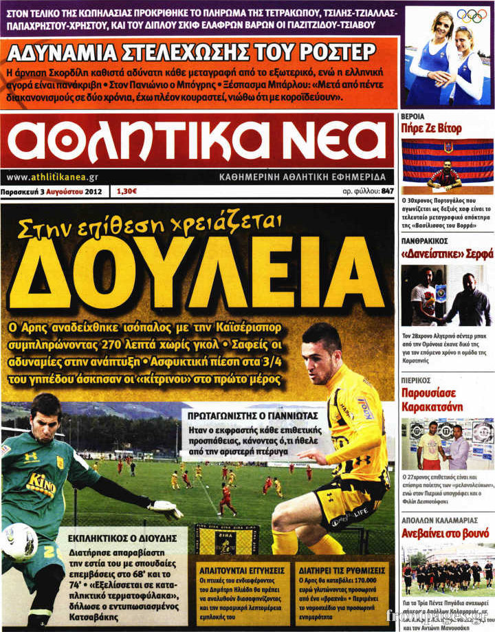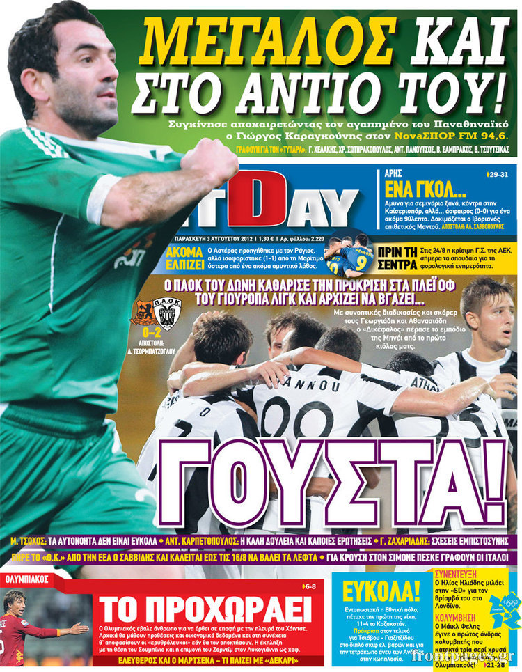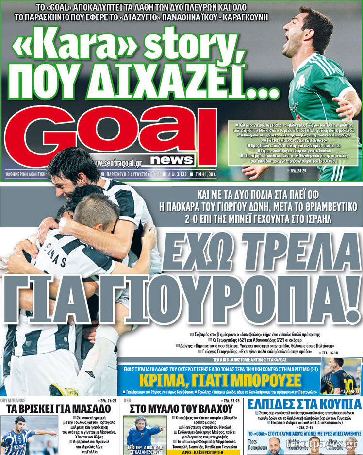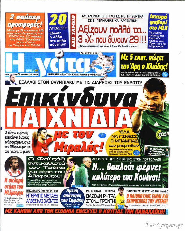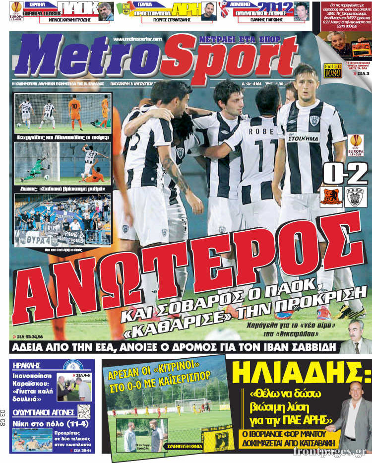 Τα σημερινά πρωτοσέλιδα των αθλητικών εφημερίδων.