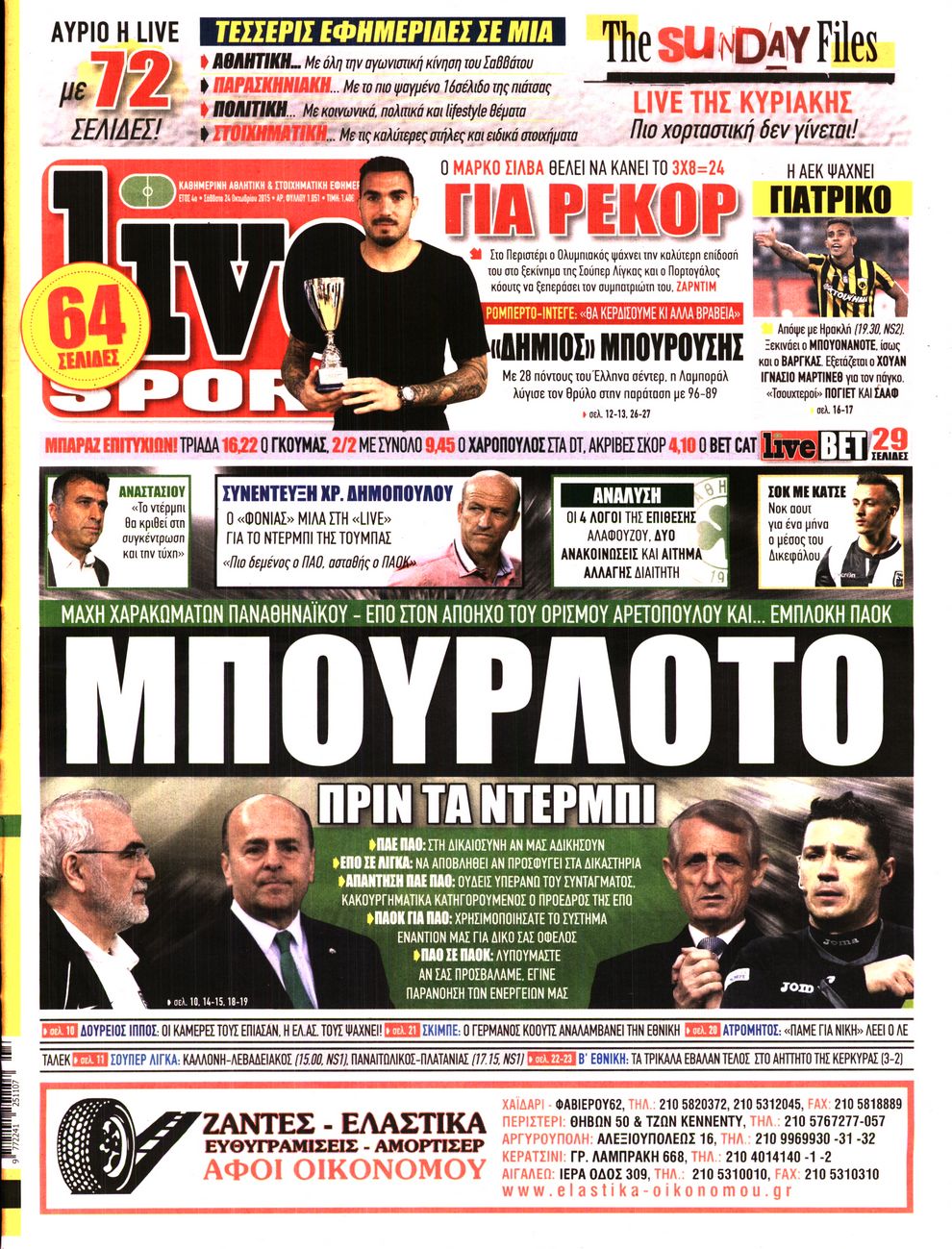 Οι αθλητικές εφημερίδες 24/10/2015 Enikos Newsroom 06:55, Σάββατο 24 Οκτωβρίου 2015 Media Διαβάστε τα σημερινά πρωτοσέλιδα των αθλητικών εφημερίδων. ΑΘΛΗΤΙΚΕΣ ΕΦΗΜΕΡΙΔΕΣ ΕΦΗΜΕΡΙΔΕΣ ΠΡΩΤΟΣΕΛΙΔΑ Μοιράσου το: σχολίασε κι εσύ (0 σχόλια) Ακολουθήστε το enikos.gr στο Google News και μάθετε πρώτοι όλες τις ειδήσεις Δείτε όλες τις τελευταίες ειδήσεις από την Ελλάδα και τον Κόσμο στο enikos.gr Ειδήσεις Ροή Ειδήσεων 20 λεπτά πριν Τσιάρας προς αγρότες: Τα μπλόκα και τα πείσματα δεν ωφελούν – Οι λύσεις περνούν μέσα από τον διάλογο 1 ώρα πριν Αρχεία Έπσταϊν: Οι συγκλονιστικές φωτογραφίες – Ο Μάικλ Τζάκσον, ο Μικ Τζάγκερ και ο Κέβιν Σπέισι ανάμεσα στους διάσημους που απεικονίζονται 2 ώρες πριν Νέες ταυτότητες: Μεγάλη αναμονή για ραντεβού στην Αττική – Τέλος τα ταξίδια εκτός Ελλάδος από τον Αύγουστο για όσους δεν έχουν αλλάξει 2 ώρες πριν Ινδία: Επτά ελέφαντες σκοτώθηκαν κατά τη σύγκρουση επιβατικού τρένου με κοπάδι 3 ώρες πριν Συνελήφθη οδηγός μηχανής που έτρεχε με 161 χλμ στη Συγγρού – Τον έπιασε το ραντάρ της Τροχαίας 3 ώρες πριν Μία νέα «χρυσή» περίοδος αρχίζει για 3 ζώδια από σήμερα – «Μία αναπάντεχη ευκαιρία οδηγεί στην επιτυχία» 4 ώρες πριν Αγχώνεται για το χριστουγεννιάτικο δώρο που πήρε στην πλούσια σύντροφό του – «Φοβάμαι πως θα το βρει φθηνιάρικο, φοράει βραχιόλια Cartier» 2 ώρες πριν Διαιτολόγος αποκαλύπτει 9 πρωινές συνήθειες που «λιώνουν» το κοιλιακό λίπος – «Υποστηρίζουν την υγιεινή απώλεια βάρους» 3 ώρες πριν Οι 7 φράσεις που δεν λένε ποτέ οι συναισθηματικά έξυπνοι άνθρωποι κατά τη διάρκεια ενός καβγά 11 λεπτά πριν «Μεγάλη Χίμαιρα»: Πότε κάνει πρεμιέρα η σειρά 18 λεπτά πριν Καλλιθέα: Έφοδος του «ελληνικού FBI» σε δύο καταστήματα stripshow – 5 συλλήψεις – Βίντεο 20 λεπτά πριν Τσιάρας προς αγρότες: Τα μπλόκα και τα πείσματα δεν ωφελούν – Οι λύσεις περνούν μέσα από τον διάλογο 25 λεπτά πριν Μεσσηνία: Μαχαιριές έπειτα από καβγά για οικονομικές διαφορές στον Πολύλοφο – Συνελήφθη 40χρονος 34 λεπτά πριν Αμαλιάδα: Συνελήφθη ο «εγκέφαλος» της κινηματογραφικής διάρρηξης κοσμηματοπωλείου ENIKOS NETWORK Γήρανση του εγκεφάλου: Νευροεπιστήμονες ανακάλυψαν τη 10λεπτη δραστηριότητα που μπορεί να τη σταματήσει Είστε μόνιμα απρόσεκτοι; 3 σημάδια που δείχνουν ότι μπορεί να είναι σύμπτωμα πάθησης Χειμερινές εκπτώσεις 2026: Πρεμιέρα στις 12 Ιανουαρίου – Πόσο θα διαρκέσουν και τι πρέπει να γνωρίζουν οι καταναλωτές Χρήστος Δήμας: Στα 2,5 εκατ. ευρώ την ημέρα το κόστος από το άνοιγμα των διοδίων από τους αγρότες – Θα αξιώσουν αποζημίωση ... Χαρτογραφώντας το «σημείο χωρίς επιστροφή»: Για πρώτη φορά αποκαλύπτεται με λεπτομέρεια το ακανθώδες όριο της ατμόσφαιρας τ... Η Google καταργεί τη λειτουργία «dark web report» – Πώς θα μπορούν οι χρήστες να διαγράφουν τα δεδομένα τους περισσότερα 12:53 , Σάββατο 20 Δεκεμβρίου 2025 Να μ’ αγαπάς: Το παρελθόν έρχεται στο φως – Καταιγιστικές εξελίξεις στα τελευταία επεισόδια του 2025 Ο Άγγελος αποκαλύπτεται, η Φωτεινή ανησυχεί για τον Λευτέρη και η Ζωή έρχεται αντιμέτωπη με το... 11:41 , Σάββατο 20 Δεκεμβρίου 2025 «Η αγάπη δεν χάνεται ποτέ»: Η μικρού μήκους ταινία κινουμένων σχεδίων που θέτει ερωτήματα για τη ζωή και τον θάνατο Ο θάνατος είναι ένα από τα πιο σκληρά θέματα που καλείται να διαχειριστεί κάποιος στη διάρκεια... 09:30 , Σάββατο 20 Δεκεμβρίου 2025 «Porto Leone: Στη γειτονιά με τα κόκκινα φανάρια» – Ο Χρόνης αποκαλύπτει στην Αλεξάνδρα το μυστικό για το παιδί της Λένας Η μεγάλη δραματική σειρά του Apha «Port