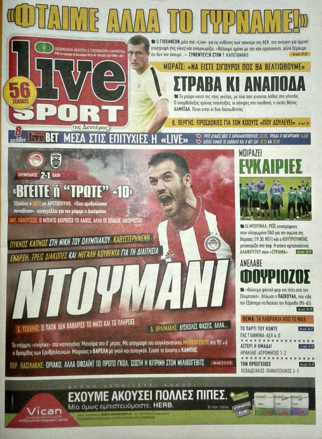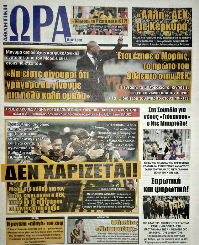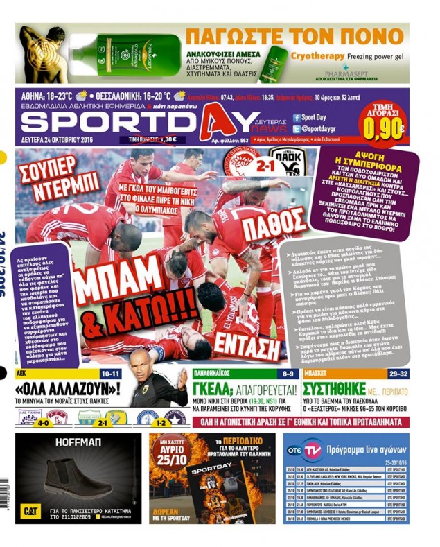 Οι αθλητικές εφημερίδες 24/10/2016 Κώστας Τεό 03:34, Δευτέρα 24 Οκτωβρίου 2016 Media Διαβάστε τα σημερινά πρωτοσέλιδα των αθλητικών εφημερίδων: ΑΘΛΗΤΙΚΕΣ ΕΦΗΜΕΡΙΔΕΣ ΠΡΩΤΟΣΕΛΙΔΑ Μοιράσου το: σχολίασε κι εσύ (0 σχόλια) Ακολουθήστε το enikos.gr στο Google News και μάθετε πρώτοι όλες τις ειδήσεις Δείτε όλες τις τελευταίες ειδήσεις από την Ελλάδα και τον Κόσμο στο enikos.gr Ειδήσεις Ροή Ειδήσεων 2 ώρες πριν ΣΥΡΙΖΑ: Διαγράφεται ο ευρωβουλευτής Νίκος Παππάς μετά την μήνυση δημοσιογράφου για ξυλοδαρμό 1 ώρα πριν Τουρκία: Επιδιώκει την επιστροφή των S-400 στη Ρωσία – Οι αμερικανικές πιέσεις 1 ώρα πριν ΟΠΕΚΕΠΕ: Ελεύθερες με όρους η σύζυγος και η αδελφή του φερόμενου αρχηγού – Τι υποστήριξαν 3 ώρες πριν Πώς στήθηκε η επιχείρηση «Ίπαλλος» που οδήγησε στη σύλληψη του «Έλληνα Εσκομπάρ» – «Ο πόλεμος ενάντια στους εμπόρους ναρκωτικών θα συνεχιστεί» 3 ώρες πριν Κυψέλη: Στη φυλακή η 16χρονη που μαχαίρωσε συμμαθήτριά της 4 ώρες πριν Τα 3 ζώδια που θα δουν τη ζωή τους να αλλάζει ριζικά το 2026 – «Όλα γίνονται καλύτερα σταδιακά» 9 ώρες πριν «Δεν είχα κλάψει από τότε που διαγνώστηκα με καρκίνο, ώσπου ένα τηλεφώνημα με έκανε να λυγίσω» – Η συγκλονιστική εξομολόγηση ενός άνδρα 4 ώρες πριν Ο σπάνιος σεισμός που έλυσε τα χέρια των επιστημόνων – Αποκάλυψε ακριβώς όσα αναζητούσαν 10 ώρες πριν 20 χρόνια τα Χριστούγεννα ξεκινούν στα Public με μεγάλη ποικιλία σε δώρα! 6 λεπτά πριν Εξεταστική για ΟΠΕΚΕΠΕ: Μεγάλη ένταση μεταξύ Κωνσταντοπούλου και Λαζαρίδη – ΒΙΝΤΕΟ 11 λεπτά πριν Νίκος Γιαννόπουλος: «Τα γεγονότα μιλούν από μόνα τους» – Η ανάρτηση του δημοσιογράφου που μήνυσε τον Νίκο Παππά για ξυλοδαρμό 16 λεπτά πριν Άγιος Παντελεήμονας: Συνελήφθησαν 14 μέλη εγκληματικής οργάνωσης που διακινούσε ναρκωτικά σε πλατεία 22 λεπτά πριν Μητσοτάκης για την Ακρινή Κοζάνης: Η περιβαλλοντική ευθύνη μπορεί να συμβαδίσει με την καλύτερη ποιότητα ζωής 27 λεπτά πριν Τροχαίο δυστύχημα στη Χαλκιδική: Νεκρός 42χρονος οδηγός μηχανής έπειτα από σύγκρουση με αυτοκίνητο ENIKOS NETWORK 2,6 εκατομμύρια πολίτες έχουν ήδη εμβολιαστεί κατά της γρίπης Σοβαροί κίνδυνοι από τη λάθος χορήγηση φαρμάκου για τις αιμορραγίες-Συστάσεις προς τους γιατρούς Προκήρυξη ΑΣΕΠ για 4.276 μόνιμες προσλήψεις στο Δημόσιο: Βγήκαν τα προσωρινά αποτελέσματα – Ποιοι μπορούν να υποβάλουν ένσ... Υπουργείο Εργασίας: Ο οδικός χάρτης για την ενίσχυση του πλαισίου των Συλλογικών Διαπραγματεύσεων – Οι 5 άξονες του σχεδίου... Χαρτογραφώντας το «σημείο χωρίς επιστροφή»: Για πρώτη φορά αποκαλύπτεται με λεπτομέρεια το ακανθώδες όριο της ατμόσφαιρας τ... Η Google καταργεί τη λειτουργία «dark web report» – Πώς θα μπορούν οι χρήστες να διαγράφουν τα δεδομένα τους περισσότερα 12:35 , Τετάρτη 17 Δεκεμβρίου 2025 Μίρκα Παπακωνσταντίνου: «Δεν ήμουν αισιόδοξη για τα νούμερα – Είμαι ρεαλίστρια» Στα γυρίσματα του εορταστικού επεισοδίου της αγαπημένης σειράς “Το Σόι Σου”, βρέθηκε η κάμερα ... 12:12 , Τετάρτη 17 Δεκεμβρίου 2025 Ακούστε την εκπομπή του Νίκου Χατζηνικολάου 17/12/2025 Ακούστε την εκπομπή του Νίκου Χατζηνικολάου στον ραδιοφωνικό σταθμό RealFm 97,8, την Τετάρτη 1... 11:35 , Τετάρτη 17 Δεκεμβρίου 2025 Home Alone: Το σπίτι της ταινίας θα ανακαινιστεί – Επιστροφή στην αισθητική της δεκαετίας του ’90 Οι νέοι ιδιοκτήτες του πραγματικού σπιτιού που παρουσιάζεται στην κλασική ταινία του 1990 «Hom... 11:25 , Τετάρτη 17 Δεκεμβρίου 2025 Grand Hotel: Απόψε το τελευταίο επεισόδιο της χρονιάς – Όλα τα μυστικά μένουν εδώ Το τελευταίο επεισόδ