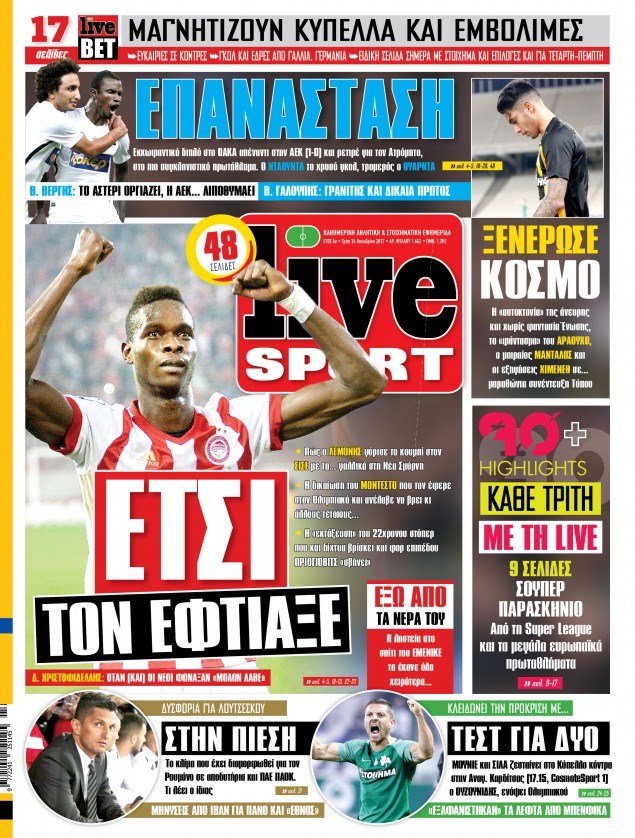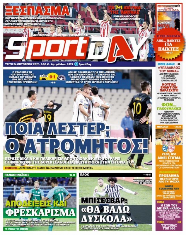 Οι αθλητικές εφημερίδες 24/10/2017 Κώστας Τεό 05:07, Τρίτη 24 Οκτωβρίου 2017 Media Διαβάστε τα σημερινά πρωτοσέλιδα των αθλητικών εφημερίδων: ΑΘΛΗΤΙΚΕΣ ΕΦΗΜΕΡΙΔΕΣ ΠΡΩΤΟΣΕΛΙΔΑ Μοιράσου το: σχολίασε κι εσύ (0 σχόλια) Ακολουθήστε το enikos.gr στο Google News και μάθετε πρώτοι όλες τις ειδήσεις Δείτε όλες τις τελευταίες ειδήσεις από την Ελλάδα και τον Κόσμο στο enikos.gr Ειδήσεις Ροή Ειδήσεων 27 λεπτά πριν Μεσόγειος: Η διαδρομή του ρωσικού τάνκερ «Qendil» και η στοχευμένη επίθεση της Ουκρανίας με drone – Ο Πούτιν προειδοποίησε για αντίποινα 2 ημέρες πριν 20 χρόνια τα Χριστούγεννα ξεκινούν στα Public με μεγάλη ποικιλία σε δώρα! 1 ώρα πριν Από το Ορμένιο ως τα Μάλγαρα κι από τη Σιάτιστα μέχρι τη Νίκαια: Μπλόκα σε όλη την Ελλάδα – Το Σάββατο ανοίγουν τα διόδια οι αγρότες 1 ώρα πριν «Έλληνας Εσκομπάρ»: Φωτογραφίες με τους 4 τόνους κοκαΐνης που κατασχέθηκαν από το σκάφος «Ουρανία» 3 ώρες πριν Πούτιν: Σαρκαστικά μηνύματα, παράπονα και απρόοπτα στη συνέντευξη Τύπου – Η πρόταση γάμου on air και οι ερωτήσεις για τα αγγούρια και τους… εξωγήινους 2 ώρες πριν Τα 5 ζώδια που ευνοούνται στην ερωτική ζωή τους την επόμενη εβδομάδα – «Η ενέργεια του Αιγόκερου φέρνει αγάπη και σταθερότητα» 7 ώρες πριν Γεμάτος νεροχύτης; 5 σοβαρές ευθύνες που «φοβίζουν» όσους αφήνουν άπλυτα πιάτα 6 ώρες πριν Ειδικός μοιράζεται 6 κόλπα για να διατηρείστε σε φόρμα με πάνω από 40 ώρες εργασίας την εβδομάδα: «Προπονηθείτε πριν από τη δουλειά, όχι μετά» 21 λεπτά πριν Αττική: Θρίλερ με νεκρό βρέφος 5 μηνών – Κοιμόταν στο ίδιο κρεβάτι με τους γονείς του 7 λεπτά πριν Κερατσίνι: Αστυνομικός εκτός υπηρεσίας απέτρεψε κλοπή μηχανών – Συνελήφθησαν τρεις ανήλικοι 10 λεπτά πριν Το σόι σου: Ο Άρης έρχεται στην Ελλάδα για τις γιορτές των Χριστουγέννων – Τι θα δούμε στο αποψινό εορταστικό επεισόδιο 17 λεπτά πριν ΠΑΣΟΚ σε Μαρινάκη: Δεν νομιμοποιούμε πολιτικές επιλογές που μεταφέρουν το πρόβλημα από υπηρεσία σε υπηρεσία 21 λεπτά πριν Αττική: Θρίλερ με νεκρό βρέφος 5 μηνών – Κοιμόταν στο ίδιο κρεβάτι με τους γονείς του 27 λεπτά πριν Μεσόγειος: Η διαδρομή του ρωσικού τάνκερ «Qendil» και η στοχευμένη επίθεση της Ουκρανίας με drone – Ο Πούτιν προειδοποίησε για αντίποινα ENIKOS NETWORK «Η σούπερ» γρίπη εξαπλώνεται στην Ευρώπη-Στοιχεία για την αποτελεσματικότητα του εμβολίου από το ECDC ΕΛΣΤΑΤ: Αύξηση κατά 1,7% των επαγγελματιών υγείας το 2024 Η απάντηση της κυβέρνησης στα αιτήματα των αγροτών: 16 έχουν ικανοποιηθεί, 4 βρίσκονται υπό επεξεργασία και 7 δεν είναι εφι... Μισθολογική διαφάνεια: Το 68% των εργαζομένων αγνοεί τη νέα οδηγία – Αναλυτικά τα στοιχεία έρευνας Χαρτογραφώντας το «σημείο χωρίς επιστροφή»: Για πρώτη φορά αποκαλύπτεται με λεπτομέρεια το ακανθώδες όριο της ατμόσφαιρας τ... Η Google καταργεί τη λειτουργία «dark web report» – Πώς θα μπορούν οι χρήστες να διαγράφουν τα δεδομένα τους περισσότερα 18:11 , Παρασκευή 19 Δεκεμβρίου 2025 Το σόι σου: Ο Άρης έρχεται στην Ελλάδα για τις γιορτές των Χριστουγέννων – Τι θα δούμε στο αποψινό εορταστικό επεισόδιο Ένα απολαυστικό, εορταστικό επεισόδιο της σειράς “Το σόι σου”, γεμάτο ευτράπελα αλ... 15:15 , Παρασκευή 19 Δεκεμβρίου 2025 Την Κυριακή με τη Realnews: Ό,τι και αν αγοράσεις, σκανάρεις και κερδίζεις! Την Κυριακή με τη Realnews: Ό,τι και αν αγοράσεις, σκανάρεις και κερδίζεις! Με το PADU app, το... 08:00 , Παρασκευή 19 Δεκεμβρίου 2025 Την Κυριακή με τη Realnews: Δωροεπιταγή 10€ Δωροεπιταγή αξίας 10€ για αγορές άνω των 60€ από τα πολυκαταστήματα FactoryOutlet H προσφο