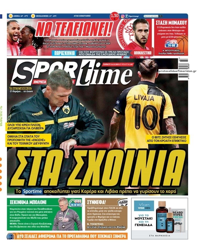 Οι αθλητικές εφημερίδες 24/10/2020 Σήφης Γαρυφαλάκης 08:43, Σάββατο 24 Οκτωβρίου 2020 Media Διαβάστε τα πρωτοσέλιδα των αθλητικών εφημερίδων… ΕΦΗΜΕΡΙΔΕΣ ΠΡΩΤΟΣΕΛΙΔΑ ΠΡΩΤΟΣΕΛΙΔΑ ΕΦΗΜΕΡΙΔΩΝ Μοιράσου το: σχολίασε κι εσύ (0 σχόλια) Ακολουθήστε το enikos.gr στο Google News και μάθετε πρώτοι όλες τις ειδήσεις Δείτε όλες τις τελευταίες ειδήσεις από την Ελλάδα και τον Κόσμο στο enikos.gr Ειδήσεις Ροή Ειδήσεων 2 ώρες πριν ΣΥΡΙΖΑ: Διαγράφεται ο ευρωβουλευτής Νίκος Παππάς μετά την μήνυση δημοσιογράφου για ξυλοδαρμό 37 λεπτά πριν Τουρκία: Επιδιώκει την επιστροφή των S-400 στη Ρωσία – Οι αμερικανικές πιέσεις 48 λεπτά πριν ΟΠΕΚΕΠΕ: Ελεύθερες με όρους η σύζυγος και η αδελφή του φερόμενου αρχηγού – Τι υποστήριξαν 3 ώρες πριν Πώς στήθηκε η επιχείρηση «Ίπαλλος» που οδήγησε στη σύλληψη του «Έλληνα Εσκομπάρ» – «Ο πόλεμος ενάντια στους εμπόρους ναρκωτικών θα συνεχιστεί» 3 ώρες πριν Κυψέλη: Στη φυλακή η 16χρονη που μαχαίρωσε συμμαθήτριά της 3 ώρες πριν Τα 3 ζώδια που θα δουν τη ζωή τους να αλλάζει ριζικά το 2026 – «Όλα γίνονται καλύτερα σταδιακά» 8 ώρες πριν «Δεν είχα κλάψει από τότε που διαγνώστηκα με καρκίνο, ώσπου ένα τηλεφώνημα με έκανε να λυγίσω» – Η συγκλονιστική εξομολόγηση ενός άνδρα 4 ώρες πριν Ο σπάνιος σεισμός που έλυσε τα χέρια των επιστημόνων – Αποκάλυψε ακριβώς όσα αναζητούσαν 10 ώρες πριν 20 χρόνια τα Χριστούγεννα ξεκινούν στα Public με μεγάλη ποικιλία σε δώρα! 4 λεπτά πριν Μητσοτάκης: Το γούρι με τα αρχικά του για το 2026 που έδωσε στους βουλευτές της ΝΔ – ΦΩΤΟ 8 λεπτά πριν Καβάλα – Παναθηναϊκός 1-2: Ο Ταμπόρδα έστειλε τους Πράσινους απευθείας στα προημιτελικά του Κυπέλλου Ελλάδας 13 λεπτά πριν Δημήτρης Ήμελλος: Η συγκινητική ανάρτηση της αδελφής του, για τον ένα χρόνο από τον θάνατό του – «Πήγες στον Θεό για να μας θυμίσεις…» 18 λεπτά πριν Κρήτη: Η ανακοίνωση της ΕΛΑΣ για την σύλληψη του 54χρονου – Ζήτησε 5.000 ευρώ από την οικογένεια του 33χρονου γιατρού για να τον βρει μέσω «κβαντικής τεχνολογίας» 22 λεπτά πριν Διπλωματικές πηγές: Το πρώτο τρίμηνο του 2026 το Ανώτατο Συμβούλιο Συνεργασίας Ελλάδας-Τουρκίας ENIKOS NETWORK 2,6 εκατομμύρια πολίτες έχουν ήδη εμβολιαστεί κατά της γρίπης Σοβαροί κίνδυνοι από τη λάθος χορήγηση φαρμάκου για τις αιμορραγίες-Συστάσεις προς τους γιατρούς Έρχεται νέα ενίσχυση 17.500 ευρώ από τη ΔΥΠΑ για ανέργους- Όλες οι λεπτομέρειες «Αναταράξεις» στην εφοδιαστική αλυσίδα από τα μπλόκα: Επιστολή του Συνδέσμου Θεσσαλικών Βιομηχανιών στον πρωθυπουργό -Τι αν... Χαρτογραφώντας το «σημείο χωρίς επιστροφή»: Για πρώτη φορά αποκαλύπτεται με λεπτομέρεια το ακανθώδες όριο της ατμόσφαιρας τ... Η Google καταργεί τη λειτουργία «dark web report» – Πώς θα μπορούν οι χρήστες να διαγράφουν τα δεδομένα τους περισσότερα 12:35 , Τετάρτη 17 Δεκεμβρίου 2025 Μίρκα Παπακωνσταντίνου: «Δεν ήμουν αισιόδοξη για τα νούμερα – Είμαι ρεαλίστρια» Στα γυρίσματα του εορταστικού επεισοδίου της αγαπημένης σειράς “Το Σόι Σου”, βρέθηκε η κάμερα ... 12:12 , Τετάρτη 17 Δεκεμβρίου 2025 Ακούστε την εκπομπή του Νίκου Χατζηνικολάου 17/12/2025 Ακούστε την εκπομπή του Νίκου Χατζηνικολάου στον ραδιοφωνικό σταθμό RealFm 97,8, την Τετάρτη 1... 11:35 , Τετάρτη 17 Δεκεμβρίου 2025 Home Alone: Το σπίτι της ταινίας θα ανακαινιστεί – Επιστροφή στην αισθητική της δεκαετίας του ’90 Οι νέοι ιδιοκτήτες του πραγματικού σπιτιού που παρουσιάζεται στην κλασική ταινία του 1990 «Hom... 11:25 , Τετάρτη 17 Δεκεμβρίου 2025 Grand Hotel: Απόψε το τελευταίο επεισόδιο της χρονιάς – Όλα τα μυστικά 