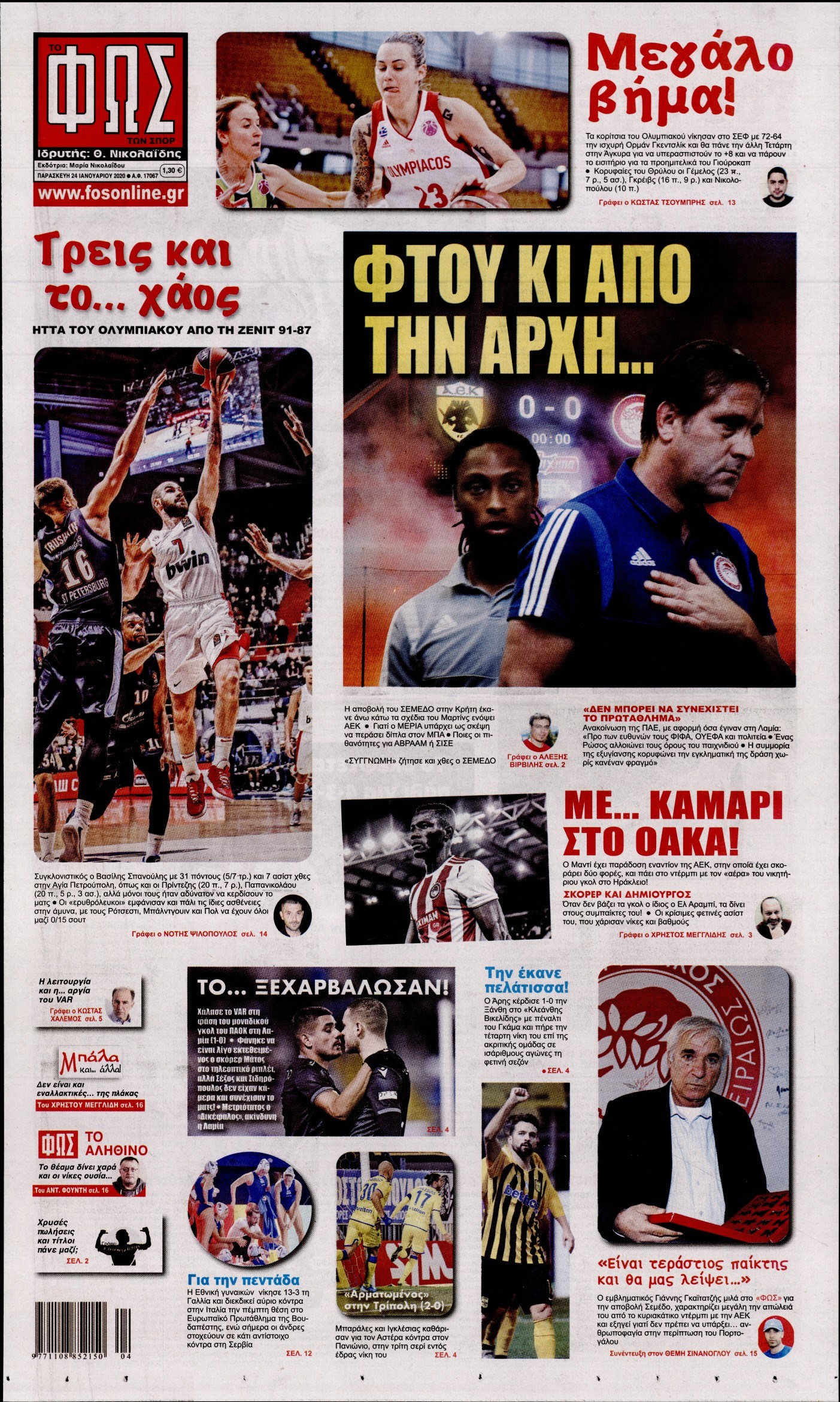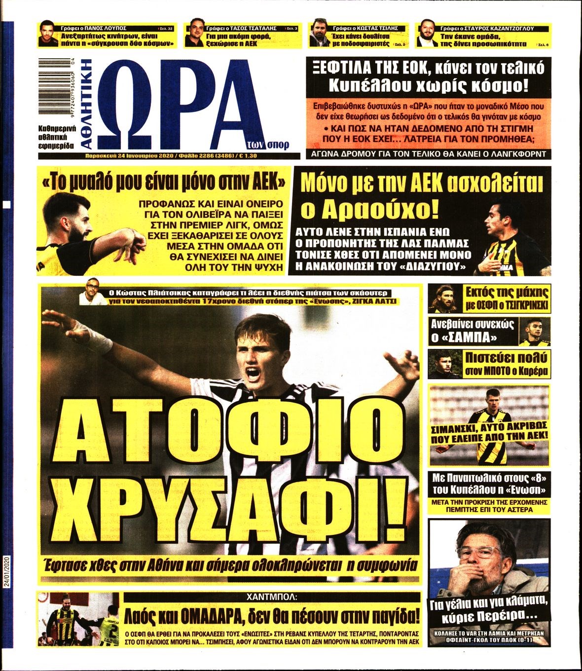 Οι αθλητικές εφημερίδες 24/1/20 Διονύσης Νίκκας 06:49, Παρασκευή 24 Ιανουαρίου 2020 Media Διαβάστε τα πρωτοσέλιδα των αθλητικών εφημερίδων… ΑΘΛΗΤΙΚΕΣ ΕΦΗΜΕΡΙΔΕΣ Μοιράσου το: σχολίασε κι εσύ (0 σχόλια) Ακολουθήστε το enikos.gr στο Google News και μάθετε πρώτοι όλες τις ειδήσεις Δείτε όλες τις τελευταίες ειδήσεις από την Ελλάδα και τον Κόσμο στο enikos.gr Ειδήσεις Ροή Ειδήσεων 4 ώρες πριν Μεσόγειος: Η διαδρομή του ρωσικού τάνκερ «Qendil» και η στοχευμένη επίθεση της Ουκρανίας με drone – Ο Πούτιν προειδοποίησε για αντίποινα 52 λεπτά πριν Αγρότες: Έκλεισαν για μία ώρα την παρακαμπτήρια της Ιόνιας Οδού στη θέση Χαλίκι 2 ώρες πριν Εμπλοκή και αερομαχίες με οπλισμένα τουρκικά F-16 στο Αιγαίο 2 ώρες πριν Πούτιν: «Ναι, είμαι ερωτευμένος» – Βίντεο από τη σπάνια προσωπική παραδοχή του 56 λεπτά πριν Ανδρέας Λυκουρέντζος: Υπέβαλε την παραίτησή του ο πρόεδρος του ΕΛΓΑ, αλλά δεν έγινε δεκτή – Όλο το παρασκήνιο 1 ώρα πριν Αριθμολογία: Οι άνθρωποι που έχουν γεννηθεί αυτές τις 4 ημερομηνίες, συχνά παρεξηγούνται – «Η καλοσύνη τους κρύβει τεράστια δύναμη» 3 ώρες πριν Μήπως έχετε χάσει τον εαυτό σας στη σχέση σας; 7 «αθόρυβες» υποχωρήσεις που μάλλον κάνατε, χωρίς να το συνειδητοποιήσετε 2 ώρες πριν Ξεχάστε το καθάρισμα το Σαββατοκύριακο: Ο «κανόνας των 20 λεπτών» που θα σας λύσει τα χέρια 5 ώρες πριν Κουίζ για την παλιά Αθήνα: Αναγνωρίζετε την περιοχή; Έχετε περάσει 100% από εκεί 6 λεπτά πριν Ύπνος: Μια κρυφή κατάσταση του εγκεφάλου πριν από τον ύπνο μπορεί να είναι το “κλειδί” για υψηλή ευφυΐα και δημιουργικότητα 11 λεπτά πριν ΕΕ: «Κάποια στιγμή θα χρησιμοποιήσουμε τα ρωσικά περιουσιακά στοιχεία» δήλωσε ο πρόεδρος του ΕΛΚ 15 λεπτά πριν Conference League: Καλύτερη επίθεση η ΑΕΚ στη διοργάνωση και 2η σε προσπάθειες στην εστία – Ξεχωρίζουν Πινέδα, Ελίασον και Ρότα 17 λεπτά πριν Έγκυος η Άννα Κορακάκη: «Η οικογένειά μας μεγαλώνει…» – Η αποκάλυψη για το φύλο του μωρού 24 λεπτά πριν Τραγωδία στο Βελεστίνο: Πέθανε ο αντιδήμαρχος Γιάννης Παπαϊωάννου ENIKOS NETWORK Το ΕΚΑΒ τιμήθηκε από την Ακαδημία Αθηνών για τα 40 χρόνια προσφοράς του Έχετε πραγματικά μεγάλη καρδιά; 10 χαρακτηριστικά όσων έχουν καλοσύνη Όμιλος ΔΕΗ: Νέα ορόσημα και ενισχυμένη διαφάνεια στην ετήσια Έκθεση Βιώσιμης Ανάπτυξης Έρχονται νέες προσλήψεις σε Δήμο – Όλες οι λεπτομέρειες Χαρτογραφώντας το «σημείο χωρίς επιστροφή»: Για πρώτη φορά αποκαλύπτεται με λεπτομέρεια το ακανθώδες όριο της ατμόσφαιρας τ... Η Google καταργεί τη λειτουργία «dark web report» – Πώς θα μπορούν οι χρήστες να διαγράφουν τα δεδομένα τους περισσότερα 20:37 , Παρασκευή 19 Δεκεμβρίου 2025 Don’t Forget The Lyrics: Η Έλλη Κοκκίνου υποδέχεται 4 παίκτες που θα κάνουν τα πάντα για να μη χάσουν ούτε… μισή λέξη από τους στίχους Το «Don’t Forget The Lyrics» επιστρέφει απόψε, Παρασκευή 19 Δεκεμβρίου, στις 21:00 με νέο επει... 19:31 , Παρασκευή 19 Δεκεμβρίου 2025 GNTM: Απόψε ο μεγάλος τελικός για τους 4 φιναλίστ Έπειτα από μήνες γεμάτους μόδα, δημιουργία και έντονες αναμετρήσεις, το GNTM 2025 κορυφώνεται,... 18:11 , Παρασκευή 19 Δεκεμβρίου 2025 Το σόι σου: Ο Άρης έρχεται στην Ελλάδα για τις γιορτές των Χριστουγέννων – Τι θα δούμε στο αποψινό εορταστικό επεισόδιο Ένα απολαυστικό, εορταστικό επεισόδιο της σειράς “Το σόι σου”, γεμάτο ευτράπελα αλ... 15:15 , Παρασκευή 19 Δεκεμβρίου 2025 Την Κυριακή με τη Realnews: Ό,τι και αν αγοράσεις, σκανάρεις και κερδίζεις! Την Κυριακή με τη Realnews: Ό,τι και αν αγοράσεις, σκανάρεις και κερδίζεις! Με το PADU app, το... ΤΕΛΕΥΤΑΙΕΣ ΕΙΔΗΣΕΙΣ 6