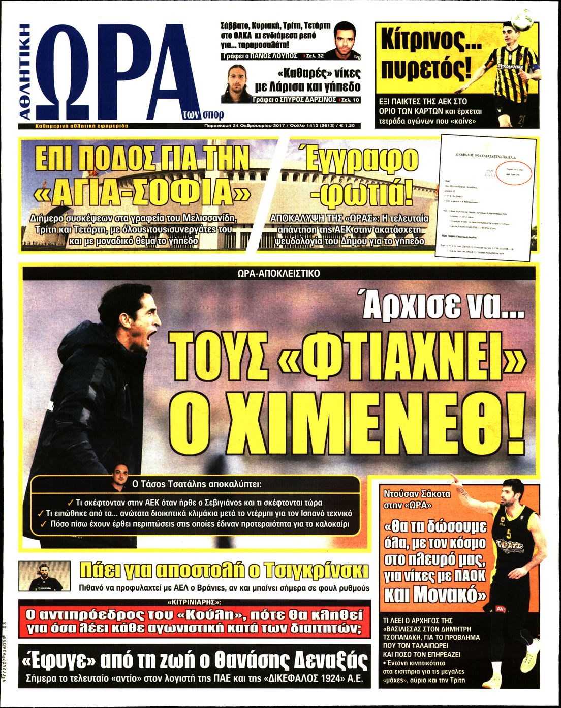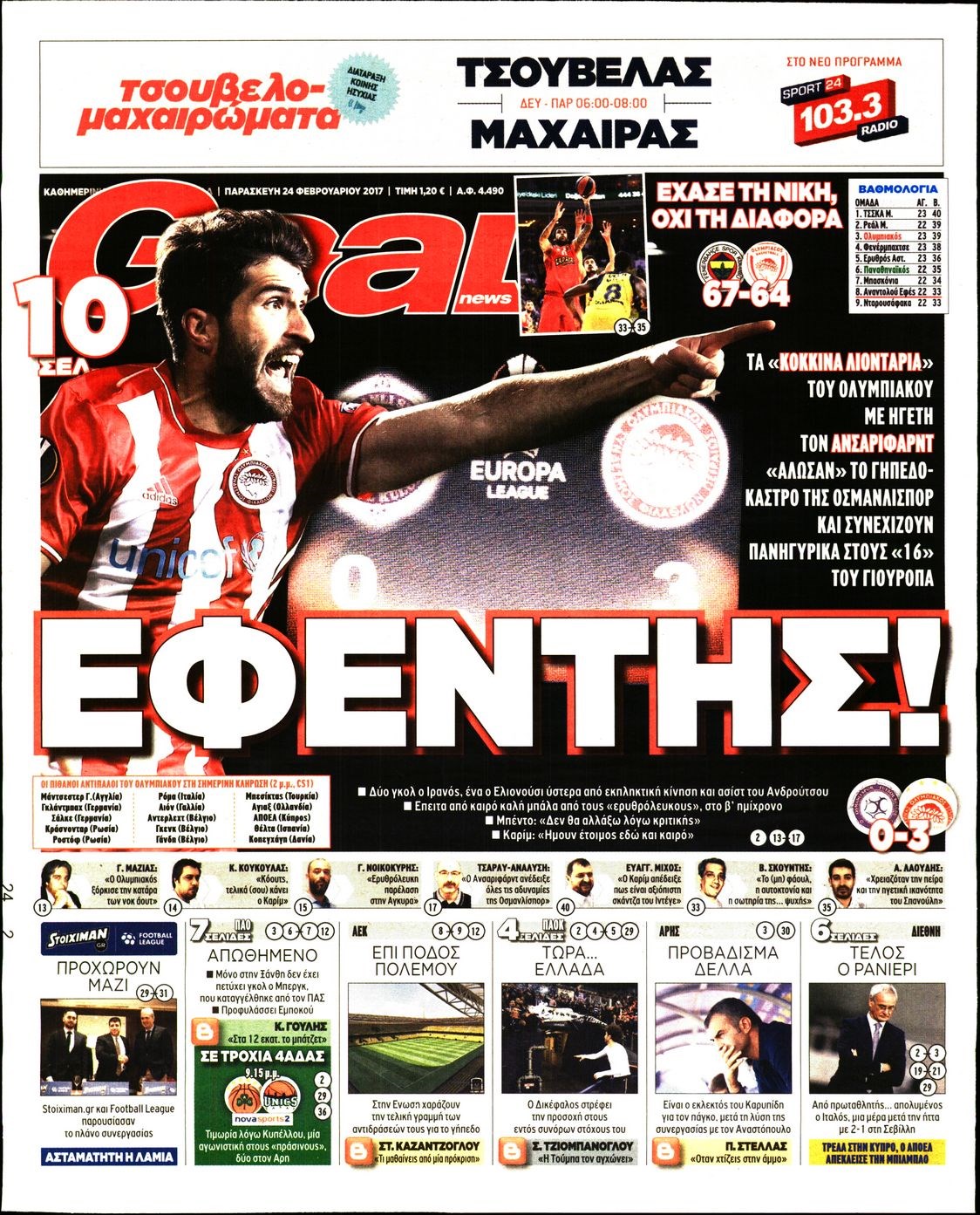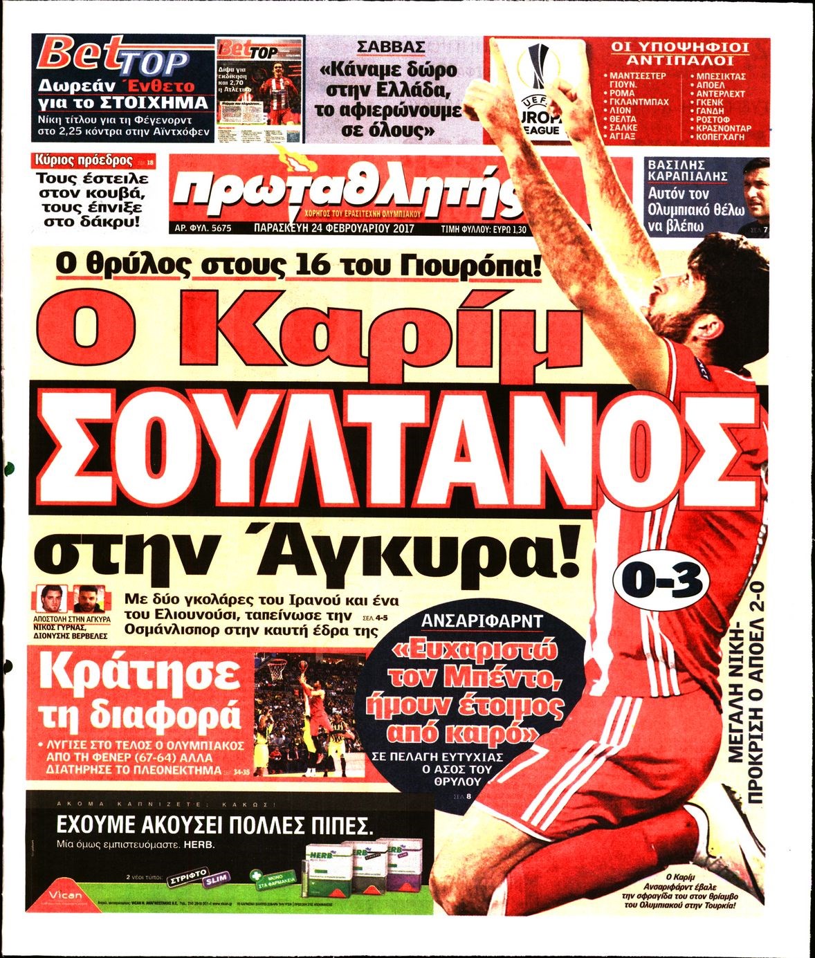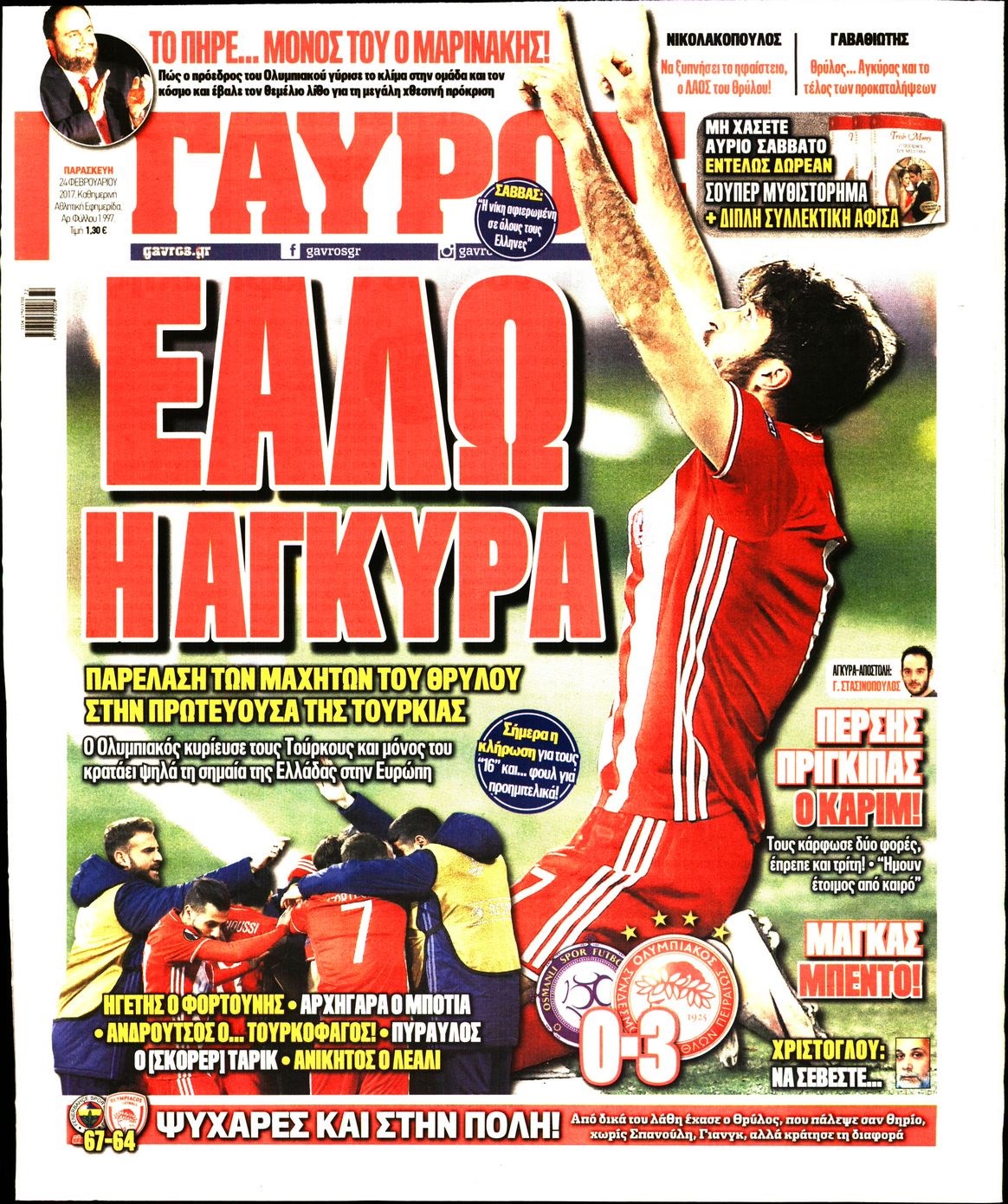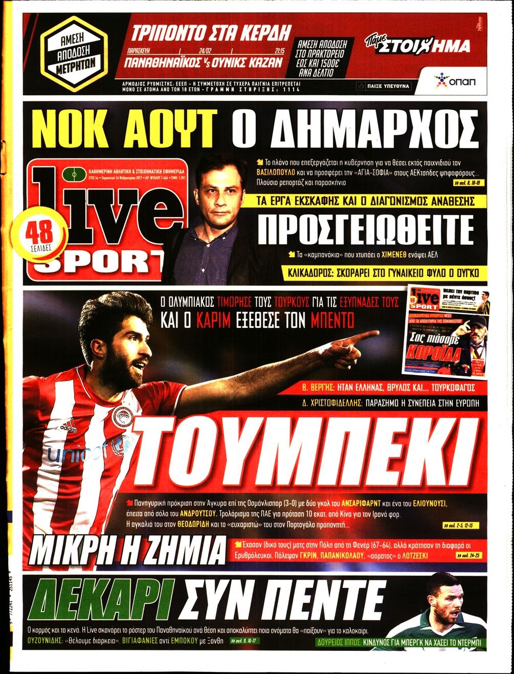 Οι αθλητικές εφημερίδες 24/2/2017 Enikos Newsroom 06:41, Παρασκευή 24 Φεβρουαρίου 2017 Media Διαβάστε τα σημερινά πρωτοσέλιδα των αθλητικών εφημερίδων: ΑΘΛΗΤΙΚΕΣ ΕΦΗΜΕΡΙΔΕΣ ΠΡΩΤΟΣΕΛΙΔΑ Μοιράσου το: σχολίασε κι εσύ (0 σχόλια) Ακολουθήστε το enikos.gr στο Google News και μάθετε πρώτοι όλες τις ειδήσεις Δείτε όλες τις τελευταίες ειδήσεις από την Ελλάδα και τον Κόσμο στο enikos.gr Ειδήσεις Ροή Ειδήσεων 3 ώρες πριν Αγρότες: «Όχι στον διάλογο, μας εμπαίζει η κυβέρνηση» – Αποφάσισαν κλιμάκωση των κινητοποιήσεων, τι θα γίνει τα Χριστούγεννα 4 ώρες πριν Την πρώτη Belharra παρέλαβε η χώρα μας, υψώθηκε η ελληνική σημαία στη φρεγάτα «Κίμων» – Δένδιας: «Το ισχυρότερο Πολεμικό Ναυτικό που είχε ποτέ ο ελληνισμός» 2 ώρες πριν Γιώργος Μαζωνάκης: «Έχει υποστεί ένα σωρό εκβιαστικές πρακτικές – Του είπαν ότι θα του βάλουν τον συγκεκριμένο άνθρωπο να τον καταγγείλει» 3 ώρες πριν Μιχάλης Χουρδάκης: «Είμαι διαθέσιμος να συμβάλω στην προσωρινή κάλυψη του ιατρείου της Ψερίμου» – Η επιστολή στον Άδωνι Γεωργιάδη 3 ώρες πριν Εξώδικο Γεωργιάδη στην Κωνσταντοπούλου – «Με κατηγόρησε ότι έχω καταδικαστεί για παιδεραστία» 1 ώρα πριν Γάμος: 11 ψυχρές αλλά ευγενικές φράσεις, που λέει ένας άνδρας όταν σκέφτεται τον χωρισμό 4 ώρες πριν Τα 5 ζώδια που θα ευνοηθούν στα οικονομικά τους το 2026 – «Τραβούν το χρήμα σαν μαγνήτες» 5 ώρες πριν Αυτό που κρύβεται κάτω από τη Γροιλανδία θα μπορούσε να ανατρέψει όσα γνωρίζουμε για την άνοδο της στάθμης των θαλασσών 1 ημέρα πριν 20 χρόνια τα Χριστούγεννα ξεκινούν στα Public με μεγάλη ποικιλία σε δώρα! 43 δευτερόλεπτα πριν Γεωργιάδης για Κωνσταντοπούλου: «Έχει καταφέρει να ξεπεράσει ακόμη και τον εαυτό της – Το ερώτημα είναι “γιατί τώρα;”» 9 λεπτά πριν Σφουγγάρισμα: Η συνήθεια που θα σας βοηθήσει να διατηρήσετε το σπίτι σας καθαρό και τακτοποιημένο 14 λεπτά πριν Αθήνα: Εξαρθρώθηκε εγκληματική οργάνωση που διακινούσε ναρκωτικά σε μορφή σοκολάτας – Δύο τράπερ ανάμεσα στους 4 συλληφθέντες – ΒΙΝΤΕΟ 24 λεπτά πριν Στη φυλακή ο «Έλληνας Εσκομπάρ» και τρεις συνεργοί του για το φορτίο με την κοκαΐνη – Τι υποστήριξε στην απολογία του 28 λεπτά πριν ΕΕ: Καλεί τα Σκόπια να σέβονται τις δεσμεύσεις από τη διαδικασία ένταξης και το Διεθνές Δίκαιο – Η χρηματοδότηση του Διαδρόμου Χ ENIKOS NETWORK Σκέφτεστε συνέχεια συζητήσεις που έχετε κάνει; Τι σημαίνει αυτό, σύμφωνα με ειδικό Ξεκίνησε η «επέλαση» της γρίπης στην Ελλάδα-Ποιοι κινδυνεύουν Κλιμάκωση των κινητοποιήσεων αποφάσισαν οι αγρότες, κλείνουν παρακαμπτήριους την Παρασκευή – Τι απαντά η κυβέρνηση Ευλογιά αιγοπροβάτων: Νέες αποζημιώσεις ύψους 26,02 εκατ. ευρώ σε κτηνοτρόφους – Η κατανομή ανά Περιφέρεια Χαρτογραφώντας το «σημείο χωρίς επιστροφή»: Για πρώτη φορά αποκαλύπτεται με λεπτομέρεια το ακανθώδες όριο της ατμόσφαιρας τ... Η Google καταργεί τη λειτουργία «dark web report» – Πώς θα μπορούν οι χρήστες να διαγράφουν τα δεδομένα τους περισσότερα 17:45 , Πέμπτη 18 Δεκεμβρίου 2025 ROUK ZOUK: Εορταστικό επεισόδιο με καλεσμένους τους πρωταγωνιστές του «Γιατί ρε πατέρα» Το Σάββατο 20 Δεκεμβρίου στις 21:00, η Ζέτα Μακρυπούλια υποδέχεται εκλεκτούς ηθοποιούς που όλο... 17:20 , Πέμπτη 18 Δεκεμβρίου 2025 Άγιος έρωτας: Η Χριστίνα εξομολογείται στον πατέρα Νικόλαο, απόψε στις 21:00 στον Alpha Η Νότα αποφασίζει να εκδικηθεί τον Πέτρο και τον Στέφανο, για χάρη του Λούη, όμως τα πράγματα ... 16:50 , Πέμπτη 18 Δεκεμβρίου 2025 Να μ’ αγαπάς: Ζωή και Φωτεινή συμφιλιώνονται ως μάνα με κόρη, απόψε στις 20:0