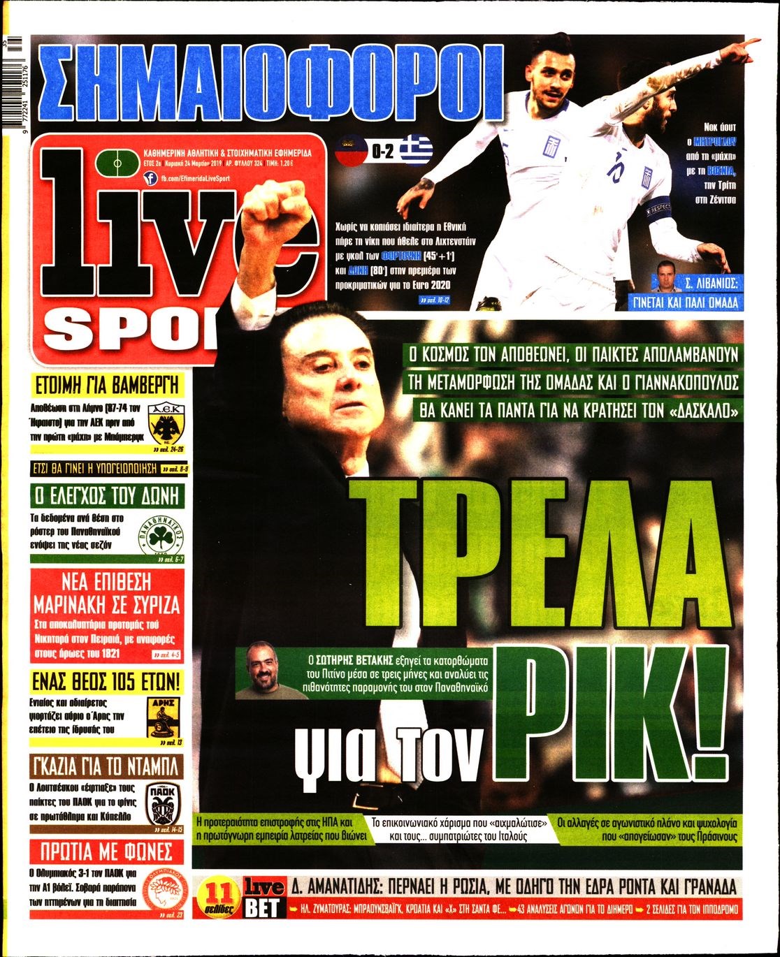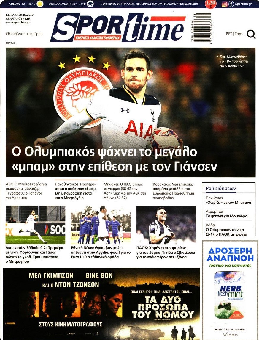 Οι αθλητικές εφημερίδες 24/3/19 Enikos Newsroom 07:03, Κυριακή 24 Μαρτίου 2019 Media Διαβάστε τα πρωτοσέλιδα των αθλητικών εφημερίδων: ΑΘΛΗΤΙΚΕΣ ΕΦΗΜΕΡΙΔΕΣ ΠΡΩΤΟΣΕΛΙΔΑ Μοιράσου το: σχολίασε κι εσύ (0 σχόλια) Ακολουθήστε το enikos.gr στο Google News και μάθετε πρώτοι όλες τις ειδήσεις Δείτε όλες τις τελευταίες ειδήσεις από την Ελλάδα και τον Κόσμο στο enikos.gr Ειδήσεις Ροή Ειδήσεων 1 ώρα πριν Υπόθεση Έπσταϊν: Το Υπουργείο Δικαιοσύνης δημοσιοποίησε μια σειρά από εξαιρετικά επεξεργασμένα αρχεία – «Λείπουν τα πιο σημαντικά έγγραφα», λένε οι Δημοκρατικοί 29 λεπτά πριν Ο «χάρτης» με τις αυξήσεις και τις φοροελαφρύνσεις του 2026 – Ποιοι και πόσα κερδίζουν 10 ώρες πριν Χριστούγεννα στα μπλόκα: Επιμένουν στις κινητοποιήσεις τους οι αγρότες – Ανοίγουν τα διόδια το Σαββατοκύριακο 2 ώρες πριν ΟΝΕΧ – MEGATUGS: Ξεκίνησε η ναυπήγηση ρυμουλκών στην Ελλάδα – Προθάλαμος πολεμικών πλοίων – Δείτε φωτογραφίες και βίντεο 1 ώρα πριν Καιρός: Αλλαγή σκηνικού σήμερα με βροχές και πτώση της θερμοκρασίας – Οι προβλέψεις των μετεωρολόγων για τα Χριστούγεννα 3 ώρες πριν Αυγά: Πόσα μπορείτε να τρώτε την ημέρα με ασφάλεια για μέγιστη πρόσληψη πρωτεΐνης 4 ώρες πριν Τα ζώδια σήμερα, Σάββατο 20 Δεκεμβρίου: Παρθένοι, το σύμπαν σας δίνει το κλειδί 3 ώρες πριν Οπτική ψευδαίσθηση: Μόνο αν είσαι ο Σέρλοκ Χολμς θα βρεις τον αριθμό «87» σε 7 δευτερόλεπτα 1 ώρα πριν Αρχαιολόγοι ανακάλυψαν σε χωράφι απεικόνιση 600 ετών ενός Αγίου – Τα στοιχεία που δείχνουν ότι μαρτύρησε 44 δευτερόλεπτα πριν Παιδική υπέρταση: Μια σιωπηλή απειλή που αυξάνεται διεθνώς 2 λεπτά πριν Αγχώνεται για το χριστουγεννιάτικο δώρο που πήρε στην πλούσια σύντροφό του – «Φοβάμαι πως θα το βρει φθηνιάρικο, φοράει βραχιόλια Cartier» 8 λεπτά πριν Enerwave: Το νέο «ρεύμα» στη λιανική ενέργειας που αλλάζει την εμπειρία του καταναλωτή 13 λεπτά πριν Γιώργος Μαζωνάκης: Τη Δευτέρα η μήνυση του τραγουδιστή κατά του 22χρονου 22 λεπτά πριν Αμαλία Κωστοπούλου: Το μήνυμα για το χειρουργείο στο γόνατο – «Αυτός ο τραυματισμός μού στέρησε πολλά…» ENIKOS NETWORK Πόσα κιλά παίρνουμε πραγματικά τα Χριστούγεννα, σύμφωνα με την επιστήμη – Πώς να το αποτρέψουμε; Το δημοφιλές ρόφημα που αυξάνει την πίεση πιο γρήγορα και από το αλάτι Mega χριστουγεννιάτικη φορολοταρία: «Κλείδωσε» η ημερομηνία για την κλήρωση – Ερωτήσεις και απαντήσεις Αναστολή μέτρων αναγκαστικής εκτέλεσης για κτηνοτρόφους που πλήττονται από την ευλογιά των αιγοπροβάτων Χαρτογραφώντας το «σημείο χωρίς επιστροφή»: Για πρώτη φορά αποκαλύπτεται με λεπτομέρεια το ακανθώδες όριο της ατμόσφαιρας τ... Η Google καταργεί τη λειτουργία «dark web report» – Πώς θα μπορούν οι χρήστες να διαγράφουν τα δεδομένα τους περισσότερα 08:14 , Σάββατο 20 Δεκεμβρίου 2025 Τρομεροί γονείς: Η Μαρία Καβογιάννη εισβάλλει στο σπίτι της οικογένειας Στεφανίδη Όσα θα δούμε στο νέο διπλό επεισόδιο της σειράς «Τρομεροί γονείς», σήμερα Σάββατο 20 Δεκεμβρίο... 05:48 , Σάββατο 20 Δεκεμβρίου 2025 Οι οικονομικές εφημερίδες 20/12/2025 Διαβάστε τα πρωτοσέλιδα από τις οικονομικές εφημερίδες, σήμερα 20/12/2025. 05:43 , Σάββατο 20 Δεκεμβρίου 2025 Οι αθλητικές εφημερίδες 20/12/2025 Διαβάστε τα πρωτοσέλιδα από τις αθλητικές εφημερίδες, σήμερα 20/12/2025. 05:38 , Σάββατο 20 Δεκεμβρίου 2025 Οι πολιτικές εφημερίδες 20/12/2025 Διαβάστε τα πρωτοσέλιδα από τις πολιτικές εφημερίδες, σήμερα 20/12/2025. ΤΕΛΕΥΤΑΙΕΣ ΕΙΔΗΣΕΙΣ 8 λεπτά πριν Enerwave: Το νέο «ρεύμα» στη λιανική ενέργειας που αλλάζει... 13 λεπτά πριν Γιώργος Μαζωνάκης: Τη Δευτέ