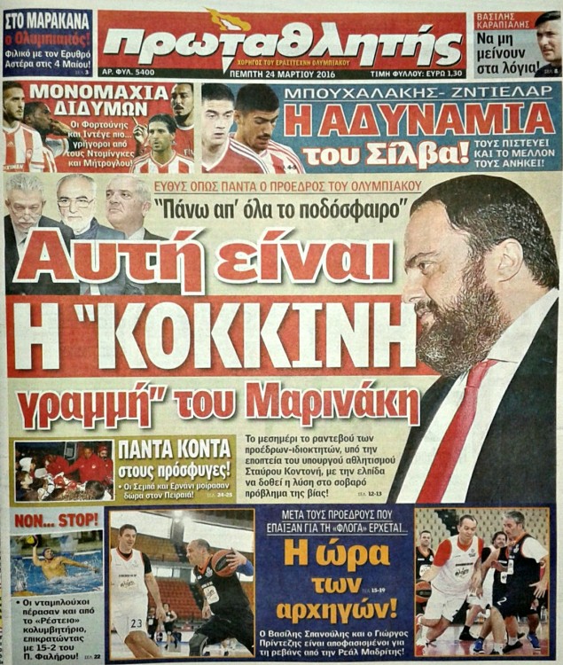 Oι αθλητικές εφημερίδες 24/3/2016 Enikos Newsroom 05:12, Πέμπτη 24 Μαρτίου 2016 Media Διαβάστε τα σημερινά πρωτοσέλιδα των αθλητικών εφημερίδων: ΑΘΛΗΤΙΚΕΣ ΕΦΗΜΕΡΙΔΕΣ ΠΡΩΤΟΣΕΛΙΔΑ Μοιράσου το: σχολίασε κι εσύ (0 σχόλια) Ακολουθήστε το enikos.gr στο Google News και μάθετε πρώτοι όλες τις ειδήσεις Δείτε όλες τις τελευταίες ειδήσεις από την Ελλάδα και τον Κόσμο στο enikos.gr Ειδήσεις Ροή Ειδήσεων 2 ώρες πριν Κλιμακώνουν από σήμερα τις κινητοποιήσεις οι αγρότες: Νέα μπλόκα, κλείσιμο παρακαμπτηρίων και άνοιγμα διοδίων – Το νέο μήνυμα Μητσοτάκη 2 ώρες πριν Ευρωπαϊκό Συμβούλιο: Όλες οι λεπτομέρειες για το δάνειο των 90 δισ. ευρώ στην Ουκρανία – Τα συμπεράσματα της Συνόδου Κορυφής 1 ώρα πριν Νίκος Παππάς: Δρομολογήθηκαν οι διαδικασίες για τη διαγραφή του από τον ΣΥΡΙΖΑ μέσα στις γιορτές 3 ώρες πριν Συντάξεις: Οι κερδισμένοι και οι χαμένοι από τις αυξήσεις – Αναλυτικός οδηγός και παραδείγματα 2 ώρες πριν Peter Greene: Ο πρωταγωνιστής του «Pulp Fiction» είχε τραύματα στο σώμα του όταν βρέθηκε νεκρός στο αιματοβαμμένο διαμέρισμα 4 ώρες πριν Κρύα χέρια και πόδια: Γιατρός εξηγεί ποια είναι η αίτια και πότε πρέπει να ανησυχήσετε 2 ώρες πριν Πώς το αρχαίο DNA του κυνηγού – συλλέκτη ξεκλείδωσε τα μυστικά της μακροζωίας 2 ημέρες πριν 20 χρόνια τα Χριστούγεννα ξεκινούν στα Public με μεγάλη ποικιλία σε δώρα! 1 ώρα πριν Ο σύζυγός της συμπεριφέρεται όπως το παιδί τους – «Χρησιμοποιεί αστείες δικαιολογίες για να μην κάνει δουλειές και να ξοδεύει λεφτά» 3 λεπτά πριν Ελένη Χατζίδου: «Έχω δεχτεί σεξουαλική παρενόχληση, δεν ήμουν αρκετά γενναία για να το καταγγείλω» – Η αποκάλυψη που σόκαρε τους συνεργάτες της 8 λεπτά πριν Τα νούμερα τηλεθέασης της πρωινής ζώνης – Πρώτο το «Super Κατερίνα» 13 λεπτά πριν Αλλαγή σελίδας για 3 ζώδια – «Μία δύσκολη περίοδος φτάνει στο τέλος της» 21 λεπτά πριν Κρούσμα μηνιγγίτιδας σε Λύκειο των Χανίων – Στο νοσοκομείο μια μαθήτρια 27 λεπτά πριν Αλέξανδρος Εξάρχου: Προσκεκλημένος του Ντόναλντ Τραμπ στο Κένεντι Σέντερ ο ισχυρός άνδρας του ομίλου AKTOR ENIKOS NETWORK Πότε μπορεί το χλωμό δέρμα να σχετίζεται με σοβαρή νόσο Ενίσχυση του μεταβολισμού: Η Νο1 άσκηση που πρέπει να κάνουν οι γυναίκες μετά τα 35 Συντάξεις: Οι κερδισμένοι και οι χαμένοι από τις αυξήσεις – Αναλυτικός οδηγός Στεγαστικό: Τι λέει η ΠΟΜΙΔΑ για τα νέα μέτρα που ανακοίνωσε ο Κυριάκος Μητσοτάκης Χαρτογραφώντας το «σημείο χωρίς επιστροφή»: Για πρώτη φορά αποκαλύπτεται με λεπτομέρεια το ακανθώδες όριο της ατμόσφαιρας τ... Η Google καταργεί τη λειτουργία «dark web report» – Πώς θα μπορούν οι χρήστες να διαγράφουν τα δεδομένα τους περισσότερα 08:00 , Παρασκευή 19 Δεκεμβρίου 2025 Την Κυριακή με τη Realnews: Δωροεπιταγή 10€ Δωροεπιταγή αξίας 10€ για αγορές άνω των 60€ από τα πολυκαταστήματα FactoryOutlet H προσφορά ι... 05:48 , Παρασκευή 19 Δεκεμβρίου 2025 Οι οικονομικές εφημερίδες 19/12/2025 Διαβάστε τα πρωτοσέλιδα από τις οικονομικές εφημερίδες, σήμερα 19/12/2025. 05:43 , Παρασκευή 19 Δεκεμβρίου 2025 Οι αθλητικές εφημερίδες 19/12/2025 Διαβάστε τα πρωτοσέλιδα από τις αθλητικές εφημερίδες, σήμερα 19/12/2025. 05:38 , Παρασκευή 19 Δεκεμβρίου 2025 Οι πολιτικές εφημερίδες 19/12/2025 Διαβάστε τα πρωτοσέλιδα από τις πολιτικές εφημερίδες, σήμερα 19/12/2025. ΤΕΛΕΥΤΑΙΕΣ ΕΙΔΗΣΕΙΣ 3 λεπτά πριν Ελένη Χατζίδου: «Έχω δεχτεί σεξουαλική παρενόχληση,... 8 λεπτά πριν Τα νούμερα τηλεθέασης της πρωινής ζώνης – Πρώτο το... 13 λεπτά πριν Αλλαγή σελίδας για 3 ζώδια – «Μία δύσκολη περίοδος... 21 λεπτά πριν Κρούσμα μηνιγγίτιδας σε Λύκειο τω