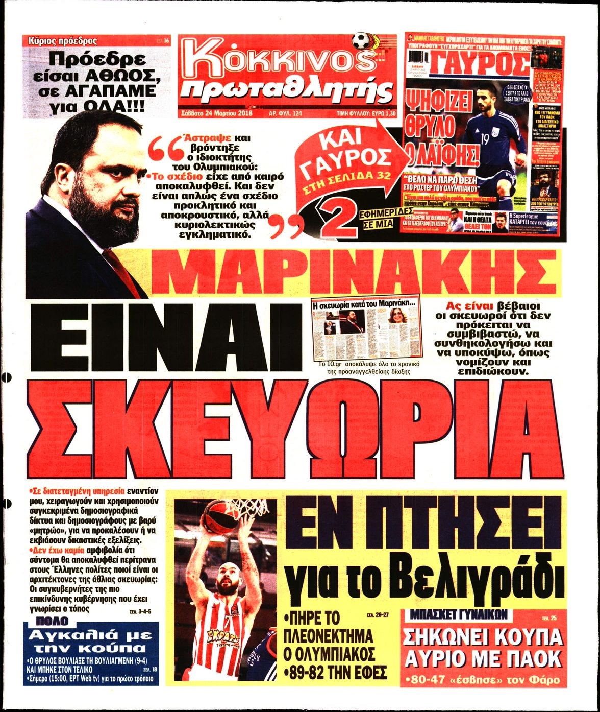 Οι αθλητικές εφημερίδες 24/3/2018 Enikos Newsroom 07:34, Σάββατο 24 Μαρτίου 2018 Media Διαβάστε τα σημερινά πρωτοσέλιδα των αθλητικών εφημερίδων: ΑΘΛΗΤΙΚΕΣ ΕΦΗΜΕΡΙΔΕΣ ΠΡΩΤΟΣΕΛΙΔΑ Μοιράσου το: σχολίασε κι εσύ (0 σχόλια) Ακολουθήστε το enikos.gr στο Google News και μάθετε πρώτοι όλες τις ειδήσεις Δείτε όλες τις τελευταίες ειδήσεις από την Ελλάδα και τον Κόσμο στο enikos.gr Ειδήσεις Ροή Ειδήσεων 3 ώρες πριν Από το Ορμένιο ως τα Μάλγαρα κι από τη Σιάτιστα μέχρι τη Νίκαια: Μπλόκα σε όλη την Ελλάδα – Το Σάββατο ανοίγουν τα διόδια οι αγρότες 1 ώρα πριν Εμπλοκή και αερομαχίες με οπλισμένα τουρκικά F-16 στο Αιγαίο 3 ώρες πριν Αττική: Θρίλερ με νεκρό βρέφος 5 μηνών – Κοιμόταν στο ίδιο κρεβάτι με τους γονείς του 55 λεπτά πριν Πούτιν: «Ναι, είμαι ερωτευμένος» – Βίντεο από τη σπάνια προσωπική παραδοχή του 3 ώρες πριν Μεσόγειος: Η διαδρομή του ρωσικού τάνκερ «Qendil» και η στοχευμένη επίθεση της Ουκρανίας με drone – Ο Πούτιν προειδοποίησε για αντίποινα 5 ώρες πριν Τα 5 ζώδια που ευνοούνται στην ερωτική ζωή τους την επόμενη εβδομάδα – «Η ενέργεια του Αιγόκερου φέρνει αγάπη και σταθερότητα» 6 ώρες πριν Αυτό το έξυπνο μαθηματικό κόλπο θα μπορούσε να αλλάξει τον τρόπο με τον οποίο οι επιστήμονες μελετούν τους σεισμούς 2 ώρες πριν Μήπως έχετε χάσει τον εαυτό σας στη σχέση σας; 7 «αθόρυβες» υποχωρήσεις που μάλλον κάνατε, χωρίς να το συνειδητοποιήσετε 4 ώρες πριν Κουίζ για την παλιά Αθήνα: Αναγνωρίζετε την περιοχή; Έχετε περάσει 100% από εκεί 6 λεπτά πριν Don’t Forget The Lyrics: Η Έλλη Κοκκίνου υποδέχεται 4 παίκτες που θα κάνουν τα πάντα για να μη χάσουν ούτε… μισή λέξη από τους στίχους 12 λεπτά πριν Πλεύρης στον ΑΝΤ1: Η βασική πολιτική που ψηφίστηκε από τους υπουργούς Μετανάστευσης είναι η δημιουργία κέντρων κράτησης μεταναστών στην Αφρική – ΒΙΝΤΕΟ 17 λεπτά πριν Η εξομολόγηση της Νίκης Σερέτη: «Δεν κρύβω ότι ήταν πάρα πολύ δύσκολο όλο αυτό που βίωσα» 23 λεπτά πριν Αγρότες: Κλειστό ξανά το ρεύμα εισόδου στα Μάλγαρα – Άνοιξαν τον κόμβο της Χαλκηδόνας 28 λεπτά πριν Νίκος Γιαννόπουλος: «Μου επιτέθηκε ο Παππάς – Ήμουν νηφάλιος, δεν τον προκάλεσα» – ΒΙΝΤΕΟ ENIKOS NETWORK Έχετε πραγματικά μεγάλη καρδιά; 10 χαρακτηριστικά όσων έχουν καλοσύνη «Η σούπερ» γρίπη εξαπλώνεται στην Ευρώπη-Στοιχεία από το ECDC για την αποτελεσματικότητα του εμβολίου Επίδομα παιδιού: Πότε ανοίγει ξανά η πλατφόρμα για τις αιτήσεις Προκήρυξη ΑΣΕΠ για 397 μόνιμες προσλήψεις στο Δημόσιο: Βγήκαν τα προσωρινά αποτελέσματα – Πότε αρχίζει η υποβολή ενστάσεων Χαρτογραφώντας το «σημείο χωρίς επιστροφή»: Για πρώτη φορά αποκαλύπτεται με λεπτομέρεια το ακανθώδες όριο της ατμόσφαιρας τ... Η Google καταργεί τη λειτουργία «dark web report» – Πώς θα μπορούν οι χρήστες να διαγράφουν τα δεδομένα τους περισσότερα 20:37 , Παρασκευή 19 Δεκεμβρίου 2025 Don’t Forget The Lyrics: Η Έλλη Κοκκίνου υποδέχεται 4 παίκτες που θα κάνουν τα πάντα για να μη χάσουν ούτε… μισή λέξη από τους στίχους Το «Don’t Forget The Lyrics» επιστρέφει απόψε, Παρασκευή 19 Δεκεμβρίου, στις 21:00 με νέο επει... 19:31 , Παρασκευή 19 Δεκεμβρίου 2025 GNTM: Απόψε ο μεγάλος τελικός για τους 4 φιναλίστ Έπειτα από μήνες γεμάτους μόδα, δημιουργία και έντονες αναμετρήσεις, το GNTM 2025 κορυφώνεται,... 18:11 , Παρασκευή 19 Δεκεμβρίου 2025 Το σόι σου: Ο Άρης έρχεται στην Ελλάδα για τις γιορτές των Χριστουγέννων – Τι θα δούμε στο αποψινό εορταστικό επεισόδιο Ένα απολαυστικό, εορταστικό επεισόδιο της σειράς “Το σόι σου”, γεμάτο ευτράπελα αλ... 15:15 , Παρασκευή 19 Δεκεμβρίου 2025 Την Κυ