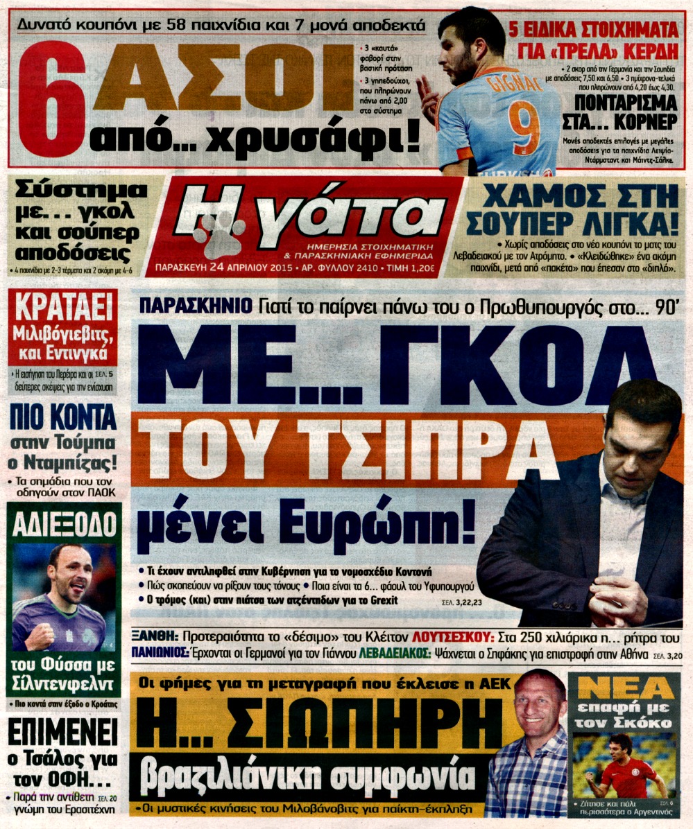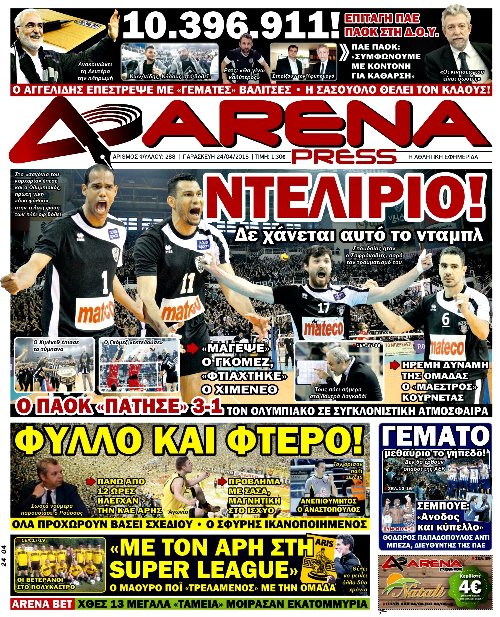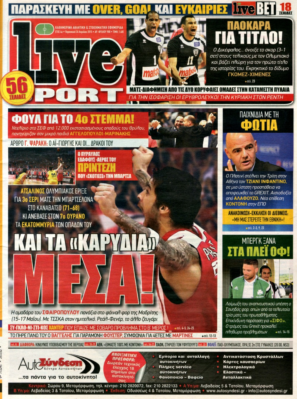 Οι αθλητικές εφημερίδες 24/4/2015 Enikos Newsroom 07:45, Παρασκευή 24 Απριλίου 2015 Media Διαβάστε τα σημερινά πρωτοσέλιδα των αθλητικών εφημερίδων: ΑΘΛΗΤΙΚΕΣ ΕΦΗΜΕΡΙΔΕΣ ΕΦΗΜΕΡΙΔΕΣ ΠΡΩΤΟΣΕΛΙΔΑ Μοιράσου το: σχολίασε κι εσύ (0 σχόλια) Ακολουθήστε το enikos.gr στο Google News και μάθετε πρώτοι όλες τις ειδήσεις Δείτε όλες τις τελευταίες ειδήσεις από την Ελλάδα και τον Κόσμο στο enikos.gr Ειδήσεις Ροή Ειδήσεων 2 ώρες πριν Τουρκία: Λεπτό προς λεπτό οι επικοινωνίες του πιλότου του Φάλκον πριν από την συντριβή – Είχε εκπέμψει πολλαπλά σήματα κινδύνου 2 ώρες πριν Ανείπωτη τραγωδία στη Χαλκιδική: Νεκρό 7χρονο αγόρι σε τροχαίο 6 ώρες πριν ΑΑΔΕ: Στον Εισαγγελέα οι πρώτες 50 μαζικές διαγραφές αγρών στο Ε9 – Εξετάζονται συνολικά 3.000 περιπτώσεις 3 ώρες πριν Τουρκία: Ήταν η πρώτη πτήση με το Falcon 50 για την αεροσυνοδό Μαρία Παππά που σκοτώθηκε – «Είμαι ζωντανός νεκρός» λέει ο σύντροφός της 2 ώρες πριν Προβλήματα στην Αττική λόγω της κακοκαιρίας: Δεκάδες κλήσεις στην Πυροσβεστική, διακοπές ρεύματος και πλημμυρισμένοι δρόμοι- Δείτε βίντεο 6 ώρες πριν Τα 5 ζώδια που έχουν μεγάλες πιθανότητες να πλουτίσουν το 2026 – «Οι οικονομικές δυσκολίες ανήκουν στο παρελθόν» 3 ώρες πριν Σχέσεις: Αν κάποιος σας χώρισε με αυτούς τους 6 τρόπους, δεν σας σεβάστηκε ποτέ πραγματικά 5 ώρες πριν Κουίζ για την παλιά Αθήνα: Αναγνωρίζετε την περιοχή; Είναι από τις πιο γνωστές 2 ώρες πριν Πλύσιμο πιάτων: Το έξυπνο κόλπο που διευκολύνει την διαδικασία όταν έχετε καλεσμένους στο σπίτι 7 ώρες πριν Εφημερεύοντα φαρμακεία σε Αθήνα και Θεσσαλονίκη (25/12) 2 λεπτά πριν Αγρότες: Παραμένουν στο μπλόκο της Αργολίδας παραμονή Χριστουγέννων – «Νιώθουμε σαν μια μεγάλη οικογένεια» – ΦΩΤΟ 10 λεπτά πριν Σάσα Μπάστα: «Έχασα 13 κιλά σε έναν μήνα» – Τι είπε για το τροχαίο του αδελφού της 18 λεπτά πριν Μήνυμα Νετανιάχου στο Ιράν: Βίντεο ΑΙ τον δείχνει μέσα σε βομβαρδιστικό μαζί με τον Τραμπ 26 λεπτά πριν ΠΑΜΕ ΣΤΟΙΧΗΜΑ: Περισσότερα από 26 εκατομμύρια ευρώ σε κέρδη μοίρασε την προηγούμενη εβδομάδα ENIKOS NETWORK Πώς να αποφύγετε τους τοξικούς καβγάδες με την οικογένειά σας αυτά τα Χριστούγεννα ΕΟΔΥ: Οι «χρυσές» συμβουλές για να απολαύσουμε το Χριστουγεννιάτικο τραπέζι χωρίς υπερβολές Κυρανάκης: Τι αλλάζει στον σιδηρόδρομο έως το 2027 Αττική: Με χρηματοδότηση από το ΕΣΠΑ τα αντιπλημμυρικά έργα – Όλα όσα είπε ο Παπαθανάσης Ο Google Assistant θα παραμείνει λίγο περισσότερο για ορισμένους χρήστες Android Τεστ προσωπικότητας: Το βάζο που θα επιλέξετε αποκαλύπτει πώς λύνετε προβλήματα στη ζωή σας περισσότερα 20:30 , Τετάρτη 24 Δεκεμβρίου 2025 Rouk Zouk: Όλα θα δούμε στο εορταστικό επεισόδιο απόψε Φέτος την Παραμονή των Χριστουγέννων η Ζέτα Μακρυπούλια και μια… εκρηκτική παρέα από την νέα κ... 16:12 , Τετάρτη 24 Δεκεμβρίου 2025 ALPHA: Παραμονή Χριστουγέννων με τον Κωνσταντίνο Αργυρό Ο Alpha παρουσιάζει απόψε σε πρώτη τηλεοπτική μετάδοση τη συναρπαστική και sold out εμφάνιση ... 15:51 , Τετάρτη 24 Δεκεμβρίου 2025 ‘Αγιος Έρωτας: Ο σεισμός που έκοψε την ανάσα – Δείτε τις συγκλονιστικές σκηνές Με έναν συγκλονιστικό τρόπο έκλεισε χθες βράδυ το τελευταίο επεισόδιο του 2025 της σειράς R... 13:27 , Τετάρτη 24 Δεκεμβρίου 2025 Ο Χριστουγεννιάτικος Τηλεμαραθώνιος του ΑΝΤ1 ένωσε τους πολιτικούς αρχηγούς – Τα εγκωμιαστικά σχόλια για τον Θοδωρή Κυριακού Σπάνια ομοφωνία: Όλοι οι πολιτικοί αρχηγοί αποθεώνουν τον Θοδωρή Κυριακού Ο Χριστουγεννιάτικος... ΤΕΛΕΥΤΑΙΕΣ ΕΙΔΗΣΕΙΣ 2 λεπτά πριν Αγρότες: Παραμένουν στο μπλόκο της 
