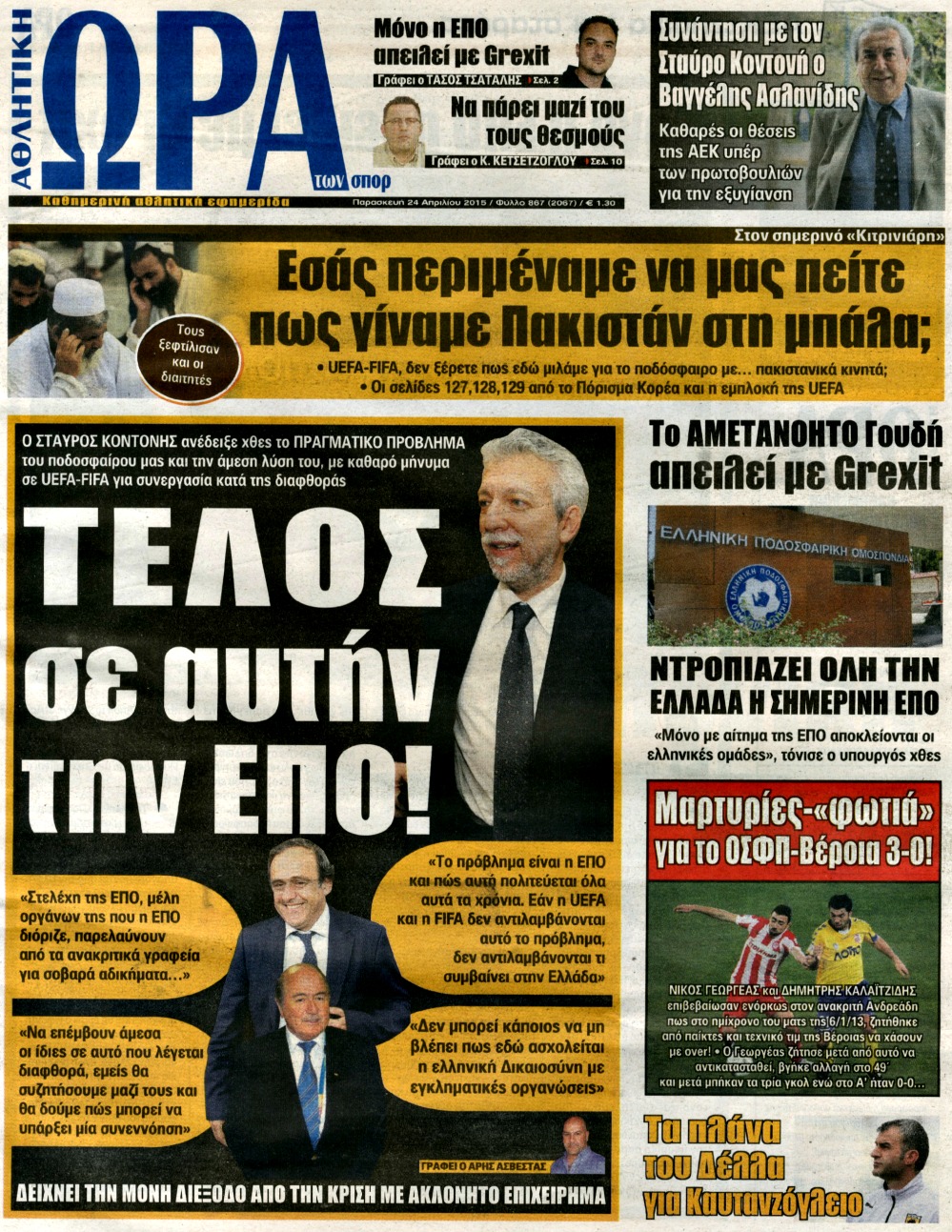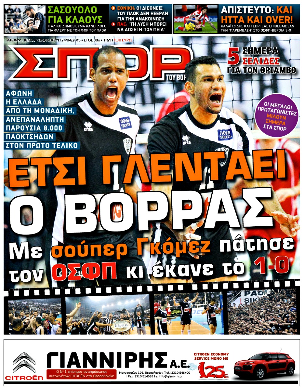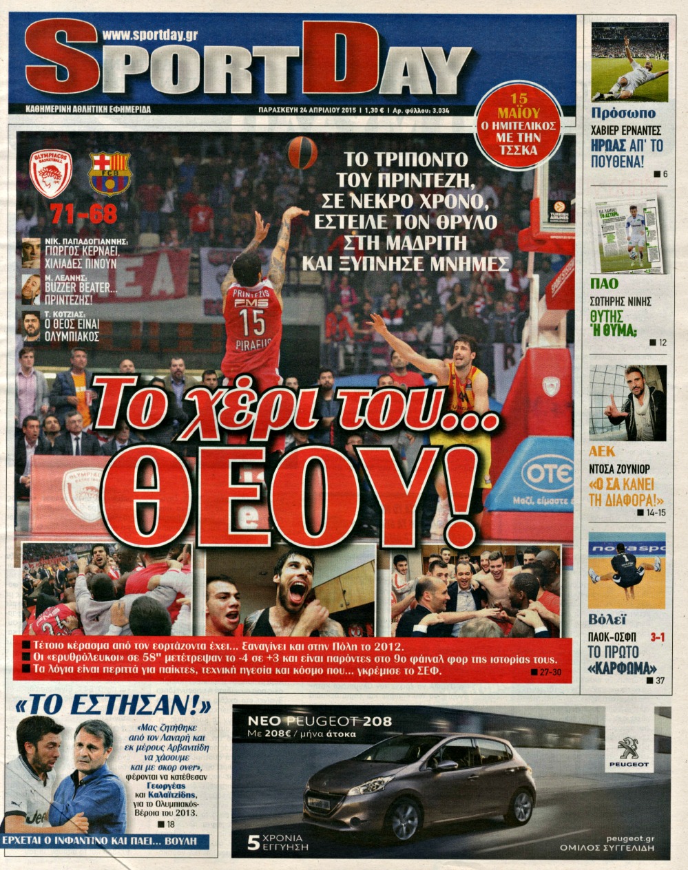 Οι αθλητικές εφημερίδες 24/4/2015 Enikos Newsroom 07:45, Παρασκευή 24 Απριλίου 2015 Media Διαβάστε τα σημερινά πρωτοσέλιδα των αθλητικών εφημερίδων: ΑΘΛΗΤΙΚΕΣ ΕΦΗΜΕΡΙΔΕΣ ΕΦΗΜΕΡΙΔΕΣ ΠΡΩΤΟΣΕΛΙΔΑ Μοιράσου το: σχολίασε κι εσύ (0 σχόλια) Ακολουθήστε το enikos.gr στο Google News και μάθετε πρώτοι όλες τις ειδήσεις Δείτε όλες τις τελευταίες ειδήσεις από την Ελλάδα και τον Κόσμο στο enikos.gr Ειδήσεις Ροή Ειδήσεων 2 ώρες πριν Τουρκία: Λεπτό προς λεπτό οι επικοινωνίες του πιλότου του Φάλκον πριν από την συντριβή – Είχε εκπέμψει πολλαπλά σήματα κινδύνου 2 ώρες πριν Ανείπωτη τραγωδία στη Χαλκιδική: Νεκρό 7χρονο αγόρι σε τροχαίο 6 ώρες πριν ΑΑΔΕ: Στον Εισαγγελέα οι πρώτες 50 μαζικές διαγραφές αγρών στο Ε9 – Εξετάζονται συνολικά 3.000 περιπτώσεις 3 ώρες πριν Τουρκία: Ήταν η πρώτη πτήση με το Falcon 50 για την αεροσυνοδό Μαρία Παππά που σκοτώθηκε – «Είμαι ζωντανός νεκρός» λέει ο σύντροφός της 2 ώρες πριν Προβλήματα στην Αττική λόγω της κακοκαιρίας: Δεκάδες κλήσεις στην Πυροσβεστική, διακοπές ρεύματος και πλημμυρισμένοι δρόμοι- Δείτε βίντεο 6 ώρες πριν Τα 5 ζώδια που έχουν μεγάλες πιθανότητες να πλουτίσουν το 2026 – «Οι οικονομικές δυσκολίες ανήκουν στο παρελθόν» 3 ώρες πριν Σχέσεις: Αν κάποιος σας χώρισε με αυτούς τους 6 τρόπους, δεν σας σεβάστηκε ποτέ πραγματικά 5 ώρες πριν Κουίζ για την παλιά Αθήνα: Αναγνωρίζετε την περιοχή; Είναι από τις πιο γνωστές 2 ώρες πριν Πλύσιμο πιάτων: Το έξυπνο κόλπο που διευκολύνει την διαδικασία όταν έχετε καλεσμένους στο σπίτι 7 ώρες πριν Εφημερεύοντα φαρμακεία σε Αθήνα και Θεσσαλονίκη (25/12) 2 λεπτά πριν Αγρότες: Παραμένουν στο μπλόκο της Αργολίδας παραμονή Χριστουγέννων – «Νιώθουμε σαν μια μεγάλη οικογένεια» – ΦΩΤΟ 10 λεπτά πριν Σάσα Μπάστα: «Έχασα 13 κιλά σε έναν μήνα» – Τι είπε για το τροχαίο του αδελφού της 18 λεπτά πριν Μήνυμα Νετανιάχου στο Ιράν: Βίντεο ΑΙ τον δείχνει μέσα σε βομβαρδιστικό μαζί με τον Τραμπ 26 λεπτά πριν ΠΑΜΕ ΣΤΟΙΧΗΜΑ: Περισσότερα από 26 εκατομμύρια ευρώ σε κέρδη μοίρασε την προηγούμενη εβδομάδα ENIKOS NETWORK Πώς να αποφύγετε τους τοξικούς καβγάδες με την οικογένειά σας αυτά τα Χριστούγεννα ΕΟΔΥ: Οι «χρυσές» συμβουλές για να απολαύσουμε το Χριστουγεννιάτικο τραπέζι χωρίς υπερβολές Κυρανάκης: Τι αλλάζει στον σιδηρόδρομο έως το 2027 Αττική: Με χρηματοδότηση από το ΕΣΠΑ τα αντιπλημμυρικά έργα – Όλα όσα είπε ο Παπαθανάσης Ο Google Assistant θα παραμείνει λίγο περισσότερο για ορισμένους χρήστες Android Τεστ προσωπικότητας: Το βάζο που θα επιλέξετε αποκαλύπτει πώς λύνετε προβλήματα στη ζωή σας περισσότερα 20:30 , Τετάρτη 24 Δεκεμβρίου 2025 Rouk Zouk: Όλα θα δούμε στο εορταστικό επεισόδιο απόψε Φέτος την Παραμονή των Χριστουγέννων η Ζέτα Μακρυπούλια και μια… εκρηκτική παρέα από την νέα κ... 16:12 , Τετάρτη 24 Δεκεμβρίου 2025 ALPHA: Παραμονή Χριστουγέννων με τον Κωνσταντίνο Αργυρό Ο Alpha παρουσιάζει απόψε σε πρώτη τηλεοπτική μετάδοση τη συναρπαστική και sold out εμφάνιση ... 15:51 , Τετάρτη 24 Δεκεμβρίου 2025 ‘Αγιος Έρωτας: Ο σεισμός που έκοψε την ανάσα – Δείτε τις συγκλονιστικές σκηνές Με έναν συγκλονιστικό τρόπο έκλεισε χθες βράδυ το τελευταίο επεισόδιο του 2025 της σειράς R... 13:27 , Τετάρτη 24 Δεκεμβρίου 2025 Ο Χριστουγεννιάτικος Τηλεμαραθώνιος του ΑΝΤ1 ένωσε τους πολιτικούς αρχηγούς – Τα εγκωμιαστικά σχόλια για τον Θοδωρή Κυριακού Σπάνια ομοφωνία: Όλοι οι πολιτικοί αρχηγοί αποθεώνουν τον Θοδωρή Κυριακού Ο Χριστουγεννιάτικος... ΤΕΛΕΥΤΑΙΕΣ ΕΙΔΗΣΕΙΣ 2 λεπτά πριν Αγρότες: Παραμένουν στο μπλόκο της 