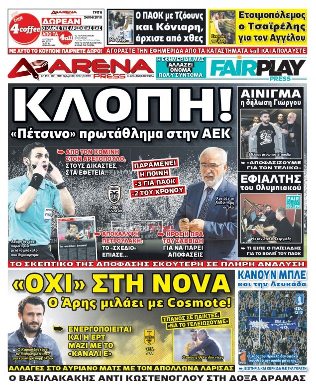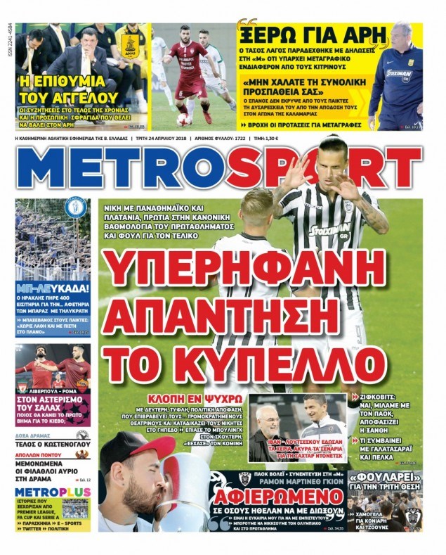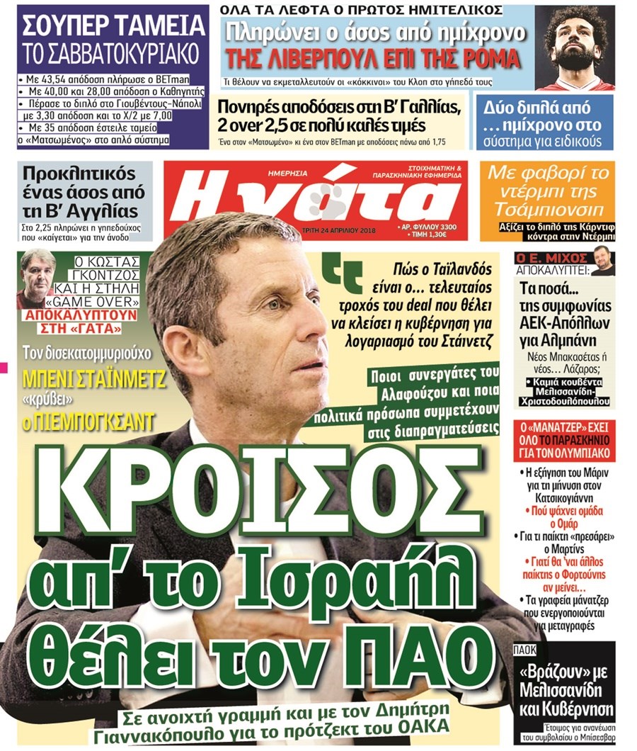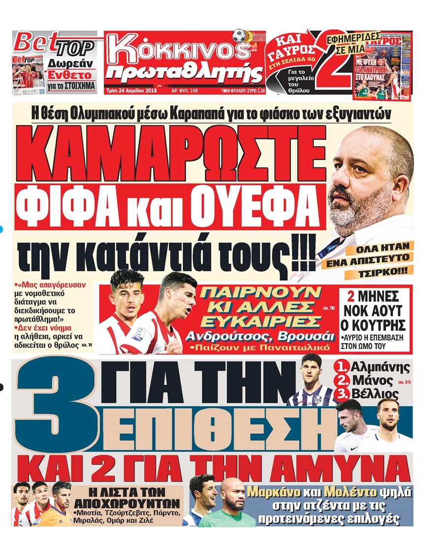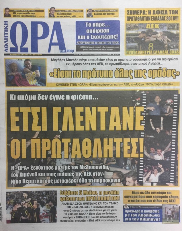 Οι αθλητικές εφημερίδες 24/4/2018 Κώστας Τεό 06:37, Τρίτη 24 Απριλίου 2018 Media Διαβάστε τα πρωτοσέλιδα των αθλητικών εφημερίδων: ΑΘΛΗΤΙΚΕΣ ΕΦΗΜΕΡΙΔΕΣ ΠΡΩΤΟΣΕΛΙΔΑ Μοιράσου το: σχολίασε κι εσύ (0 σχόλια) Ακολουθήστε το enikos.gr στο Google News και μάθετε πρώτοι όλες τις ειδήσεις Δείτε όλες τις τελευταίες ειδήσεις από την Ελλάδα και τον Κόσμο στο enikos.gr Ειδήσεις Ροή Ειδήσεων 4 ώρες πριν Χριστούγεννα στα μπλόκα: Επιμένουν στις κινητοποιήσεις τους οι αγρότες – Ανοίγουν τα διόδια το Σαββατοκύριακο 4 ώρες πριν Ουκρανία: Η άνευ προηγουμένου επίθεση σε ρωσικό τάνκερ στη Μεσόγειο και το μήνυμα προς στον Πούτιν – Το «μακρύ χέρι» του Κιέβου 3 ώρες πριν Πούτιν: Τα μηνύματα σε Ευρώπη και ΝΑΤΟ από το μαραθώνιο «σόου» του – Η απαίτηση για «σεβασμό» και η ειρήνη «με τους όρους» της Μόσχας 4 ώρες πριν Τραμπ: Δεν αποκλείει την πιθανότητα ενός πολέμου στη Βενεζουέλα – «Ο Μαδούρο ξέρει καλύτερα από τον καθένα τι ακριβώς θέλω» 5 ώρες πριν Συνεχίζει να προκαλεί ο Μίτσκοσκι: «Για μένα το όνομα Μακεδονία είναι ιερό» 3 ώρες πριν Ανακαλύφθηκαν αρχαία χρυσά νομίσματα 2.200 ετών που απεικονίζουν τον θεό Απόλλωνα – Η άγνωστη σύνδεση με τον Φίλιππο Β΄ της Μακεδονίας 4 ώρες πριν Ύπνος: Μια κρυφή κατάσταση του εγκεφάλου πριν από τον ύπνο μπορεί να είναι το “κλειδί” για υψηλή ευφυΐα και δημιουργικότητα 5 ώρες πριν Αριθμολογία: Οι άνθρωποι που έχουν γεννηθεί αυτές τις 4 ημερομηνίες, συχνά παρεξηγούνται – «Η καλοσύνη τους κρύβει τεράστια δύναμη» 6 ώρες πριν Ξεχάστε το καθάρισμα το Σαββατοκύριακο: Ο «κανόνας των 20 λεπτών» που θα σας λύσει τα χέρια 15 λεπτά πριν Εξάρχεια: Ένταση με μολότοφ, χημικά και κρότου λάμψης 31 λεπτά πριν ΗΠΑ: Τραγωδία στην Αλαμπάμα – Σκότωσε την δημοσιογράφο σύζυγό του και αυτοκτόνησε μπροστά στον 3χρονο γιο τους 45 λεπτά πριν Πρόταση γάμου στο ΣΕΦ κατά την διάρκεια του αγώνα Ολυμπιακός-Βιλερμπάν – Δείτε βίντεο 1 ώρα πριν Euroleague: Επέστρεψε στις νίκες ο Ολυμπιακός, πήρε την ματσάρα της χρονιάς η Μπάρτσα – Τα αποτελέσματα και η βαθμολογία 1 ώρα πριν Συρία: Μαζικά πλήγματα των ΗΠΑ σε θέσεις του Ισλαμικού Κράτους – Χέγκσεθ: «Δεν είναι αρχή πολέμου, είναι μια δήλωση εκδίκησης» για το θάνατο των στρατιωτών μας ENIKOS NETWORK Το ΕΚΑΒ τιμήθηκε από την Ακαδημία Αθηνών για τα 40 χρόνια προσφοράς του Έχετε πραγματικά μεγάλη καρδιά; 10 χαρακτηριστικά όσων έχουν καλοσύνη Αναστολή μέτρων αναγκαστικής εκτέλεσης για κτηνοτρόφους που πλήττονται από την ευλογιά των αιγοπροβάτων Πλήρης επάρκεια προϊόντων στις λαϊκές της Αττικής, παρά τις αγροτικές κινητοποιήσεις – Τι απαντούν οι πωλητές Χαρτογραφώντας το «σημείο χωρίς επιστροφή»: Για πρώτη φορά αποκαλύπτεται με λεπτομέρεια το ακανθώδες όριο της ατμόσφαιρας τ... Η Google καταργεί τη λειτουργία «dark web report» – Πώς θα μπορούν οι χρήστες να διαγράφουν τα δεδομένα τους περισσότερα 22:42 , Παρασκευή 19 Δεκεμβρίου 2025 Γιώργος Γιαννόπουλος για “Το σόι σου”: “Είναι ευτυχία και ευλογία αυτή η σειρά” «Είναι ευτυχία και ευλογία η συγκυρία αυτής της σειράς», θα πει ο Γιώργος Γιαννόπουλος -ο αγαπ... 20:37 , Παρασκευή 19 Δεκεμβρίου 2025 Don’t Forget The Lyrics: Η Έλλη Κοκκίνου υποδέχεται 4 παίκτες που θα κάνουν τα πάντα για να μη χάσουν ούτε… μισή λέξη από τους στίχους Το «Don’t Forget The Lyrics» επιστρέφει απόψε, Παρασκευή 19 Δεκεμβρίου, στις 21:00 με νέο επει... 19:31 , Παρασκευή 19 Δεκεμβρίου 2025 GNTM: Απόψε ο μεγάλος τελικός για τους 4 φιναλίστ Έπειτα από μήνες γεμάτους μόδα, δημιουργία και έντονες αναμ