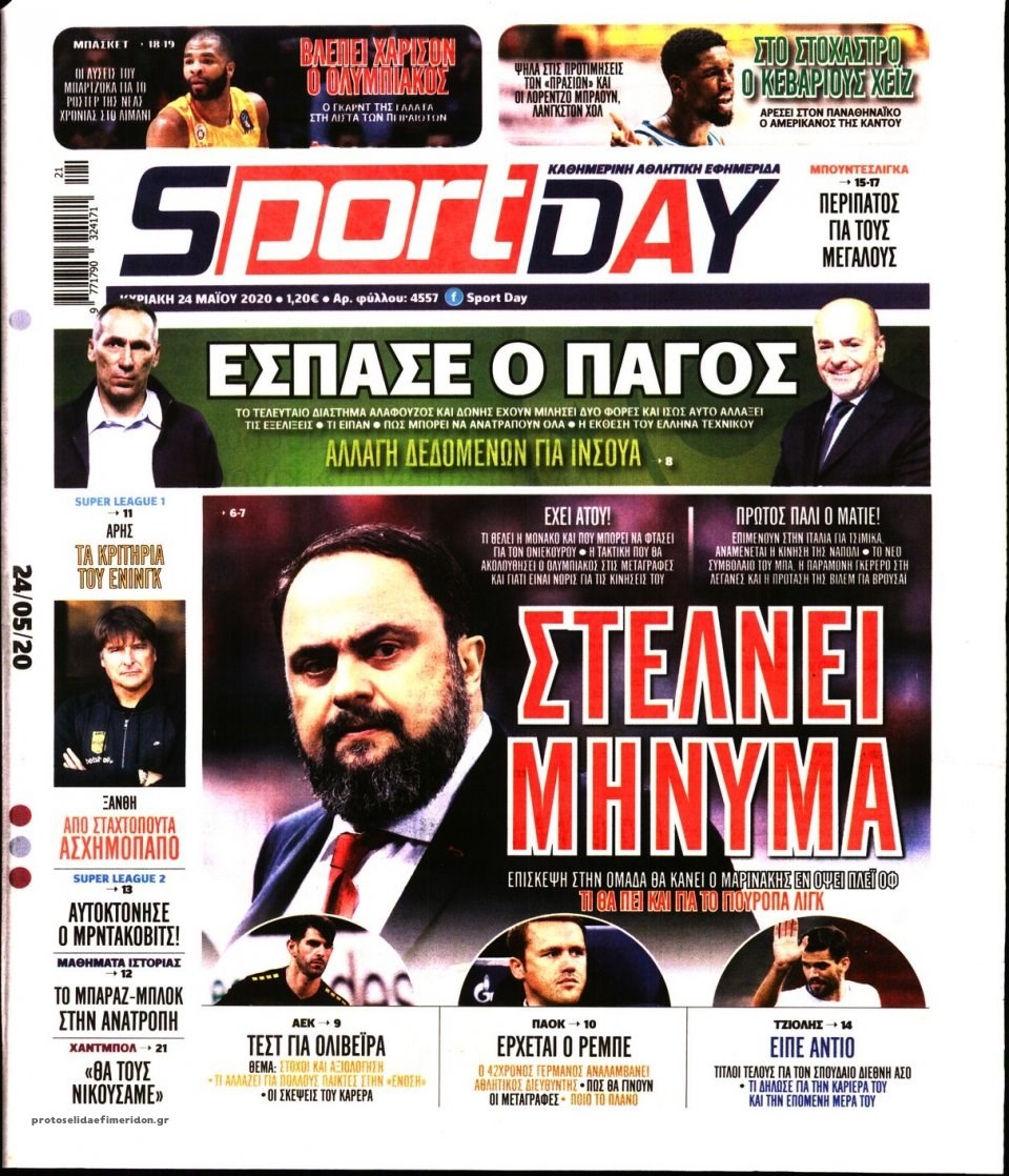 Οι αθλητικές εφημερίδες 24/5/2020 Σήφης Γαρυφαλάκης 07:26, Κυριακή 24 Μαΐου 2020 Media Διαβάστε τα πρωτοσέλιδα των αθλητικών εφημερίδων… ΑΘΛΗΤΙΚΕΣ ΕΦΗΜΕΡΙΔΕΣ ΕΦΗΜΕΡΙΔΕΣ ΠΡΩΤΟΣΕΛΙΔΑ ΠΡΩΤΟΣΕΛΙΔΑ ΕΦΗΜΕΡΙΔΩΝ Μοιράσου το: σχολίασε κι εσύ (0 σχόλια) Ακολουθήστε το enikos.gr στο Google News και μάθετε πρώτοι όλες τις ειδήσεις Δείτε όλες τις τελευταίες ειδήσεις από την Ελλάδα και τον Κόσμο στο enikos.gr Ειδήσεις Ροή Ειδήσεων 5 ώρες πριν Εκτός ευρωομάδας ΣΥΡΙΖΑ ο Νίκος Παππάς μετά την επίθεση στον δημοσιογράφο Νίκο Γιαννόπουλο – Η μήνυση και οι νέες δηλώσεις 6 ώρες πριν «Αγριεύουν» οι αγρότες: «Δεν συντρέχει λόγος συνάντησης με τον πρωθυπουργό» – Ώρα αποφάσεων στη σύσκεψη της Πέμπτης 6 ώρες πριν Κυψέλη: Χωρίς την οικογένειά της δίπλα της απολογήθηκε η 16χρονη – «Της είχε επιτεθεί κάποιος για να την βιάσει, φοβήθηκε και κυκλοφορούσε με μαχαίρι» 5 ώρες πριν Politico: Το πρόβλημα της Ευρώπης δεν είναι το Βέλγιο αλλά ο Ντόναλντ Τραμπ 7 ώρες πριν Αλεξανδρούπολη: Πολυοργανική ανεπάρκεια λόγω υποσιτισμού η αιτία θανάτου του 3χρονου αγοριού 5 ώρες πριν Μυστήριο με τεράστιες κυκλικές πέτρες 200 κιλών – Ανακαλύφθηκαν τυχαία κατά τη διάρκεια οδικών έργων και κανείς δεν ξέρει από πού προέρχονται 6 ώρες πριν Ύπνος: Ειδικός εξηγεί τον πραγματικό λόγο που ξυπνάτε στις 4 τα ξημερώματα – Ο ρόλος των ορμονών και του κιρκάδιου ρυθμού 7 ώρες πριν Αριθμολογία: Οι άνθρωποι που έχουν γεννηθεί αυτές τις 4 ημερομηνίες, είναι τρυφεροί και αγαπούν ανιδιοτελώς 19 ώρες πριν 20 χρόνια τα Χριστούγεννα ξεκινούν στα Public με μεγάλη ποικιλία σε δώρα! 15 λεπτά πριν Νέο αμερικανικό πλήγμα σε σκάφος που φέρεται να μετέφερε ναρκωτικά στον Ειρηνικό – Τέσσερις νεκροί 30 λεπτά πριν Αλ Τσαντίρι Νιουζ: «Λύγισε» ο Δημήτρης Λάλος για τον Δημήτρη Ήμελλο – «Τον μνημονεύω, να ‘ναι καλά εκεί που είναι» 45 λεπτά πριν GNTM: Με δάκρυα τον αποχαιρέτησε η Ηλιάνα Παπαγεωργίου πριν από τον ημιτελικό – «Αισθάνομαι πολύ παράξενα» 1 ώρα πριν Αμερικανικά στρατεύματα στον Ισημερινό για «προσωρινή» επιχείρηση κατά των ναρκωτικών 1 ώρα πριν Βραζιλία: Το Κογκρέσο ενέκρινε σχέδιο νόμου για τη μείωση της ποινής του πρώην προέδρου Μπολσονάρου ENIKOS NETWORK Αϋπνία: Το κόλπο που θα σας βοηθήσει να κοιμηθείτε απόψε – Είναι απλό και έχει αποτέλεσμα 2,6 εκατομμύρια πολίτες έχουν ήδη εμβολιαστεί κατά της γρίπης ΕΛΣΤΑΤ: Τι δείχνουν τα νέα στοιχεία για τις ηλεκτρονικές παραγγελίες των επιχειρήσεων ΚΕΠΕ: Οι 3 διακριτές συμβολές των ΜμΕ και της μεταποίησης στην ελληνική οικονομία Χαρτογραφώντας το «σημείο χωρίς επιστροφή»: Για πρώτη φορά αποκαλύπτεται με λεπτομέρεια το ακανθώδες όριο της ατμόσφαιρας τ... Η Google καταργεί τη λειτουργία «dark web report» – Πώς θα μπορούν οι χρήστες να διαγράφουν τα δεδομένα τους περισσότερα 02:30 , Πέμπτη 18 Δεκεμβρίου 2025 Αλ Τσαντίρι Νιουζ: Η κόρη της Πάολα στο κοινό – Η ατάκα Λαζόπουλου που την έκανε να «κοκκινήσει» Γιορτινή διάθεση και ευχάριστες στιγμές γέμισε η αποψινή, τελευταία για το 2025, εκπομπή του «... 22:24 , Τετάρτη 17 Δεκεμβρίου 2025 Το Σπίτι Δίπλα Στο Ποτάμι: Σε κίνδυνο η υγεία του Απόστολου – Τι θα δούμε απόψε “Το Σπίτι Δίπλα στο Ποτάμι” ξετυλίγει το νήμα της ζωής των πέντε αδελφών με καταισ... 21:14 , Τετάρτη 17 Δεκεμβρίου 2025 Παιχνίδια Εκδίκησης: Θα καταφέρει ο Χρήστος να κλονίσει την εμπιστοσύνη της Μάγιας απέναντι στον Άγη; Τα «Παιχνίδια Εκδίκησης» έρχονται απόψε στις 22:30, στον Αντ1, με το τελευταίο επεισόδιο της χ... 20:57 , Τετάρτη 17 Δεκ