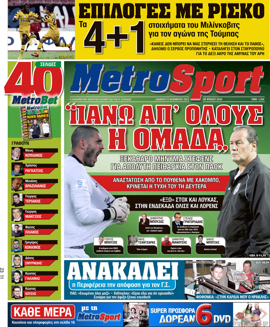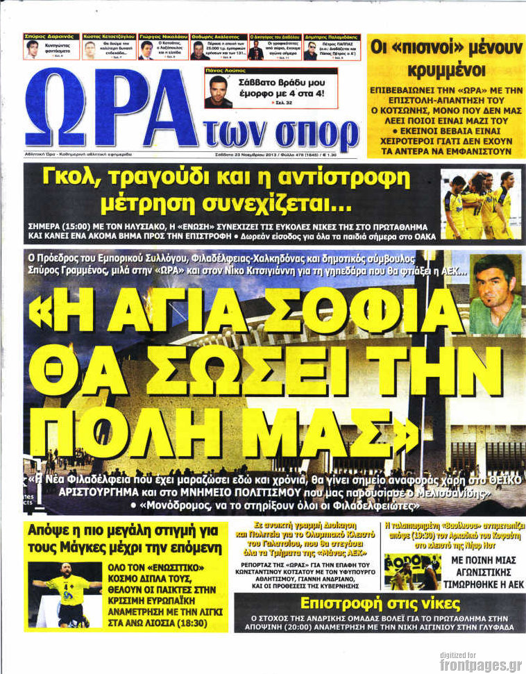 Οι αθλητικές εφημερίδες Enikos Newsroom 09:26, Σάββατο 23 Νοεμβρίου 2013 Media Οι αθλητικές εφημερίδες Διαβάστε τα πρωτοσέλιδα των αθλητικών εφημερίδων: ΑΘΛΗΤΙΚΕΣ ΕΦΗΜΕΡΙΔΕΣ ΕΦΗΜΕΡΙΔΕΣ ΠΡΩΤΟΣΕΛΙΔΑ Μοιράσου το: σχολίασε κι εσύ (0 σχόλια) Ακολουθήστε το enikos.gr στο Google News και μάθετε πρώτοι όλες τις ειδήσεις Δείτε όλες τις τελευταίες ειδήσεις από την Ελλάδα και τον Κόσμο στο enikos.gr Ειδήσεις Ροή Ειδήσεων 3 ώρες πριν Ακίλα Σάλεχ: «Άκυρο» το τουρκολιβυκό μνημόνιο λέει ο πρόεδρος της λιβυκής Βουλής – Ανοίγει ο διάλογος με Ελλάδα, Αίγυπτο και Τουρκία 7 ώρες πριν Αγρότες: Την Τρίτη η απόφαση για διάλογο ή κλιμάκωση των κινητοποιήσεών τους – Πώς χαρακτηρίζουν τις ανακοινώσεις Τσιάρα και οι επόμενες κινήσεις 7 ώρες πριν Τραμπ για Ουκρανία: «Είμαστε πιο κοντά σε συμφωνία από ποτέ» – «Πολυεθνική δύναμη» προτείνουν οι Ευρωπαίοι 7 ώρες πριν Κυψέλη: Η 16χρονη που μαχαίρωσε την 14χρονη είχε συλληφθεί 3 φορές στο παρελθόν – Έβριζε καθηγητές, έβαζε φωτιές σε κάδους και εκβίαζε συμμαθητές της 7 ώρες πριν Τρομοκρατική επίθεση στο Σίδνεϊ: Θλίψη για τα 15 θύματα – Οργή στην εβραϊκή κοινότητα που προειδοποιούσε επί δύο χρόνια 7 ώρες πριν Επιστήμονες ίσως έλυσαν το μυστήριο γύρω από τα Χόμπιτ – Νέα έρευνα αποκαλύπτει πώς εξαφανίστηκαν 8 ώρες πριν Ύπνος: Η αρχαία μορφή άσκησης που αποδεικνύεται αποτελεσματική στην αντιμετώπιση της αϋπνίας, σύμφωνα με μελέτη 9 ώρες πριν Αριθμολογία: Ο τυχερός σας αριθμός, ανάλογα με τον μήνα γέννησής σας 10 ώρες πριν Πώς να μην μαραίνονται γρήγορα τα κομμένα λουλούδια: Το λάθος στην τοποθέτηση του βάζου που πρέπει να αποφεύγετε 29 δευτερόλεπτα πριν Δώρο Χριστουγέννων 2025: Ποιοι εργαζόμενοι το δικαιούνται – Η online εφαρμογή της ΓΣΕΕ για να το υπολογίσετε 8 λεπτά πριν Υψηλή χοληστερίνη: Γιατρός αποκαλύπτει δύο τρόπους για να την μειώσετε χωρίς φαρμακευτική αγωγή 16 λεπτά πριν Σαν σήμερα 16 Δεκεμβρίου: Τα σημαντικότερα γεγονότα της ημέρας 21 λεπτά πριν Οι οικονομικές εφημερίδες 16/12/2025 26 λεπτά πριν Οι αθλητικές εφημερίδες 16/12/2025 ENIKOS NETWORK Πότε το χρόνιο ροχαλητό να αποτελέσει ένδειξη κινδύνου για την καρδιά; Τι λένε οι ειδικοί Μάριος Θεμιστοκλέους: Το ΕΣΥ ενισχύεται, εκσυγχρονίζεται, αλλάζει ΕΒΕΠ για αγροτικές κινητοποιήσεις: Κάθε επιπλέον εβδομάδα προσθέτει περίπου 200 εκατ. ευρώ ζημιά Τι προβλέπει το νομοσχέδιο του υπουργείου Εθνικής Άμυνας – Oι αλλαγές στους μισθούς Σύγχρονος Νοστράδαμος: Προειδοποιεί για «μεγάλο γεγονός» τους επόμενους μήνες που θα συγκλονίσει τη Βρετανία και τον κόσμο Τεστ παρατηρητικότητας: Μπορείτε να βρείτε τις 3 διαφορές στις εικόνες με έναν πιγκουίνο σε 14 δευτερόλεπτα περισσότερα 05:48 , Τρίτη 16 Δεκεμβρίου 2025 Οι οικονομικές εφημερίδες 16/12/2025 Διαβάστε τα πρωτοσέλιδα από τις οικονομικές εφημερίδες, σήμερα 16/12/2025. 05:43 , Τρίτη 16 Δεκεμβρίου 2025 Οι αθλητικές εφημερίδες 16/12/2025 Διαβάστε τα πρωτοσέλιδα από τις αθλητικές εφημερίδες, σήμερα 16/12/2025. 05:38 , Τρίτη 16 Δεκεμβρίου 2025 Οι πολιτικές εφημερίδες 16/12/2025 Διαβάστε τα πρωτοσέλιδα από τις πολιτικές εφημερίδες, σήμερα 16/12/2025. 21:35 , Δευτέρα 15 Δεκεμβρίου 2025 Το Σπίτι Δίπλα Στο Ποτάμι: Η Ιουλία και ο Φωκάς μετακομίζουν στη Ρόδο – Δύο νέοι χαρακτήρες μπαίνουν στη σειρά Δύο νέοι, κομβικοί χαρακτήρες κάνουν την εμφάνισή τους αυτή την εβδομάδα στην αγαπημένη σειρά ... ΤΕΛΕΥΤΑΙΕΣ ΕΙΔΗΣΕΙΣ 8 λεπτά πριν Υψηλή χοληστερίνη: Γιατρός αποκαλύπτει δύο τρόπους... 16 λεπτά πριν Σαν σήμερα 16 Δεκεμβρίου: Τα σημαντικότερα γ