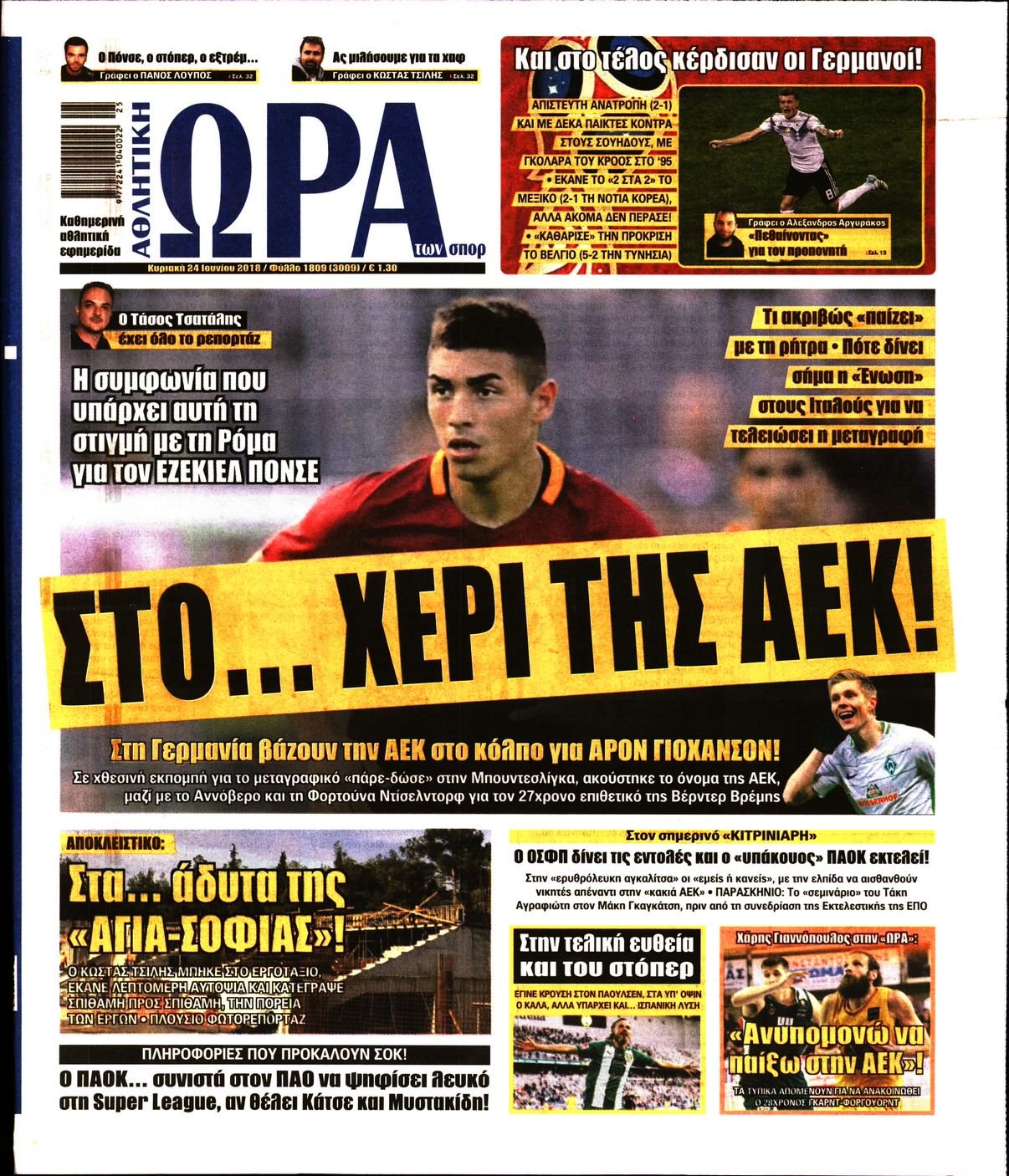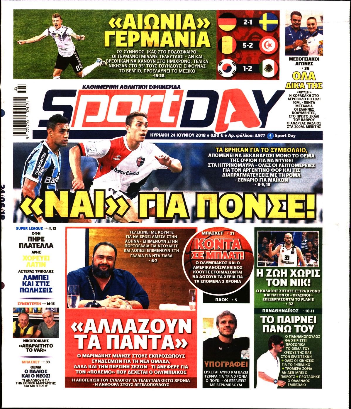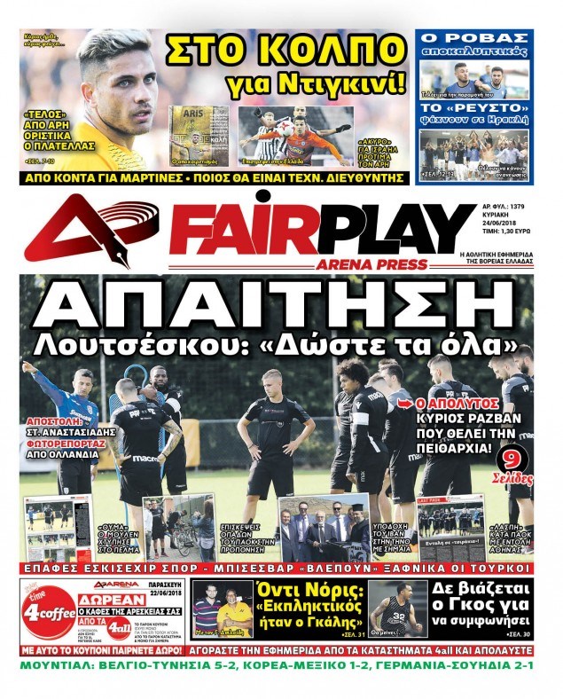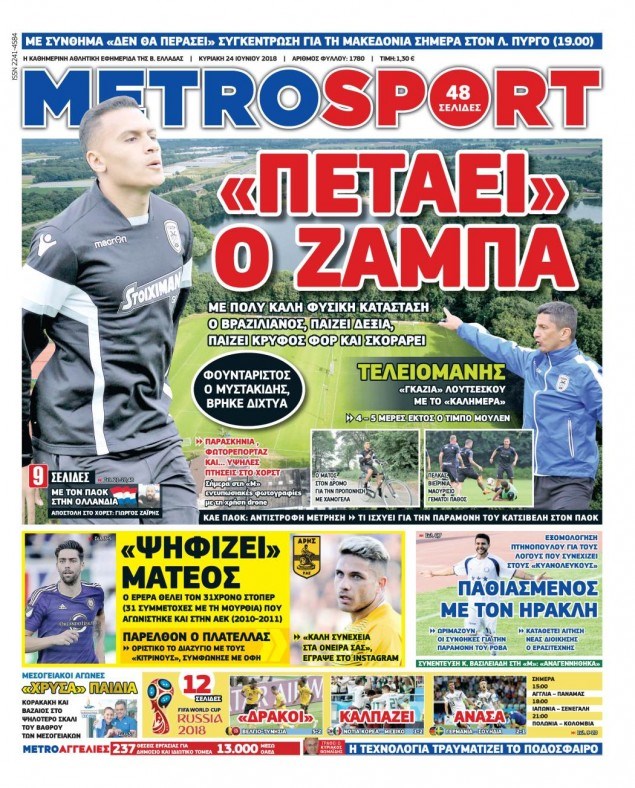 Οι αθλητικές εφημερίδες 24/6/18 Enikos Newsroom 06:52, Κυριακή 24 Ιουνίου 2018 Media Διαβάστε τα σημερινά πρωτοσέλιδα των αθλητικών εφημερίδων. ΑΘΛΗΤΙΚΕΣ ΕΦΗΜΕΡΙΔΕΣ ΠΡΩΤΟΣΕΛΙΔΑ Μοιράσου το: σχολίασε κι εσύ (0 σχόλια) Ακολουθήστε το enikos.gr στο Google News και μάθετε πρώτοι όλες τις ειδήσεις Δείτε όλες τις τελευταίες ειδήσεις από την Ελλάδα και τον Κόσμο στο enikos.gr Ειδήσεις Ροή Ειδήσεων 1 ώρα πριν Η Ουκρανία χτύπησε τάνκερ του σκιώδους στόλου της Ρωσίας στη Μεσόγειο – Έπλεε νότια της Κρήτης 4 ώρες πριν Πούτιν: Η Ουκρανία δεν είναι έτοιμη για ειρηνευτικές συνομιλίες – Ο ρωσικός στρατός προελαύνει σε όλα τα μέτωπα 24 λεπτά πριν Θεσσαλονίκη: Στη φυλακή ο 44χρονος που κατηγορείται ότι προσπάθησε να πνίξει με κορδόνι την 34χρονη σύντροφό του 41 λεπτά πριν Εξώδικο επιχειρηματία στον Γιώργο Μαζωνάκη – Τι απαντά στις καταγγελίες του τραγουδιστή 2 ώρες πριν Βουλή: Υπερψηφίστηκε το νομοσχέδιο για την ένταξη του ΟΠΕΚΕΠΕ στην ΑΑΔΕ 5 ώρες πριν Αλλαγή σελίδας για 3 ζώδια – «Μία δύσκολη περίοδος φτάνει στο τέλος της» 2 ημέρες πριν 20 χρόνια τα Χριστούγεννα ξεκινούν στα Public με μεγάλη ποικιλία σε δώρα! 4 ώρες πριν Γεμάτος νεροχύτης; 5 σοβαρές ευθύνες που «φοβίζουν» όσους αφήνουν άπλυτα πιάτα 3 ώρες πριν Ειδικός μοιράζεται 6 κόλπα για να διατηρείστε σε φόρμα με πάνω από 40 ώρες εργασίας την εβδομάδα: «Προπονηθείτε πριν από τη δουλειά, όχι μετά» 5 λεπτά πριν Η απάντηση της κυβέρνησης στα αιτήματα των αγροτών: 16+4 υλοποιούνται ή βρίσκονται υπό επεξεργασία για να βρεθεί λύση – 7 δεν μπορούν να επιλυθούν 12 λεπτά πριν Την Κυριακή με τη Realnews: Ό,τι και αν αγοράσεις, σκανάρεις και κερδίζεις! 18 λεπτά πριν ΝΒΑ: Η πρώτη… πεντάδα του Γιάννη Αντετοκούνμπο 20 λεπτά πριν Η Σάντυ Χατζηϊωάννου στο Game Time: Το παιδικό όνειρο με τον Αντώνη Νικοπολίδη και το ντουέτο με την Ευγενία Σαμαρά 24 λεπτά πριν Θεσσαλονίκη: Στη φυλακή ο 44χρονος που κατηγορείται ότι προσπάθησε να πνίξει με κορδόνι την 34χρονη σύντροφό του ENIKOS NETWORK Τάξη στις ιατρικές διαφημίσεις για την προστασία των πολιτών βάζει ο ΙΣΑ Μακροζωία: Τι παίζει πιο σημαντικό ρόλο ακόμα και από την διατροφή και την άσκηση, σύμφωνα με μελέτη Βουλή: Υπερψηφίστηκε το νομοσχέδιο για τη μετάβαση του ΟΠΕΚΕΠΕ στην ΑΑΔΕ ΕΥΔΑΠ: Οδηγός για τις αλλαγές στα τιμολόγια του νερού – 17 ερωτήσεις και απαντήσεις Χαρτογραφώντας το «σημείο χωρίς επιστροφή»: Για πρώτη φορά αποκαλύπτεται με λεπτομέρεια το ακανθώδες όριο της ατμόσφαιρας τ... Η Google καταργεί τη λειτουργία «dark web report» – Πώς θα μπορούν οι χρήστες να διαγράφουν τα δεδομένα τους περισσότερα 15:15 , Παρασκευή 19 Δεκεμβρίου 2025 Την Κυριακή με τη Realnews: Ό,τι και αν αγοράσεις, σκανάρεις και κερδίζεις! Την Κυριακή με τη Realnews: Ό,τι και αν αγοράσεις, σκανάρεις και κερδίζεις! Με το PADU app, το... 08:00 , Παρασκευή 19 Δεκεμβρίου 2025 Την Κυριακή με τη Realnews: Δωροεπιταγή 10€ Δωροεπιταγή αξίας 10€ για αγορές άνω των 60€ από τα πολυκαταστήματα FactoryOutlet H προσφορά ι... 05:48 , Παρασκευή 19 Δεκεμβρίου 2025 Οι οικονομικές εφημερίδες 19/12/2025 Διαβάστε τα πρωτοσέλιδα από τις οικονομικές εφημερίδες, σήμερα 19/12/2025. 05:43 , Παρασκευή 19 Δεκεμβρίου 2025 Οι αθλητικές εφημερίδες 19/12/2025 Διαβάστε τα πρωτοσέλιδα από τις αθλητικές εφημερίδες, σήμερα 19/12/2025. ΤΕΛΕΥΤΑΙΕΣ ΕΙΔΗΣΕΙΣ 5 λεπτά πριν Η απάντηση της κυβέρνησης στα αιτήματα των αγροτών: 16+4... 12 λεπτά πριν Την Κυριακή με τη Realnews: Ό,τι και αν αγοράσεις,... 18 λεπτά πριν ΝΒΑ: Η πρώτη… πεντάδα του Γιάννη Αντετοκούνμπο 20 λεπτά πριν Η Σάντυ Χατζηϊωάννο