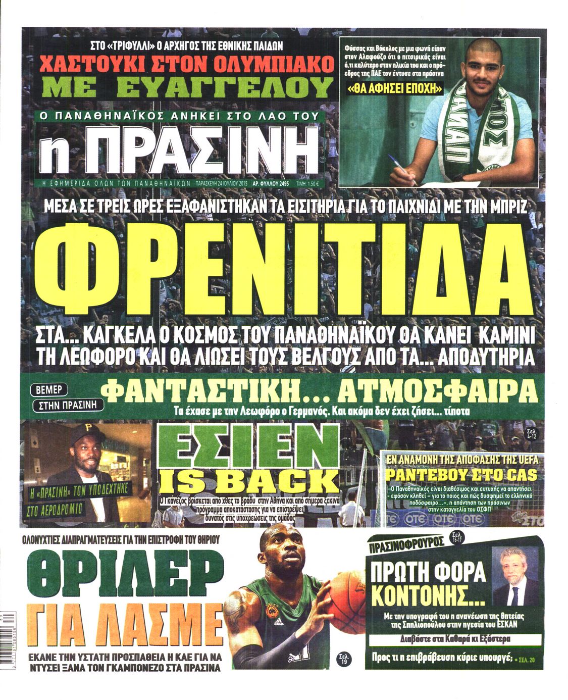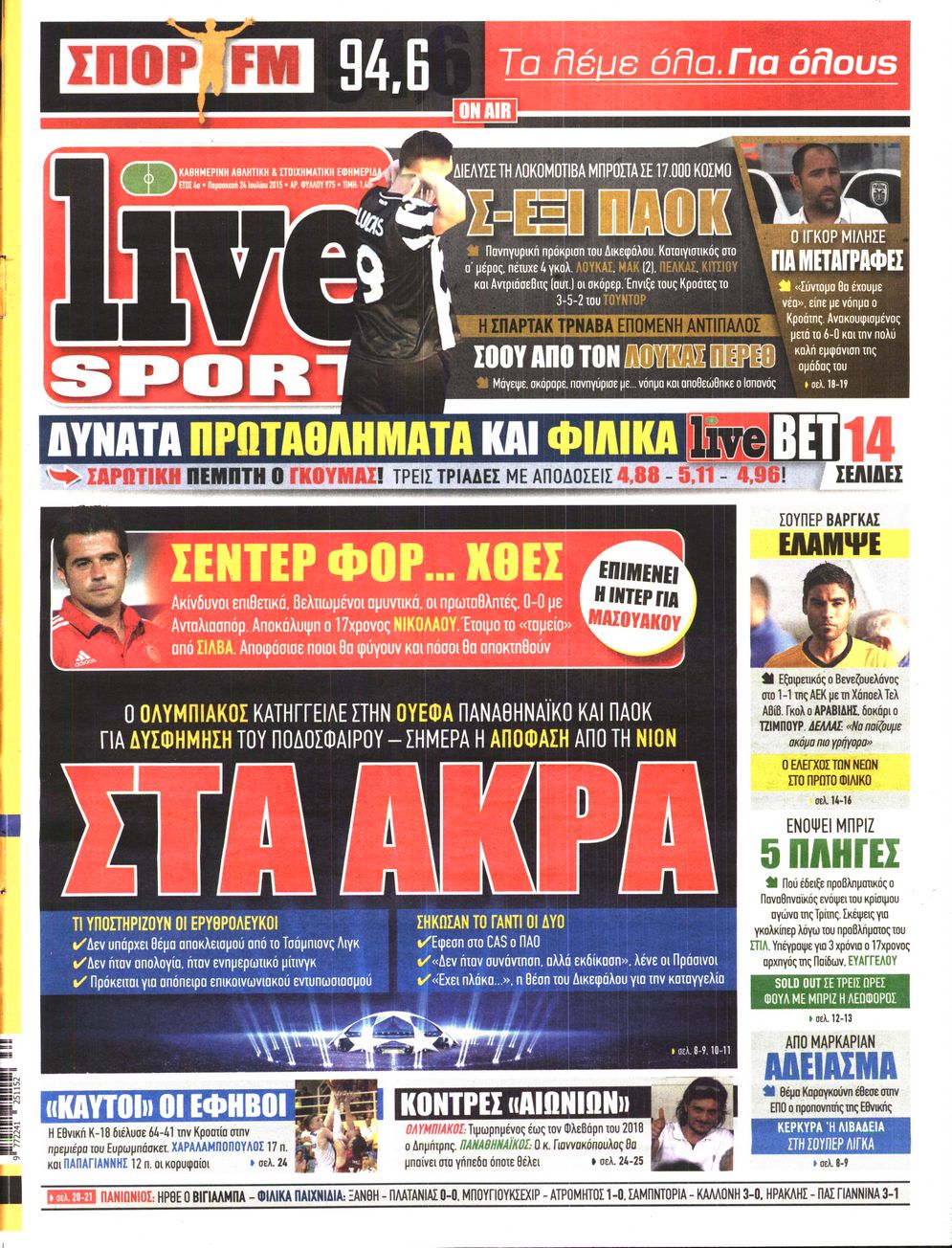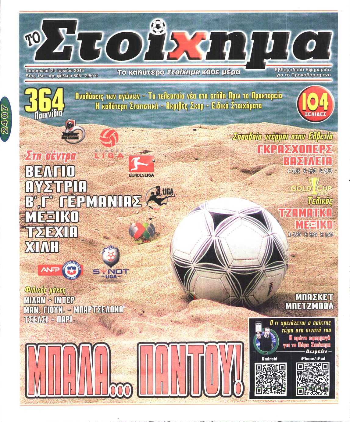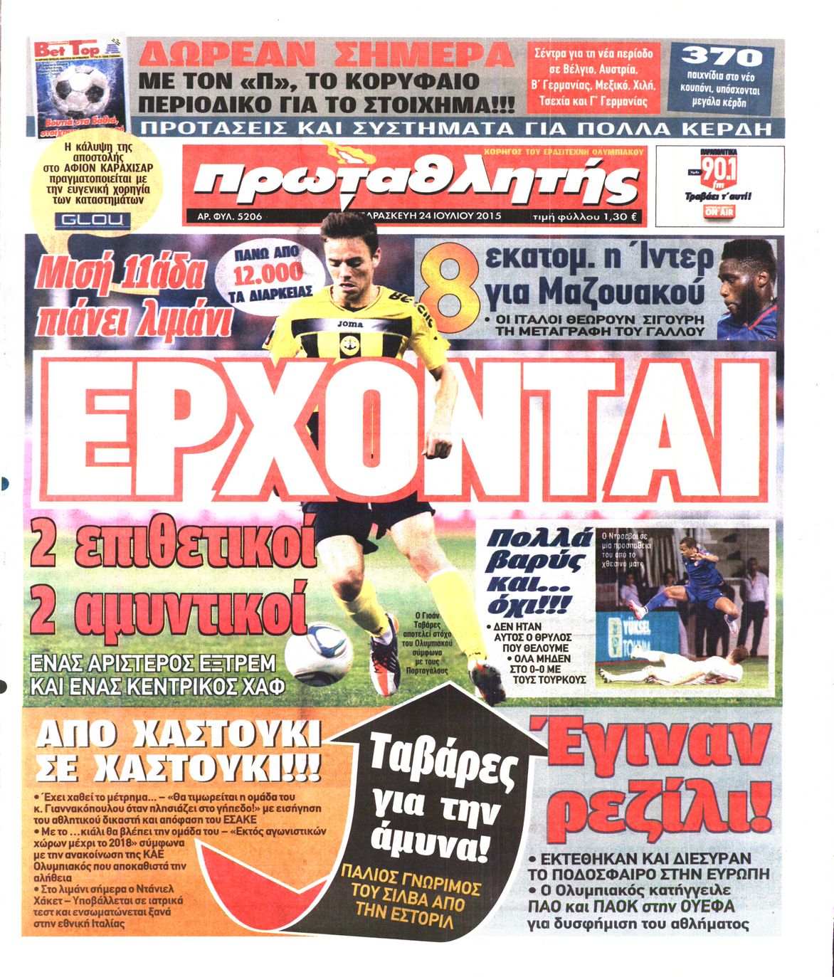 Οι αθλητικές εφημερίδες 24/7/2015 Enikos Newsroom 09:45, Παρασκευή 24 Ιουλίου 2015 Media Διαβάστε τα σημερινά πρωτοσέλιδα των αθλητικών εφημερίδων. ΑΘΛΗΤΙΚΕΣ ΕΦΗΜΕΡΙΔΕΣ ΕΦΗΜΕΡΙΔΕΣ ΠΡΩΤΟΣΕΛΙΔΑ Μοιράσου το: σχολίασε κι εσύ (0 σχόλια) Ακολουθήστε το enikos.gr στο Google News και μάθετε πρώτοι όλες τις ειδήσεις Δείτε όλες τις τελευταίες ειδήσεις από την Ελλάδα και τον Κόσμο στο enikos.gr Ειδήσεις Ροή Ειδήσεων 47 λεπτά πριν Καιρός: Επιδείνωση με ισχυρές βροχές και καταιγίδες σήμερα – Πού θα εκδηλωθούν έντονα φαινόμενα 38 λεπτά πριν Ελλάδα – Κύπρος – Ισραήλ: Η νέα αμυντική συνεργασία, το κέντρο κυβερνοασφάλειας και τα νεύρα της Τουρκίας 9 ώρες πριν «Τεστ» υπομονής η χριστουγεννιάτικη έξοδος: Οι ουρές χιλιομέτρων και η απόφαση να ανοίξουν επιπλέον λωρίδες – Εν αναμονή των επόμενων κινήσεων των αγροτών 8 ώρες πριν Τραγωδία στην Τουρκία: Νεκρός ο αρχηγός του Γενικού Επιτελείου της Λιβύης – Συνετρίβη λίγο μετά την απογείωση το ιδιωτικό τζετ που τον μετέφερε – ΦΩΤΟ και ΒΙΝΤΕΟ 9 ώρες πριν Θάνατος 3χρονου στην Αλεξανδρούπολη: «Το παιδί είχε φάει το προηγούμενο βράδυ» υποστηρίζει η μητέρα του – Στο νοσοκομείο τα αδελφάκια του 3 ώρες πριν Τα ζώδια σήμερα, Τετάρτη 24 Δεκεμβρίου: Αιγόκεροι, χρειάζεται να επαναπροσδιορίσετε τη σχέση σας με τον έρωτα 2 ώρες πριν Χοληστερίνη και σάκχαρο στο αίμα: Η κατανάλωση ενός ροφήματος κάθε μέρα μπορεί να βοηθήσει στην μείωσή τους 2 ώρες πριν Οπτική ψευδαίσθηση: Μόνο αν είσαι ο Σέρλοκ Χολμς θα βρεις τον αριθμό «87» σε 7 δευτερόλεπτα 23 ώρες πριν Η Coca-Cola και ο Ελληνικός Ερυθρός Σταυρός μαζί αυτά τα Χριστούγεννα: Μια μεγάλη αγκαλιά για τους συνανθρώπους μας που έχουν ανάγκη 8 λεπτά πριν Ρωσία: Κατάρριψη 12 ουκρανικών drones στην περιφέρεια Τούλα – Φωτιά σε βιομηχανική εγκατάσταση 10 λεπτά πριν Φανταστική συνταγή για χριστουγεννιάτικη σαλάτα με ζουμερά ρόδια, ψητό κολοκυθάκι και λαχανικά εποχής 19 λεπτά πριν Εφορία: Ποιες φορολογικές δηλώσεις κινδυνεύουν με «πέναλτι» εάν δεν υποβληθούν μέχρι την παραμονή της Πρωτοχρονιάς 25 λεπτά πριν Εβελίνα Νικόλιζα για την Μπέσσυ Αργυράκη: «Με είχε εκνευρίσει πάρα πολύ όταν είχε ερωτηθεί…» 31 λεπτά πριν Το όνομα Τραμπ για πρώτη φορά στα αρχεία Επστάιν – 5 συμπεράσματα από τη νέα μαζική δημοσίευση εγγράφων ENIKOS NETWORK Γιατί αυξάνονται τα εμφράγματα στις γιορτές – Πώς να μειώσετε τον κίνδυνο, σύμφωνα με καρδιολόγο Το μυστικό για τις πιο τραγανές και νόστιμες πατάτες φούρνου που έχετε φάει Εφορία: Ποιες φορολογικές δηλώσεις κινδυνεύουν με «πέναλτι» εάν δεν υποβληθούν μέχρι την παραμονή της Πρωτοχρονιάς Χριστούγεννα: Μπαράζ ελέγχων για κερδοσκοπία και πλασματικές εκπτώσεις Ο Google Assistant θα παραμείνει λίγο περισσότερο για ορισμένους χρήστες Android Τεστ προσωπικότητας: Το βάζο που θα επιλέξετε αποκαλύπτει πώς λύνετε προβλήματα στη ζωή σας περισσότερα 07:28 , Τετάρτη 24 Δεκεμβρίου 2025 Οι αθλητικές μεταδόσεις 24/12/2025 Τα παιχνίδια από το Κύπελλο Εθνών Αφρικής ξεχωρίζουν στο πρόγραμμα με τις αθλητικές μεταδόσεις... 07:01 , Τετάρτη 24 Δεκεμβρίου 2025 Αυτή την Κυριακή με τη Realnews: Το μυστήριο των Χριστουγέννων – Οι γιορτές στη Νέα Υόρκη παίρνουν μια αναπάντεχη τροπή, σε ένα συγκλονιστικό θρίλερ από τη συγγραφέα Vicki Delany Αυτή την Κυριακή με τη Realnews: Το μυστήριο των Χριστουγέννων – Οι γιορτές στη Νέα Υόρκ... 05:48 , Τετάρτη 24 Δεκεμβρίου 2025 Οι οικονομικές εφημερίδες 24/12/2025 Διαβάστε τα πρωτοσέλιδα από τις οικονομικές εφημερίδες, σήμερα 24/12/2025. 05:42 , Τετάρτη