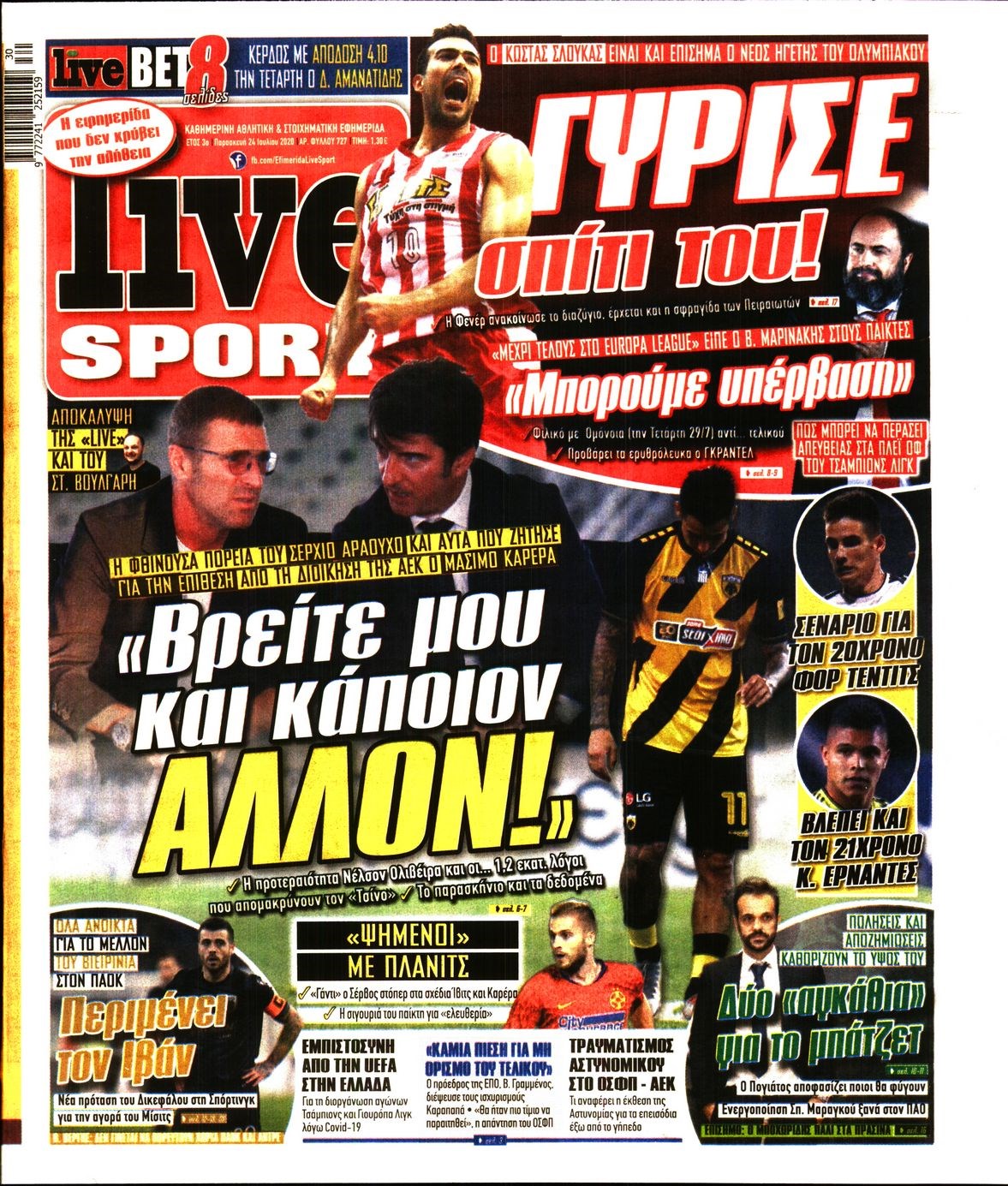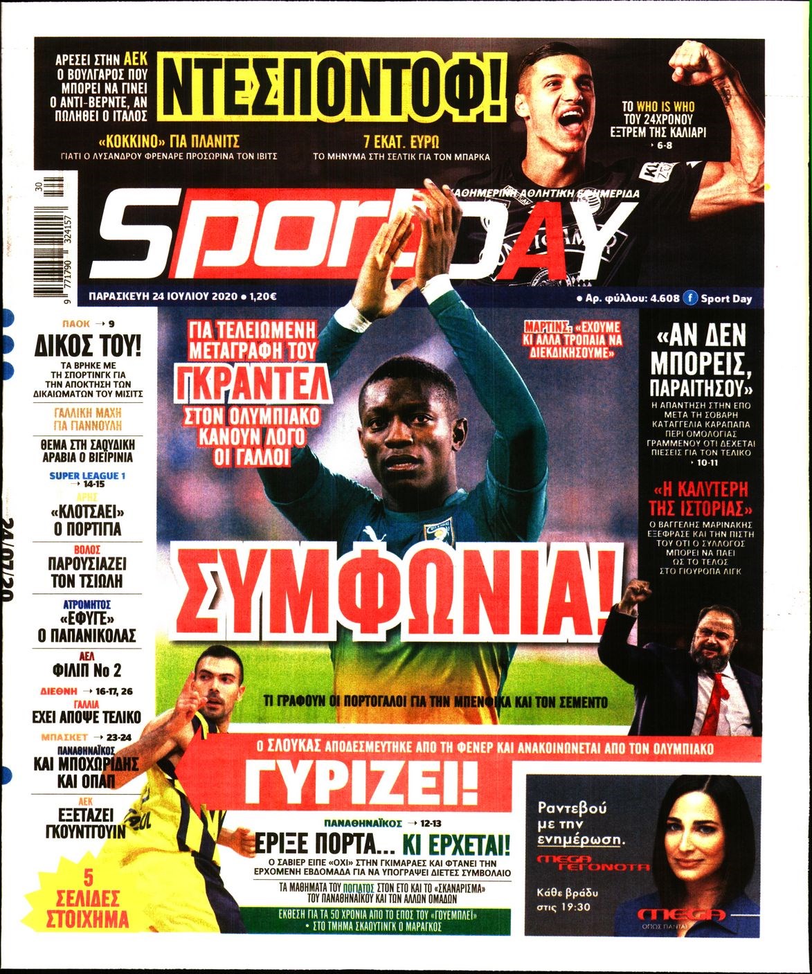 Οι αθλητικές εφημερίδες 24/7/2020 Διονύσης Νίκκας 06:36, Παρασκευή 24 Ιουλίου 2020 Media Διαβάστε τα πρωτοσέλιδα των αθλητικών εφημερίδων… ΑΘΛΗΤΙΚΕΣ ΕΦΗΜΕΡΙΔΕΣ Μοιράσου το: σχολίασε κι εσύ (0 σχόλια) Ακολουθήστε το enikos.gr στο Google News και μάθετε πρώτοι όλες τις ειδήσεις Δείτε όλες τις τελευταίες ειδήσεις από την Ελλάδα και τον Κόσμο στο enikos.gr Ειδήσεις Ροή Ειδήσεων 9 ώρες πριν Χριστούγεννα στα μπλόκα: Επιμένουν στις κινητοποιήσεις τους οι αγρότες – Ανοίγουν τα διόδια το Σαββατοκύριακο 2 ώρες πριν Σαρωτικοί οι έλεγχοι στους δρόμους ενόψει εορτών – Μπλόκα της τροχαίας σε κεντρικές αρτηρίες της Αττικής 9 ώρες πριν Πούτιν: Τα μηνύματα σε Ευρώπη και ΝΑΤΟ από το μαραθώνιο «σόου» του – Η απαίτηση για «σεβασμό» και η ειρήνη «με τους όρους» της Μόσχας 8 ώρες πριν ΗΠΑ: Η κυβέρνηση του Ντόναλντ Τραμπ άρχισε να δημοσιοποιεί τα αρχεία Έπσταϊν 8 ώρες πριν Άνω Λιόσια: Πυροβολισμοί σε επιχείρηση με χαλιά – Εντοπίστηκαν 10 κάλυκες 2 ώρες πριν Αυγά: Πόσα μπορείτε να τρώτε την ημέρα με ασφάλεια για μέγιστη πρόσληψη πρωτεΐνης 2 ώρες πριν Τα ζώδια σήμερα, Σάββατο 20 Δεκεμβρίου: Παρθένοι, το σύμπαν σας δίνει το κλειδί 9 ώρες πριν Ανακαλύφθηκαν αρχαία χρυσά νομίσματα 2.200 ετών που απεικονίζουν τον θεό Απόλλωνα – Η άγνωστη σύνδεση με τον Φίλιππο Β΄ της Μακεδονίας 2 ώρες πριν Οπτική ψευδαίσθηση: Μόνο αν είσαι ο Σέρλοκ Χολμς θα βρεις τον αριθμό «87» σε 7 δευτερόλεπτα 3 λεπτά πριν Καιρός: Αλλαγή σκηνικού σήμερα με βροχές και πτώση της θερμοκρασίας – Οι προβλέψεις των μετεωρολόγων για τα Χριστούγεννα 10 λεπτά πριν ΟΝΕΧ – MEGATUGS: Ξεκίνησε η ναυπήγηση ρυμουλκών στην Ελλάδα – Προθάλαμος πολεμικών πλοίων – Δείτε φωτογραφίες και βίντεο 19 λεπτά πριν Φοινικούντα: Σήμερα απολογείται ο 30χρονος γιος γνωστού επιχειρηματία της Πλάκας 27 λεπτά πριν Οι αθλητικές μεταδόσεις 20/12/2025 36 λεπτά πριν Εορτολόγιο: Ποιοι γιορτάζουν σήμερα 20 Δεκεμβρίου ENIKOS NETWORK Πρέπει να αποδέχεστε ή να απορρίπτετε όλα τα cookies; Ένας ειδικός εξηγεί Η αγαπημένη λιχουδιά των πόνι που μπορεί να ενισχύσει όραση, εγκέφαλο και ανοσοποιητικό Αναστολή μέτρων αναγκαστικής εκτέλεσης για κτηνοτρόφους που πλήττονται από την ευλογιά των αιγοπροβάτων Πλήρης επάρκεια προϊόντων στις λαϊκές της Αττικής, παρά τις αγροτικές κινητοποιήσεις – Τι απαντούν οι πωλητές Χαρτογραφώντας το «σημείο χωρίς επιστροφή»: Για πρώτη φορά αποκαλύπτεται με λεπτομέρεια το ακανθώδες όριο της ατμόσφαιρας τ... Η Google καταργεί τη λειτουργία «dark web report» – Πώς θα μπορούν οι χρήστες να διαγράφουν τα δεδομένα τους περισσότερα 05:48 , Σάββατο 20 Δεκεμβρίου 2025 Οι οικονομικές εφημερίδες 20/12/2025 Διαβάστε τα πρωτοσέλιδα από τις οικονομικές εφημερίδες, σήμερα 20/12/2025. 05:43 , Σάββατο 20 Δεκεμβρίου 2025 Οι αθλητικές εφημερίδες 20/12/2025 Διαβάστε τα πρωτοσέλιδα από τις αθλητικές εφημερίδες, σήμερα 20/12/2025. 05:38 , Σάββατο 20 Δεκεμβρίου 2025 Οι πολιτικές εφημερίδες 20/12/2025 Διαβάστε τα πρωτοσέλιδα από τις πολιτικές εφημερίδες, σήμερα 20/12/2025. 04:20 , Σάββατο 20 Δεκεμβρίου 2025 Αγγελική Νικολούλη: Τα συλλυπητήρια για την απώλεια της Ειρήνης Μαρινάκη Τα συλληπητήρια στον πρόεδρο του Mega, τον Βαγγέλη Μαρινάκη, για την απώλεια της μητέρας του Ε... ΤΕΛΕΥΤΑΙΕΣ ΕΙΔΗΣΕΙΣ 10 λεπτά πριν ΟΝΕΧ – MEGATUGS: Ξεκίνησε η ναυπήγηση ρυμουλκών στην... 19 λεπτά πριν Φοινικούντα: Σήμερα απολογείται ο 30χρονος γιος... 27 λεπτά πριν Οι αθλητικές μεταδόσεις 20/12/2025 36 λεπτά πριν Εορτολόγιο: Ποιοι γιορτάζουν σήμερα 20 Δεκεμβρίου 44 λεπτά πριν Συρία: Μπ