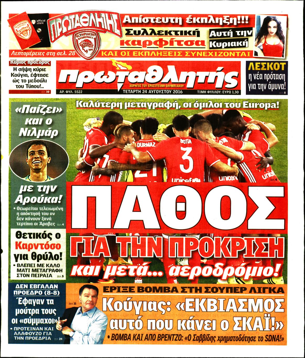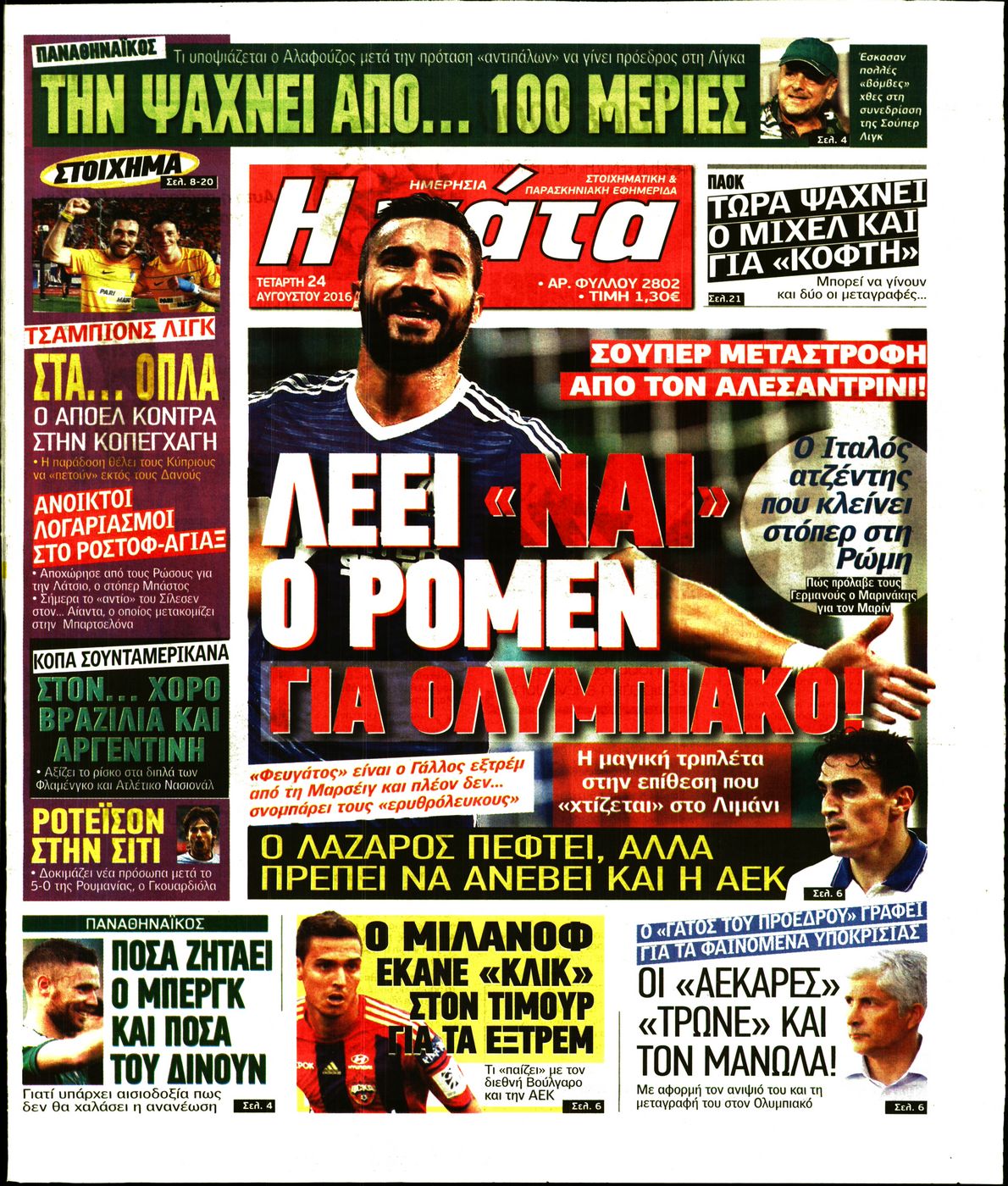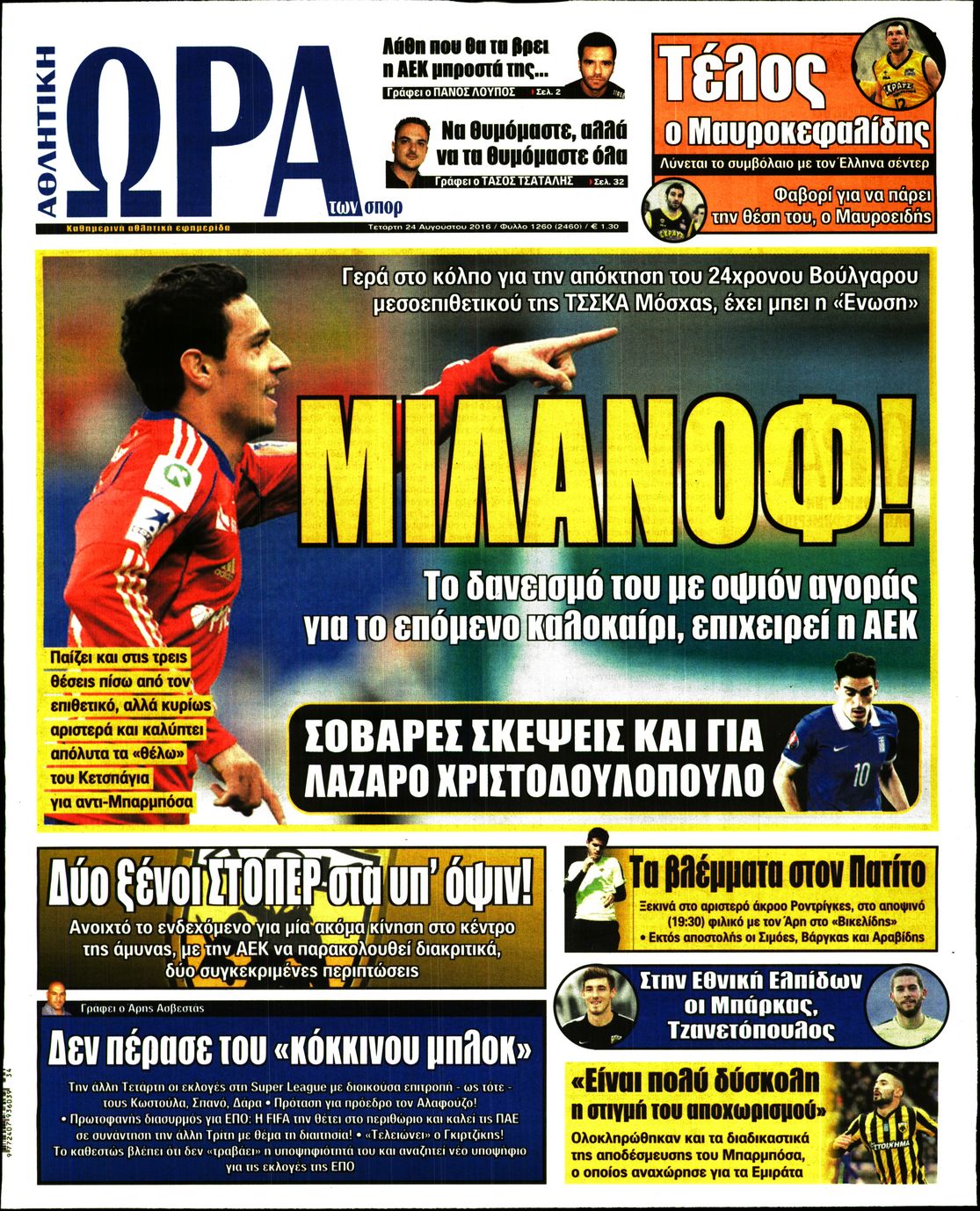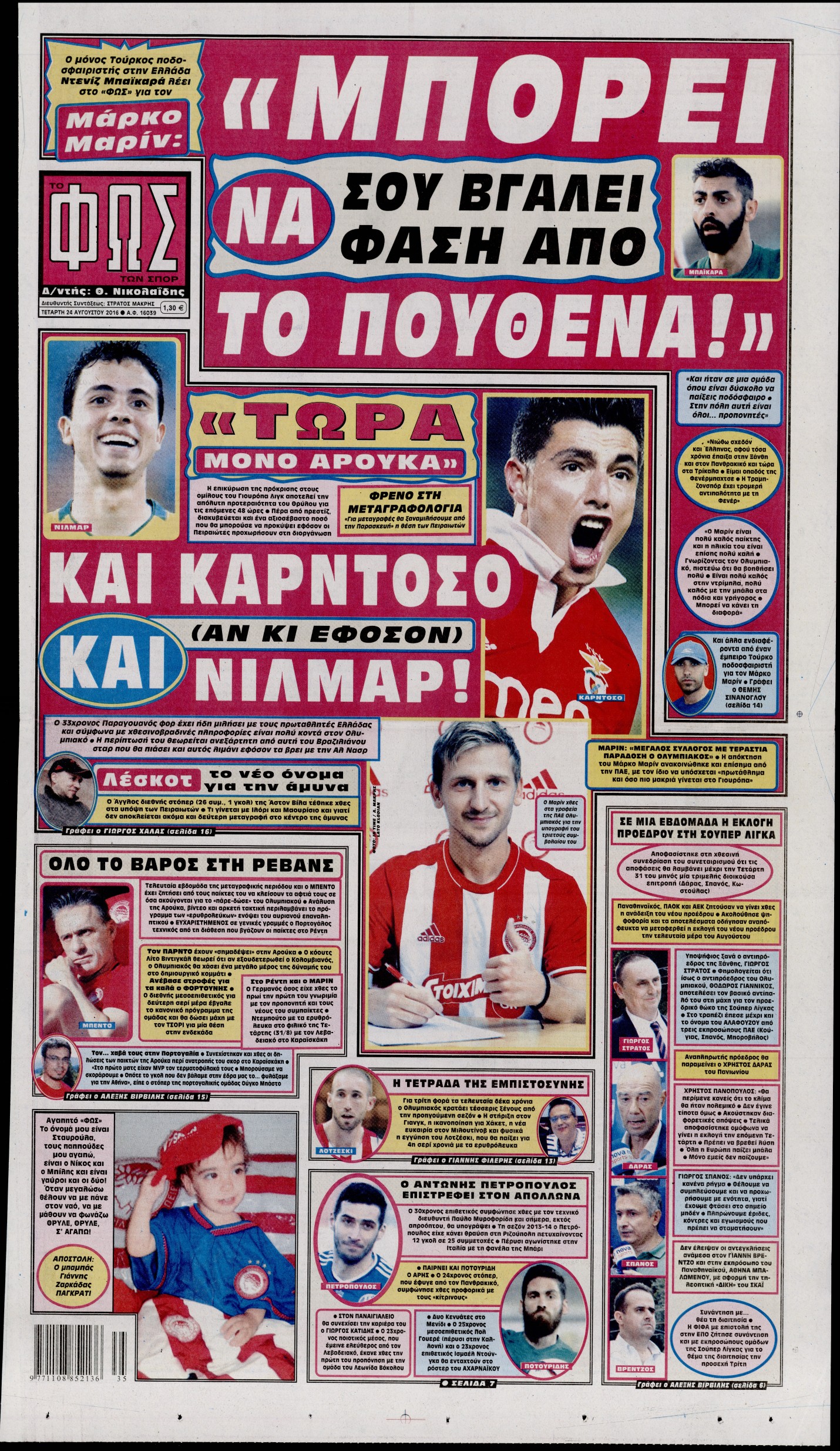 Οι αθλητικές εφημερίδες 24/8/2016 Enikos Newsroom 05:59, Τετάρτη 24 Αυγούστου 2016 Media Διαβάστε τα σημερινά πρωτοσέλιδα των αθλητικών εφημερίδων: ΑΘΛΗΤΙΚΕΣ ΕΦΗΜΕΡΙΔΕΣ ΠΡΩΤΟΣΕΛΙΔΑ Μοιράσου το: σχολίασε κι εσύ (0 σχόλια) Ακολουθήστε το enikos.gr στο Google News και μάθετε πρώτοι όλες τις ειδήσεις Δείτε όλες τις τελευταίες ειδήσεις από την Ελλάδα και τον Κόσμο στο enikos.gr Ειδήσεις Ροή Ειδήσεων 3 ώρες πριν Νίκος Παππάς: «Είχα λάθος αντίδραση στη δική του δράση-πρόκληση – Δεν θα αναλύσω σε τι κατάσταση ήταν ο δημοσιογράφος» 49 λεπτά πριν Νίκος Γιαννόπουλος για Νίκο Παππά: «Είναι επικίνδυνος, θα του κάνω ασφαλιστικά» – ΒΙΝΤΕΟ 2 ώρες πριν Αλεξανδρούπολη: Πολυοργανική ανεπάρκεια λόγω υποσιτισμού η αιτία θανάτου του 3χρονου αγοριού 2 ώρες πριν Δημοσκόπηση Pulse: Η διαφορά ΝΔ-ΠΑΣΟΚ – Με ποια κριτήρια θα ψηφίσουν οι πολίτες στις επόμενες εκλογές 3 ώρες πριν Συγκλονιστικό βίντεο: Τρόμος για τουρίστες που σώθηκαν την τελευταία στιγμή από λεωφορείο που κατρακυλούσε σε φαράγγι 1 ώρα πριν Ύπνος: Ειδικός εξηγεί τον πραγματικό λόγο που ξυπνάτε στις 4 τα ξημερώματα – Ο ρόλος των ορμονών και του κιρκάδιου ρυθμού 2 ώρες πριν Αριθμολογία: Οι άνθρωποι που έχουν γεννηθεί αυτές τις 4 ημερομηνίες, είναι τρυφεροί και αγαπούν ανιδιοτελώς 3 ώρες πριν Καθρέφτες μπάνιου: Το απλό κόλπο με την οδοντόκρεμα για να μην θολώνουν 14 ώρες πριν 20 χρόνια τα Χριστούγεννα ξεκινούν στα Public με μεγάλη ποικιλία σε δώρα! 4 λεπτά πριν Μυστήριο με τεράστιες κυκλικές πέτρες 200 κιλών – Ανακαλύφθηκαν τυχαία κατά τη διάρκεια οδικών έργων και κανείς δεν ξέρει από πού προέρχονται 7 λεπτά πριν Τάκης Ζαχαράτος και Έλενα Παπαρίζου μαζί στη σκηνή – Πότε κάνουν πρεμιέρα; 14 λεπτά πριν Κυψέλη: Χωρίς την οικογένειά της δίπλα της απολογήθηκε η 16χρονη – «Της είχε επιτεθεί κάποιος για να την βιάσει, φοβήθηκε και κυκλοφορούσε με μαχαίρι» 20 λεπτά πριν «Αγριεύουν» οι αγρότες: «Δεν συντρέχει λόγος συνάντησης με τον πρωθυπουργό» – Ώρα αποφάσεων στη σύσκεψη της Πέμπτης 25 λεπτά πριν Χρίστος Αντωνιάδης: «Όποιος δεν έχει κάνει δίδυμα, δεν δικαιούται διά να ομιλεί» ENIKOS NETWORK Αϋπνία: Το κόλπο που θα σας βοηθήσει να κοιμηθείτε απόψε – Είναι απλό και έχει αποτέλεσμα 2,6 εκατομμύρια πολίτες έχουν ήδη εμβολιαστεί κατά της γρίπης ΚΕΠΕ: Οι 3 διακριτές συμβολές των ΜμΕ και της μεταποίησης στην ελληνική οικονομία Χειμερινές εκπτώσεις: Πότε αρχίζουν και τι πρέπει να προσέξουν οι καταναλωτές Χαρτογραφώντας το «σημείο χωρίς επιστροφή»: Για πρώτη φορά αποκαλύπτεται με λεπτομέρεια το ακανθώδες όριο της ατμόσφαιρας τ... Η Google καταργεί τη λειτουργία «dark web report» – Πώς θα μπορούν οι χρήστες να διαγράφουν τα δεδομένα τους περισσότερα 22:24 , Τετάρτη 17 Δεκεμβρίου 2025 Το Σπίτι Δίπλα Στο Ποτάμι: Σε κίνδυνο η υγεία του Απόστολου – Τι θα δούμε απόψε “Το Σπίτι Δίπλα στο Ποτάμι” ξετυλίγει το νήμα της ζωής των πέντε αδελφών με καταισ... 21:14 , Τετάρτη 17 Δεκεμβρίου 2025 Παιχνίδια Εκδίκησης: Θα καταφέρει ο Χρήστος να κλονίσει την εμπιστοσύνη της Μάγιας απέναντι στον Άγη; Τα «Παιχνίδια Εκδίκησης» έρχονται απόψε στις 22:30, στον Αντ1, με το τελευταίο επεισόδιο της χ... 20:57 , Τετάρτη 17 Δεκεμβρίου 2025 Άγιος Έρωτας: Η Χλόη καταθέτει εναντίον του πατέρα της και ο Χάρης αποκαλύπτει στον Κλεάνθη ότι δεν είναι ο βιολογικός του πατέρας. Γεμάτο αποκαλύψεις είναι το νέο επεισόδιο της σειράς “Άγιος Έρωτας” απόψε στις 21:... 20:15 , Τετάρτη 17 Δεκεμβρίου 2025 Η ανακοίνωση της ΕΣΗΕΑ για την επίθεση του Ευρωβ