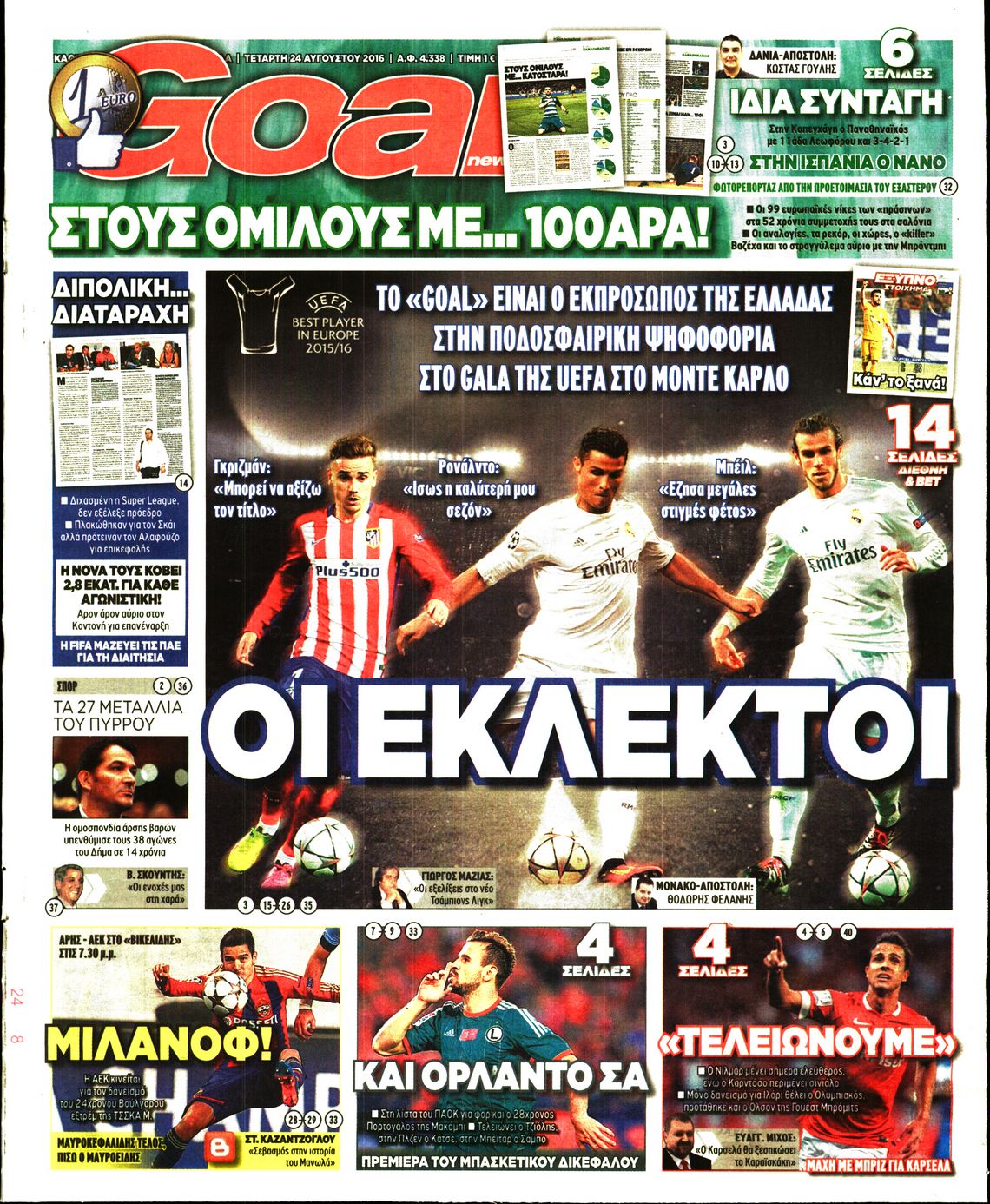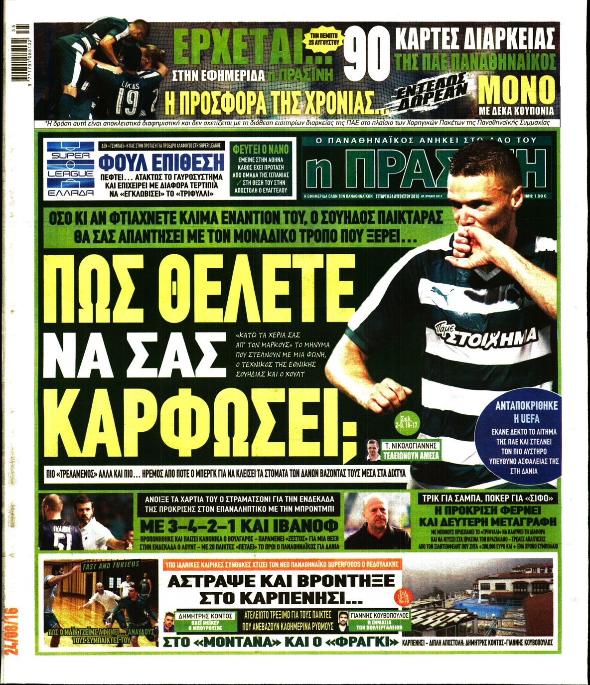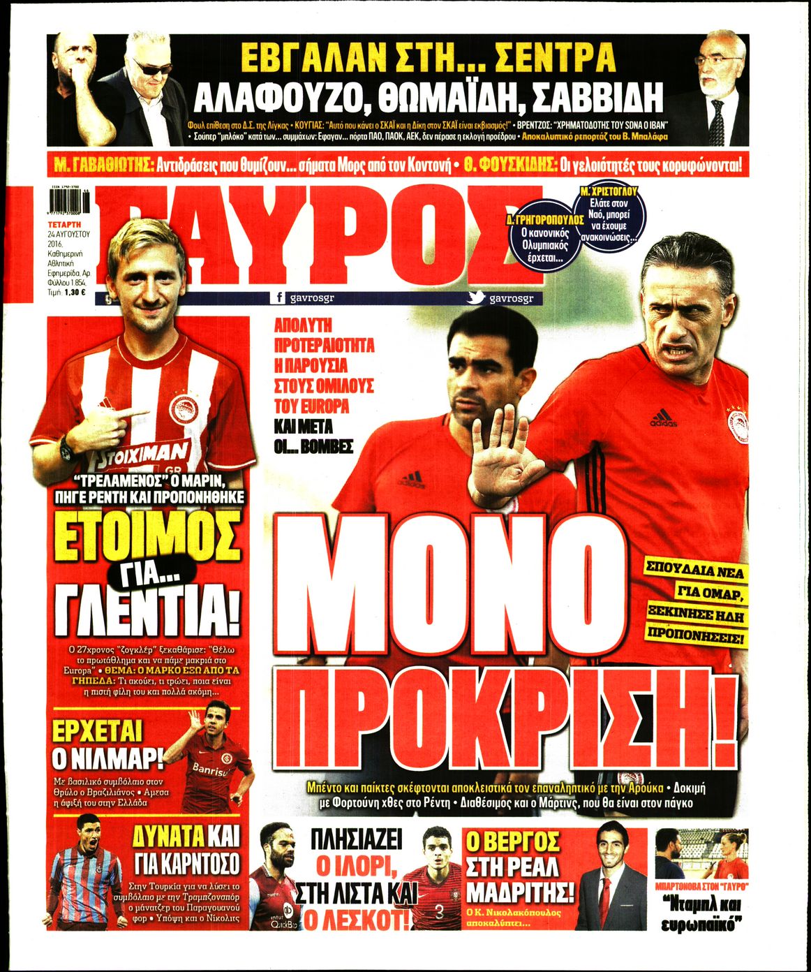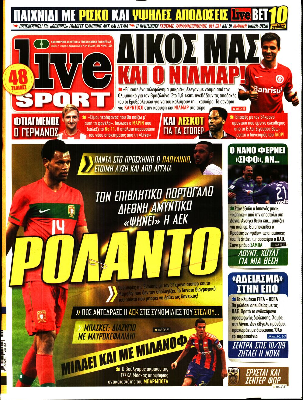 Οι αθλητικές εφημερίδες 24/8/2016 Enikos Newsroom 05:59, Τετάρτη 24 Αυγούστου 2016 Media Διαβάστε τα σημερινά πρωτοσέλιδα των αθλητικών εφημερίδων: ΑΘΛΗΤΙΚΕΣ ΕΦΗΜΕΡΙΔΕΣ ΠΡΩΤΟΣΕΛΙΔΑ Μοιράσου το: σχολίασε κι εσύ (0 σχόλια) Ακολουθήστε το enikos.gr στο Google News και μάθετε πρώτοι όλες τις ειδήσεις Δείτε όλες τις τελευταίες ειδήσεις από την Ελλάδα και τον Κόσμο στο enikos.gr Ειδήσεις Ροή Ειδήσεων 3 ώρες πριν Νίκος Παππάς: «Είχα λάθος αντίδραση στη δική του δράση-πρόκληση – Δεν θα αναλύσω σε τι κατάσταση ήταν ο δημοσιογράφος» 49 λεπτά πριν Νίκος Γιαννόπουλος για Νίκο Παππά: «Είναι επικίνδυνος, θα του κάνω ασφαλιστικά» – ΒΙΝΤΕΟ 2 ώρες πριν Αλεξανδρούπολη: Πολυοργανική ανεπάρκεια λόγω υποσιτισμού η αιτία θανάτου του 3χρονου αγοριού 2 ώρες πριν Δημοσκόπηση Pulse: Η διαφορά ΝΔ-ΠΑΣΟΚ – Με ποια κριτήρια θα ψηφίσουν οι πολίτες στις επόμενες εκλογές 3 ώρες πριν Συγκλονιστικό βίντεο: Τρόμος για τουρίστες που σώθηκαν την τελευταία στιγμή από λεωφορείο που κατρακυλούσε σε φαράγγι 1 ώρα πριν Ύπνος: Ειδικός εξηγεί τον πραγματικό λόγο που ξυπνάτε στις 4 τα ξημερώματα – Ο ρόλος των ορμονών και του κιρκάδιου ρυθμού 2 ώρες πριν Αριθμολογία: Οι άνθρωποι που έχουν γεννηθεί αυτές τις 4 ημερομηνίες, είναι τρυφεροί και αγαπούν ανιδιοτελώς 3 ώρες πριν Καθρέφτες μπάνιου: Το απλό κόλπο με την οδοντόκρεμα για να μην θολώνουν 14 ώρες πριν 20 χρόνια τα Χριστούγεννα ξεκινούν στα Public με μεγάλη ποικιλία σε δώρα! 4 λεπτά πριν Μυστήριο με τεράστιες κυκλικές πέτρες 200 κιλών – Ανακαλύφθηκαν τυχαία κατά τη διάρκεια οδικών έργων και κανείς δεν ξέρει από πού προέρχονται 7 λεπτά πριν Τάκης Ζαχαράτος και Έλενα Παπαρίζου μαζί στη σκηνή – Πότε κάνουν πρεμιέρα; 14 λεπτά πριν Κυψέλη: Χωρίς την οικογένειά της δίπλα της απολογήθηκε η 16χρονη – «Της είχε επιτεθεί κάποιος για να την βιάσει, φοβήθηκε και κυκλοφορούσε με μαχαίρι» 20 λεπτά πριν «Αγριεύουν» οι αγρότες: «Δεν συντρέχει λόγος συνάντησης με τον πρωθυπουργό» – Ώρα αποφάσεων στη σύσκεψη της Πέμπτης 25 λεπτά πριν Χρίστος Αντωνιάδης: «Όποιος δεν έχει κάνει δίδυμα, δεν δικαιούται διά να ομιλεί» ENIKOS NETWORK Αϋπνία: Το κόλπο που θα σας βοηθήσει να κοιμηθείτε απόψε – Είναι απλό και έχει αποτέλεσμα 2,6 εκατομμύρια πολίτες έχουν ήδη εμβολιαστεί κατά της γρίπης ΚΕΠΕ: Οι 3 διακριτές συμβολές των ΜμΕ και της μεταποίησης στην ελληνική οικονομία Χειμερινές εκπτώσεις: Πότε αρχίζουν και τι πρέπει να προσέξουν οι καταναλωτές Χαρτογραφώντας το «σημείο χωρίς επιστροφή»: Για πρώτη φορά αποκαλύπτεται με λεπτομέρεια το ακανθώδες όριο της ατμόσφαιρας τ... Η Google καταργεί τη λειτουργία «dark web report» – Πώς θα μπορούν οι χρήστες να διαγράφουν τα δεδομένα τους περισσότερα 22:24 , Τετάρτη 17 Δεκεμβρίου 2025 Το Σπίτι Δίπλα Στο Ποτάμι: Σε κίνδυνο η υγεία του Απόστολου – Τι θα δούμε απόψε “Το Σπίτι Δίπλα στο Ποτάμι” ξετυλίγει το νήμα της ζωής των πέντε αδελφών με καταισ... 21:14 , Τετάρτη 17 Δεκεμβρίου 2025 Παιχνίδια Εκδίκησης: Θα καταφέρει ο Χρήστος να κλονίσει την εμπιστοσύνη της Μάγιας απέναντι στον Άγη; Τα «Παιχνίδια Εκδίκησης» έρχονται απόψε στις 22:30, στον Αντ1, με το τελευταίο επεισόδιο της χ... 20:57 , Τετάρτη 17 Δεκεμβρίου 2025 Άγιος Έρωτας: Η Χλόη καταθέτει εναντίον του πατέρα της και ο Χάρης αποκαλύπτει στον Κλεάνθη ότι δεν είναι ο βιολογικός του πατέρας. Γεμάτο αποκαλύψεις είναι το νέο επεισόδιο της σειράς “Άγιος Έρωτας” απόψε στις 21:... 20:15 , Τετάρτη 17 Δεκεμβρίου 2025 Η ανακοίνωση της ΕΣΗΕΑ για την επίθεση του Ευρωβ