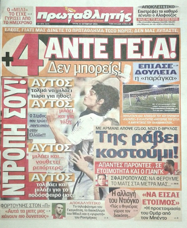 Οι αθλητικές εφημερίδες 25/10/2016 Κώστας Τεό 04:19, Τρίτη 25 Οκτωβρίου 2016 Media Διαβάστε τα σημερινά πρωτοσέλιδα των αθλητικών εφημερίδων: ΑΘΛΗΤΙΚΕΣ ΕΦΗΜΕΡΙΔΕΣ ΠΡΩΤΟΣΕΛΙΔΑ Μοιράσου το: σχολίασε κι εσύ (0 σχόλια) Ακολουθήστε το enikos.gr στο Google News και μάθετε πρώτοι όλες τις ειδήσεις Δείτε όλες τις τελευταίες ειδήσεις από την Ελλάδα και τον Κόσμο στο enikos.gr Ειδήσεις Ροή Ειδήσεων 5 ώρες πριν Χίος: 15 νεκροί και πολλοί τραυματίες μετά το σοβαρό επεισόδιο Λιμενικού και σκάφους διακινητών 6 ώρες πριν Δολοφονία στη Νέα Πέραμο: Στο «μικροσκόπιο» των Αρχών η τεράστια περιουσία του 27χρονου – Η κατάθεση της συντρόφου του και όσα λένε συγγενικά του πρόσωπα 6 ώρες πριν Υπόθεση Επστάιν: Η σαπίλα που αναδύεται έχει βαθιές ρίζες – Η Αμερική πρέπει τώρα να αναρωτηθεί αν μπορεί να ξεπεράσει μια κουλτούρα ντροπής 6 ώρες πριν Πέπλο μυστηρίου γύρω από την εξαφάνιση της 16χρονης Λόρας – Ο άνδρας που βρέθηκε μαζί της στην πτήση, ο «αυταρχικός» πατέρας και η αντίδραση του αδελφού της 8 ώρες πριν Κλειστό για τρεις ημέρες το Ειδικό Σχολείο Σάμου: «Κάθε έλλειψη είναι κίνδυνος», λένε οι γονείς – Τι υποστηρίζει ο Δήμος 2 ώρες πριν Τα ζώδια σήμερα, Τετάρτη 4 Φεβρουαρίου 2026: Ζυγοί, τιμήστε την ανάγκη σας για αναζωογόνηση 6 ώρες πριν «Χρυσή» αρχαιολογική ανακάλυψη σε χωριό – Βρέθηκε αριστοκρατικός οικισμός σε κτήματα θρυλικού βασιλιά 8 ώρες πριν Πώς να προσελκύσετε πλούτο, ανάλογα με τον μήνα γέννησής σας 9 ώρες πριν Οι άνδρες που δεν σταματούν ποτέ να κάνουν τις γυναίκες τους να νιώθουν ξεχωριστές, έχουν συνήθως αυτά τα 4 ιδιαίτερα χαρακτηριστικά 2 λεπτά πριν Εφημερεύοντα φαρμακεία σε Αθήνα και Θεσσαλονίκη (4/2) 7 λεπτά πριν Συνομιλίες ΗΠΑ – Ιράν αύριο στο Ομάν κι όχι στην Τουρκία, αναφέρουν αραβικές πηγές 23 λεπτά πριν Ιωάννινα: Αρχίζει σήμερα ο προσυνεδριακός διάλογος για το 16ο Τακτικό Συνέδριο της ΝΔ 47 λεπτά πριν Χιός: Νεότερη ενημέρωση από τους τραυματίες – Ελαφρά οι δύο του λιμενικού – Με το πρώτο φως της μέρας συνεχίζονται οι έρευνες για αγνοούμενους 59 λεπτά πριν Θετικό το κλίμα στη συνάντηση Τραμπ με τον πρόεδρο της Κολομβίας Γουστάβο Πέτρο για την καταπολέμηση της εμπορίας ναρκωτικών ENIKOS NETWORK Κρίση άγχους: Το πρώτο πράγμα που προτείνει ένας ψυχοθεραπευτής να κάνετε για να ηρεμήσετε Άδωνις Γεωργιάδης: Σε app για το κινητό τηλέφωνο το Εθνικό Μητρώο Νεοπλασιών ΕΑΕΕ: Άνοδος στην παραγωγή ασφαλίστρων το ενδεκάμηνο του 2025 – Τι δείχνουν τα στοιχεία Κενές περισσότερες από 70.000 θέσεις εργασίας στον γεωργικό τομέα – «Περίπου το 10% του καρπού της ελιάς έχει μείνει στα δέ... Ευπάθεια στο moltbook ai αποκαλύπτει email, tokens σύνδεσης και api keys Αυτός είναι ο ρόλος της μικρής τρύπας στους νυχοκόπτες – «Είμαι ο μόνος που δεν το ήξερε;»» περισσότερα 02:33 , Τετάρτη 04 Φεβρουαρίου 2026 MasterChef: Λύγισε ο Γιώργος Αχλαδιώτης – «Κερδίζω, συγκινούμαι… Τώρα θα τους δείξω τι αξίζω» Το πρώτο Τεστ Δημιουργικότητας του MasterChef ολοκληρώθηκε με έναν ξεκάθαρο πρωταγωνιστή. Ο Γι... 21:33 , Τρίτη 03 Φεβρουαρίου 2026 Porto Leone: Στη γειτονιά με τα κόκκινα φανάρια – Η Ασημίνα αποκαλύπτει στην Αλεξάνδρα την εγκυμοσύνη της Λένας Η μεγάλη δραματική σειρά του Apha «Porto Leone: Στη γειτονιά με τα κόκκινα φανάρια» επιστρέφει... 19:52 , Τρίτη 03 Φεβρουαρίου 2026 Να μ’ αγαπάς: Ο Θεόφιλος ζητά από την Σοφία να φύγει από το σπίτι Στο σπίτι των Καλλιγά, τα αληθινά αποτελέσματα DNA επιβεβαιώνουν ότι η Εβίτα είναι κόρη του Θε... 10:57 , Τρίτη 03 Φεβρουαρίου 2026 Ακούστε το σχόλι
