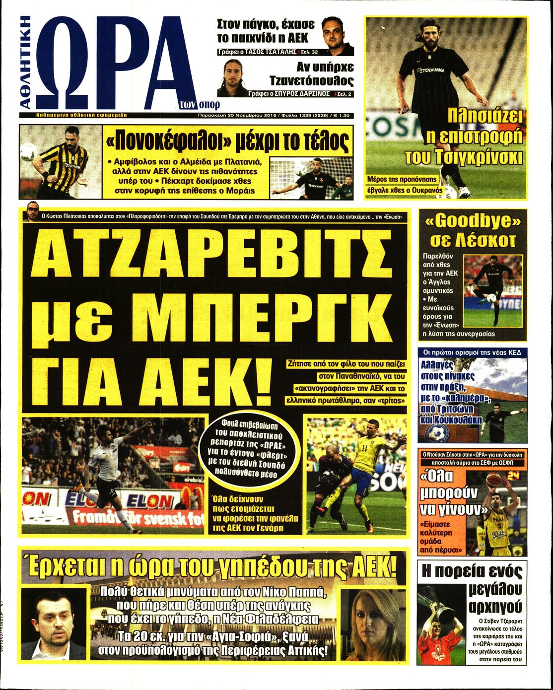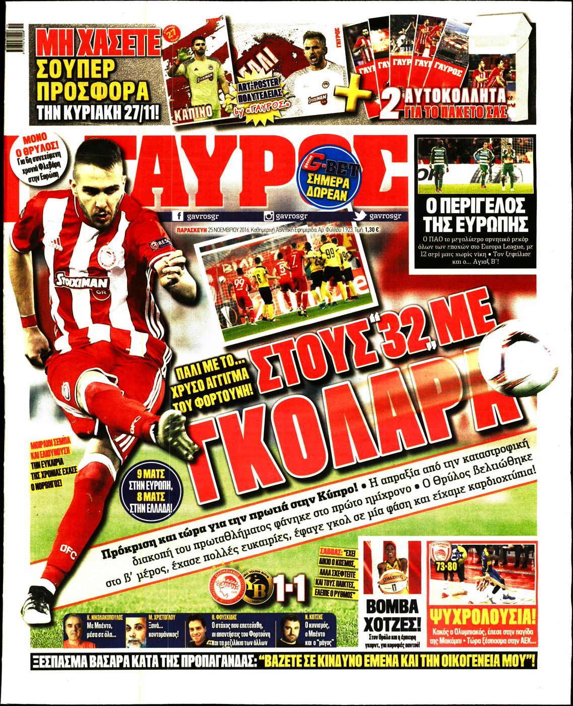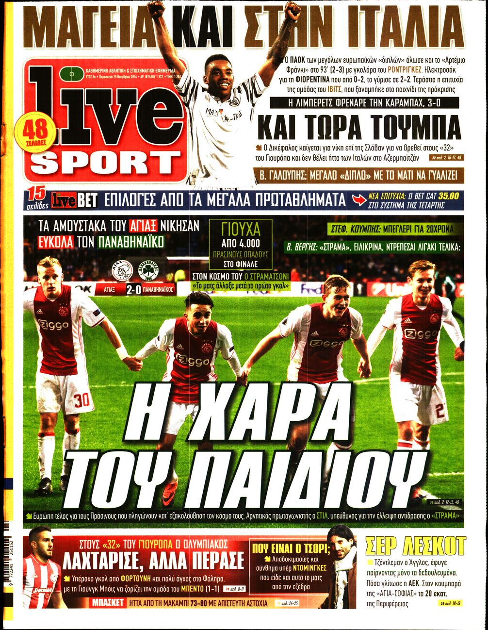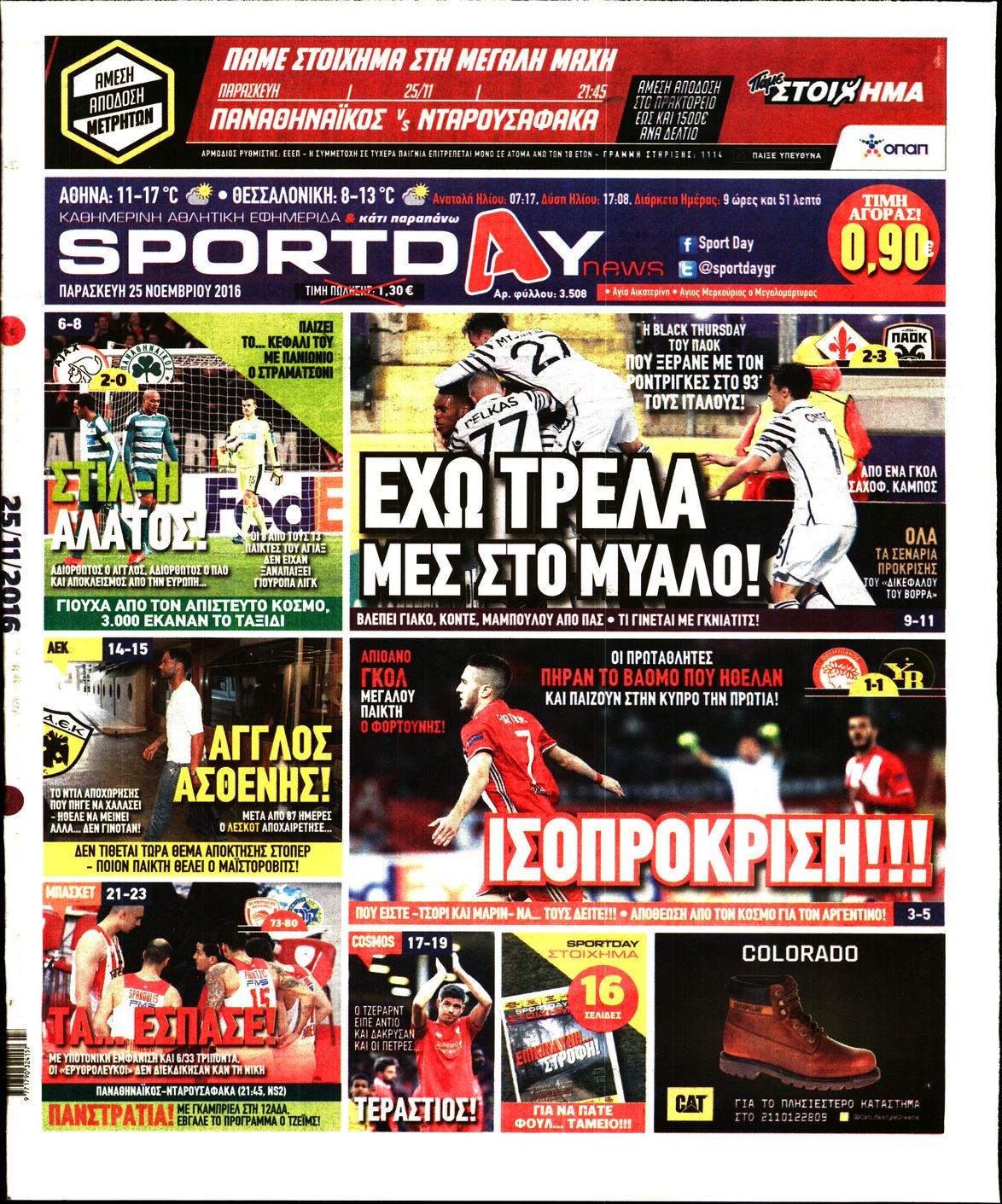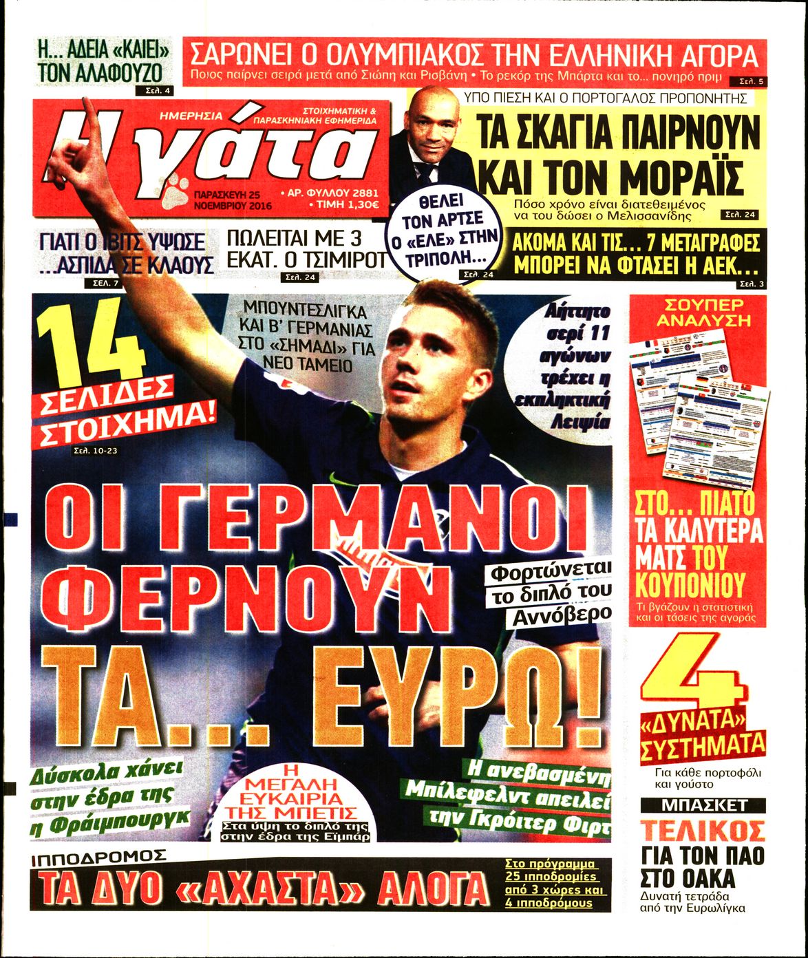 Οι αθλητικές εφημερίδες 25/11/2016 Enikos Newsroom 04:01, Παρασκευή 25 Νοεμβρίου 2016 Media Διαβάστε τα σημερινά πρωτοσέλιδα των αθλητικών εφημερίδων: ΑΘΛΗΤΙΚΕΣ ΕΦΗΜΕΡΙΔΕΣ ΠΡΩΤΟΣΕΛΙΔΑ Μοιράσου το: σχολίασε κι εσύ (0 σχόλια) Ακολουθήστε το enikos.gr στο Google News και μάθετε πρώτοι όλες τις ειδήσεις Δείτε όλες τις τελευταίες ειδήσεις από την Ελλάδα και τον Κόσμο στο enikos.gr Ειδήσεις Ροή Ειδήσεων 1 ώρα πριν Χριστούγεννα στα μπλόκα: Επιμένουν στις κινητοποιήσεις τους οι αγρότες – Ανοίγουν τα διόδια το Σαββατοκύριακο 2 ώρες πριν Ουκρανία: Η άνευ προηγουμένου επίθεση σε ρωσικό τάνκερ στη Μεσόγειο και το μήνυμα προς στον Πούτιν – Το «μακρύ χέρι» του Κιέβου 1 ώρα πριν Πούτιν: Τα μηνύματα σε Ευρώπη και ΝΑΤΟ από το μαραθώνιο «σόου» του – Η απαίτηση για «σεβασμό» και η ειρήνη «με τους όρους» της Μόσχας 2 ώρες πριν Τραμπ: Δεν αποκλείει την πιθανότητα ενός πολέμου στη Βενεζουέλα – «Ο Μαδούρο ξέρει καλύτερα από τον καθένα τι ακριβώς θέλω» 3 ώρες πριν Συνεχίζει να προκαλεί ο Μίτσκοσκι: «Για μένα το όνομα Μακεδονία είναι ιερό» 1 ώρα πριν Ανακαλύφθηκαν αρχαία χρυσά νομίσματα 2.200 ετών που απεικονίζουν τον θεό Απόλλωνα – Η άγνωστη σύνδεση με τον Φίλιππο Β΄ της Μακεδονίας 2 ώρες πριν Ύπνος: Μια κρυφή κατάσταση του εγκεφάλου πριν από τον ύπνο μπορεί να είναι το “κλειδί” για υψηλή ευφυΐα και δημιουργικότητα 3 ώρες πριν Αριθμολογία: Οι άνθρωποι που έχουν γεννηθεί αυτές τις 4 ημερομηνίες, συχνά παρεξηγούνται – «Η καλοσύνη τους κρύβει τεράστια δύναμη» 4 ώρες πριν Ξεχάστε το καθάρισμα το Σαββατοκύριακο: Ο «κανόνας των 20 λεπτών» που θα σας λύσει τα χέρια 2 λεπτά πριν Πόλεμος στην Ουκρανία: Εφτά νεκροί από ρωσική πυραυλική επίθεση στο λιμάνι της Οδησσού 6 λεπτά πριν ΗΠΑ: Η κυβέρνηση του Ντόναλντ Τραμπ άρχισε να δημοσιοποιεί τα αρχεία Έπσταϊν 17 λεπτά πριν Σάμος: Άνοιξε το μπλόκο των αγροτών στον κόμβο Κοκκαρίου – Σε νέα συνεδρίαση θα καθορίσουν την στάση τους 26 λεπτά πριν Άνω Λιόσια: Πυροβολισμοί σε επιχείρηση με χαλιά – Εντοπίστηκαν 10 κάλυκες 33 λεπτά πριν Γάζα: Ισραηλινό πλήγμα σε σχολείο που είχαν καταφύγει εκτοπισμένοι – Τουλάχιστον έξι νεκροί ENIKOS NETWORK Το ΕΚΑΒ τιμήθηκε από την Ακαδημία Αθηνών για τα 40 χρόνια προσφοράς του Έχετε πραγματικά μεγάλη καρδιά; 10 χαρακτηριστικά όσων έχουν καλοσύνη Αναστολή μέτρων αναγκαστικής εκτέλεσης για κτηνοτρόφους που πλήττονται από την ευλογιά των αιγοπροβάτων Πλήρης επάρκεια προϊόντων στις λαϊκές της Αττικής, παρά τις αγροτικές κινητοποιήσεις – Τι απαντούν οι πωλητές Χαρτογραφώντας το «σημείο χωρίς επιστροφή»: Για πρώτη φορά αποκαλύπτεται με λεπτομέρεια το ακανθώδες όριο της ατμόσφαιρας τ... Η Google καταργεί τη λειτουργία «dark web report» – Πώς θα μπορούν οι χρήστες να διαγράφουν τα δεδομένα τους περισσότερα 22:42 , Παρασκευή 19 Δεκεμβρίου 2025 Γιώργος Γιαννόπουλος για “Το σόι σου”: “Είναι ευτυχία και ευλογία αυτή η σειρά” «Είναι ευτυχία και ευλογία η συγκυρία αυτής της σειράς», θα πει ο Γιώργος Γιαννόπουλος -ο αγαπ... 20:37 , Παρασκευή 19 Δεκεμβρίου 2025 Don’t Forget The Lyrics: Η Έλλη Κοκκίνου υποδέχεται 4 παίκτες που θα κάνουν τα πάντα για να μη χάσουν ούτε… μισή λέξη από τους στίχους Το «Don’t Forget The Lyrics» επιστρέφει απόψε, Παρασκευή 19 Δεκεμβρίου, στις 21:00 με νέο επει... 19:31 , Παρασκευή 19 Δεκεμβρίου 2025 GNTM: Απόψε ο μεγάλος τελικός για τους 4 φιναλίστ Έπειτα από μήνες γεμάτους μόδα, δημιουργία και έντονες αναμετρήσεις, το GNTM 2025 κορυφώνεται,... 18:11 , Παρασκευή 19 Δεκεμβρίου 2025 Το σόι σου: Ο