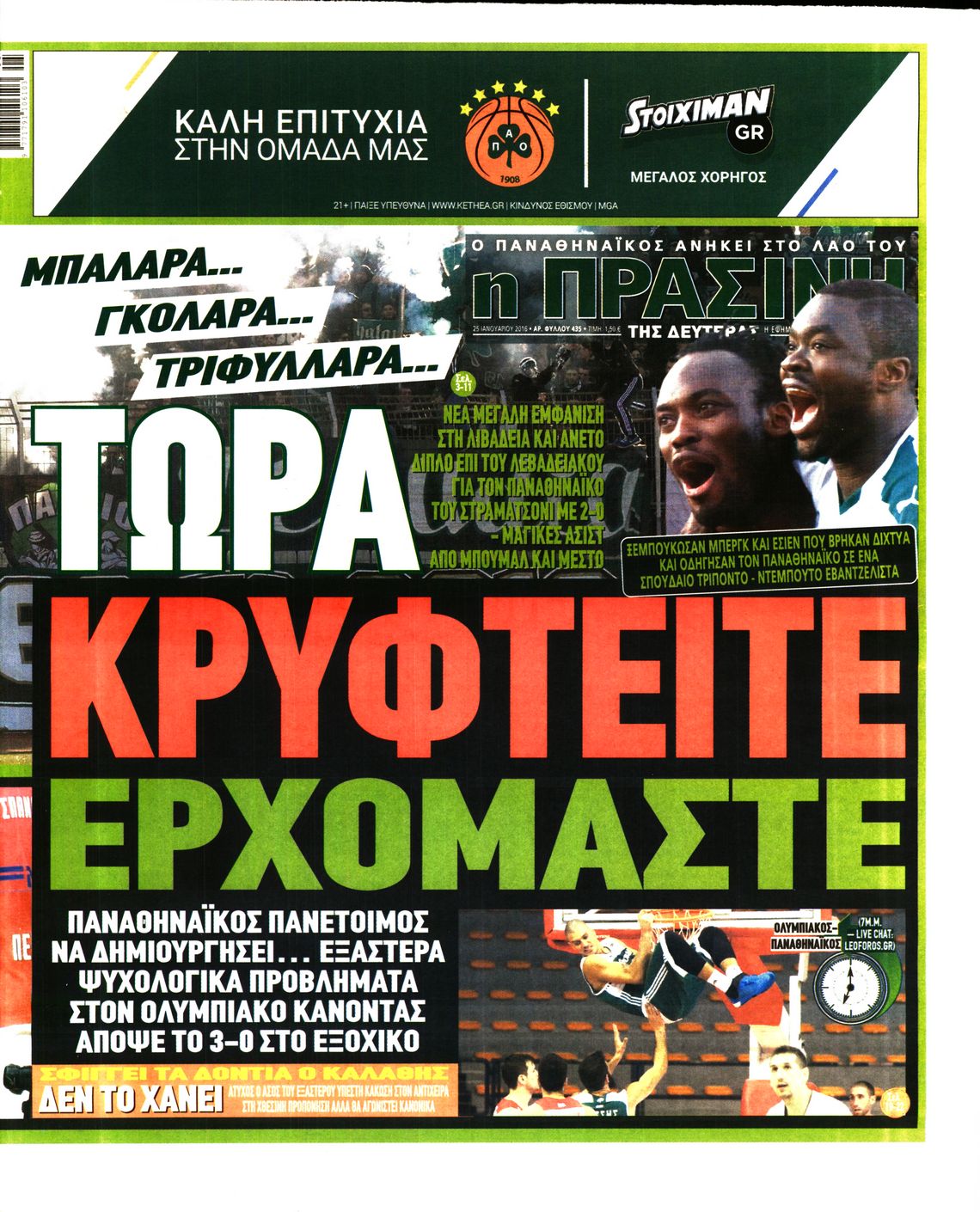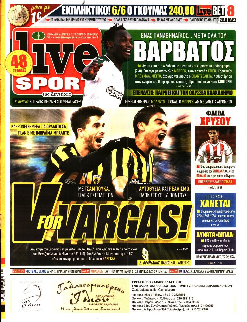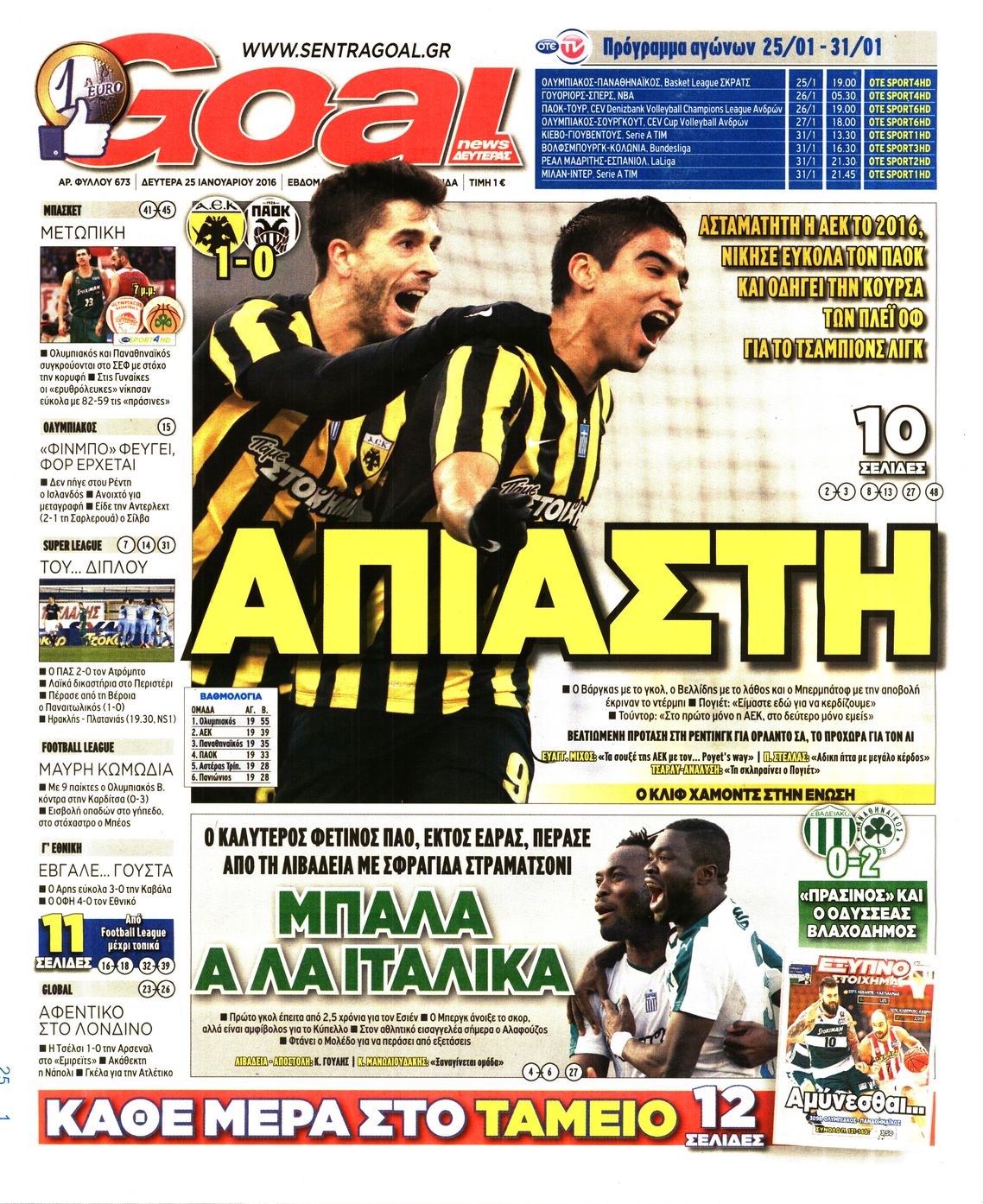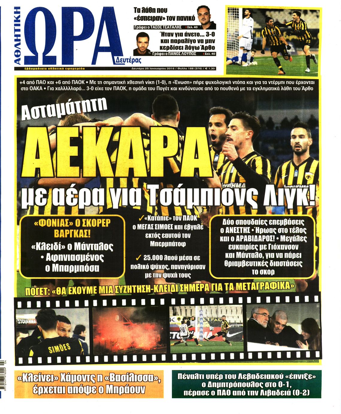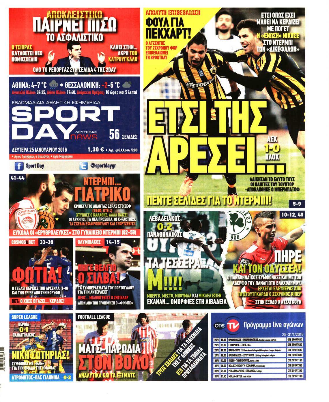 Οι αθλητικές εφημερίδες 25/1/2016 Enikos Newsroom 06:03, Δευτέρα 25 Ιανουαρίου 2016 Media Διαβάστε τα σημερινά πρωτοσέλιδα των αθλητικών εφημερίδων: ΑΘΛΗΤΙΚΕΣ ΕΦΗΜΕΡΙΔΕΣ ΠΡΩΤΟΣΕΛΙΔΑ Μοιράσου το: σχολίασε κι εσύ (0 σχόλια) Ακολουθήστε το enikos.gr στο Google News και μάθετε πρώτοι όλες τις ειδήσεις Δείτε όλες τις τελευταίες ειδήσεις από την Ελλάδα και τον Κόσμο στο enikos.gr Ειδήσεις Ροή Ειδήσεων 1 ώρα πριν Δημοσκόπηση Metron Analysis: Στις 10 μονάδες η διαφορά ΝΔ-ΠΑΣΟΚ, στην 3η θέση η Πλεύση Ελευθερίας – 8 στους 10 στηρίζουν τον αγώνα των αγροτών 6 ώρες πριν Αγρότες: «Όχι στον διάλογο, μας εμπαίζει η κυβέρνηση» – Αποφάσισαν κλιμάκωση των κινητοποιήσεων, τι θα γίνει τα Χριστούγεννα 1 ώρα πριν Νίκος Παππάς στον ΑΝΤ1: «Δεν κρύβομαι – Μετά το συμβάν ακολούθησα κανονικά το πρόγραμμά μου» – ΒΙΝΤΕΟ 3 ώρες πριν Αθήνα: Εξαρθρώθηκε εγκληματική οργάνωση που διακινούσε ναρκωτικά σε μορφή σοκολάτας – Δύο τράπερ ανάμεσα στους 4 συλληφθέντες – ΒΙΝΤΕΟ 1 ώρα πριν Διαμαντής Καραναστάσης: Οδηγούσε υπό την επήρεια αλκοόλ – Του αφαιρέθηκε το δίπλωμα και του επιβλήθηκε πρόστιμο 350 ευρώ 2 ώρες πριν Manifesting: Πώς να συναντήσετε τον σύντροφο της ζωής σας, ανάλογα με τον μήνα γέννησής σας 4 ώρες πριν Γάμος: 11 ψυχρές αλλά ευγενικές φράσεις, που λέει ένας άνδρας όταν σκέφτεται τον χωρισμό 3 ώρες πριν Σφουγγάρισμα: Η συνήθεια που θα σας βοηθήσει να διατηρήσετε το σπίτι σας καθαρό και τακτοποιημένο 2 ημέρες πριν 20 χρόνια τα Χριστούγεννα ξεκινούν στα Public με μεγάλη ποικιλία σε δώρα! 3 λεπτά πριν Αυξάνουν την πίεση προς την κυβέρνηση οι αγρότες: Κλείνουν παρακαμπτήριους και ανοίγουν διόδια – Τι θα γίνει τις γιορτές 8 λεπτά πριν Ελισάβετ Κωνσταντινίδου για τον Γεράσιμο Μιχελή και την Πόπη Χριστοδούλου: «Ξέρω ότι έχουν πάει απλώς κάπου αλλού, ότι δεν είναι ο θάνατος έτσι όπως τον έχουμε στο μυαλό μας» 12 λεπτά πριν Κρήτη: Νέες αποκαλύψεις για τον 54χρονο που κατηγορείται ότι εξαπάτησε τους γονείς του 33χρονου – Ζητούσε τρίχες αγνοουμένων 19 λεπτά πριν Τσιάρας: Δεν θα κινδυνέψουν οι πληρωμές των αγροτών – Χρειαζόμαστε μια νέα πολιτική, ένα restart 26 λεπτά πριν Δέσποινα Βανδή: Το βίντεο που δημοσίευσε με τον Γιώργο Νικολαΐδη – «Έχουμε καταστραφεί από τα μελομακάρονά σου» ENIKOS NETWORK Σε περίοδο αυξημένης δραστηριότητας η γρίπη στην Ελλάδα-Μέτρα προστασίας από τον ΕΟΔΥ Σκέφτεστε συνέχεια συζητήσεις που έχετε κάνει; Τι σημαίνει αυτό, σύμφωνα με ειδικό ΑΣΕΠ 2ΓΒ/2025: Σήμερα αρχίζει η υποβολή ενστάσεων – Πότε θα βγουν τα οριστικά αποτελέσματα ΕΛΤΑ: Αυτό είναι το νέο σχέδιο μετασχηματισμού του Οργανισμού- Τι δήλωσαν Πιερρακάκης και Παπαστεργίου Χαρτογραφώντας το «σημείο χωρίς επιστροφή»: Για πρώτη φορά αποκαλύπτεται με λεπτομέρεια το ακανθώδες όριο της ατμόσφαιρας τ... Η Google καταργεί τη λειτουργία «dark web report» – Πώς θα μπορούν οι χρήστες να διαγράφουν τα δεδομένα τους περισσότερα 17:45 , Πέμπτη 18 Δεκεμβρίου 2025 ROUK ZOUK: Εορταστικό επεισόδιο με καλεσμένους τους πρωταγωνιστές του «Γιατί ρε πατέρα» Το Σάββατο 20 Δεκεμβρίου στις 21:00, η Ζέτα Μακρυπούλια υποδέχεται εκλεκτούς ηθοποιούς που όλο... 17:20 , Πέμπτη 18 Δεκεμβρίου 2025 Άγιος έρωτας: Η Χριστίνα εξομολογείται στον πατέρα Νικόλαο, απόψε στις 21:00 στον Alpha Η Νότα αποφασίζει να εκδικηθεί τον Πέτρο και τον Στέφανο, για χάρη του Λούη, όμως τα πράγματα ... 16:50 , Πέμπτη 18 Δεκεμβρίου 2025 Να μ’ αγαπάς: Ζωή και Φωτεινή συμφιλιώνονται ως μάνα με κόρη, απόψε στις 20:00 Η ταυτότητα του Άγγελου αποκαλύπτεται στο νέο ε