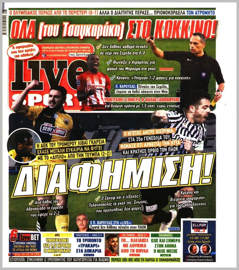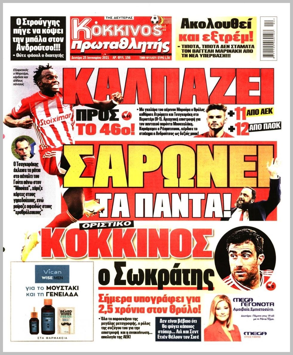 Οι αθλητικές εφημερίδες 25/1/2021 Διονύσης Νίκκας 06:48, Δευτέρα 25 Ιανουαρίου 2021 Media Διαβάστε τα πρωτοσέλιδα των αθλητικών εφημερίδων… ΑΘΛΗΤΙΚΕΣ ΕΦΗΜΕΡΙΔΕΣ Μοιράσου το: σχολίασε κι εσύ (0 σχόλια) Ακολουθήστε το enikos.gr στο Google News και μάθετε πρώτοι όλες τις ειδήσεις Δείτε όλες τις τελευταίες ειδήσεις από την Ελλάδα και τον Κόσμο στο enikos.gr Ειδήσεις Ροή Ειδήσεων 1 ώρα πριν Υπόθεση Έπσταϊν: Το Υπουργείο Δικαιοσύνης δημοσιοποίησε μια σειρά από εξαιρετικά επεξεργασμένα αρχεία – «Λείπουν τα πιο σημαντικά έγγραφα», λένε οι Δημοκρατικοί 35 λεπτά πριν Ο «χάρτης» με τις αυξήσεις και τις φοροελαφρύνσεις του 2026 – Ποιοι και πόσα κερδίζουν 11 ώρες πριν Χριστούγεννα στα μπλόκα: Επιμένουν στις κινητοποιήσεις τους οι αγρότες – Ανοίγουν τα διόδια το Σαββατοκύριακο 2 ώρες πριν ΟΝΕΧ – MEGATUGS: Ξεκίνησε η ναυπήγηση ρυμουλκών στην Ελλάδα – Προθάλαμος πολεμικών πλοίων – Δείτε φωτογραφίες και βίντεο 1 ώρα πριν Καιρός: Αλλαγή σκηνικού σήμερα με βροχές και πτώση της θερμοκρασίας – Οι προβλέψεις των μετεωρολόγων για τα Χριστούγεννα 3 ώρες πριν Αυγά: Πόσα μπορείτε να τρώτε την ημέρα με ασφάλεια για μέγιστη πρόσληψη πρωτεΐνης 4 ώρες πριν Τα ζώδια σήμερα, Σάββατο 20 Δεκεμβρίου: Παρθένοι, το σύμπαν σας δίνει το κλειδί 3 ώρες πριν Οπτική ψευδαίσθηση: Μόνο αν είσαι ο Σέρλοκ Χολμς θα βρεις τον αριθμό «87» σε 7 δευτερόλεπτα 1 ώρα πριν Αρχαιολόγοι ανακάλυψαν σε χωράφι απεικόνιση 600 ετών ενός Αγίου – Τα στοιχεία που δείχνουν ότι μαρτύρησε 7 λεπτά πριν Παιδική υπέρταση: Μια σιωπηλή απειλή που αυξάνεται διεθνώς 8 λεπτά πριν Αγχώνεται για το χριστουγεννιάτικο δώρο που πήρε στην πλούσια σύντροφό του – «Φοβάμαι πως θα το βρει φθηνιάρικο, φοράει βραχιόλια Cartier» 15 λεπτά πριν Enerwave: Το νέο «ρεύμα» στη λιανική ενέργειας που αλλάζει την εμπειρία του καταναλωτή 19 λεπτά πριν Γιώργος Μαζωνάκης: Τη Δευτέρα η μήνυση του τραγουδιστή κατά του 22χρονου 28 λεπτά πριν Αμαλία Κωστοπούλου: Το μήνυμα για το χειρουργείο στο γόνατο – «Αυτός ο τραυματισμός μού στέρησε πολλά…» ENIKOS NETWORK Πόσα κιλά παίρνουμε πραγματικά τα Χριστούγεννα, σύμφωνα με την επιστήμη – Πώς να το αποτρέψουμε; Το δημοφιλές ρόφημα που αυξάνει την πίεση πιο γρήγορα και από το αλάτι Mega χριστουγεννιάτικη φορολοταρία: «Κλείδωσε» η ημερομηνία για την κλήρωση – Ερωτήσεις και απαντήσεις Αναστολή μέτρων αναγκαστικής εκτέλεσης για κτηνοτρόφους που πλήττονται από την ευλογιά των αιγοπροβάτων Χαρτογραφώντας το «σημείο χωρίς επιστροφή»: Για πρώτη φορά αποκαλύπτεται με λεπτομέρεια το ακανθώδες όριο της ατμόσφαιρας τ... Η Google καταργεί τη λειτουργία «dark web report» – Πώς θα μπορούν οι χρήστες να διαγράφουν τα δεδομένα τους περισσότερα 08:14 , Σάββατο 20 Δεκεμβρίου 2025 Τρομεροί γονείς: Η Μαρία Καβογιάννη εισβάλλει στο σπίτι της οικογένειας Στεφανίδη Όσα θα δούμε στο νέο διπλό επεισόδιο της σειράς «Τρομεροί γονείς», σήμερα Σάββατο 20 Δεκεμβρίο... 05:48 , Σάββατο 20 Δεκεμβρίου 2025 Οι οικονομικές εφημερίδες 20/12/2025 Διαβάστε τα πρωτοσέλιδα από τις οικονομικές εφημερίδες, σήμερα 20/12/2025. 05:43 , Σάββατο 20 Δεκεμβρίου 2025 Οι αθλητικές εφημερίδες 20/12/2025 Διαβάστε τα πρωτοσέλιδα από τις αθλητικές εφημερίδες, σήμερα 20/12/2025. 05:38 , Σάββατο 20 Δεκεμβρίου 2025 Οι πολιτικές εφημερίδες 20/12/2025 Διαβάστε τα πρωτοσέλιδα από τις πολιτικές εφημερίδες, σήμερα 20/12/2025. ΤΕΛΕΥΤΑΙΕΣ ΕΙΔΗΣΕΙΣ 7 λεπτά πριν Παιδική υπέρταση: Μια σιωπηλή απειλή που αυξάνεται... 8 λεπτά πριν Αγχώνεται για το χριστουγεννιάτικο δώ