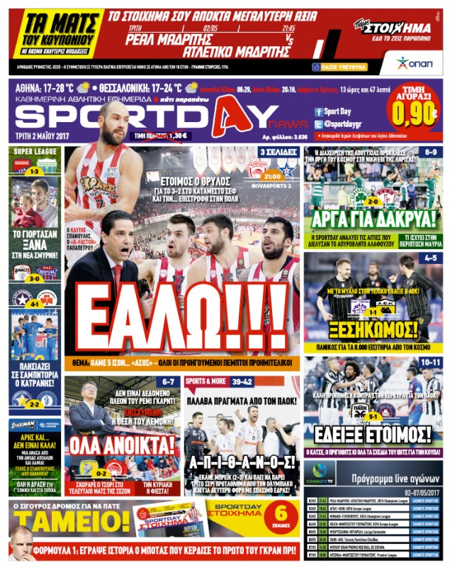 Οι αθλητικές εφημερίδες 2/5/2017 Κώστας Τεό 06:32, Τρίτη 02 Μαΐου 2017 Media Διαβάστε τα σημερινά πρωτοσέλιδα των αθλητικών εφημερίδων: ΑΘΛΗΤΙΚΕΣ ΕΦΗΜΕΡΙΔΕΣ ΠΡΩΤΟΣΕΛΙΔΑ Μοιράσου το: σχολίασε κι εσύ (0 σχόλια) Ακολουθήστε το enikos.gr στο Google News και μάθετε πρώτοι όλες τις ειδήσεις Δείτε όλες τις τελευταίες ειδήσεις από την Ελλάδα και τον Κόσμο στο enikos.gr Ειδήσεις Ροή Ειδήσεων 53 λεπτά πριν Αυξάνουν την πίεση προς την κυβέρνηση οι αγρότες: Κλείνουν παρακαμπτήριους και ανοίγουν διόδια – Τι θα γίνει τις γιορτές 43 λεπτά πριν Φοινικούντα: Το Σάββατο απολογείται ο 30χρονος γιος γνωστού επιχειρηματία της Πλάκας που παραδόθηκε – Όσα είπε στους αστυνομικούς και ο ρόλος του στο έγκλημα 26 λεπτά πριν Μπορεί ο Μαδούρο να αντέξει τον αποκλεισμό του Τραμπ; Τι θα χρειαστεί η Ουάσινγκτον για να τον ανατρέψει 2 ώρες πριν Δημοσκόπηση Metron Analysis: Στις 10 μονάδες η διαφορά ΝΔ-ΠΑΣΟΚ, στην 3η θέση η Πλεύση Ελευθερίας – 8 στους 10 στηρίζουν τον αγώνα των αγροτών 2 ώρες πριν Πρίγκιπας Ουίλιαμ – Κέιτ: Η νέα οικογενειακή φωτογραφία για τις Χριστουγεννιάτικες κάρτες του 2025 1 ώρα πριν Ύπνος: Η απλή βραδινή ρουτίνα για να προστατεύσετε τα μαλλιά σας από το κρύο κατά τη διάρκεια του χειμώνα 2 ώρες πριν Manifesting: Πώς να συναντήσετε τον σύντροφο της ζωής σας, ανάλογα με τον μήνα γέννησής σας 2 ημέρες πριν 20 χρόνια τα Χριστούγεννα ξεκινούν στα Public με μεγάλη ποικιλία σε δώρα! 29 λεπτά πριν Αρχαιολόγοι ανακάλυψαν ρωμαϊκά τεχνουργήματα από μια πόλη που δεν υπήρξε ποτέ – Τα τρία εντυπωσιακά κτίρια και ο αμφορέας με τις… σαρδέλες 10 λεπτά πριν Παναθηναϊκός – Χάποελ Τελ Αβίβ 93-82: Με… φόρα από την Κωνσταντινούπολη 26 λεπτά πριν Μπορεί ο Μαδούρο να αντέξει τον αποκλεισμό του Τραμπ; Τι θα χρειαστεί η Ουάσινγκτον για να τον ανατρέψει 29 λεπτά πριν Αρχαιολόγοι ανακάλυψαν ρωμαϊκά τεχνουργήματα από μια πόλη που δεν υπήρξε ποτέ – Τα τρία εντυπωσιακά κτίρια και ο αμφορέας με τις… σαρδέλες 31 λεπτά πριν Στο ΟΑΚΑ για το «Παναθηναϊκός – Χάποελ» η Κίμπερλι Γκίλφοϊλ – ΦΩΤΟ 38 λεπτά πριν Ούρσουλα φον ντερ Λάιεν: Μετατίθεται για τον Ιανουάριο η υπογραφή της εμπορικής συμφωνίας «ΕΕ-MERCOSUR» ENIKOS NETWORK Σε περίοδο αυξημένης δραστηριότητας η γρίπη στην Ελλάδα-Μέτρα προστασίας από τον ΕΟΔΥ Σκέφτεστε συνέχεια συζητήσεις που έχετε κάνει; Τι σημαίνει αυτό, σύμφωνα με ειδικό Στεγαστικό: Τι λέει η ΠΟΜΙΔΑ για τα νέα μέτρα που ανακοίνωσε ο Κυριάκος Μητσοτάκης Λαγκάρντ: Αισιόδοξη για την ανάπτυξη της Ευρωζώνης, αβέβαιη για τον πληθωρισμό Χαρτογραφώντας το «σημείο χωρίς επιστροφή»: Για πρώτη φορά αποκαλύπτεται με λεπτομέρεια το ακανθώδες όριο της ατμόσφαιρας τ... Η Google καταργεί τη λειτουργία «dark web report» – Πώς θα μπορούν οι χρήστες να διαγράφουν τα δεδομένα τους περισσότερα 17:45 , Πέμπτη 18 Δεκεμβρίου 2025 ROUK ZOUK: Εορταστικό επεισόδιο με καλεσμένους τους πρωταγωνιστές του «Γιατί ρε πατέρα» Το Σάββατο 20 Δεκεμβρίου στις 21:00, η Ζέτα Μακρυπούλια υποδέχεται εκλεκτούς ηθοποιούς που όλο... 17:20 , Πέμπτη 18 Δεκεμβρίου 2025 Άγιος έρωτας: Η Χριστίνα εξομολογείται στον πατέρα Νικόλαο, απόψε στις 21:00 στον Alpha Η Νότα αποφασίζει να εκδικηθεί τον Πέτρο και τον Στέφανο, για χάρη του Λούη, όμως τα πράγματα ... 16:50 , Πέμπτη 18 Δεκεμβρίου 2025 Να μ’ αγαπάς: Ζωή και Φωτεινή συμφιλιώνονται ως μάνα με κόρη, απόψε στις 20:00 Η ταυτότητα του Άγγελου αποκαλύπτεται στο νέο επεισόδιο της σειράς “Να μ’ αγαπάς... 15:52 , Πέμπτη 18 Δεκεμβρίου 2025 Το Σπίτι Δίπλα Στο Ποτάμι: Το καθηλωτικό τελευταί