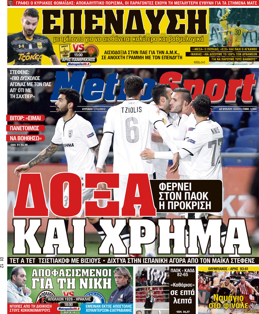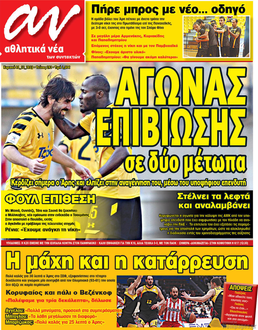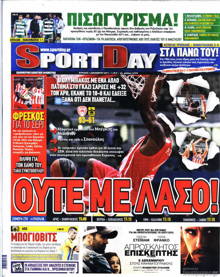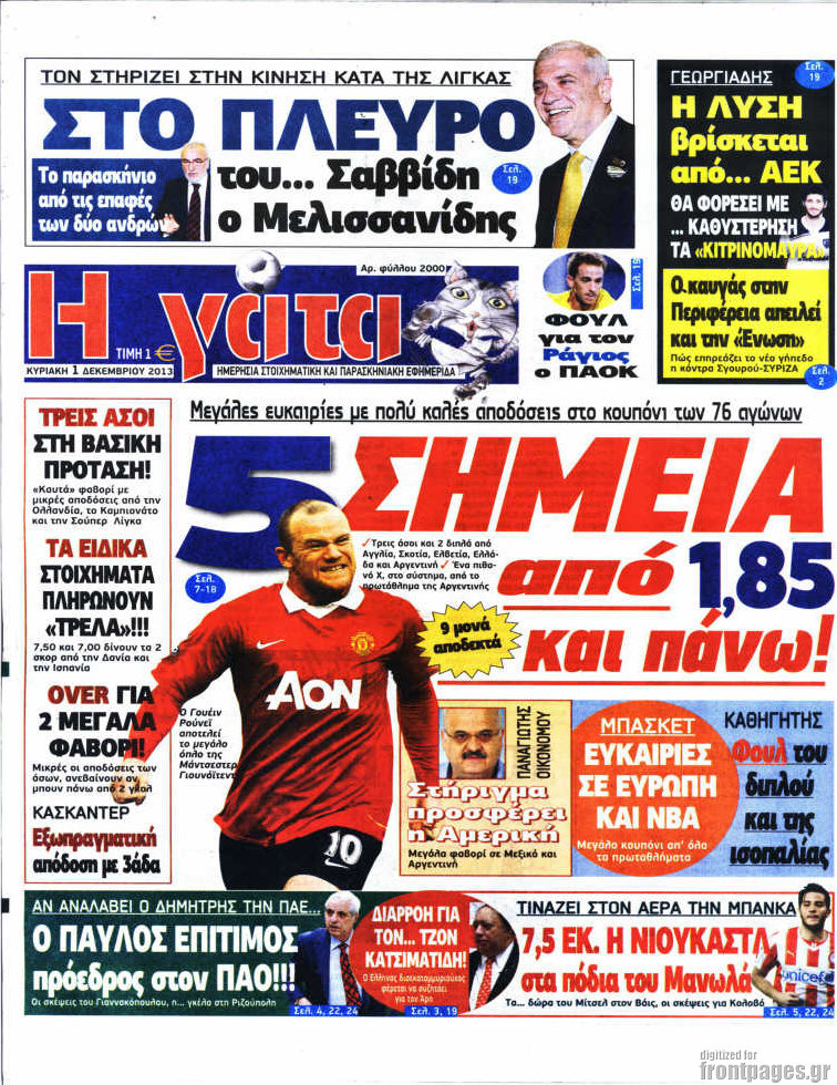 Οι αθλητικές εφημερίδες Enikos Newsroom 08:49, Κυριακή 01 Δεκεμβρίου 2013 Media Οι αθλητικές εφημερίδες Διαβάστε τα πρωτοσέλιδα των αθλητικών εφημερίδων: ΑΘΛΗΤΙΚΕΣ ΕΦΗΜΕΡΙΔΕΣ ΕΦΗΜΕΡΙΔΕΣ ΠΡΩΤΟΣΕΛΙΔΑ Μοιράσου το: σχολίασε κι εσύ (0 σχόλια) Ακολουθήστε το enikos.gr στο Google News και μάθετε πρώτοι όλες τις ειδήσεις Δείτε όλες τις τελευταίες ειδήσεις από την Ελλάδα και τον Κόσμο στο enikos.gr Ειδήσεις Ροή Ειδήσεων 3 ώρες πριν Ακίλα Σάλεχ: «Άκυρο» το τουρκολιβυκό μνημόνιο λέει ο πρόεδρος της λιβυκής Βουλής – Ανοίγει ο διάλογος με Ελλάδα, Αίγυπτο και Τουρκία 7 ώρες πριν Αγρότες: Την Τρίτη η απόφαση για διάλογο ή κλιμάκωση των κινητοποιήσεών τους – Πώς χαρακτηρίζουν τις ανακοινώσεις Τσιάρα και οι επόμενες κινήσεις 7 ώρες πριν Τραμπ για Ουκρανία: «Είμαστε πιο κοντά σε συμφωνία από ποτέ» – «Πολυεθνική δύναμη» προτείνουν οι Ευρωπαίοι 7 ώρες πριν Κυψέλη: Η 16χρονη που μαχαίρωσε την 14χρονη είχε συλληφθεί 3 φορές στο παρελθόν – Έβριζε καθηγητές, έβαζε φωτιές σε κάδους και εκβίαζε συμμαθητές της 6 ώρες πριν Τρομοκρατική επίθεση στο Σίδνεϊ: Θλίψη για τα 15 θύματα – Οργή στην εβραϊκή κοινότητα που προειδοποιούσε επί δύο χρόνια 7 ώρες πριν Επιστήμονες ίσως έλυσαν το μυστήριο γύρω από τα Χόμπιτ – Νέα έρευνα αποκαλύπτει πώς εξαφανίστηκαν 8 ώρες πριν Ύπνος: Η αρχαία μορφή άσκησης που αποδεικνύεται αποτελεσματική στην αντιμετώπιση της αϋπνίας, σύμφωνα με μελέτη 9 ώρες πριν Αριθμολογία: Ο τυχερός σας αριθμός, ανάλογα με τον μήνα γέννησής σας 10 ώρες πριν Πώς να μην μαραίνονται γρήγορα τα κομμένα λουλούδια: Το λάθος στην τοποθέτηση του βάζου που πρέπει να αποφεύγετε 4 λεπτά πριν Οι αθλητικές εφημερίδες 16/12/2025 9 λεπτά πριν Οι πολιτικές εφημερίδες 16/12/2025 17 λεπτά πριν Τα ζώδια σήμερα, Τρίτη 16 Δεκεμβρίου: Ιχθύες, δεν χρειάζεται να έχετε όλες τις απαντήσεις 25 λεπτά πριν Εφημερεύοντα φαρμακεία σε Αθήνα και Θεσσαλονίκη (16/12) 32 λεπτά πριν Οκτώ νεκροί σε πλήγματα των ΗΠΑ κατά τριών σκαφών που φέρεται να μετέφεραν ναρκωτικά στον Ανατολικό Ειρηνικό ENIKOS NETWORK Πότε το χρόνιο ροχαλητό να αποτελέσει ένδειξη κινδύνου για την καρδιά; Τι λένε οι ειδικοί Μάριος Θεμιστοκλέους: Το ΕΣΥ ενισχύεται, εκσυγχρονίζεται, αλλάζει ΕΒΕΠ για αγροτικές κινητοποιήσεις: Κάθε επιπλέον εβδομάδα προσθέτει περίπου 200 εκατ. ευρώ ζημιά Τι προβλέπει το νομοσχέδιο του υπουργείου Εθνικής Άμυνας – Oι αλλαγές στους μισθούς Σύγχρονος Νοστράδαμος: Προειδοποιεί για «μεγάλο γεγονός» τους επόμενους μήνες που θα συγκλονίσει τη Βρετανία και τον κόσμο Τεστ παρατηρητικότητας: Μπορείτε να βρείτε τις 3 διαφορές στις εικόνες με έναν πιγκουίνο σε 14 δευτερόλεπτα περισσότερα 05:43 , Τρίτη 16 Δεκεμβρίου 2025 Οι αθλητικές εφημερίδες 16/12/2025 Διαβάστε τα πρωτοσέλιδα από τις αθλητικές εφημερίδες, σήμερα 16/12/2025. 05:38 , Τρίτη 16 Δεκεμβρίου 2025 Οι πολιτικές εφημερίδες 16/12/2025 Διαβάστε τα πρωτοσέλιδα από τις πολιτικές εφημερίδες, σήμερα 16/12/2025. 21:35 , Δευτέρα 15 Δεκεμβρίου 2025 Το Σπίτι Δίπλα Στο Ποτάμι: Η Ιουλία και ο Φωκάς μετακομίζουν στη Ρόδο – Δύο νέοι χαρακτήρες μπαίνουν στη σειρά Δύο νέοι, κομβικοί χαρακτήρες κάνουν την εμφάνισή τους αυτή την εβδομάδα στην αγαπημένη σειρά ... 19:46 , Δευτέρα 15 Δεκεμβρίου 2025 Άγιος έρωτας: Η Χριστίνα λέει την αλήθεια στον Αντρέα Ο Βασίλης δέχεται επίθεση από τους συμμαθητές του, η Αναστασία είναι συντετριμμένη με την απώλ... ΤΕΛΕΥΤΑΙΕΣ ΕΙΔΗΣΕΙΣ 4 λεπτά πριν Οι αθλητικές εφημερίδες 16/12/2025 9 λεπτά πριν Οι πολιτικές εφημερίδες 16/12/2025 17 λεπτά π