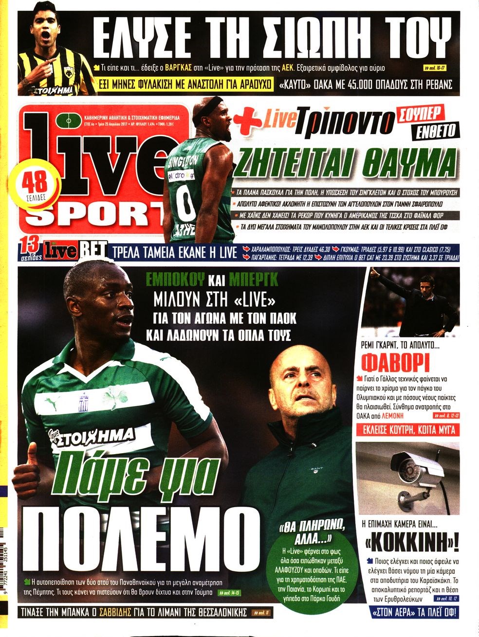 Οι αθλητικές εφημερίδες 25/4/2017 Enikos Newsroom 07:29, Τρίτη 25 Απριλίου 2017 Media Διαβάστε τα σημερινά πρωτοσέλιδα των αθλητικών εφημερίδων: ΑΘΛΗΤΙΚΕΣ ΕΦΗΜΕΡΙΔΕΣ ΠΡΩΤΟΣΕΛΙΔΑ Μοιράσου το: σχολίασε κι εσύ (0 σχόλια) Ακολουθήστε το enikos.gr στο Google News και μάθετε πρώτοι όλες τις ειδήσεις Δείτε όλες τις τελευταίες ειδήσεις από την Ελλάδα και τον Κόσμο στο enikos.gr Ειδήσεις Ροή Ειδήσεων 4 ώρες πριν Αγρότες: «Όχι στον διάλογο, μας εμπαίζει η κυβέρνηση» – Αποφάσισαν κλιμάκωση των κινητοποιήσεων, τι θα γίνει τα Χριστούγεννα 50 λεπτά πριν Αθήνα: Εξαρθρώθηκε εγκληματική οργάνωση που διακινούσε ναρκωτικά σε μορφή σοκολάτας – Δύο τράπερ ανάμεσα στους 4 συλληφθέντες – ΒΙΝΤΕΟ 59 λεπτά πριν Στη φυλακή ο «Έλληνας Εσκομπάρ» και τρεις συνεργοί του για το φορτίο με την κοκαΐνη – Τι υποστήριξε στην απολογία του 2 ώρες πριν Γιώργος Μαζωνάκης: «Έχει υποστεί ένα σωρό εκβιαστικές πρακτικές – Του είπαν ότι θα του βάλουν τον συγκεκριμένο άνθρωπο να τον καταγγείλει» 37 λεπτά πριν Γεωργιάδης για Κωνσταντοπούλου: «Έχει καταφέρει να ξεπεράσει ακόμη και τον εαυτό της – Το ερώτημα είναι “γιατί τώρα;”» 5 ώρες πριν Τα 5 ζώδια που θα ευνοηθούν στα οικονομικά τους το 2026 – «Τραβούν το χρήμα σαν μαγνήτες» 2 ώρες πριν Γάμος: 11 ψυχρές αλλά ευγενικές φράσεις, που λέει ένας άνδρας όταν σκέφτεται τον χωρισμό 45 λεπτά πριν Σφουγγάρισμα: Η συνήθεια που θα σας βοηθήσει να διατηρήσετε το σπίτι σας καθαρό και τακτοποιημένο 1 ημέρα πριν 20 χρόνια τα Χριστούγεννα ξεκινούν στα Public με μεγάλη ποικιλία σε δώρα! 6 λεπτά πριν ΗΠΑ: Νέες φωτογραφίες από τον φάκελο Επστάιν έδωσαν στην δημοσιότητα οι Δημοκρατικοί 12 λεπτά πριν ΕΦΕΤ: Συμβουλές για ασφαλή κατανάλωση τροφίμων κατά την εορταστική περίοδο των Χριστουγέννων 20 λεπτά πριν Φάμελλος: Η κινητοποίηση των αγροτών είναι για το συμφέρον όλων των κοινωνικών ομάδων – Πρέπει να φύγετε το συντομότερο 24 λεπτά πριν Primeira Liga: 8ος πιο ακριβός παίκτης στην Πορτογαλία ο Παυλίδης με αξία 35 εκατ. ευρώ – 27ος ο Ιωαννίδης, 45ος ο Βαγιαννίδης 29 λεπτά πριν Λένα Μαντά: «Με τον πατέρα μου δεν έχω ούτε μία καλή ανάμνηση» ENIKOS NETWORK Σκέφτεστε συνέχεια συζητήσεις που έχετε κάνει; Τι σημαίνει αυτό, σύμφωνα με ειδικό Ξεκίνησε η «επέλαση» της γρίπης στην Ελλάδα-Ποιοι κινδυνεύουν Servicers: Μικρή μείωση στα κόκκινα δάνεια που διαχειρίζονται – Αναλυτικά τα στοιχεία ΑΑΔΕ: “Αλλάζει πρόσωπο” το Φορολογικό Μητρώο για πολίτες και επιχειρήσεις – Όλες οι λεπτομέρειες Χαρτογραφώντας το «σημείο χωρίς επιστροφή»: Για πρώτη φορά αποκαλύπτεται με λεπτομέρεια το ακανθώδες όριο της ατμόσφαιρας τ... Η Google καταργεί τη λειτουργία «dark web report» – Πώς θα μπορούν οι χρήστες να διαγράφουν τα δεδομένα τους περισσότερα 17:45 , Πέμπτη 18 Δεκεμβρίου 2025 ROUK ZOUK: Εορταστικό επεισόδιο με καλεσμένους τους πρωταγωνιστές του «Γιατί ρε πατέρα» Το Σάββατο 20 Δεκεμβρίου στις 21:00, η Ζέτα Μακρυπούλια υποδέχεται εκλεκτούς ηθοποιούς που όλο... 17:20 , Πέμπτη 18 Δεκεμβρίου 2025 Άγιος έρωτας: Η Χριστίνα εξομολογείται στον πατέρα Νικόλαο, απόψε στις 21:00 στον Alpha Η Νότα αποφασίζει να εκδικηθεί τον Πέτρο και τον Στέφανο, για χάρη του Λούη, όμως τα πράγματα ... 16:50 , Πέμπτη 18 Δεκεμβρίου 2025 Να μ’ αγαπάς: Ζωή και Φωτεινή συμφιλιώνονται ως μάνα με κόρη, απόψε στις 20:00 Η ταυτότητα του Άγγελου αποκαλύπτεται στο νέο επεισόδιο της σειράς “Να μ’ αγαπάς... 15:52 , Πέμπτη 18 Δεκεμβρίου 2025 Το Σπίτι Δίπλα Στο Ποτάμι: Το καθηλωτικό τελευταίο επεισόδιο για το 2025 απόψε στις 22:30 Καθ