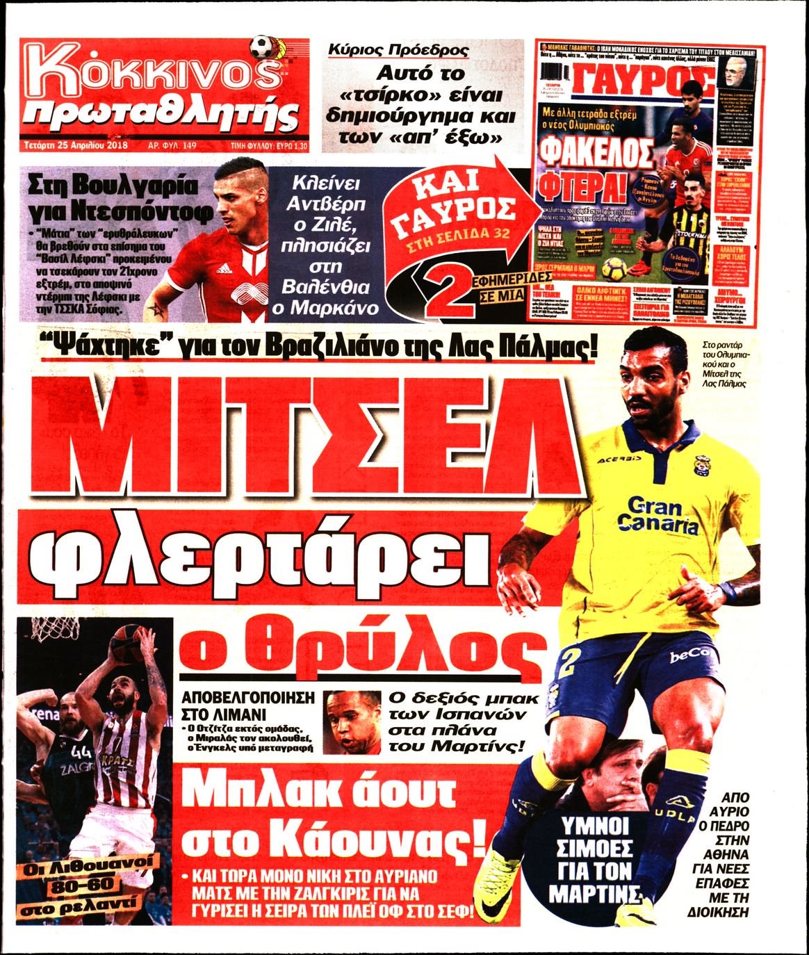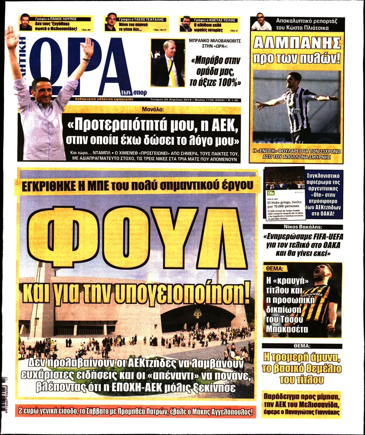 Οι αθλητικές εφημερίδες 25/4/2018 Enikos Newsroom 07:24, Τετάρτη 25 Απριλίου 2018 Media Διαβάστε τα πρωτοσέλιδα των αθλητικών εφημερίδων: ΑΘΛΗΤΙΚΕΣ ΕΦΗΜΕΡΙΔΕΣ ΠΡΩΤΟΣΕΛΙΔΑ Μοιράσου το: σχολίασε κι εσύ (0 σχόλια) Ακολουθήστε το enikos.gr στο Google News και μάθετε πρώτοι όλες τις ειδήσεις Δείτε όλες τις τελευταίες ειδήσεις από την Ελλάδα και τον Κόσμο στο enikos.gr Ειδήσεις Ροή Ειδήσεων 9 λεπτά πριν Χριστούγεννα στα μπλόκα: Επιμένουν στις κινητοποιήσεις τους οι αγρότες – Ανοίγουν τα διόδια το Σαββατοκύριακο 38 λεπτά πριν Τραμπ: Δεν αποκλείει την πιθανότητα ενός πολέμου στη Βενεζουέλα – «Ο Μαδούρο ξέρει καλύτερα από τον καθένα τι ακριβώς θέλω» 32 λεπτά πριν Ουκρανία: Η άνευ προηγουμένου επίθεση σε ρωσικό τάνκερ στη Μεσόγειο και το μήνυμα προς στον Πούτιν – Το «μακρύ χέρι» του Κιέβου 3 ώρες πριν Πούτιν: «Ναι, είμαι ερωτευμένος» – Βίντεο από τη σπάνια προσωπική παραδοχή του 1 ώρα πριν Συνεχίζει να προκαλεί ο Μίτσκοσκι: «Για μένα το όνομα Μακεδονία είναι ιερό» 2 ώρες πριν Αριθμολογία: Οι άνθρωποι που έχουν γεννηθεί αυτές τις 4 ημερομηνίες, συχνά παρεξηγούνται – «Η καλοσύνη τους κρύβει τεράστια δύναμη» 4 ώρες πριν Μήπως έχετε χάσει τον εαυτό σας στη σχέση σας; 7 «αθόρυβες» υποχωρήσεις που μάλλον κάνατε, χωρίς να το συνειδητοποιήσετε 3 ώρες πριν Ξεχάστε το καθάρισμα το Σαββατοκύριακο: Ο «κανόνας των 20 λεπτών» που θα σας λύσει τα χέρια 47 λεπτά πριν Ύπνος: Μια κρυφή κατάσταση του εγκεφάλου πριν από τον ύπνο μπορεί να είναι το “κλειδί” για υψηλή ευφυΐα και δημιουργικότητα 5 λεπτά πριν Γιώργος Γιαννόπουλος για “Το σόι σου”: “Είναι ευτυχία και ευλογία αυτή η σειρά” 9 λεπτά πριν Χριστούγεννα στα μπλόκα: Επιμένουν στις κινητοποιήσεις τους οι αγρότες – Ανοίγουν τα διόδια το Σαββατοκύριακο 21 λεπτά πριν Χάρι και Μέγκαν: Η σπάνια οικογενειακή φωτογραφία με τον Άρτσι και τη Λίλιμπετ – Τι σχεδιάζουν για τα Χριστούγεννα 28 λεπτά πριν Βασίλης Καρράς: «Είναι πάντα δίπλα μου, δεν έφυγε…», λέει ο αδελφός του 32 λεπτά πριν Ουκρανία: Η άνευ προηγουμένου επίθεση σε ρωσικό τάνκερ στη Μεσόγειο και το μήνυμα προς στον Πούτιν – Το «μακρύ χέρι» του Κιέβου ENIKOS NETWORK Το ΕΚΑΒ τιμήθηκε από την Ακαδημία Αθηνών για τα 40 χρόνια προσφοράς του Έχετε πραγματικά μεγάλη καρδιά; 10 χαρακτηριστικά όσων έχουν καλοσύνη Πλήρης επάρκεια προϊόντων στις λαϊκές της Αττικής, παρά τις αγροτικές κινητοποιήσεις – Τι απαντούν οι πωλητές ΑΑΔΕ: Νέες αναβαθμίσεις στο Ψηφιακό Πελατολόγιο και την εφαρμογή myDATAapp – Τι πρέπει να γνωρίζετε Χαρτογραφώντας το «σημείο χωρίς επιστροφή»: Για πρώτη φορά αποκαλύπτεται με λεπτομέρεια το ακανθώδες όριο της ατμόσφαιρας τ... Η Google καταργεί τη λειτουργία «dark web report» – Πώς θα μπορούν οι χρήστες να διαγράφουν τα δεδομένα τους περισσότερα 22:42 , Παρασκευή 19 Δεκεμβρίου 2025 Γιώργος Γιαννόπουλος για “Το σόι σου”: “Είναι ευτυχία και ευλογία αυτή η σειρά” «Είναι ευτυχία και ευλογία η συγκυρία αυτής της σειράς», θα πει ο Γιώργος Γιαννόπουλος -ο αγαπ... 20:37 , Παρασκευή 19 Δεκεμβρίου 2025 Don’t Forget The Lyrics: Η Έλλη Κοκκίνου υποδέχεται 4 παίκτες που θα κάνουν τα πάντα για να μη χάσουν ούτε… μισή λέξη από τους στίχους Το «Don’t Forget The Lyrics» επιστρέφει απόψε, Παρασκευή 19 Δεκεμβρίου, στις 21:00 με νέο επει... 19:31 , Παρασκευή 19 Δεκεμβρίου 2025 GNTM: Απόψε ο μεγάλος τελικός για τους 4 φιναλίστ Έπειτα από μήνες γεμάτους μόδα, δημιουργία και έντονες αναμετρήσεις, το GNTM 2025 κορυφώνεται,... 18:11 , Παρασκευή 19 Δεκεμβρίου 2025 Το σόι σου: Ο Άρης έρχετα