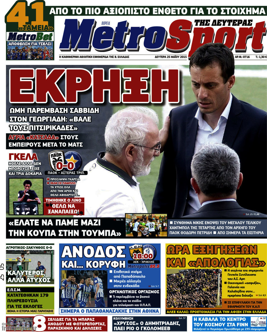 Οι αθλητικές εφημερίδες 25/5/2015 Enikos Newsroom 07:19, Δευτέρα 25 Μαΐου 2015 Media Διαβάστε τα σημερινά πρωτοσέλιδα των αθλητικών εφημερίδων: ΑΘΛΗΤΙΚΕΣ ΕΦΗΜΕΡΙΔΕΣ ΠΡΩΤΟΣΕΛΙΔΑ Μοιράσου το: σχολίασε κι εσύ (0 σχόλια) Ακολουθήστε το enikos.gr στο Google News και μάθετε πρώτοι όλες τις ειδήσεις Δείτε όλες τις τελευταίες ειδήσεις από την Ελλάδα και τον Κόσμο στο enikos.gr Ειδήσεις Ροή Ειδήσεων 8 ώρες πριν Χριστούγεννα στα μπλόκα: Επιμένουν στις κινητοποιήσεις τους οι αγρότες – Ανοίγουν τα διόδια το Σαββατοκύριακο 8 ώρες πριν Ουκρανία: Η άνευ προηγουμένου επίθεση σε ρωσικό τάνκερ στη Μεσόγειο και το μήνυμα προς στον Πούτιν – Το «μακρύ χέρι» του Κιέβου 7 ώρες πριν Πούτιν: Τα μηνύματα σε Ευρώπη και ΝΑΤΟ από το μαραθώνιο «σόου» του – Η απαίτηση για «σεβασμό» και η ειρήνη «με τους όρους» της Μόσχας 6 ώρες πριν ΗΠΑ: Η κυβέρνηση του Ντόναλντ Τραμπ άρχισε να δημοσιοποιεί τα αρχεία Έπσταϊν 7 ώρες πριν Άνω Λιόσια: Πυροβολισμοί σε επιχείρηση με χαλιά – Εντοπίστηκαν 10 κάλυκες 21 λεπτά πριν Αυγά: Πόσα μπορείτε να τρώτε την ημέρα με ασφάλεια για μέγιστη πρόσληψη πρωτεΐνης 51 λεπτά πριν Τα ζώδια σήμερα, Σάββατο 20 Δεκεμβρίου: Παρθένοι, το σύμπαν σας δίνει το κλειδί 7 ώρες πριν Ανακαλύφθηκαν αρχαία χρυσά νομίσματα 2.200 ετών που απεικονίζουν τον θεό Απόλλωνα – Η άγνωστη σύνδεση με τον Φίλιππο Β΄ της Μακεδονίας 8 ώρες πριν Ύπνος: Μια κρυφή κατάσταση του εγκεφάλου πριν από τον ύπνο μπορεί να είναι το “κλειδί” για υψηλή ευφυΐα και δημιουργικότητα 6 λεπτά πριν Οπτική ψευδαίσθηση: Μόνο αν είσαι ο Σέρλοκ Χολμς θα βρεις τον αριθμό «87» σε 7 δευτερόλεπτα 13 λεπτά πριν Σαρωτικοί οι έλεγχοι στους δρόμους ενόψει εορτών – Μπλόκα της τροχαίας σε κεντρικές αρτηρίες της Αττικής 21 λεπτά πριν Αυγά: Πόσα μπορείτε να τρώτε την ημέρα με ασφάλεια για μέγιστη πρόσληψη πρωτεΐνης 28 λεπτά πριν Σαν σήμερα 20 Δεκεμβρίου: Τα σημαντικότερα γεγονότα της ημέρας 33 λεπτά πριν Οι οικονομικές εφημερίδες 20/12/2025 ENIKOS NETWORK Το ΕΚΑΒ τιμήθηκε από την Ακαδημία Αθηνών για τα 40 χρόνια προσφοράς του Έχετε πραγματικά μεγάλη καρδιά; 10 χαρακτηριστικά όσων έχουν καλοσύνη Αναστολή μέτρων αναγκαστικής εκτέλεσης για κτηνοτρόφους που πλήττονται από την ευλογιά των αιγοπροβάτων Πλήρης επάρκεια προϊόντων στις λαϊκές της Αττικής, παρά τις αγροτικές κινητοποιήσεις – Τι απαντούν οι πωλητές Χαρτογραφώντας το «σημείο χωρίς επιστροφή»: Για πρώτη φορά αποκαλύπτεται με λεπτομέρεια το ακανθώδες όριο της ατμόσφαιρας τ... Η Google καταργεί τη λειτουργία «dark web report» – Πώς θα μπορούν οι χρήστες να διαγράφουν τα δεδομένα τους περισσότερα 05:48 , Σάββατο 20 Δεκεμβρίου 2025 Οι οικονομικές εφημερίδες 20/12/2025 Διαβάστε τα πρωτοσέλιδα από τις οικονομικές εφημερίδες, σήμερα 20/12/2025. 05:43 , Σάββατο 20 Δεκεμβρίου 2025 Οι αθλητικές εφημερίδες 20/12/2025 Διαβάστε τα πρωτοσέλιδα από τις αθλητικές εφημερίδες, σήμερα 20/12/2025. 05:38 , Σάββατο 20 Δεκεμβρίου 2025 Οι πολιτικές εφημερίδες 20/12/2025 Διαβάστε τα πρωτοσέλιδα από τις πολιτικές εφημερίδες, σήμερα 20/12/2025. 04:20 , Σάββατο 20 Δεκεμβρίου 2025 Αγγελική Νικολούλη: Τα συλλυπητήρια για την απώλεια της Ειρήνης Μαρινάκη Τα συλληπητήρια στον πρόεδρο του Mega, τον Βαγγέλη Μαρινάκη, για την απώλεια της μητέρας του Ε... ΤΕΛΕΥΤΑΙΕΣ ΕΙΔΗΣΕΙΣ 6 λεπτά πριν Οπτική ψευδαίσθηση: Μόνο αν είσαι ο Σέρλοκ Χολμς θα... 13 λεπτά πριν Σαρωτικοί οι έλεγχοι στους δρόμους ενόψει εορτών –... 21 λεπτά πριν Αυγά: Πόσα μπορείτε να τρώτε την ημέρα με ασφάλεια για... 28 λεπτά πριν Σαν σήμερα 20 Δεκεμβ