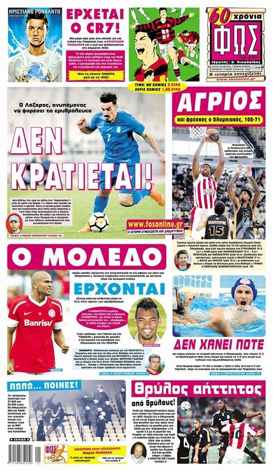 Οι αθλητικές εφημερίδες 25/5/2018 Κώστας Τεό 06:48, Παρασκευή 25 Μαΐου 2018 Media Διαβάστε τα σημερινά πρωτοσέλιδα των αθλητικών εφημερίδων: ΑΘΛΗΤΙΚΕΣ ΕΦΗΜΕΡΙΔΕΣ ΠΡΩΤΟΣΕΛΙΔΑ Μοιράσου το: σχολίασε κι εσύ (0 σχόλια) Ακολουθήστε το enikos.gr στο Google News και μάθετε πρώτοι όλες τις ειδήσεις Δείτε όλες τις τελευταίες ειδήσεις από την Ελλάδα και τον Κόσμο στο enikos.gr Ειδήσεις Ροή Ειδήσεων 12 λεπτά πριν Χριστούγεννα στα μπλόκα: Επιμένουν στις κινητοποιήσεις τους οι αγρότες – Ανοίγουν τα διόδια το Σαββατοκύριακο 40 λεπτά πριν Τραμπ: Δεν αποκλείει την πιθανότητα ενός πολέμου στη Βενεζουέλα – «Ο Μαδούρο ξέρει καλύτερα από τον καθένα τι ακριβώς θέλω» 35 λεπτά πριν Ουκρανία: Η άνευ προηγουμένου επίθεση σε ρωσικό τάνκερ στη Μεσόγειο και το μήνυμα προς στον Πούτιν – Το «μακρύ χέρι» του Κιέβου 3 ώρες πριν Πούτιν: «Ναι, είμαι ερωτευμένος» – Βίντεο από τη σπάνια προσωπική παραδοχή του 1 ώρα πριν Συνεχίζει να προκαλεί ο Μίτσκοσκι: «Για μένα το όνομα Μακεδονία είναι ιερό» 2 ώρες πριν Αριθμολογία: Οι άνθρωποι που έχουν γεννηθεί αυτές τις 4 ημερομηνίες, συχνά παρεξηγούνται – «Η καλοσύνη τους κρύβει τεράστια δύναμη» 4 ώρες πριν Μήπως έχετε χάσει τον εαυτό σας στη σχέση σας; 7 «αθόρυβες» υποχωρήσεις που μάλλον κάνατε, χωρίς να το συνειδητοποιήσετε 3 ώρες πριν Ξεχάστε το καθάρισμα το Σαββατοκύριακο: Ο «κανόνας των 20 λεπτών» που θα σας λύσει τα χέρια 50 λεπτά πριν Ύπνος: Μια κρυφή κατάσταση του εγκεφάλου πριν από τον ύπνο μπορεί να είναι το “κλειδί” για υψηλή ευφυΐα και δημιουργικότητα 2 λεπτά πριν Παναθηναϊκός: «Μέσα» οι Σφιντέρσκι και Τουμπά για το ματς με τον ΠΑΟΚ – Τι έδειξε η μαγνητική του Πάντοβιτς 8 λεπτά πριν Γιώργος Γιαννόπουλος για “Το σόι σου”: “Είναι ευτυχία και ευλογία αυτή η σειρά” 12 λεπτά πριν Χριστούγεννα στα μπλόκα: Επιμένουν στις κινητοποιήσεις τους οι αγρότες – Ανοίγουν τα διόδια το Σαββατοκύριακο 23 λεπτά πριν Χάρι και Μέγκαν: Η σπάνια οικογενειακή φωτογραφία με τον Άρτσι και τη Λίλιμπετ – Τι σχεδιάζουν για τα Χριστούγεννα 30 λεπτά πριν Βασίλης Καρράς: «Είναι πάντα δίπλα μου, δεν έφυγε…», λέει ο αδελφός του ENIKOS NETWORK Το ΕΚΑΒ τιμήθηκε από την Ακαδημία Αθηνών για τα 40 χρόνια προσφοράς του Έχετε πραγματικά μεγάλη καρδιά; 10 χαρακτηριστικά όσων έχουν καλοσύνη Πλήρης επάρκεια προϊόντων στις λαϊκές της Αττικής, παρά τις αγροτικές κινητοποιήσεις – Τι απαντούν οι πωλητές ΑΑΔΕ: Νέες αναβαθμίσεις στο Ψηφιακό Πελατολόγιο και την εφαρμογή myDATAapp – Τι πρέπει να γνωρίζετε Χαρτογραφώντας το «σημείο χωρίς επιστροφή»: Για πρώτη φορά αποκαλύπτεται με λεπτομέρεια το ακανθώδες όριο της ατμόσφαιρας τ... Η Google καταργεί τη λειτουργία «dark web report» – Πώς θα μπορούν οι χρήστες να διαγράφουν τα δεδομένα τους περισσότερα 22:42 , Παρασκευή 19 Δεκεμβρίου 2025 Γιώργος Γιαννόπουλος για “Το σόι σου”: “Είναι ευτυχία και ευλογία αυτή η σειρά” «Είναι ευτυχία και ευλογία η συγκυρία αυτής της σειράς», θα πει ο Γιώργος Γιαννόπουλος -ο αγαπ... 20:37 , Παρασκευή 19 Δεκεμβρίου 2025 Don’t Forget The Lyrics: Η Έλλη Κοκκίνου υποδέχεται 4 παίκτες που θα κάνουν τα πάντα για να μη χάσουν ούτε… μισή λέξη από τους στίχους Το «Don’t Forget The Lyrics» επιστρέφει απόψε, Παρασκευή 19 Δεκεμβρίου, στις 21:00 με νέο επει... 19:31 , Παρασκευή 19 Δεκεμβρίου 2025 GNTM: Απόψε ο μεγάλος τελικός για τους 4 φιναλίστ Έπειτα από μήνες γεμάτους μόδα, δημιουργία και έντονες αναμετρήσεις, το GNTM 2025 κορυφώνεται,... 18:11 , Παρασκευή 19 Δεκεμβρίου 2025 Το σόι σου: Ο Άρης έρχεται στην Ελ