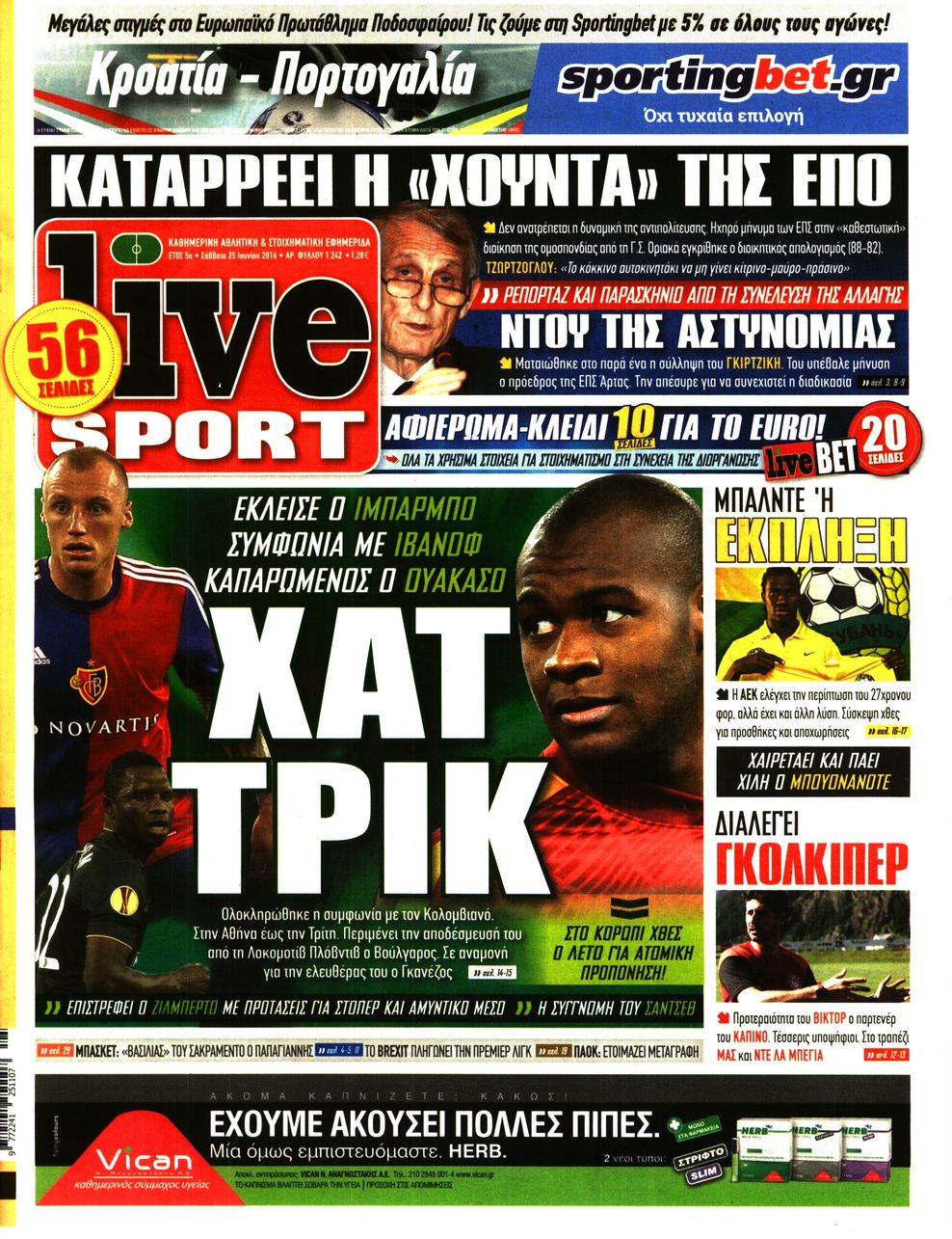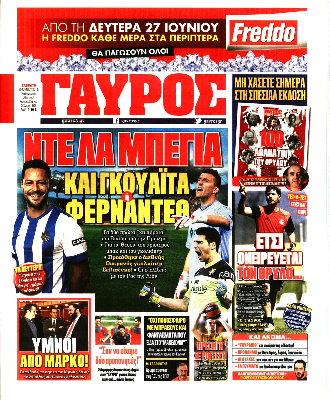 Οι αθλητικές εφημερίδες 25/6/2016 Enikos Newsroom 06:21, Σάββατο 25 Ιουνίου 2016 Media Διαβάστε τα σημερινά πρωτοσέλιδα των αθλητικών εφημερίδων: ΑΘΛΗΤΙΚΕΣ ΕΦΗΜΕΡΙΔΕΣ ΠΡΩΤΟΣΕΛΙΔΑ Μοιράσου το: σχολίασε κι εσύ (0 σχόλια) Ακολουθήστε το enikos.gr στο Google News και μάθετε πρώτοι όλες τις ειδήσεις Δείτε όλες τις τελευταίες ειδήσεις από την Ελλάδα και τον Κόσμο στο enikos.gr Ειδήσεις Ροή Ειδήσεων 4 ώρες πριν Αγρότες: «Όχι στον διάλογο, μας εμπαίζει η κυβέρνηση» – Αποφάσισαν κλιμάκωση των κινητοποιήσεων, τι θα γίνει τα Χριστούγεννα 48 λεπτά πριν Αθήνα: Εξαρθρώθηκε εγκληματική οργάνωση που διακινούσε ναρκωτικά σε μορφή σοκολάτας – Δύο τράπερ ανάμεσα στους 4 συλληφθέντες – ΒΙΝΤΕΟ 57 λεπτά πριν Στη φυλακή ο «Έλληνας Εσκομπάρ» και τρεις συνεργοί του για το φορτίο με την κοκαΐνη – Τι υποστήριξε στην απολογία του 2 ώρες πριν Γιώργος Μαζωνάκης: «Έχει υποστεί ένα σωρό εκβιαστικές πρακτικές – Του είπαν ότι θα του βάλουν τον συγκεκριμένο άνθρωπο να τον καταγγείλει» 34 λεπτά πριν Γεωργιάδης για Κωνσταντοπούλου: «Έχει καταφέρει να ξεπεράσει ακόμη και τον εαυτό της – Το ερώτημα είναι “γιατί τώρα;”» 5 ώρες πριν Τα 5 ζώδια που θα ευνοηθούν στα οικονομικά τους το 2026 – «Τραβούν το χρήμα σαν μαγνήτες» 2 ώρες πριν Γάμος: 11 ψυχρές αλλά ευγενικές φράσεις, που λέει ένας άνδρας όταν σκέφτεται τον χωρισμό 43 λεπτά πριν Σφουγγάρισμα: Η συνήθεια που θα σας βοηθήσει να διατηρήσετε το σπίτι σας καθαρό και τακτοποιημένο 1 ημέρα πριν 20 χρόνια τα Χριστούγεννα ξεκινούν στα Public με μεγάλη ποικιλία σε δώρα! 3 λεπτά πριν ΗΠΑ: Νέες φωτογραφίες από τον φάκελο Επστάιν έδωσαν στην δημοσιότητα οι Δημοκρατικοί 9 λεπτά πριν ΕΦΕΤ: Συμβουλές για ασφαλή κατανάλωση τροφίμων κατά την εορταστική περίοδο των Χριστουγέννων 17 λεπτά πριν Φάμελλος: Η κινητοποίηση των αγροτών είναι για το συμφέρον όλων των κοινωνικών ομάδων – Πρέπει να φύγετε το συντομότερο 22 λεπτά πριν Primeira Liga: 8ος πιο ακριβός παίκτης στην Πορτογαλία ο Παυλίδης με αξία 35 εκατ. ευρώ – 27ος ο Ιωαννίδης, 45ος ο Βαγιαννίδης 27 λεπτά πριν Λένα Μαντά: «Με τον πατέρα μου δεν έχω ούτε μία καλή ανάμνηση» ENIKOS NETWORK Σκέφτεστε συνέχεια συζητήσεις που έχετε κάνει; Τι σημαίνει αυτό, σύμφωνα με ειδικό Ξεκίνησε η «επέλαση» της γρίπης στην Ελλάδα-Ποιοι κινδυνεύουν Servicers: Μικρή μείωση στα κόκκινα δάνεια που διαχειρίζονται – Αναλυτικά τα στοιχεία ΑΑΔΕ: “Αλλάζει πρόσωπο” το Φορολογικό Μητρώο για πολίτες και επιχειρήσεις – Όλες οι λεπτομέρειες Χαρτογραφώντας το «σημείο χωρίς επιστροφή»: Για πρώτη φορά αποκαλύπτεται με λεπτομέρεια το ακανθώδες όριο της ατμόσφαιρας τ... Η Google καταργεί τη λειτουργία «dark web report» – Πώς θα μπορούν οι χρήστες να διαγράφουν τα δεδομένα τους περισσότερα 17:45 , Πέμπτη 18 Δεκεμβρίου 2025 ROUK ZOUK: Εορταστικό επεισόδιο με καλεσμένους τους πρωταγωνιστές του «Γιατί ρε πατέρα» Το Σάββατο 20 Δεκεμβρίου στις 21:00, η Ζέτα Μακρυπούλια υποδέχεται εκλεκτούς ηθοποιούς που όλο... 17:20 , Πέμπτη 18 Δεκεμβρίου 2025 Άγιος έρωτας: Η Χριστίνα εξομολογείται στον πατέρα Νικόλαο, απόψε στις 21:00 στον Alpha Η Νότα αποφασίζει να εκδικηθεί τον Πέτρο και τον Στέφανο, για χάρη του Λούη, όμως τα πράγματα ... 16:50 , Πέμπτη 18 Δεκεμβρίου 2025 Να μ’ αγαπάς: Ζωή και Φωτεινή συμφιλιώνονται ως μάνα με κόρη, απόψε στις 20:00 Η ταυτότητα του Άγγελου αποκαλύπτεται στο νέο επεισόδιο της σειράς “Να μ’ αγαπάς... 15:52 , Πέμπτη 18 Δεκεμβρίου 2025 Το Σπίτι Δίπλα Στο Ποτάμι: Το καθηλωτικό τελευταίο επεισόδιο για το 2025 απόψε στις 22:30 Καθ
