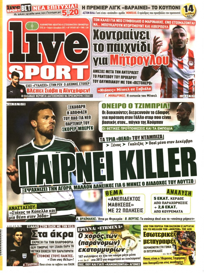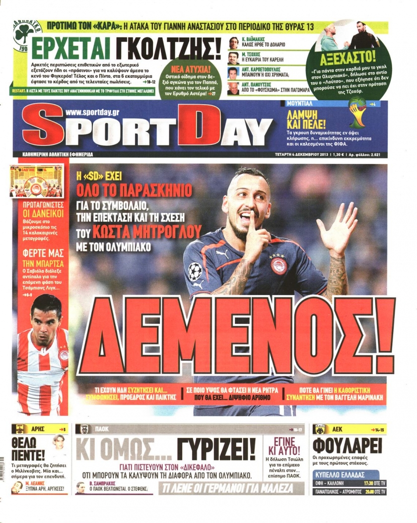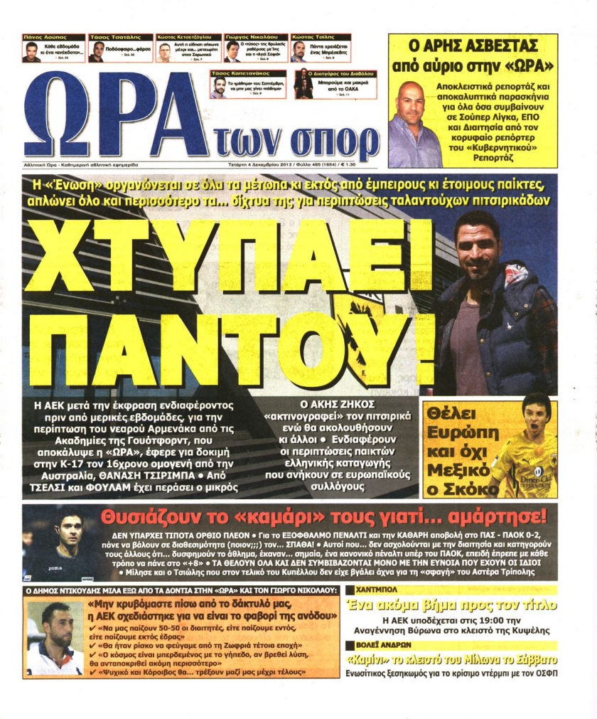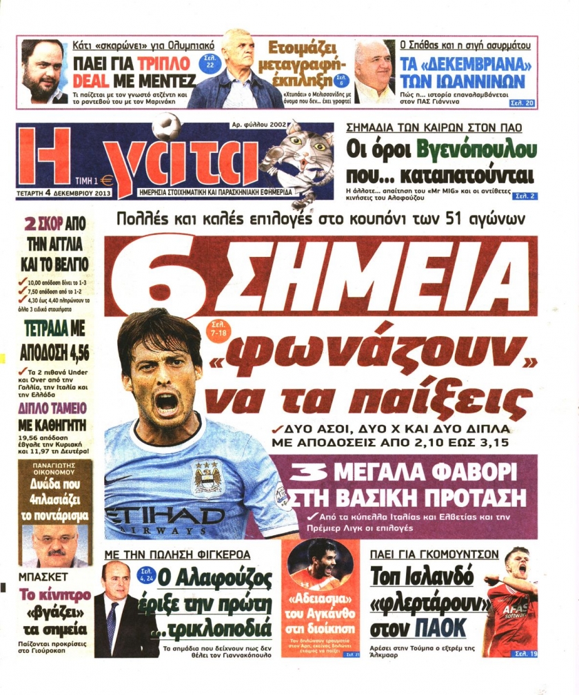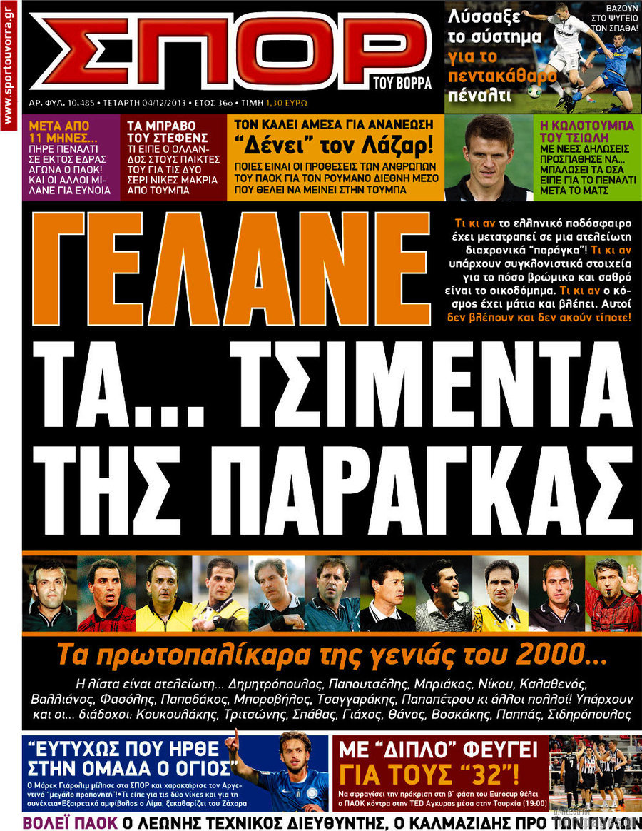 Οι αθλητικές εφημερίδες Enikos Newsroom 08:39, Τετάρτη 04 Δεκεμβρίου 2013 Media Οι αθλητικές εφημερίδες Διαβάστε τα πρωτοσέλιδα των αθλητικών εφημερίδων: ΑΘΛΗΤΙΚΕΣ ΕΦΗΜΕΡΙΔΕΣ ΕΦΗΜΕΡΙΔΕΣ ΠΡΩΤΟΣΕΛΙΔΑ Μοιράσου το: σχολίασε κι εσύ (0 σχόλια) Ακολουθήστε το enikos.gr στο Google News και μάθετε πρώτοι όλες τις ειδήσεις Δείτε όλες τις τελευταίες ειδήσεις από την Ελλάδα και τον Κόσμο στο enikos.gr Ειδήσεις Ροή Ειδήσεων 8 ώρες πριν Εκτός ευρωομάδας ΣΥΡΙΖΑ ο Νίκος Παππάς μετά την επίθεση στον δημοσιογράφο Νίκο Γιαννόπουλο – Η μήνυση και οι νέες δηλώσεις 9 ώρες πριν «Αγριεύουν» οι αγρότες: «Δεν συντρέχει λόγος συνάντησης με τον πρωθυπουργό» – Ώρα αποφάσεων στη σύσκεψη της Πέμπτης 8 ώρες πριν Κυψέλη: Χωρίς την οικογένειά της δίπλα της απολογήθηκε η 16χρονη – «Της είχε επιτεθεί κάποιος για να την βιάσει, φοβήθηκε και κυκλοφορούσε με μαχαίρι» 8 ώρες πριν Politico: Το πρόβλημα της Ευρώπης δεν είναι το Βέλγιο αλλά ο Ντόναλντ Τραμπ 10 ώρες πριν Αλεξανδρούπολη: Πολυοργανική ανεπάρκεια λόγω υποσιτισμού η αιτία θανάτου του 3χρονου αγοριού 1 ώρα πριν Καούρα: Το μπαχαρικό που είναι «εξίσου αποτελεσματικό» με την ομεπραζόλη, σύμφωνα με ειδικούς 2 ώρες πριν Τα ζώδια σήμερα, Πέμπτη 18 Δεκεμβρίου: Λέοντες, η καρδιά σας θέλει να εκφραστεί 8 ώρες πριν Μυστήριο με τεράστιες κυκλικές πέτρες 200 κιλών – Ανακαλύφθηκαν τυχαία κατά τη διάρκεια οδικών έργων και κανείς δεν ξέρει από πού προέρχονται 22 ώρες πριν 20 χρόνια τα Χριστούγεννα ξεκινούν στα Public με μεγάλη ποικιλία σε δώρα! 11 λεπτά πριν Εορτολόγιο: Ποιοι γιορτάζουν σήμερα 18 Δεκεμβρίου 23 λεπτά πριν Επιχειρήσεις: Έρχονται νέα μέτρα φορολογικών ελαφρύνσεων – Τα σχέδια για την προκαταβολή φόρου και το τέλος επιτηδεύματος 30 λεπτά πριν ΗΠΑ: Οριστική άρση κυρώσεων κατά της Συρίας – Ανοίγει ο δρόμος για επενδύσεις 38 λεπτά πριν Οι τελευταίες εξελίξεις στην εμπορική συμφωνία Ευρωπαϊκής Ένωσης – Mercosur 42 λεπτά πριν Ρεκόρ εσόδων για τον Παναμά από τα τέλη διέλευσης της Διώρυγας ENIKOS NETWORK Μπορείτε να εντοπίσετε το ποντικάκι που κρύβεται πίσω από όλα τα μανιτάρια; Μόνο όσοι έχουν τα μάτια γερακιού μπορούν να λύ... Το «λουλούδι σκαντζόχοιρος» που μπορεί να ενισχύσει το ανοσοποιητικό, να μειώσει τη φλεγμονή και να ρυθμίσει το σάκχαρο ΕΛΣΤΑΤ: Τι δείχνουν τα νέα στοιχεία για τις ηλεκτρονικές παραγγελίες των επιχειρήσεων ΚΕΠΕ: Οι 3 διακριτές συμβολές των ΜμΕ και της μεταποίησης στην ελληνική οικονομία Χαρτογραφώντας το «σημείο χωρίς επιστροφή»: Για πρώτη φορά αποκαλύπτεται με λεπτομέρεια το ακανθώδες όριο της ατμόσφαιρας τ... Η Google καταργεί τη λειτουργία «dark web report» – Πώς θα μπορούν οι χρήστες να διαγράφουν τα δεδομένα τους περισσότερα 05:48 , Πέμπτη 18 Δεκεμβρίου 2025 Οι οικονομικές εφημερίδες 18/12/2025 Διαβάστε τα πρωτοσέλιδα από τις οικονομικές εφημερίδες, σήμερα 18/12/2025. 05:43 , Πέμπτη 18 Δεκεμβρίου 2025 Οι αθλητικές εφημερίδες 18/12/2025 Διαβάστε τα πρωτοσέλιδα από τις αθλητικές εφημερίδες, σήμερα 18/12/2025. 05:38 , Πέμπτη 18 Δεκεμβρίου 2025 Οι πολιτικές εφημερίδες 18/12/2025 Διαβάστε τα πρωτοσέλιδα από τις πολιτικές εφημερίδες, σήμερα 18/12/2025. 05:22 , Πέμπτη 18 Δεκεμβρίου 2025 Το Ποντίκι σήμερα Πέμπτη 18/12/2025 Διαβάστε το πρωτοσέλιδο της εφημερίδας «Το Ποντίκι» σήμερα 18/12/2025. ΤΕΛΕΥΤΑΙΕΣ ΕΙΔΗΣΕΙΣ 11 λεπτά πριν Εορτολόγιο: Ποιοι γιορτάζουν σήμερα 18 Δεκεμβρίου 23 λεπτά πριν Επιχειρήσεις: Έρχονται νέα μέτρα φορολογικών... 30 λεπτά πριν ΗΠΑ: Οριστική άρση κυρώσεων κατά της Συρίας – Ανοίγει... 38 λεπτά πριν Οι τελευ