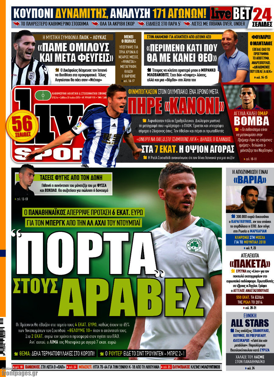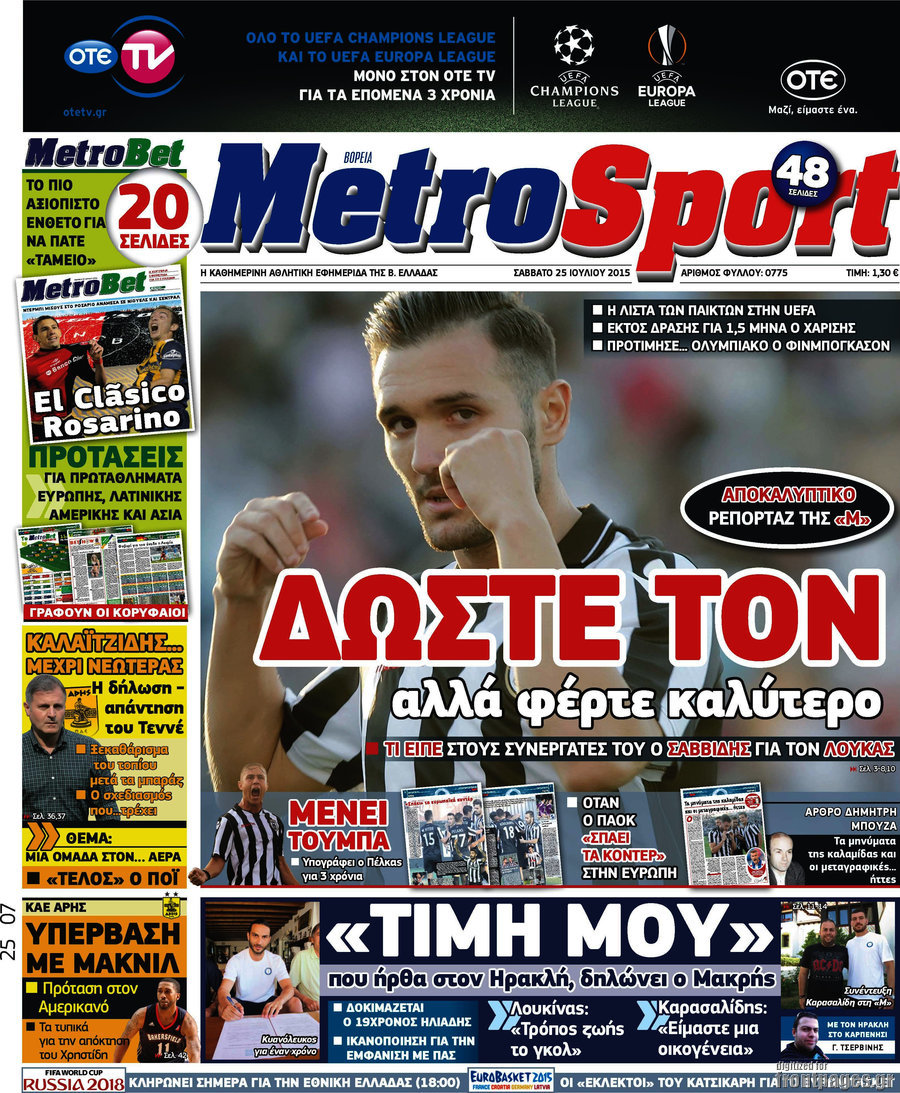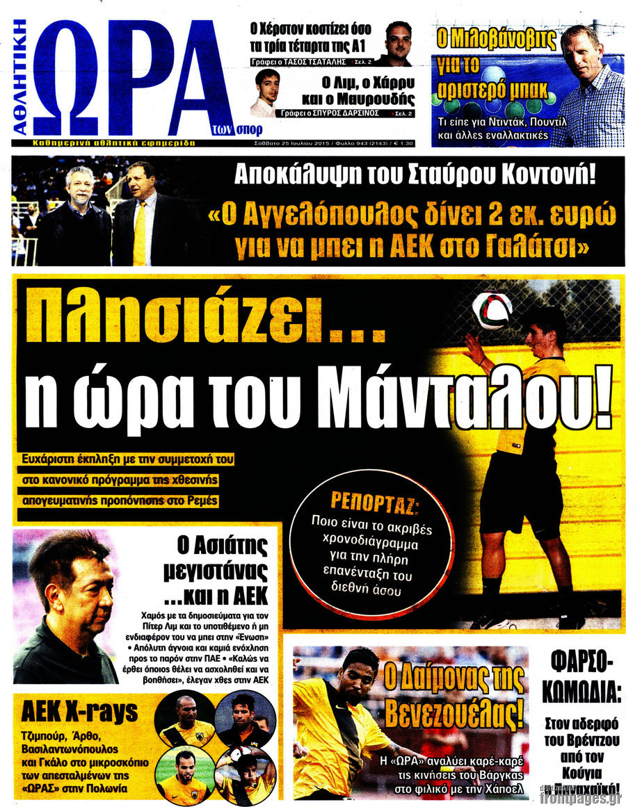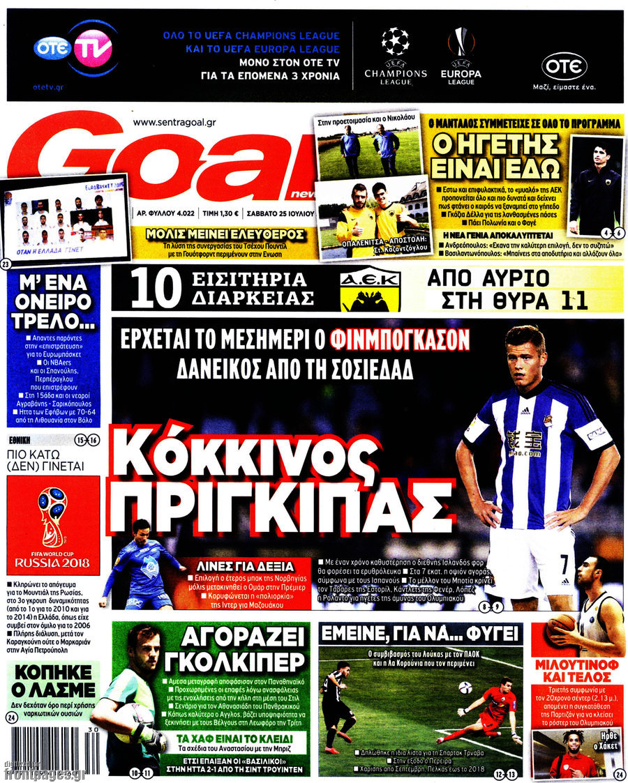 Οι αθλητικές εφημερίδες 25/7/2015 Enikos Newsroom 08:43, Σάββατο 25 Ιουλίου 2015 Media Διαβάστε τα σημερινά πρωτοσέλιδα των αθλητικών εφημερίδων. ΑΘΛΗΤΙΚΕΣ ΕΦΗΜΕΡΙΔΕΣ ΠΡΩΤΟΣΕΛΙΔΑ Μοιράσου το: σχολίασε κι εσύ (0 σχόλια) Ακολουθήστε το enikos.gr στο Google News και μάθετε πρώτοι όλες τις ειδήσεις Δείτε όλες τις τελευταίες ειδήσεις από την Ελλάδα και τον Κόσμο στο enikos.gr Ειδήσεις Ροή Ειδήσεων 20 λεπτά πριν «Έλληνας Εσκομπάρ»: Φωτογραφίες με τους 4 τόνους κοκαΐνης που κατασχέθηκαν από το σκάφος «Ουρανία» 3 ώρες πριν Η Ουκρανία χτύπησε τάνκερ του σκιώδους στόλου της Ρωσίας στη Μεσόγειο – Έπλεε νότια της Κρήτης 2 ώρες πριν Πούτιν: Σαρκαστικά μηνύματα, παράπονα και απρόοπτα στη συνέντευξη Τύπου – Η πρόταση γάμου on air και οι ερωτήσεις για τα αγγούρια και τους… εξωγήινους 2 ώρες πριν Η απάντηση της κυβέρνησης στα αιτήματα των αγροτών: 16+4 υλοποιούνται ή βρίσκονται υπό επεξεργασία για να βρεθεί λύση – 7 δεν μπορούν να επιλυθούν 3 ώρες πριν Εξώδικο επιχειρηματία στον Γιώργο Μαζωνάκη – Τι απαντά στις καταγγελίες του τραγουδιστή 1 ώρα πριν Τα 5 ζώδια που ευνοούνται στην ερωτική ζωή τους την επόμενη εβδομάδα – «Η ενέργεια του Αιγόκερου φέρνει αγάπη και σταθερότητα» 6 ώρες πριν Γεμάτος νεροχύτης; 5 σοβαρές ευθύνες που «φοβίζουν» όσους αφήνουν άπλυτα πιάτα 5 ώρες πριν Ειδικός μοιράζεται 6 κόλπα για να διατηρείστε σε φόρμα με πάνω από 40 ώρες εργασίας την εβδομάδα: «Προπονηθείτε πριν από τη δουλειά, όχι μετά» 2 ημέρες πριν 20 χρόνια τα Χριστούγεννα ξεκινούν στα Public με μεγάλη ποικιλία σε δώρα! 41 δευτερόλεπτα πριν Γαλλία: Ξαφνική «επίσκεψη» των αγροτών στο σπίτι του Μακρόν – Πέταξαν κοπριά, λάχανα, λάστιχα και άφησαν ένα φέρετρο – ΒΙΝΤΕΟ 7 λεπτά πριν Από το Ορμένιο ως τα Μάλγαρα κι από τη Σιάτιστα μέχρι τη Νίκαια: Μπλόκα σε όλη την Ελλάδα – Το Σάββατο ανοίγουν τα διόδια οι αγρότες 8 λεπτά πριν Ταϊβάν: 3 νεκροί έπειτα από επίθεση άνδρα με μαχαίρι – Ο δράστης σκοτώθηκε σε αστυνομική καταδίωξη – ΒΙΝΤΕΟ 11 λεπτά πριν Άρης Μουγκοπέτρος για τα προσθετικά μέλη: «Οι κόρες μου ήρθαν, μου χαϊδέψαν το χέρι και μου είπαν “μπαμπά το μιμί πέρασε”» 16 λεπτά πριν Πούτιν: «Δεν είμαι υπεύθυνος» για τους θανάτους στην Ουκρανία – Σχέδιο για κατάπαυση του πυρός αν ο Ζελένσκι κάνει εκλογές ENIKOS NETWORK ΕΛΣΤΑΤ: Αύξηση κατά 1,7% των επαγγελματιών υγείας το 2024 Τάξη στις ιατρικές διαφημίσεις για την προστασία των πολιτών βάζει ο ΙΣΑ Μετρό: Ενισχύονται τα δρομολόγια – Δείτε ποιες ημέρες Παπαθανάσης για νέο Εθνικό Πρόγραμμα Ανάπτυξης 2026-2030: Είναι υπερδιπλάσιο από αυτό της προηγούμενης προγραμματικής περιό... Χαρτογραφώντας το «σημείο χωρίς επιστροφή»: Για πρώτη φορά αποκαλύπτεται με λεπτομέρεια το ακανθώδες όριο της ατμόσφαιρας τ... Η Google καταργεί τη λειτουργία «dark web report» – Πώς θα μπορούν οι χρήστες να διαγράφουν τα δεδομένα τους περισσότερα 15:15 , Παρασκευή 19 Δεκεμβρίου 2025 Την Κυριακή με τη Realnews: Ό,τι και αν αγοράσεις, σκανάρεις και κερδίζεις! Την Κυριακή με τη Realnews: Ό,τι και αν αγοράσεις, σκανάρεις και κερδίζεις! Με το PADU app, το... 08:00 , Παρασκευή 19 Δεκεμβρίου 2025 Την Κυριακή με τη Realnews: Δωροεπιταγή 10€ Δωροεπιταγή αξίας 10€ για αγορές άνω των 60€ από τα πολυκαταστήματα FactoryOutlet H προσφορά ι... 05:48 , Παρασκευή 19 Δεκεμβρίου 2025 Οι οικονομικές εφημερίδες 19/12/2025 Διαβάστε τα πρωτοσέλιδα από τις οικονομικές εφημερίδες, σήμερα 19/12/2025. 05:43 , Παρασκευή 19 Δεκεμβρίου 2025 Οι αθλητικές εφημερίδες 19/12/2025 Διαβάστε τα πρωτοσέλιδα από τις αθλητικές εφημε