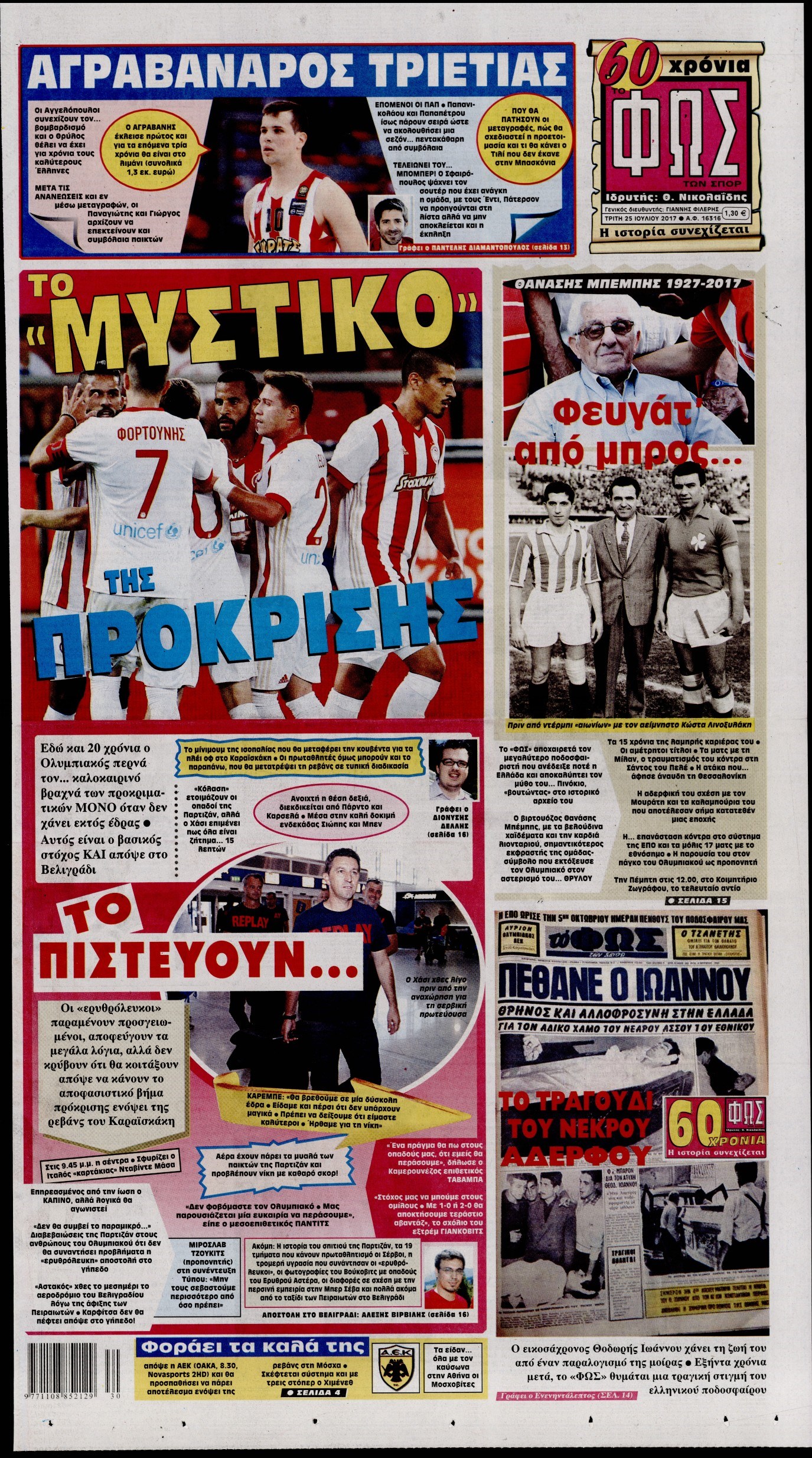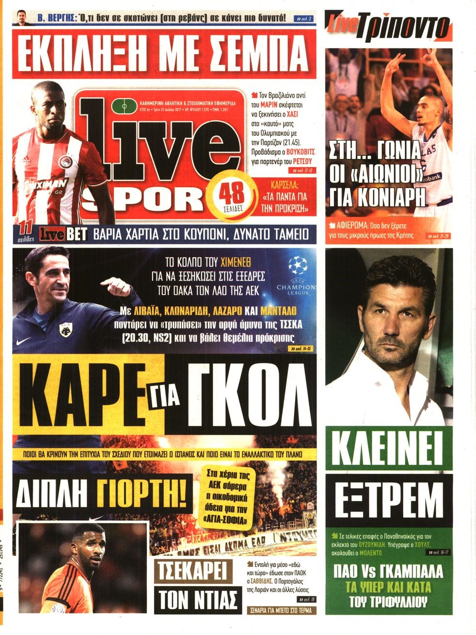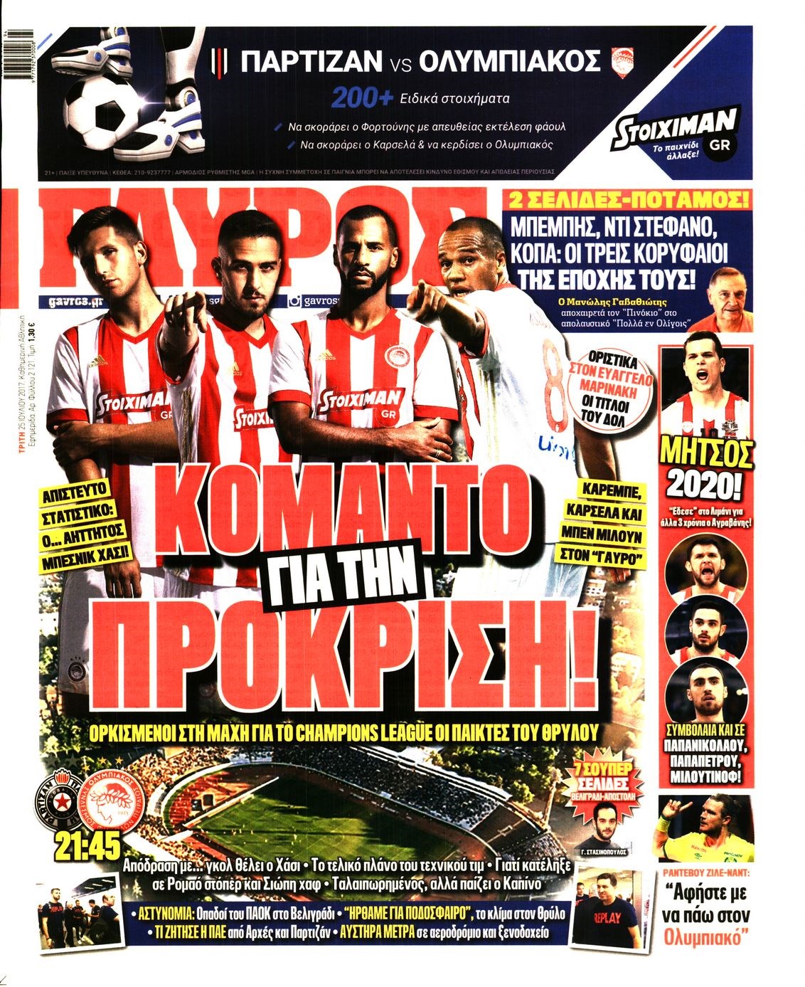 Οι αθλητικές εφημερίδες 25/7/2017 Enikos Newsroom 07:29, Τρίτη 25 Ιουλίου 2017 Media Διαβάστε τα σημερινά πρωτοσέλιδα των αθλητικών εφημερίδων: ΑΘΛΗΤΙΚΕΣ ΕΦΗΜΕΡΙΔΕΣ ΠΡΩΤΟΣΕΛΙΔΑ Μοιράσου το: σχολίασε κι εσύ (0 σχόλια) Ακολουθήστε το enikos.gr στο Google News και μάθετε πρώτοι όλες τις ειδήσεις Δείτε όλες τις τελευταίες ειδήσεις από την Ελλάδα και τον Κόσμο στο enikos.gr Ειδήσεις Ροή Ειδήσεων 2 ώρες πριν Αγρότες: Πολύωροι αποκλεισμοί στα τελωνεία Προμαχώνα, Εξοχής, Ευζώνων και Νίκης – Κλείνουν τον κόμβο Φιλώτα οι παραγωγοί στη Δυτική Μακεδονία 1 ώρα πριν Νίκος Παππάς: Ζητώ συγγνώμη για αυτό το επεισόδιο – Δεν τον γρονθοκόπησα 3 ώρες πριν Ευρωπαϊκό Συμβούλιο: Όλες οι λεπτομέρειες για το δάνειο των 90 δισ. ευρώ στην Ουκρανία – Τα συμπεράσματα της Συνόδου Κορυφής 3 ώρες πριν Αίγιο: 22χρονη κατήγγειλε ότι έπεσε θύμα βιασμού και ληστείας από συγγενικά της πρόσωπα 1 ώρα πριν Τρομακτικό βίντεο: Η στιγμή της έκρηξης στο τζετ που μετέφερε τον οδηγό του NASCAR, Γκρεγκ Μπιφλ και την οικογένειά του 2 ώρες πριν Αλλαγή σελίδας για 3 ζώδια – «Μία δύσκολη περίοδος φτάνει στο τέλος της» 2 ημέρες πριν 20 χρόνια τα Χριστούγεννα ξεκινούν στα Public με μεγάλη ποικιλία σε δώρα! 3 ώρες πριν Ο σύζυγός της συμπεριφέρεται όπως το παιδί τους – «Χρησιμοποιεί αστείες δικαιολογίες για να μην κάνει δουλειές και να ξοδεύει λεφτά» 51 λεπτά πριν Γεμάτος νεροχύτης; 5 σοβαρές ευθύνες που «φοβίζουν» όσους αφήνουν άπλυτα πιάτα 4 λεπτά πριν Πούτιν: Η Ουκρανία δεν είναι έτοιμη για ειρηνευτικές συνομιλίες – ο ρωσικός στρατός προελαύνει σε όλα τα μέτωπα 10 λεπτά πριν Βουλή: Αποσύρθηκε προσθήκη για έργα του Ταμειακού Προγράμματος Ανάπτυξης της Γ.Γ. Αθλητισμού μετά τις αντιδράσεις της αντιπολίτευσης 15 λεπτά πριν Νορβηγία: Η πριγκίπισσα Μέτε-Μάριτ πιθανότατα θα υποβληθεί σε μεταμόσχευση πνεύμονα 26 λεπτά πριν Ενίσχυση δρομολογίων του Μετρό τις Κυριακές 21 και 28 Δεκεμβρίου – Κυκλοφοριακές ρυθμίσεις αύριο στη Γραμμή 7 του τραμ λόγω εορταστικών εκδηλώσεων 31 λεπτά πριν Βλαντίμιρ Πούτιν: LIVE η συνέντευξη Τύπου για τον απολογισμό της χρονιάς ENIKOS NETWORK Καρκίνος του πνεύμονα: Έως 8.000 ζωές μπορούν να σωθούν με την έγκαιρη διάγνωση Καρδιοπαθείς: Οι νέες συστάσεις για τα εμβόλια που πρέπει να κάνουν τον χειμώνα Επιδόματα και παροχές από τον ΟΠΕΚΑ: Τι πιστώνεται σήμερα στους τραπεζικούς λογαριασμούς Απειλή για τον Προϋπολογισμό τα ληξιπρόθεσμα χρέη των ιδιωτών προς την εφορία – Τι δείχνουν τα στοιχεία Χαρτογραφώντας το «σημείο χωρίς επιστροφή»: Για πρώτη φορά αποκαλύπτεται με λεπτομέρεια το ακανθώδες όριο της ατμόσφαιρας τ... Η Google καταργεί τη λειτουργία «dark web report» – Πώς θα μπορούν οι χρήστες να διαγράφουν τα δεδομένα τους περισσότερα 08:00 , Παρασκευή 19 Δεκεμβρίου 2025 Την Κυριακή με τη Realnews: Δωροεπιταγή 10€ Δωροεπιταγή αξίας 10€ για αγορές άνω των 60€ από τα πολυκαταστήματα FactoryOutlet H προσφορά ι... 05:48 , Παρασκευή 19 Δεκεμβρίου 2025 Οι οικονομικές εφημερίδες 19/12/2025 Διαβάστε τα πρωτοσέλιδα από τις οικονομικές εφημερίδες, σήμερα 19/12/2025. 05:43 , Παρασκευή 19 Δεκεμβρίου 2025 Οι αθλητικές εφημερίδες 19/12/2025 Διαβάστε τα πρωτοσέλιδα από τις αθλητικές εφημερίδες, σήμερα 19/12/2025. 05:38 , Παρασκευή 19 Δεκεμβρίου 2025 Οι πολιτικές εφημερίδες 19/12/2025 Διαβάστε τα πρωτοσέλιδα από τις πολιτικές εφημερίδες, σήμερα 19/12/2025. ΤΕΛΕΥΤΑΙΕΣ ΕΙΔΗΣΕΙΣ 4 λεπτά πριν Πούτιν: Η Ουκρανία δεν είναι έτοιμη για ειρηνευτικές... 10 λεπτά πριν Βουλή: Αποσύρθηκε προσθήκη για έργα του Ταμειακού... 15 λεπτ