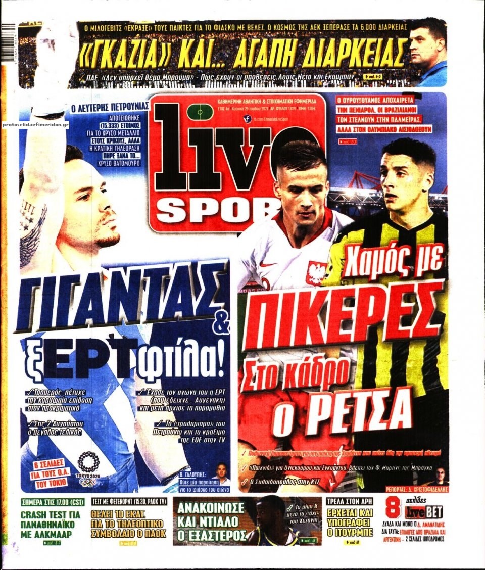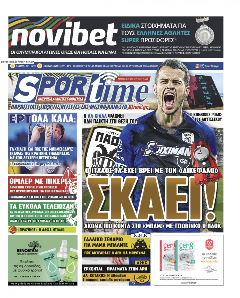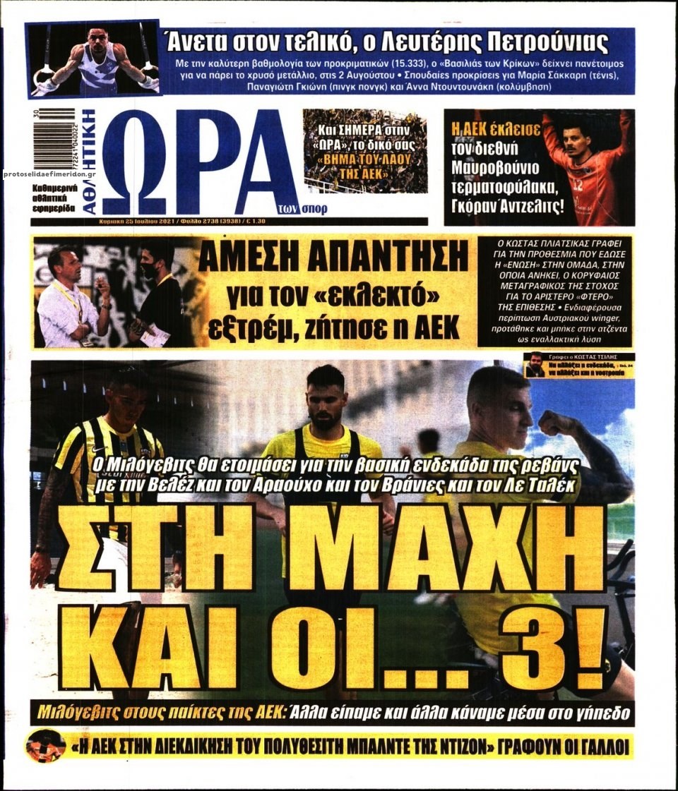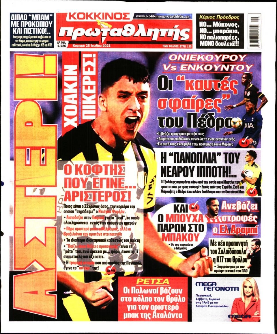 Οι αθλητικές εφημερίδες 25/7/2021 Σήφης Γαρυφαλάκης 07:37, Κυριακή 25 Ιουλίου 2021 Media Διαβάστε τα πρωτοσέλιδα των αθλητικών εφημερίδων. ΑΘΛΗΤΙΚΕΣ ΕΦΗΜΕΡΙΔΕΣ ΕΦΗΜΕΡΙΔΕΣ ΠΡΩΤΟΣΕΛΙΔΑ ΠΡΩΤΟΣΕΛΙΔΑ ΕΦΗΜΕΡΙΔΩΝ Μοιράσου το: σχολίασε κι εσύ (0 σχόλια) Ακολουθήστε το enikos.gr στο Google News και μάθετε πρώτοι όλες τις ειδήσεις Δείτε όλες τις τελευταίες ειδήσεις από την Ελλάδα και τον Κόσμο στο enikos.gr Ειδήσεις Ροή Ειδήσεων 5 ώρες πριν Εκτός ευρωομάδας ΣΥΡΙΖΑ ο Νίκος Παππάς μετά την επίθεση στον δημοσιογράφο Νίκο Γιαννόπουλο – Η μήνυση και οι νέες δηλώσεις 6 ώρες πριν «Αγριεύουν» οι αγρότες: «Δεν συντρέχει λόγος συνάντησης με τον πρωθυπουργό» – Ώρα αποφάσεων στη σύσκεψη της Πέμπτης 6 ώρες πριν Κυψέλη: Χωρίς την οικογένειά της δίπλα της απολογήθηκε η 16χρονη – «Της είχε επιτεθεί κάποιος για να την βιάσει, φοβήθηκε και κυκλοφορούσε με μαχαίρι» 5 ώρες πριν Politico: Το πρόβλημα της Ευρώπης δεν είναι το Βέλγιο αλλά ο Ντόναλντ Τραμπ 7 ώρες πριν Αλεξανδρούπολη: Πολυοργανική ανεπάρκεια λόγω υποσιτισμού η αιτία θανάτου του 3χρονου αγοριού 5 ώρες πριν Μυστήριο με τεράστιες κυκλικές πέτρες 200 κιλών – Ανακαλύφθηκαν τυχαία κατά τη διάρκεια οδικών έργων και κανείς δεν ξέρει από πού προέρχονται 6 ώρες πριν Ύπνος: Ειδικός εξηγεί τον πραγματικό λόγο που ξυπνάτε στις 4 τα ξημερώματα – Ο ρόλος των ορμονών και του κιρκάδιου ρυθμού 7 ώρες πριν Αριθμολογία: Οι άνθρωποι που έχουν γεννηθεί αυτές τις 4 ημερομηνίες, είναι τρυφεροί και αγαπούν ανιδιοτελώς 19 ώρες πριν 20 χρόνια τα Χριστούγεννα ξεκινούν στα Public με μεγάλη ποικιλία σε δώρα! 11 λεπτά πριν Νέο αμερικανικό πλήγμα σε σκάφος που φέρεται να μετέφερε ναρκωτικά στον Ειρηνικό – Τέσσερις νεκροί 27 λεπτά πριν Αλ Τσαντίρι Νιουζ: «Λύγισε» ο Δημήτρης Λάλος για τον Δημήτρη Ήμελλο – «Τον μνημονεύω, να ‘ναι καλά εκεί που είναι» 42 λεπτά πριν GNTM: Με δάκρυα τον αποχαιρέτησε η Ηλιάνα Παπαγεωργίου πριν από τον ημιτελικό – «Αισθάνομαι πολύ παράξενα» 56 λεπτά πριν Αμερικανικά στρατεύματα στον Ισημερινό για «προσωρινή» επιχείρηση κατά των ναρκωτικών 1 ώρα πριν Βραζιλία: Το Κογκρέσο ενέκρινε σχέδιο νόμου για τη μείωση της ποινής του πρώην προέδρου Μπολσονάρου ENIKOS NETWORK Αϋπνία: Το κόλπο που θα σας βοηθήσει να κοιμηθείτε απόψε – Είναι απλό και έχει αποτέλεσμα 2,6 εκατομμύρια πολίτες έχουν ήδη εμβολιαστεί κατά της γρίπης ΕΛΣΤΑΤ: Τι δείχνουν τα νέα στοιχεία για τις ηλεκτρονικές παραγγελίες των επιχειρήσεων ΚΕΠΕ: Οι 3 διακριτές συμβολές των ΜμΕ και της μεταποίησης στην ελληνική οικονομία Χαρτογραφώντας το «σημείο χωρίς επιστροφή»: Για πρώτη φορά αποκαλύπτεται με λεπτομέρεια το ακανθώδες όριο της ατμόσφαιρας τ... Η Google καταργεί τη λειτουργία «dark web report» – Πώς θα μπορούν οι χρήστες να διαγράφουν τα δεδομένα τους περισσότερα 02:30 , Πέμπτη 18 Δεκεμβρίου 2025 Αλ Τσαντίρι Νιουζ: Η κόρη της Πάολα στο κοινό – Η ατάκα Λαζόπουλου που την έκανε να «κοκκινήσει» Γιορτινή διάθεση και ευχάριστες στιγμές γέμισε η αποψινή, τελευταία για το 2025, εκπομπή του «... 22:24 , Τετάρτη 17 Δεκεμβρίου 2025 Το Σπίτι Δίπλα Στο Ποτάμι: Σε κίνδυνο η υγεία του Απόστολου – Τι θα δούμε απόψε “Το Σπίτι Δίπλα στο Ποτάμι” ξετυλίγει το νήμα της ζωής των πέντε αδελφών με καταισ... 21:14 , Τετάρτη 17 Δεκεμβρίου 2025 Παιχνίδια Εκδίκησης: Θα καταφέρει ο Χρήστος να κλονίσει την εμπιστοσύνη της Μάγιας απέναντι στον Άγη; Τα «Παιχνίδια Εκδίκησης» έρχονται απόψε στις 22:30, στον Αντ1, με το τελευταίο επεισόδιο της χ... 20:57 , Τετάρτη 17